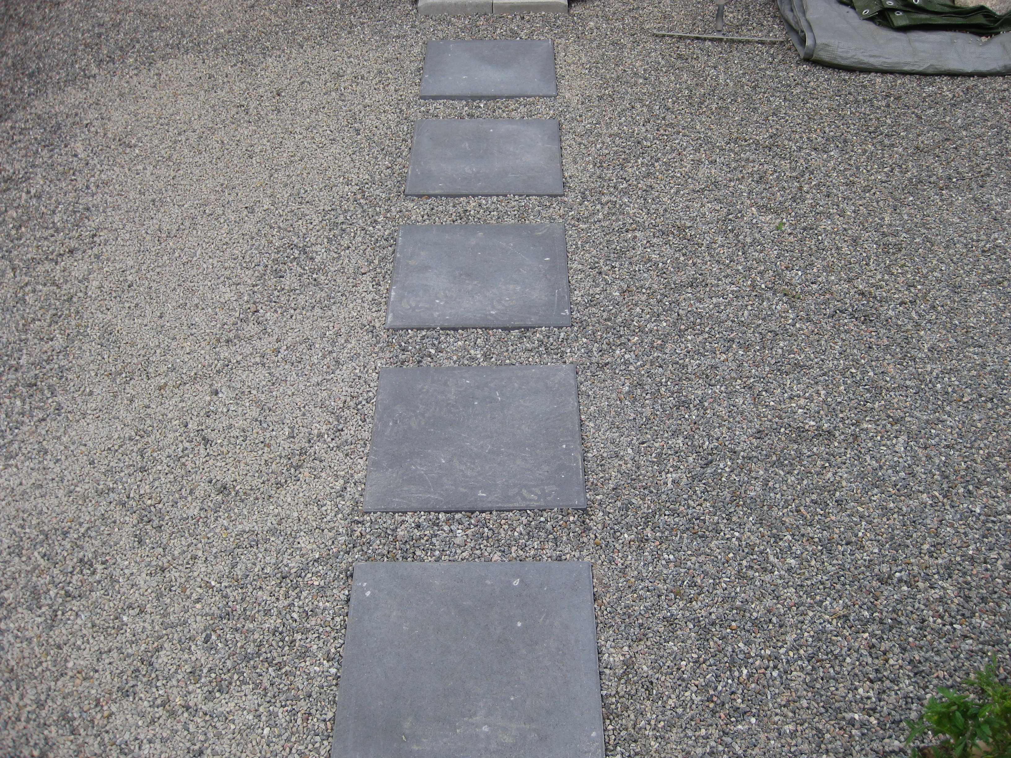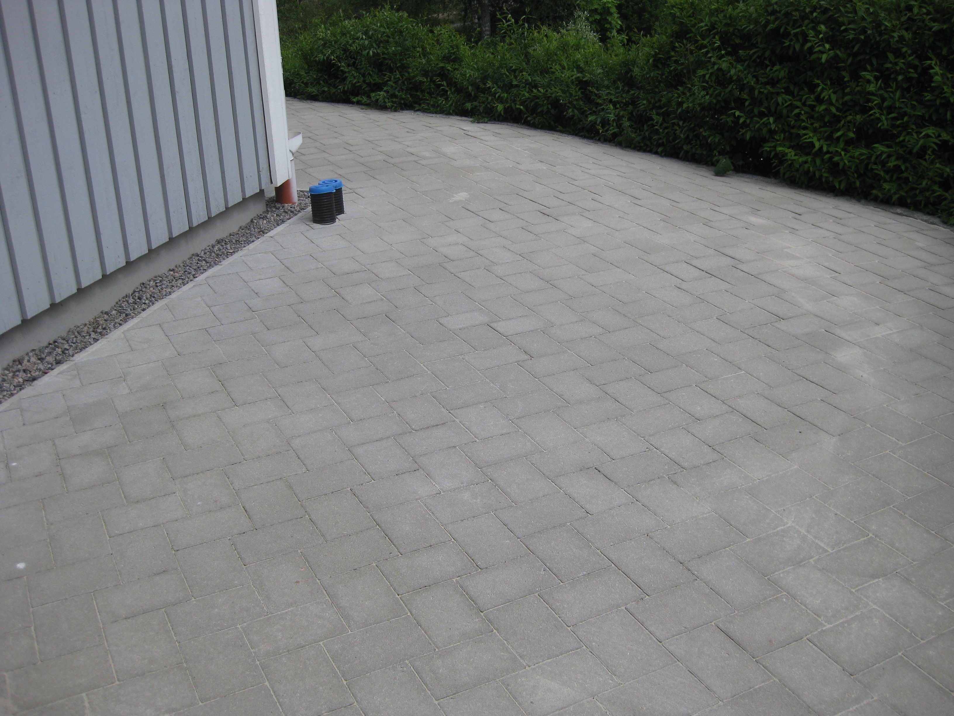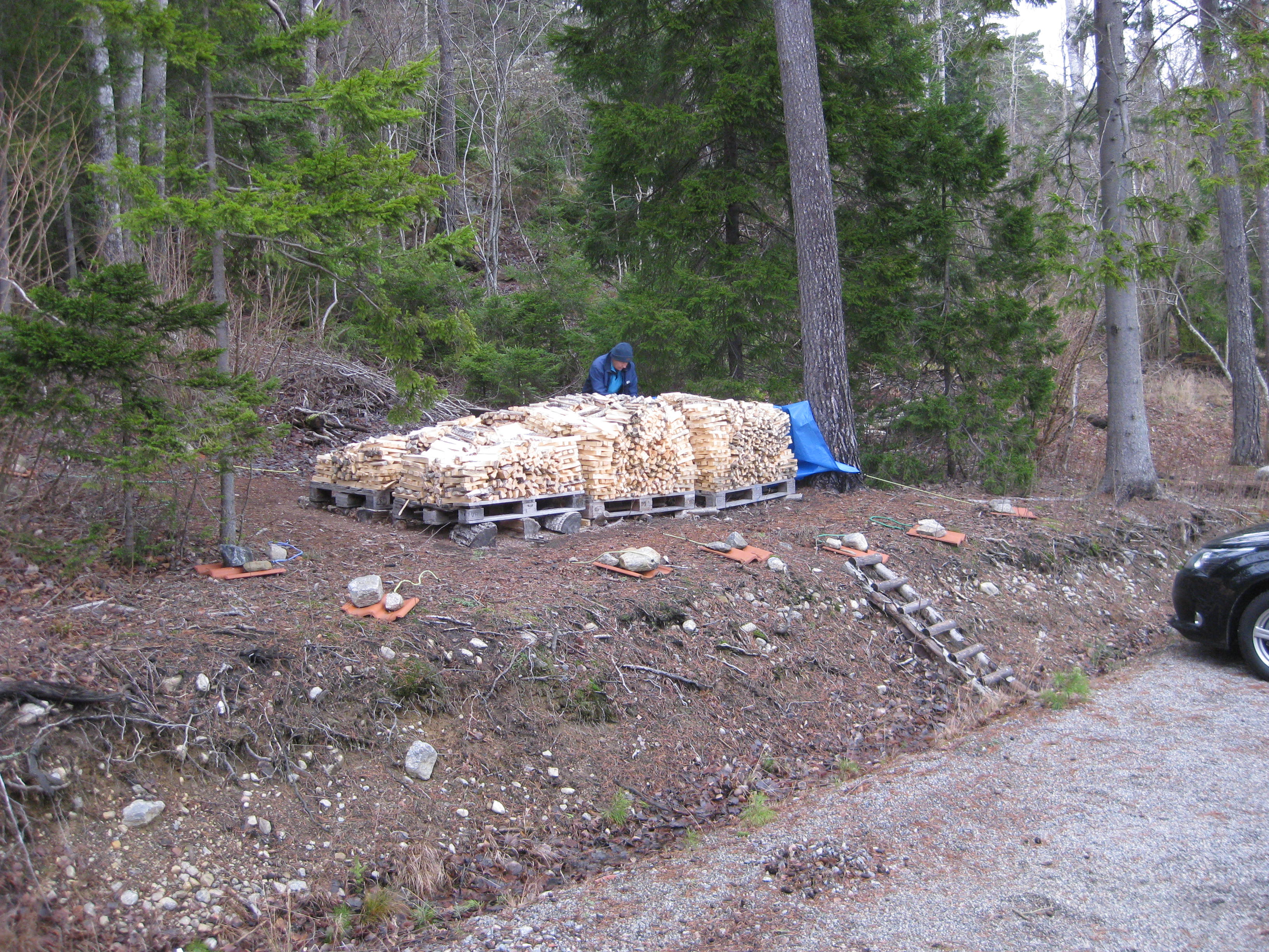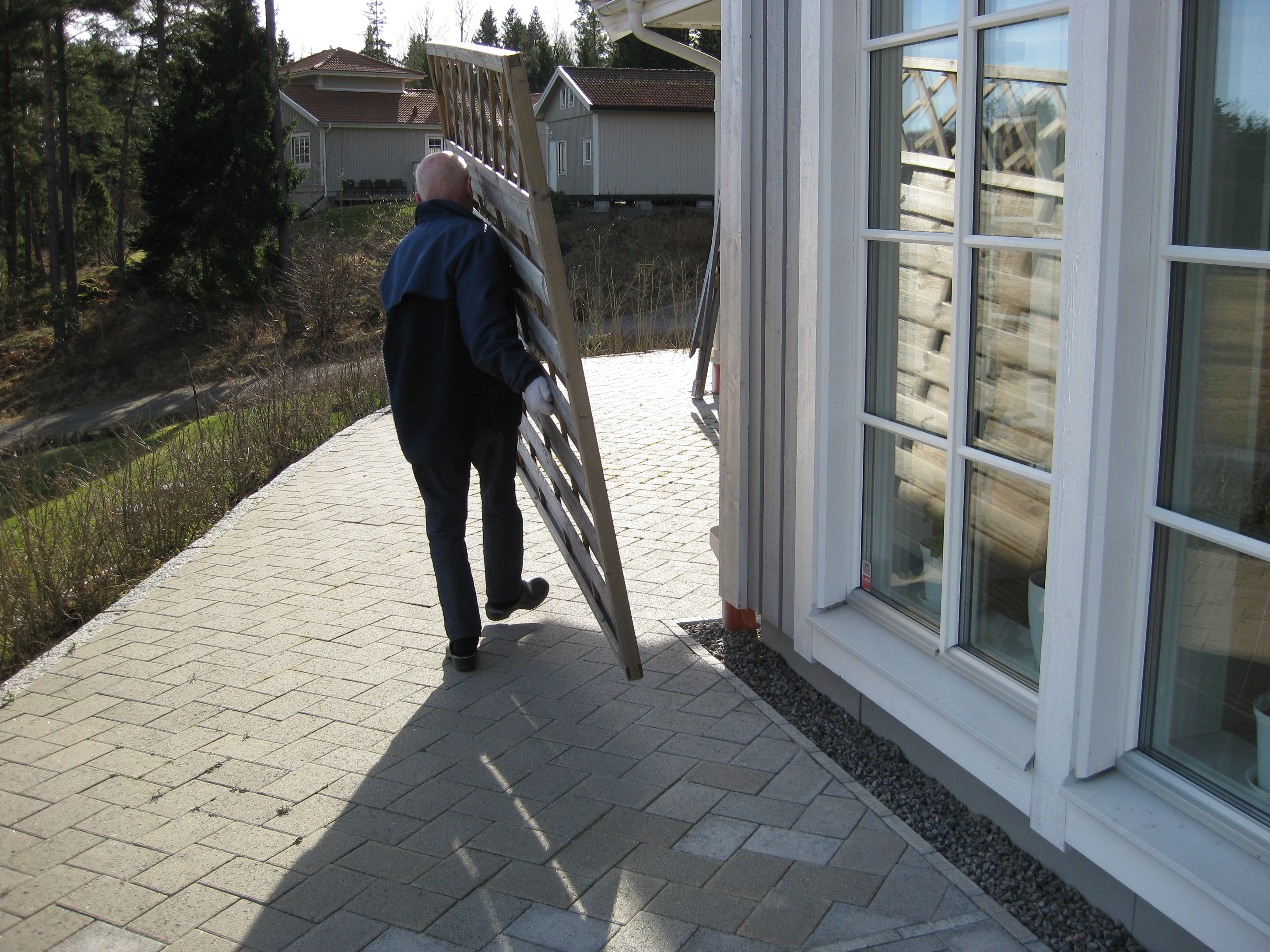 Håkan har ordnat upphängning till vattenslangarna och burit in ved i garaget och lagt plattor fram till verkstaden. Fint!