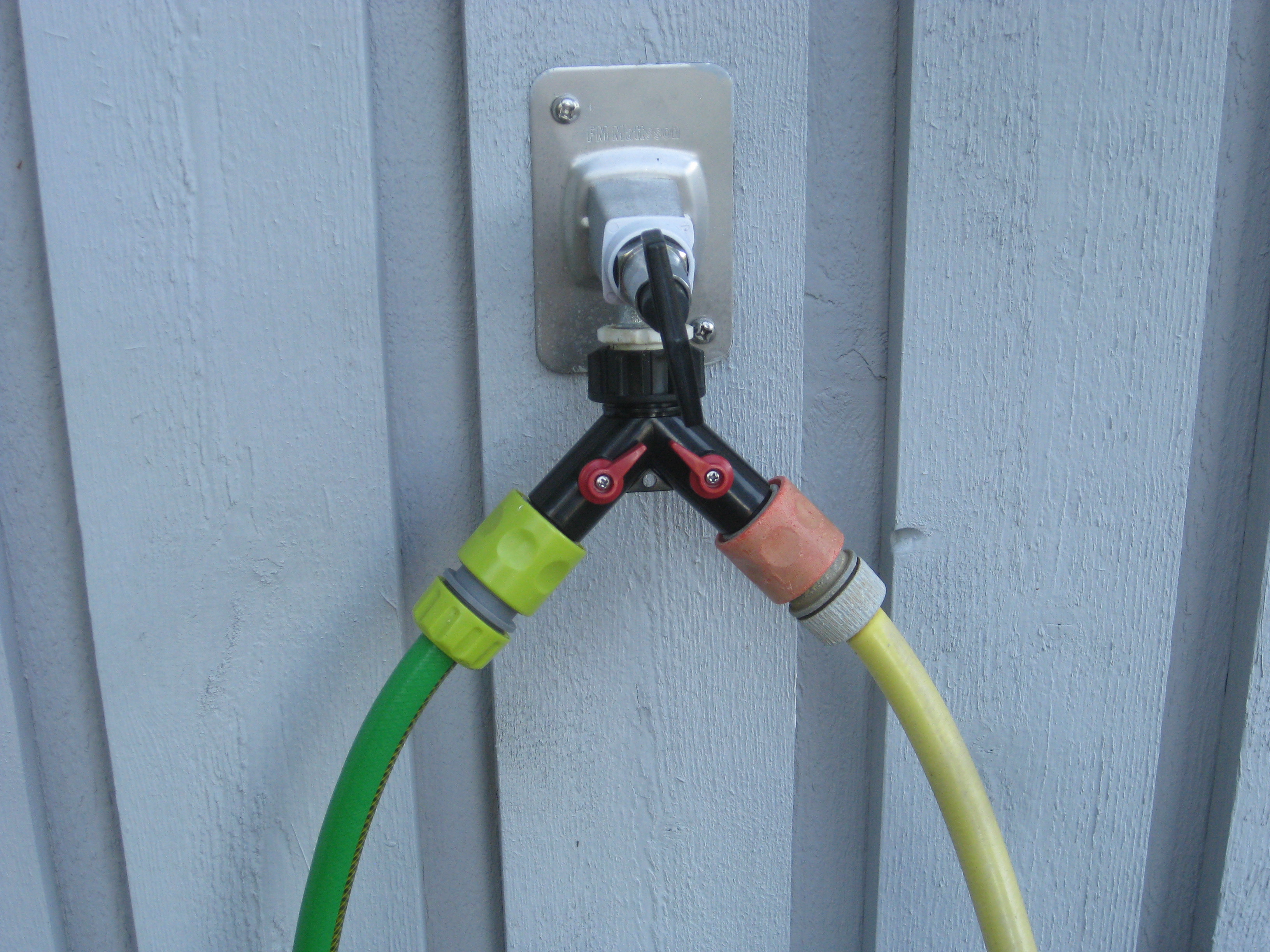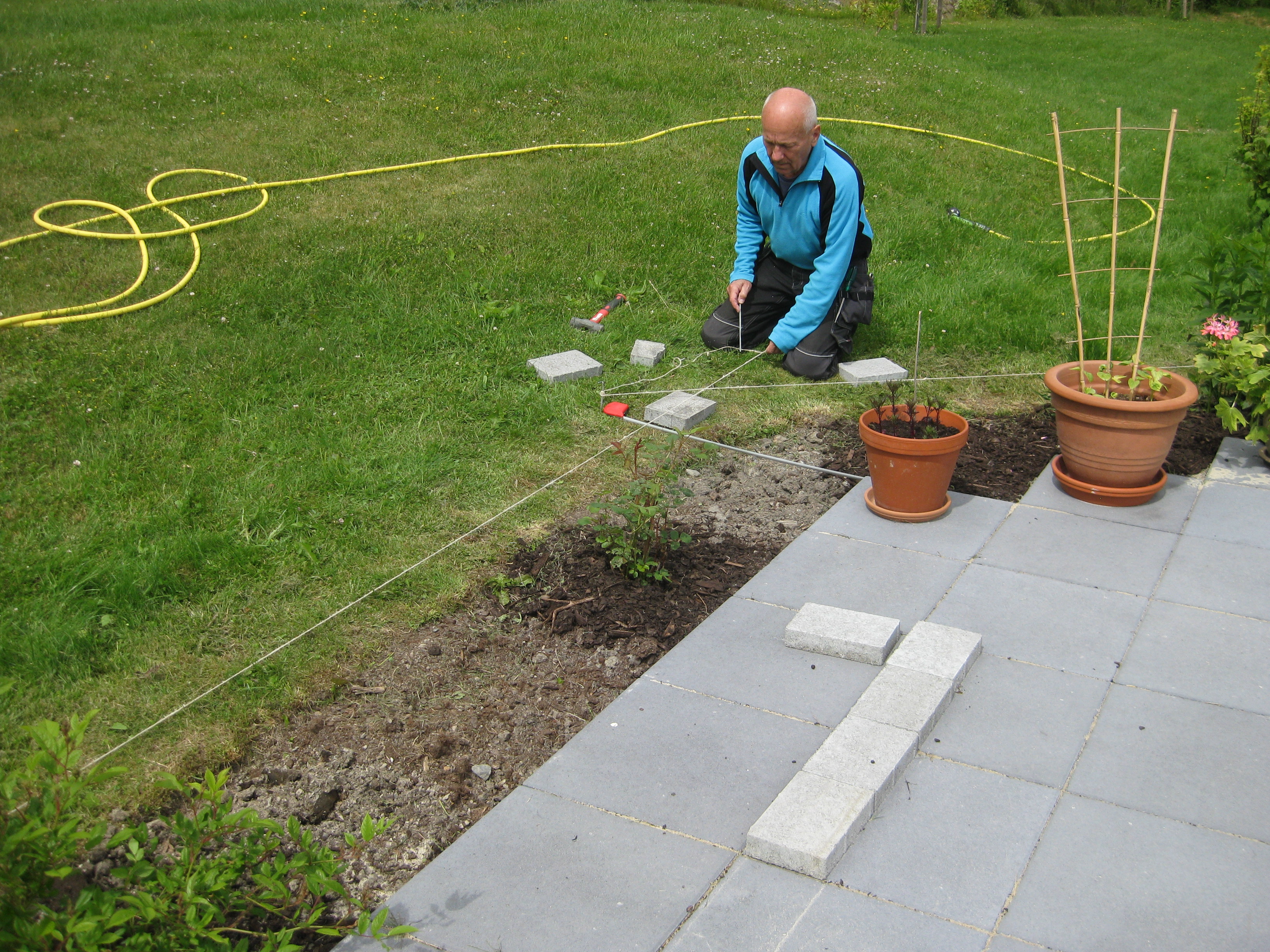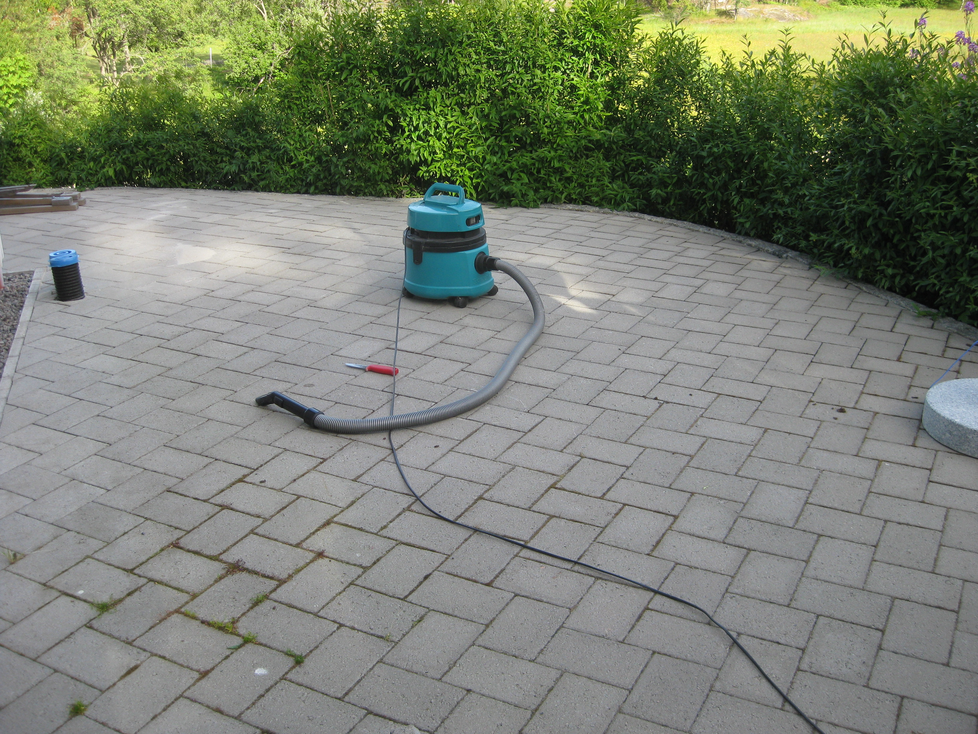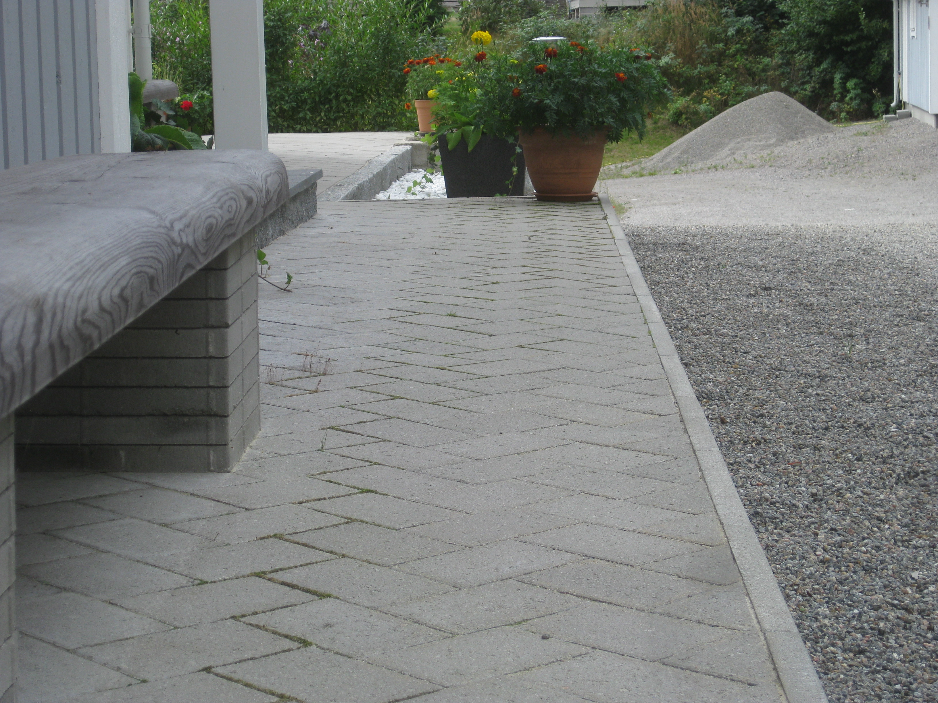 Håkan har ordnat upphängning till vattenslangarna och burit in ved i garaget och lagt plattor fram till verkstaden. Fint!