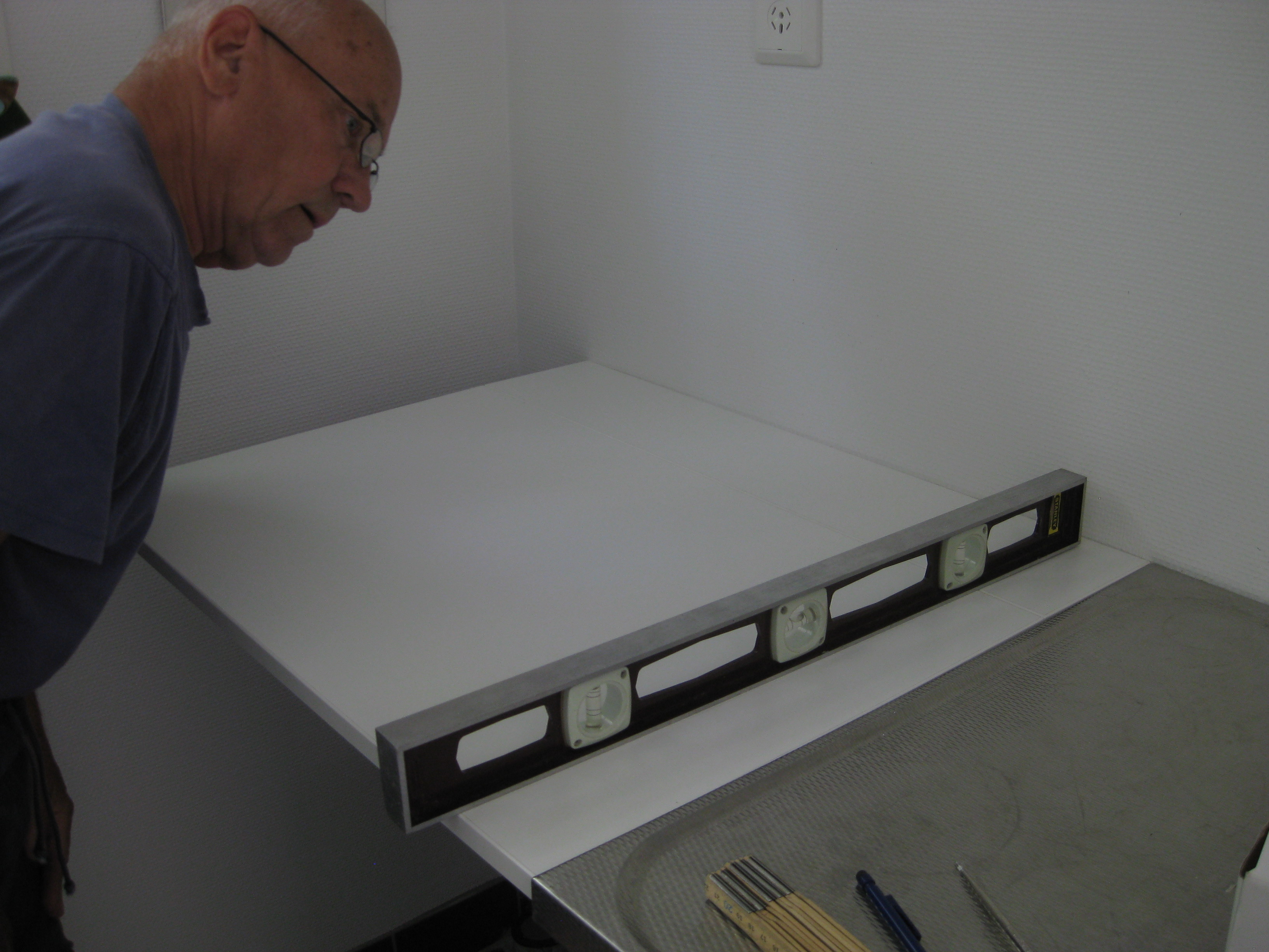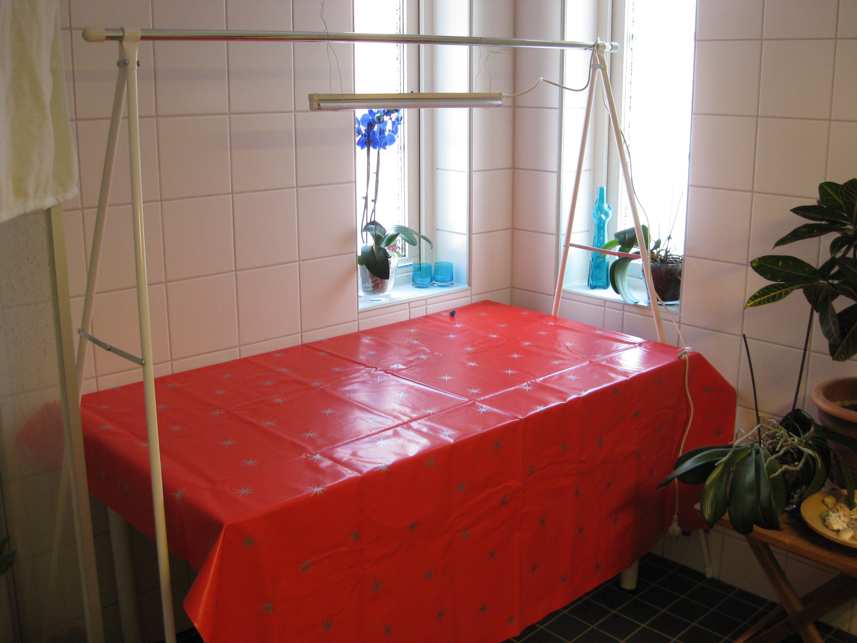 Byggprojektet avancerar! Och bordet för frösådd ställs in i badrummet.