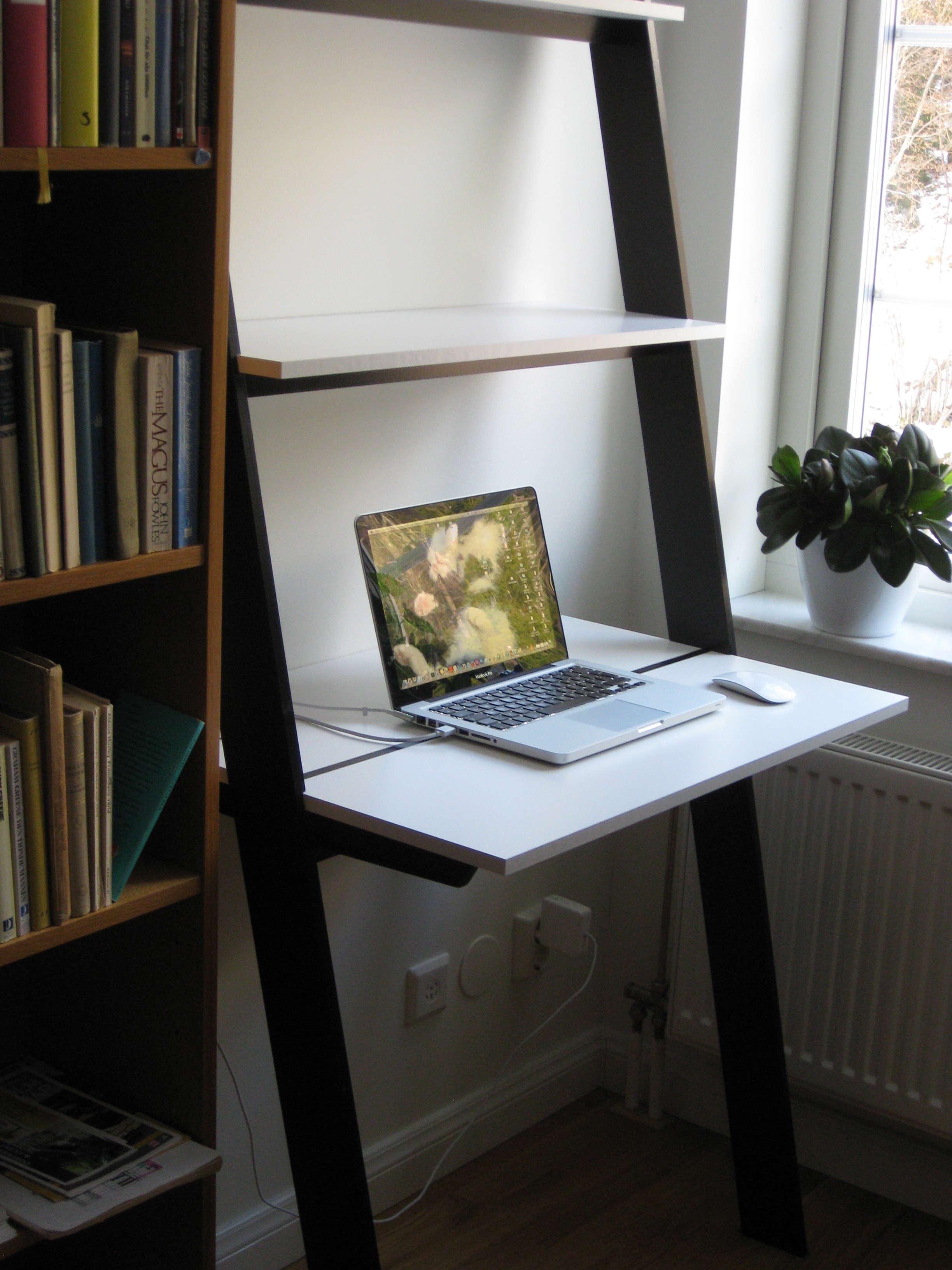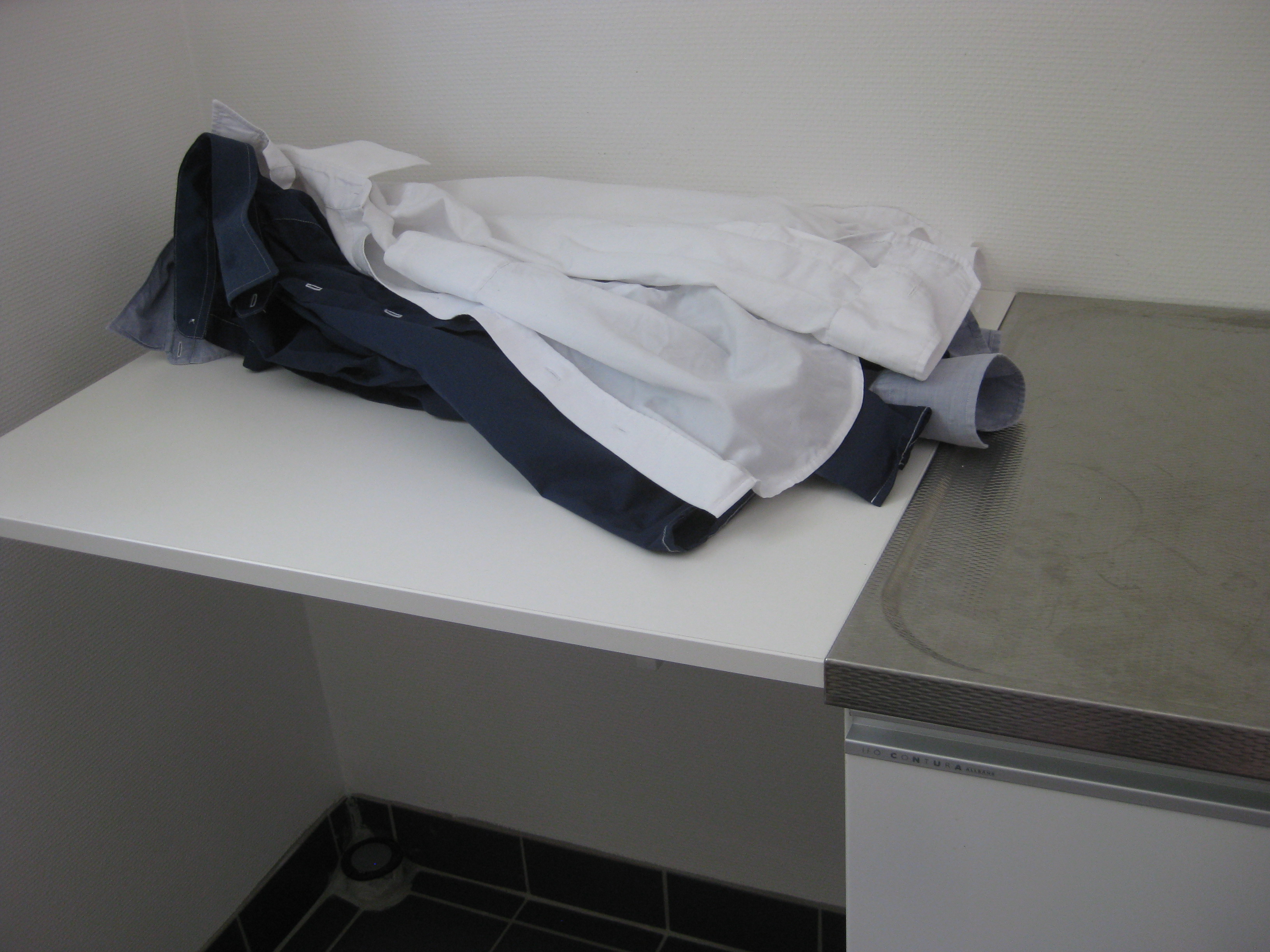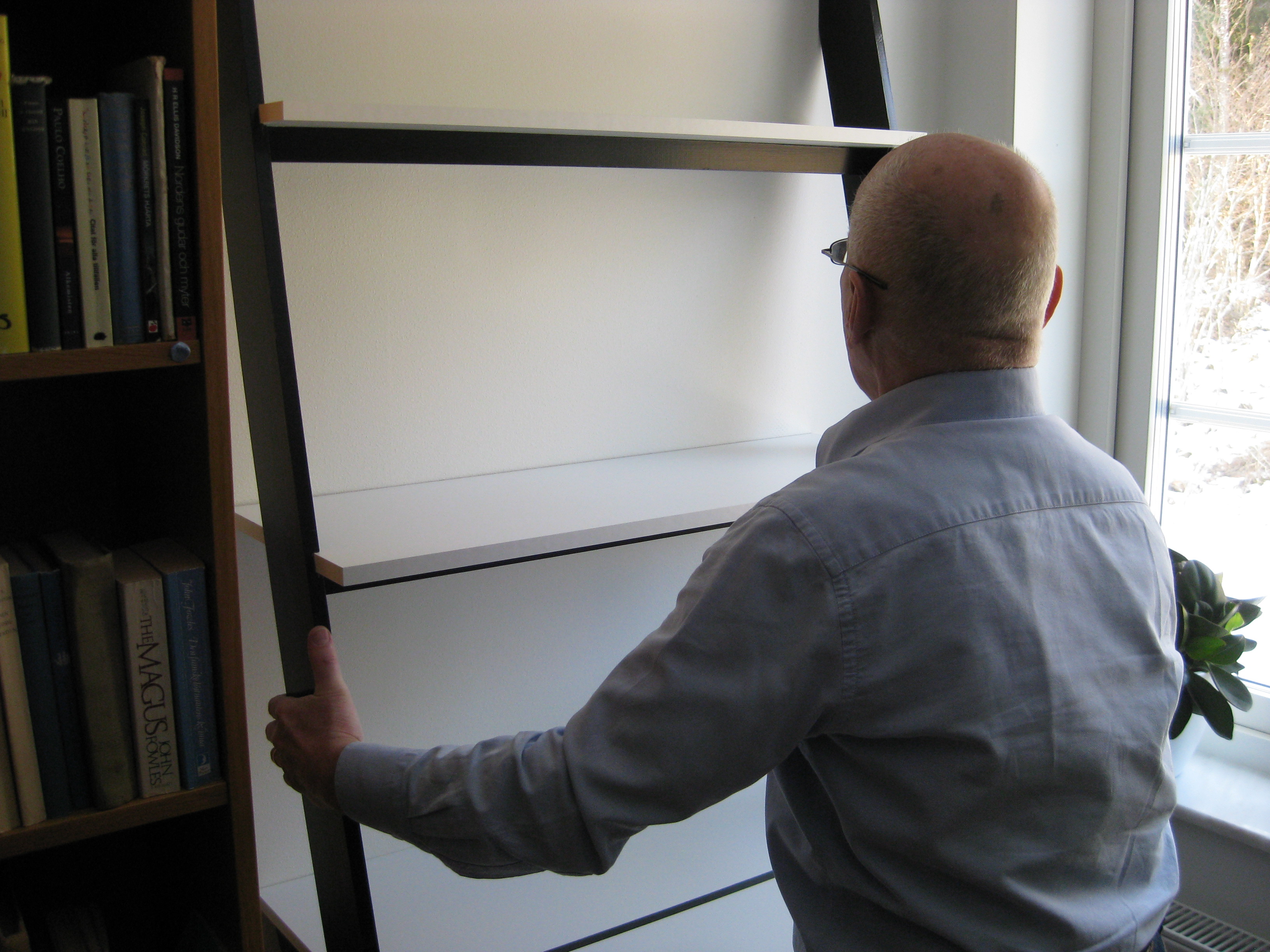 Lite skruvjobb utförs av herrn i huset med hjälp av lillkatten.. och vips så har vi en nedfällbar hylla i tvättstugan, där man kan lägga sånt som ska strykas. Prästkragarna slår ut, och det varma vädret håller i sig, så det enda vi orkar med att göra för övrigt är egentligen att vattna i växthuset, spruta mot bladlöss, och läsa en bok om Ove. Hm.
