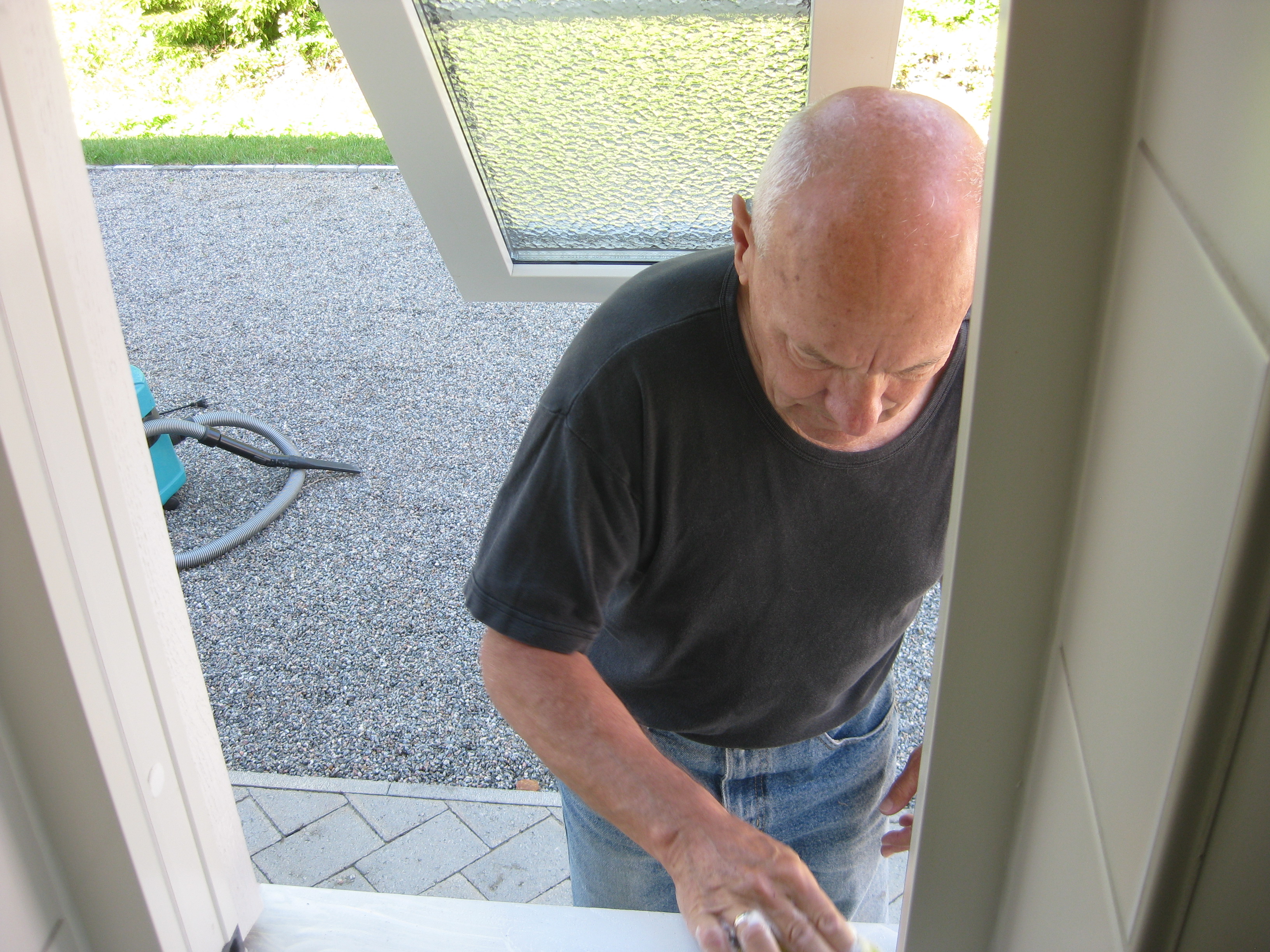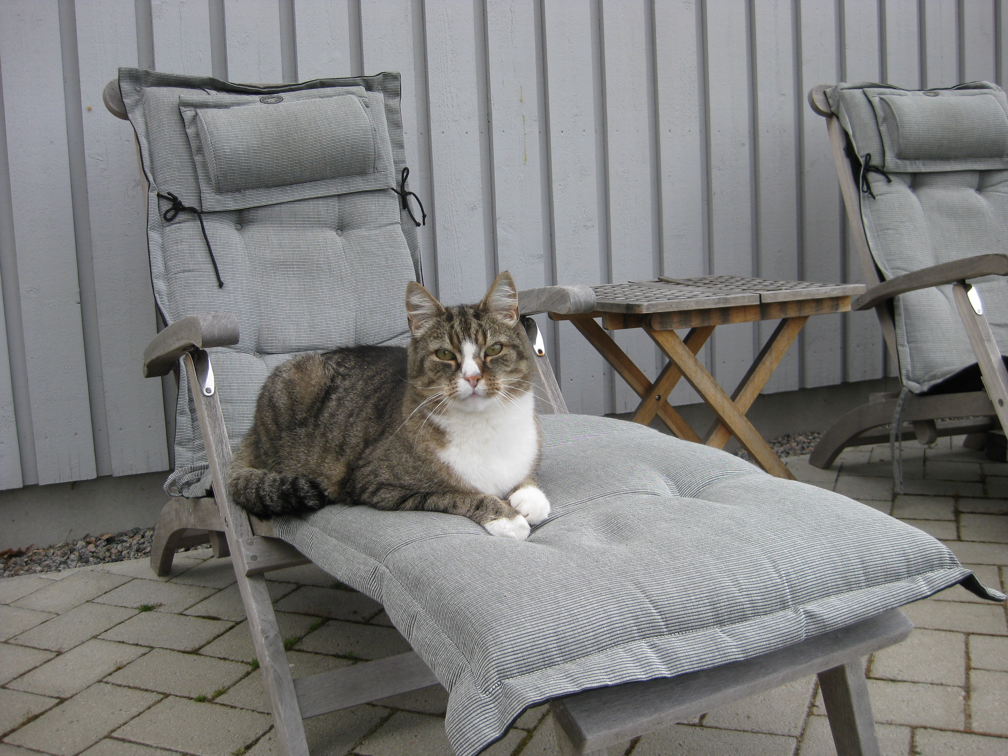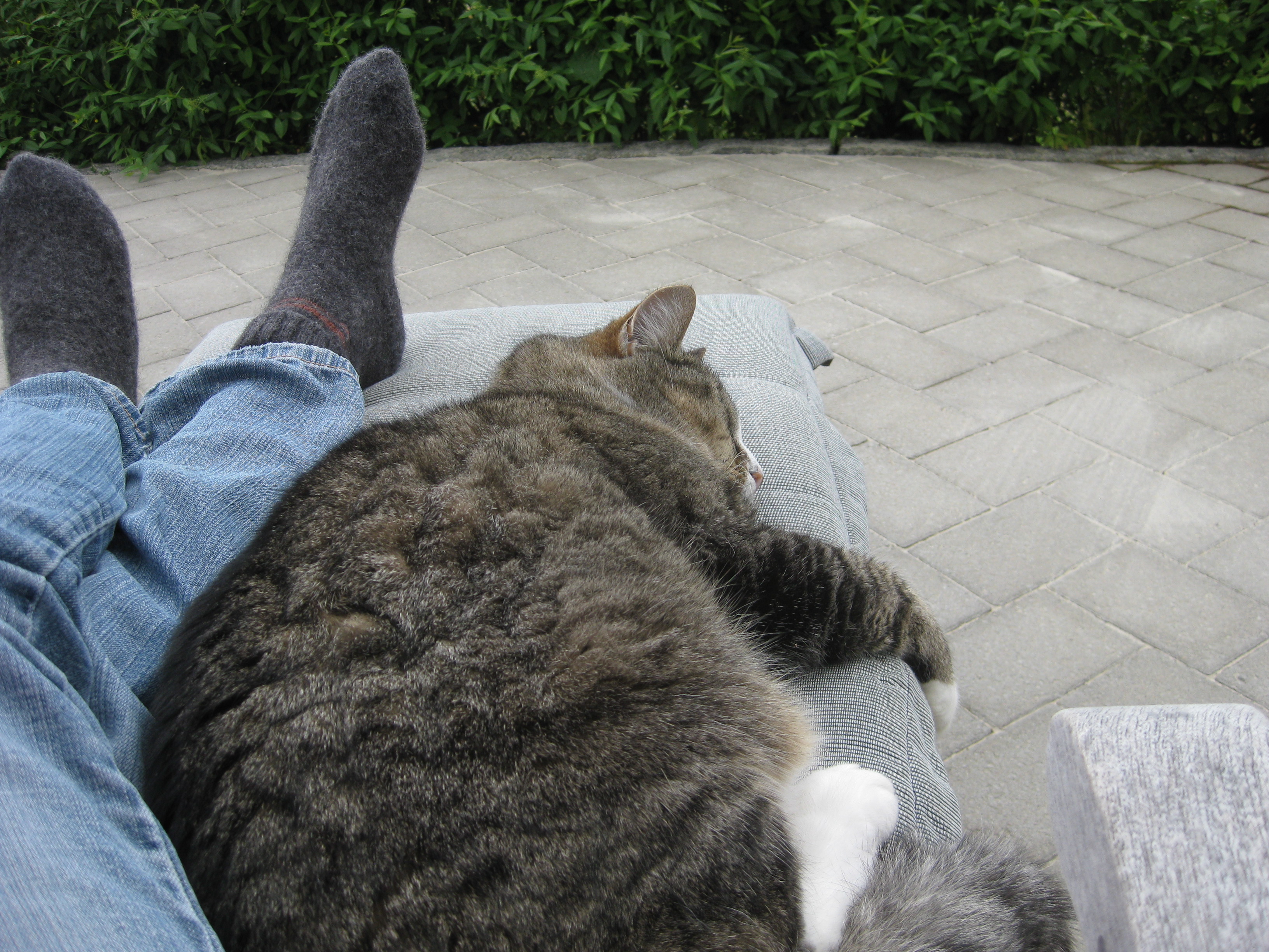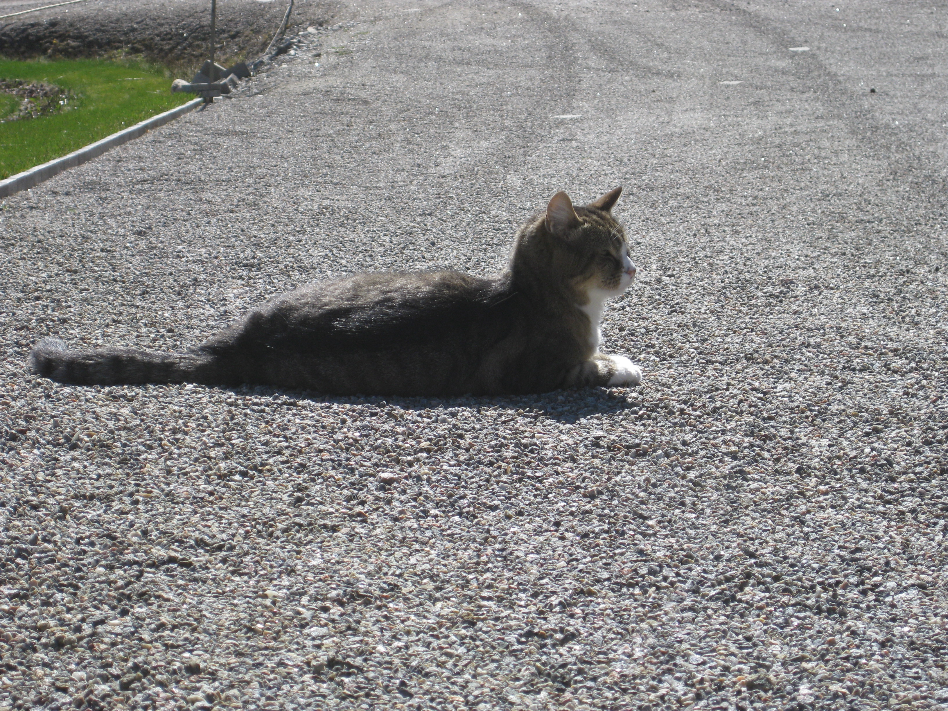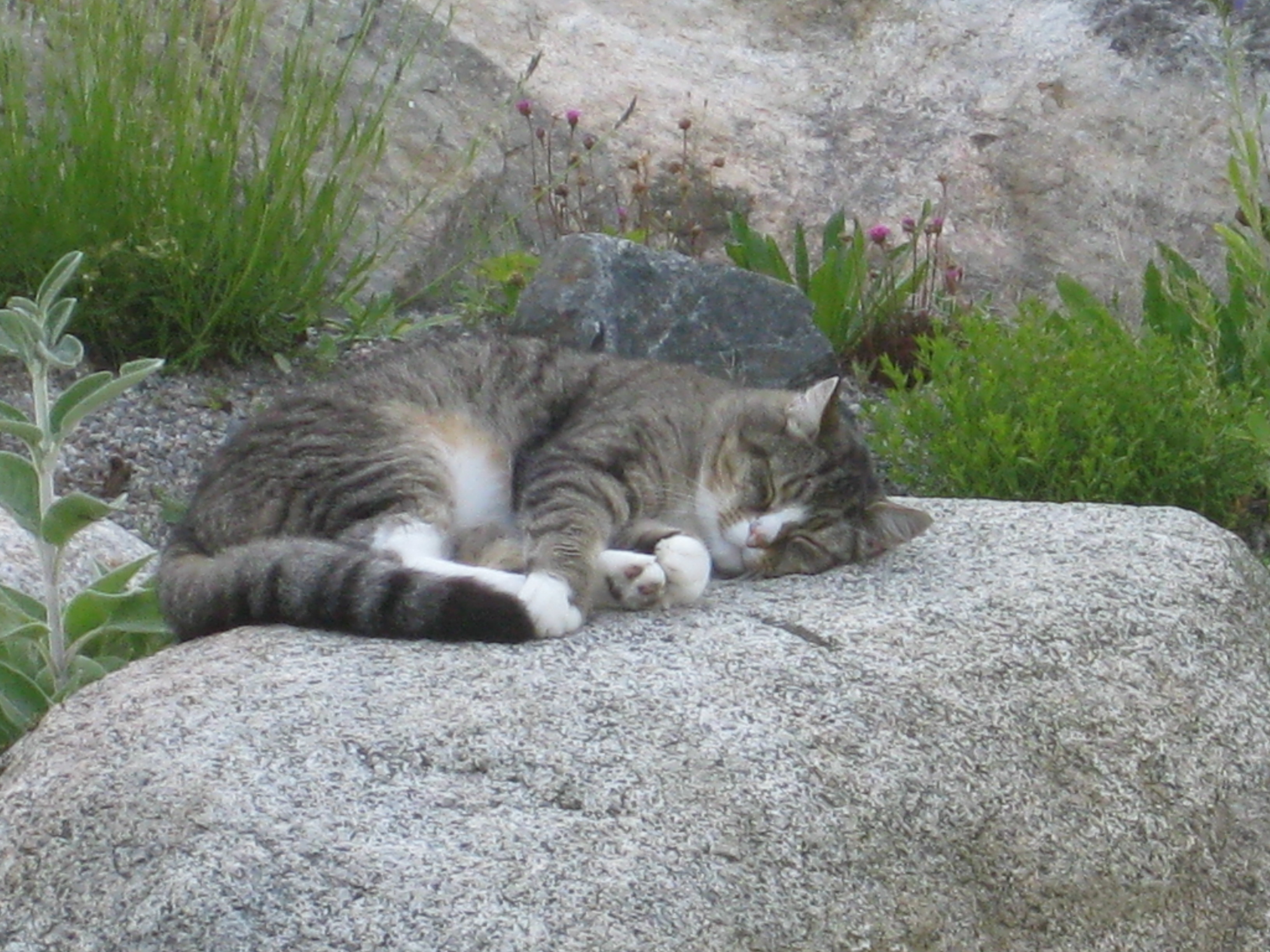 Vi tar itu med att rengöra och tvätta fönster. Katarina får flera komplimanger under dagen av vilket ”slavdrivare” nog är det mest smickrande… 😉 Det är ju flera raster också! Med kattsällskap! Dessutom hinner ju slavdrivaren med att avsluta projektet ”skapa en Stockrosrabatt” – det var vär inte illa?