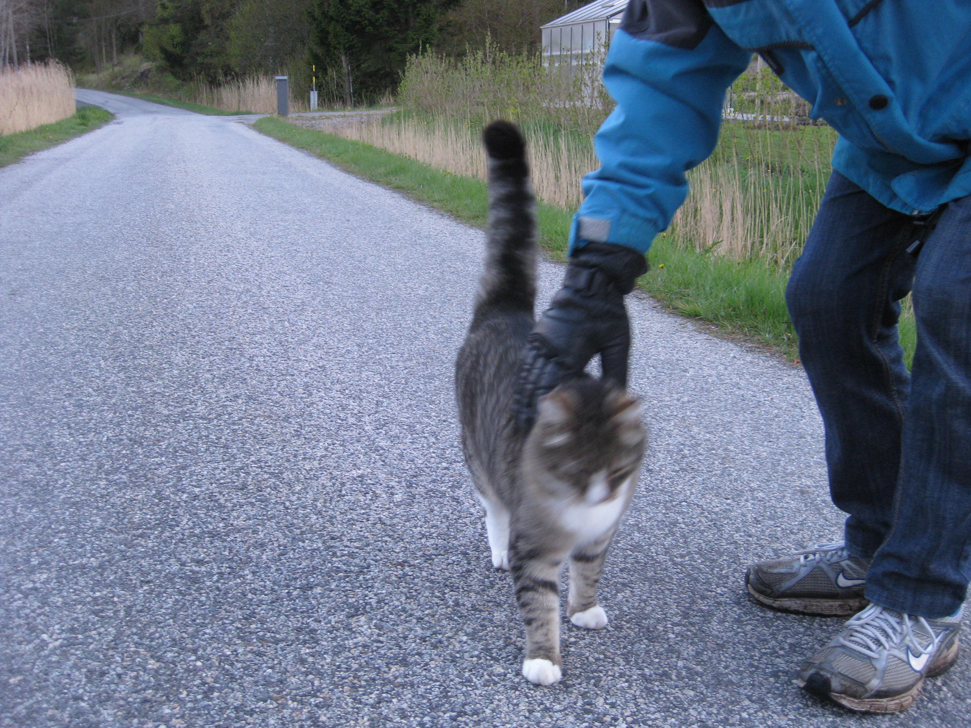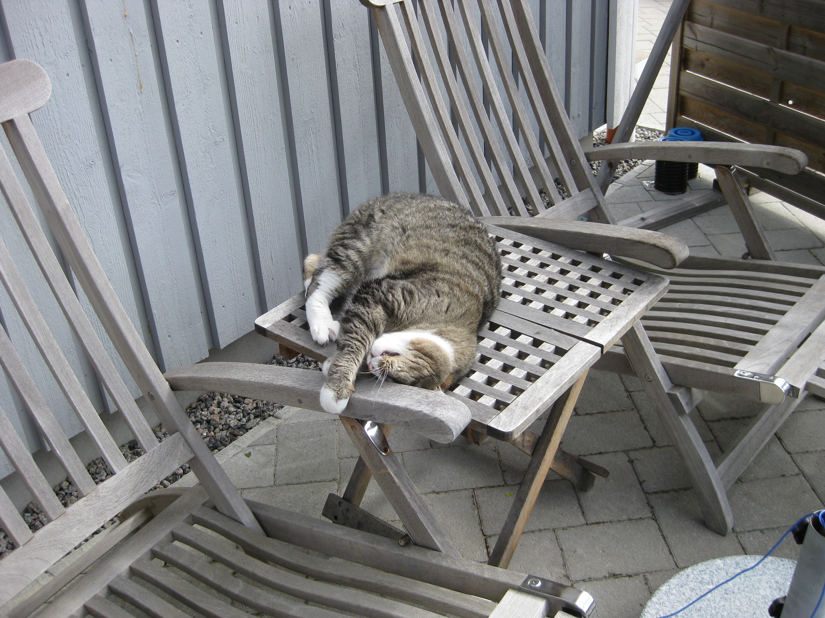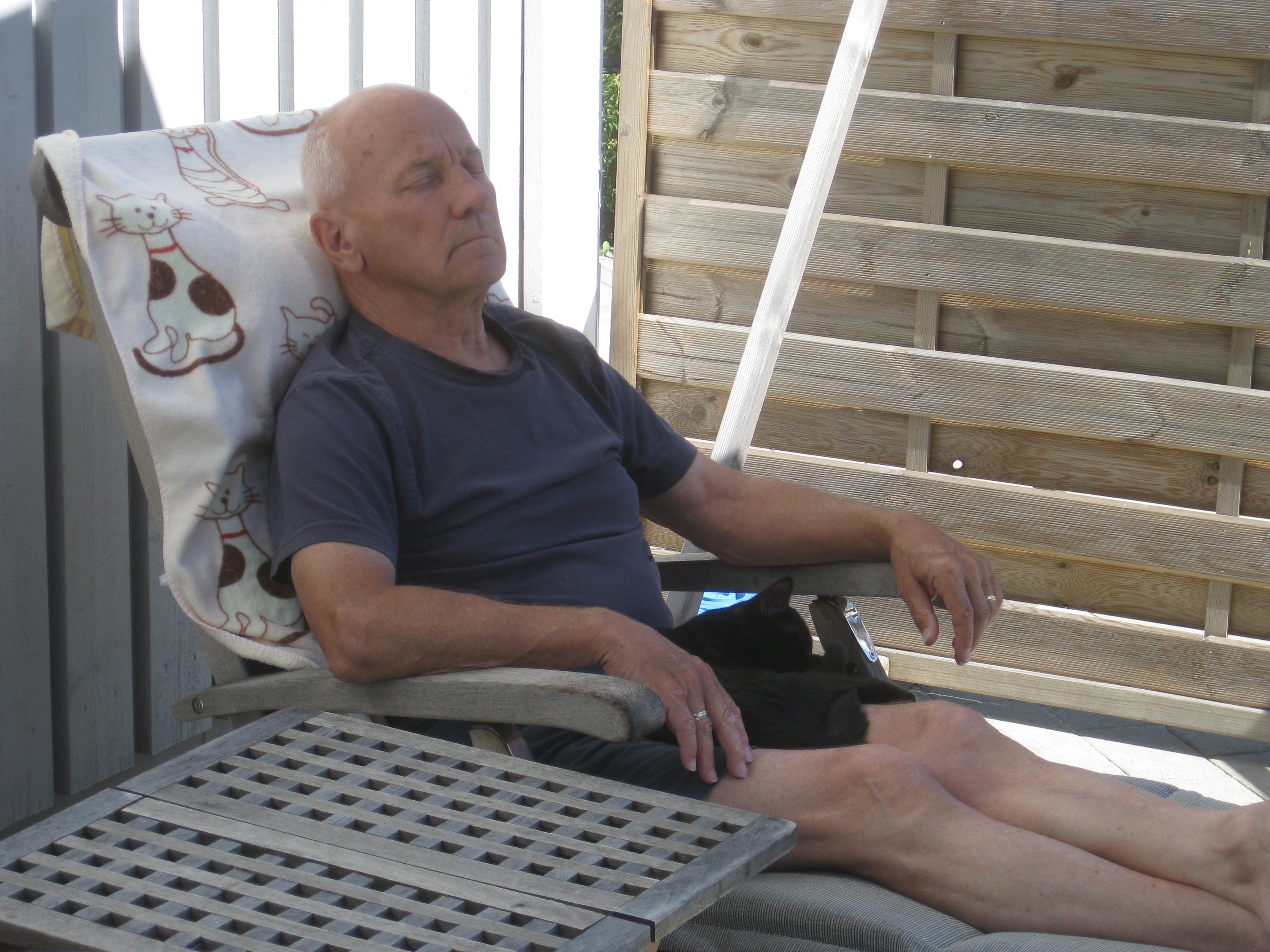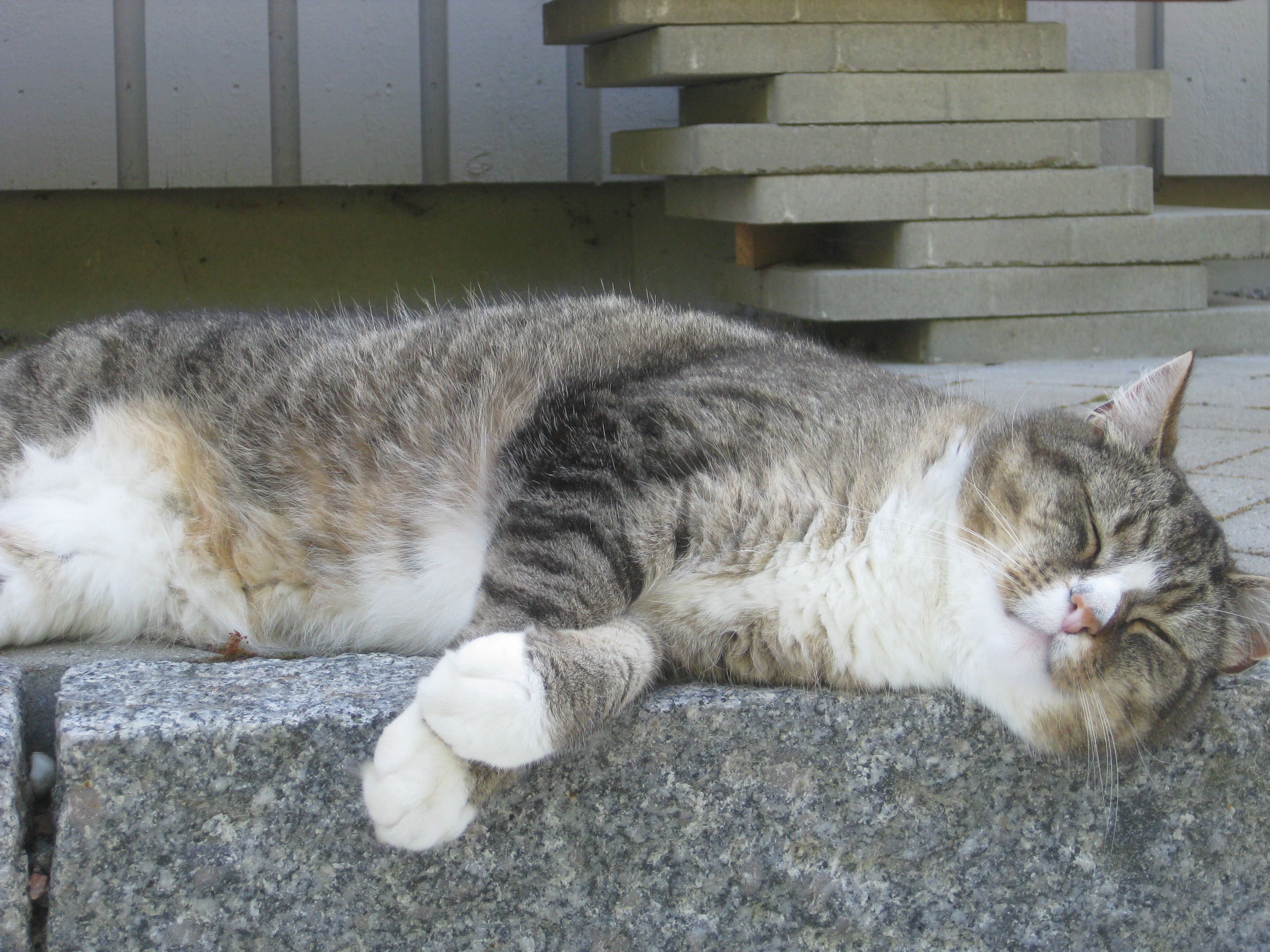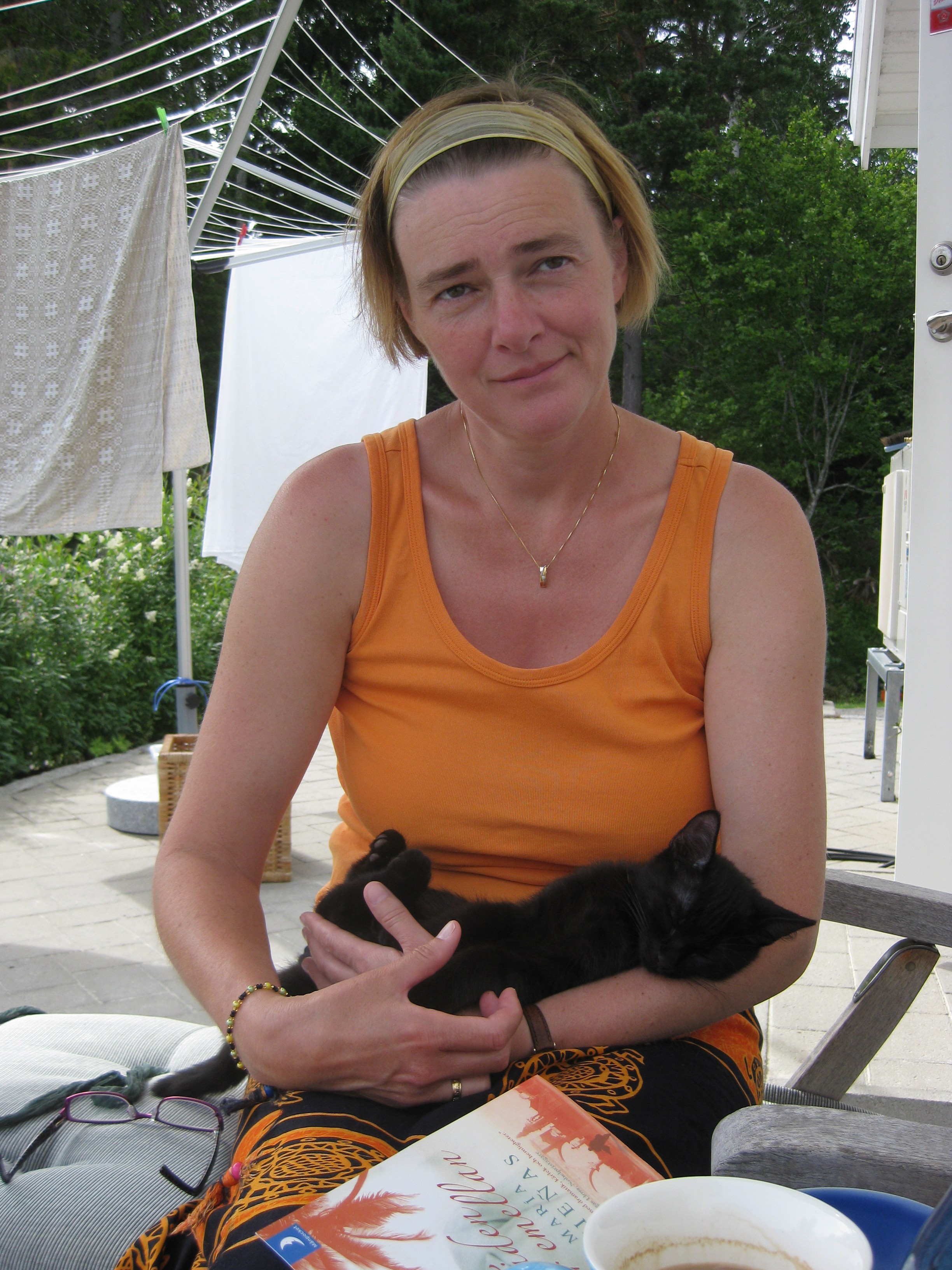 Vi tar itu med att rengöra och tvätta fönster. Katarina får flera komplimanger under dagen av vilket ”slavdrivare” nog är det mest smickrande… 😉 Det är ju flera raster också! Med kattsällskap! Dessutom hinner ju slavdrivaren med att avsluta projektet ”skapa en Stockrosrabatt” – det var vär inte illa?