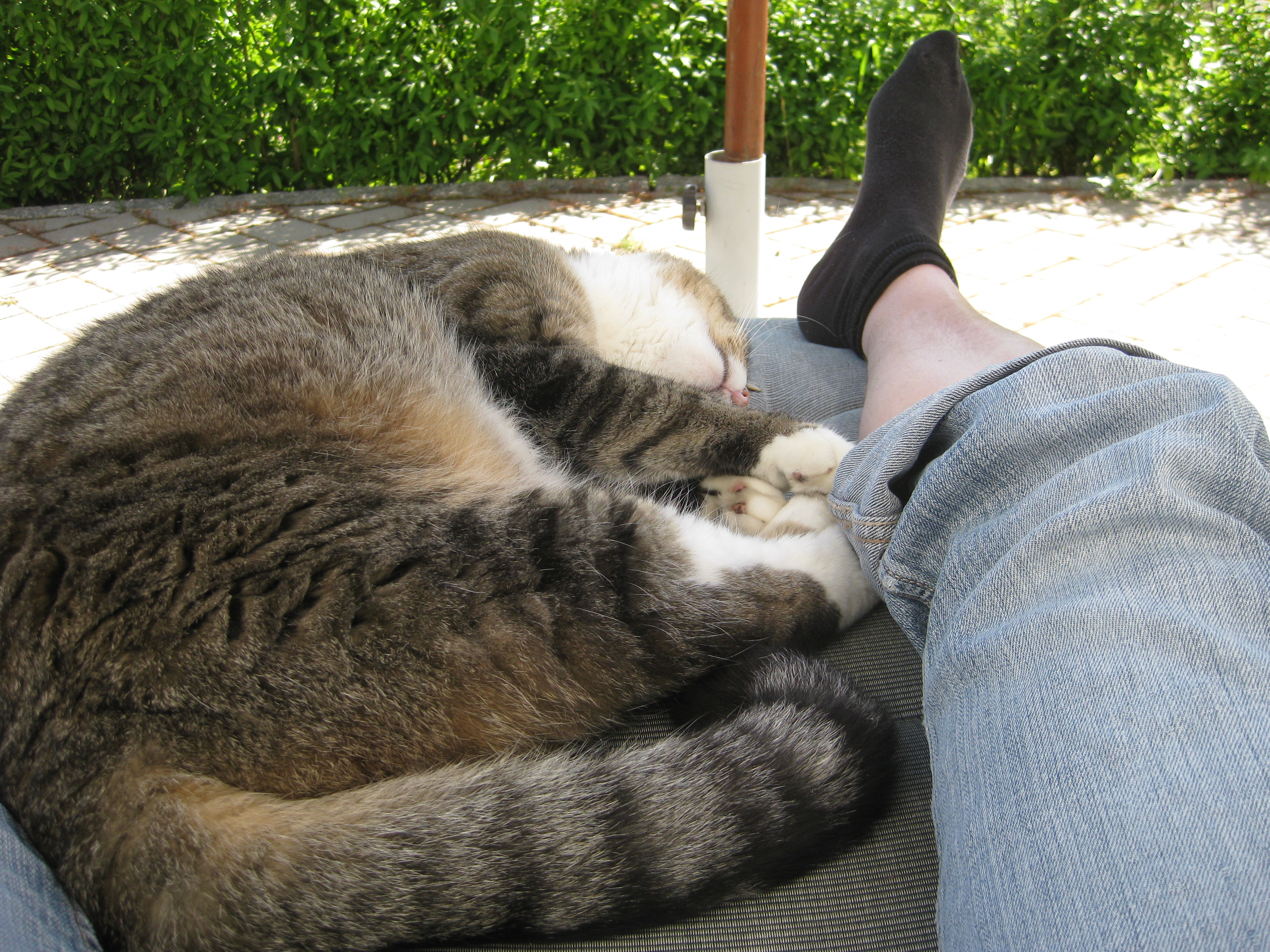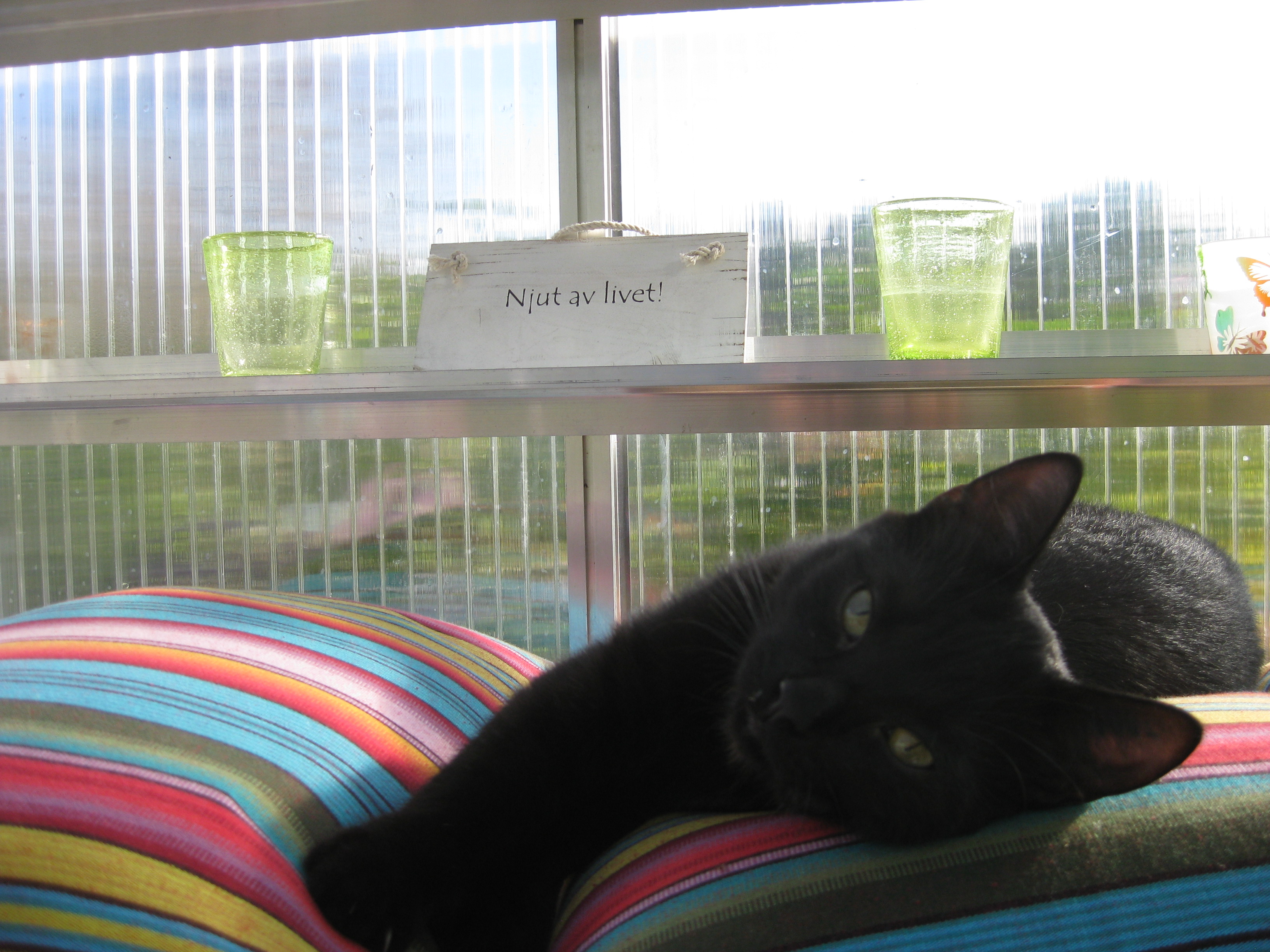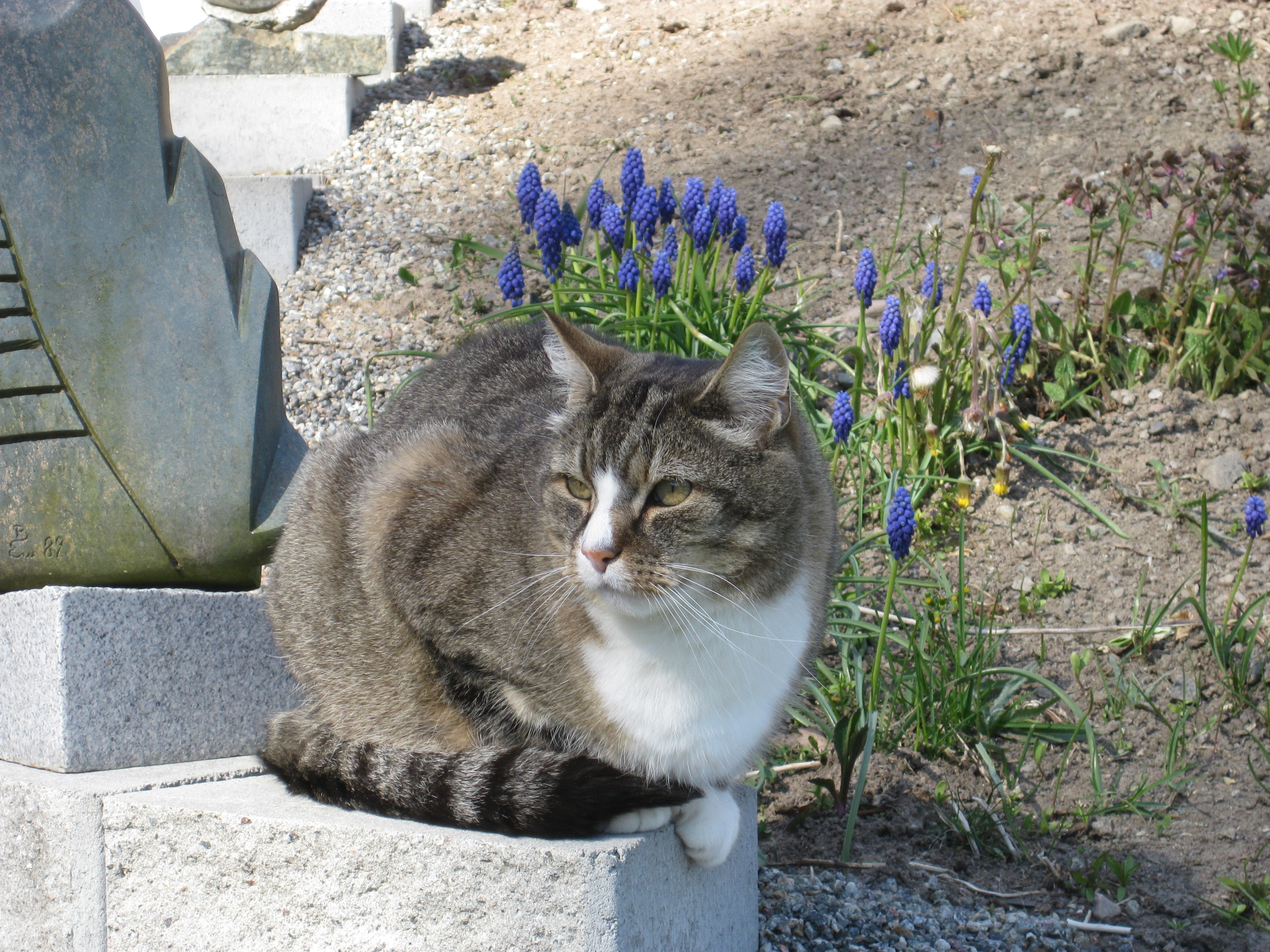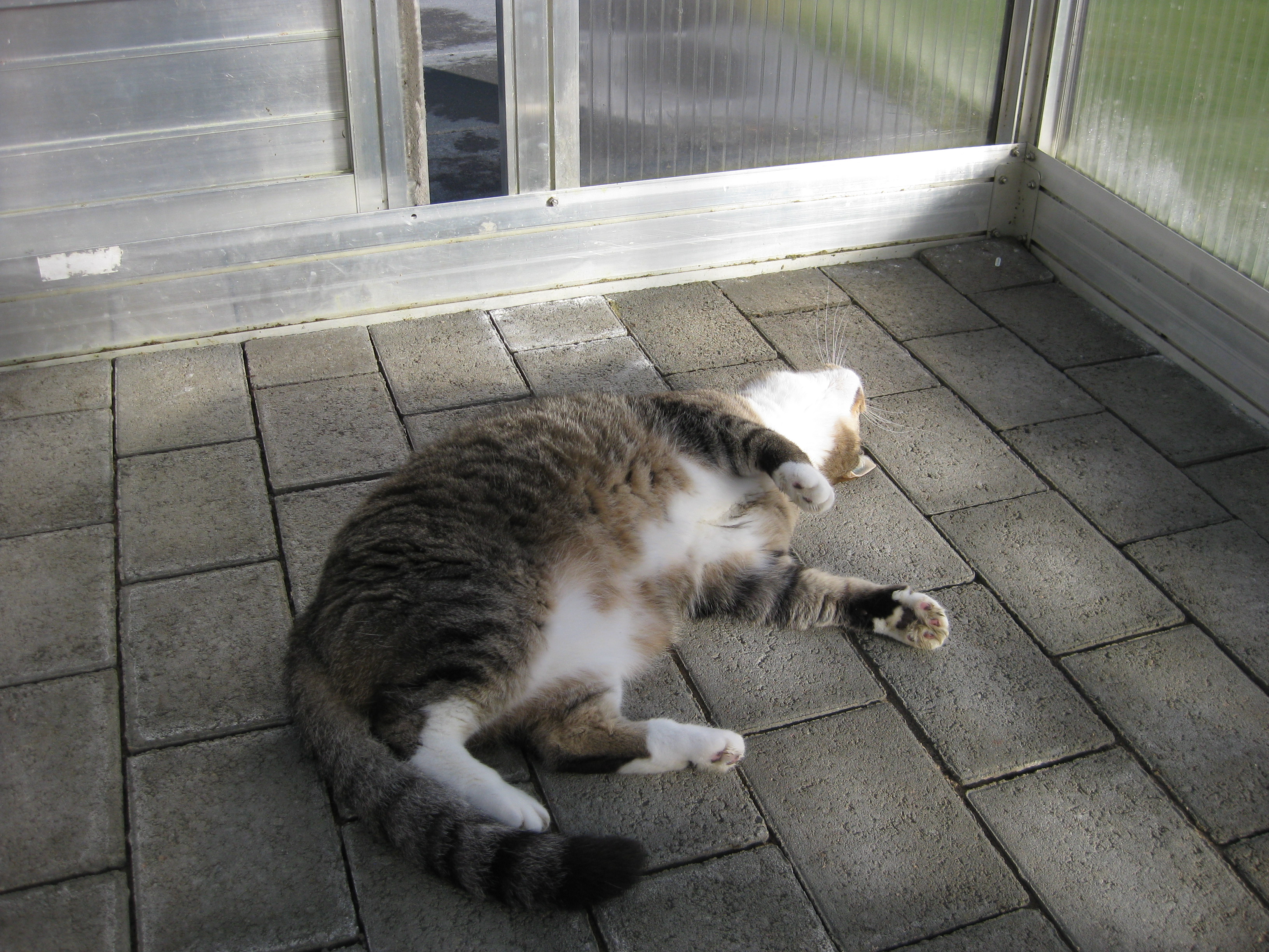 Vi tar itu med att rengöra och tvätta fönster. Katarina får flera komplimanger under dagen av vilket ”slavdrivare” nog är det mest smickrande… 😉 Det är ju flera raster också! Med kattsällskap! Dessutom hinner ju slavdrivaren med att avsluta projektet ”skapa en Stockrosrabatt” – det var vär inte illa?