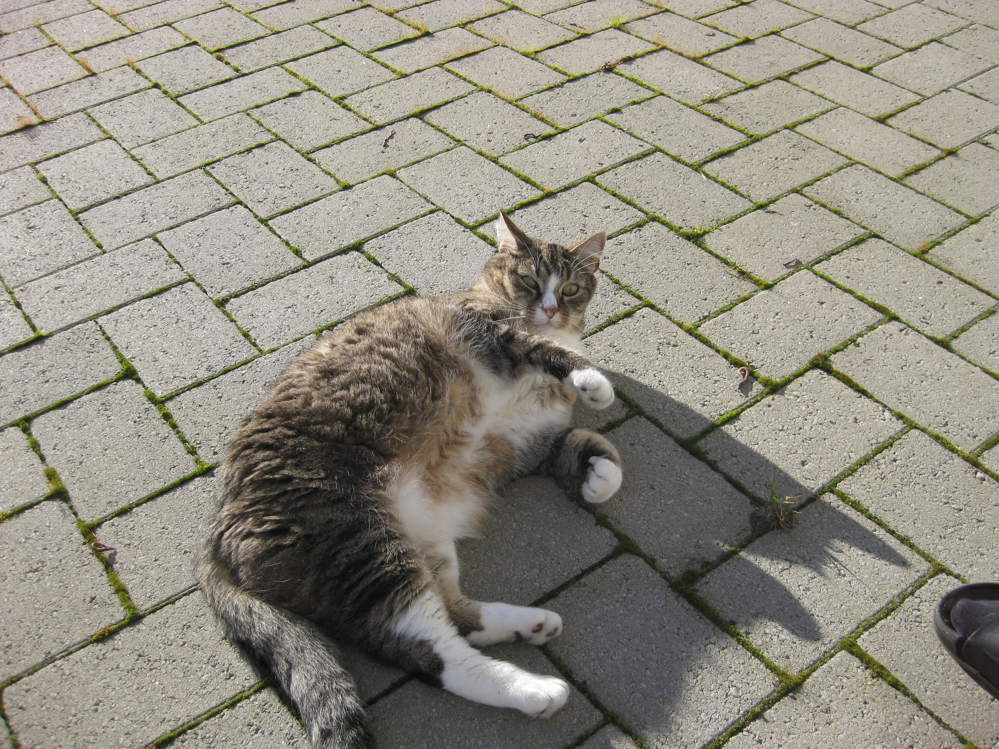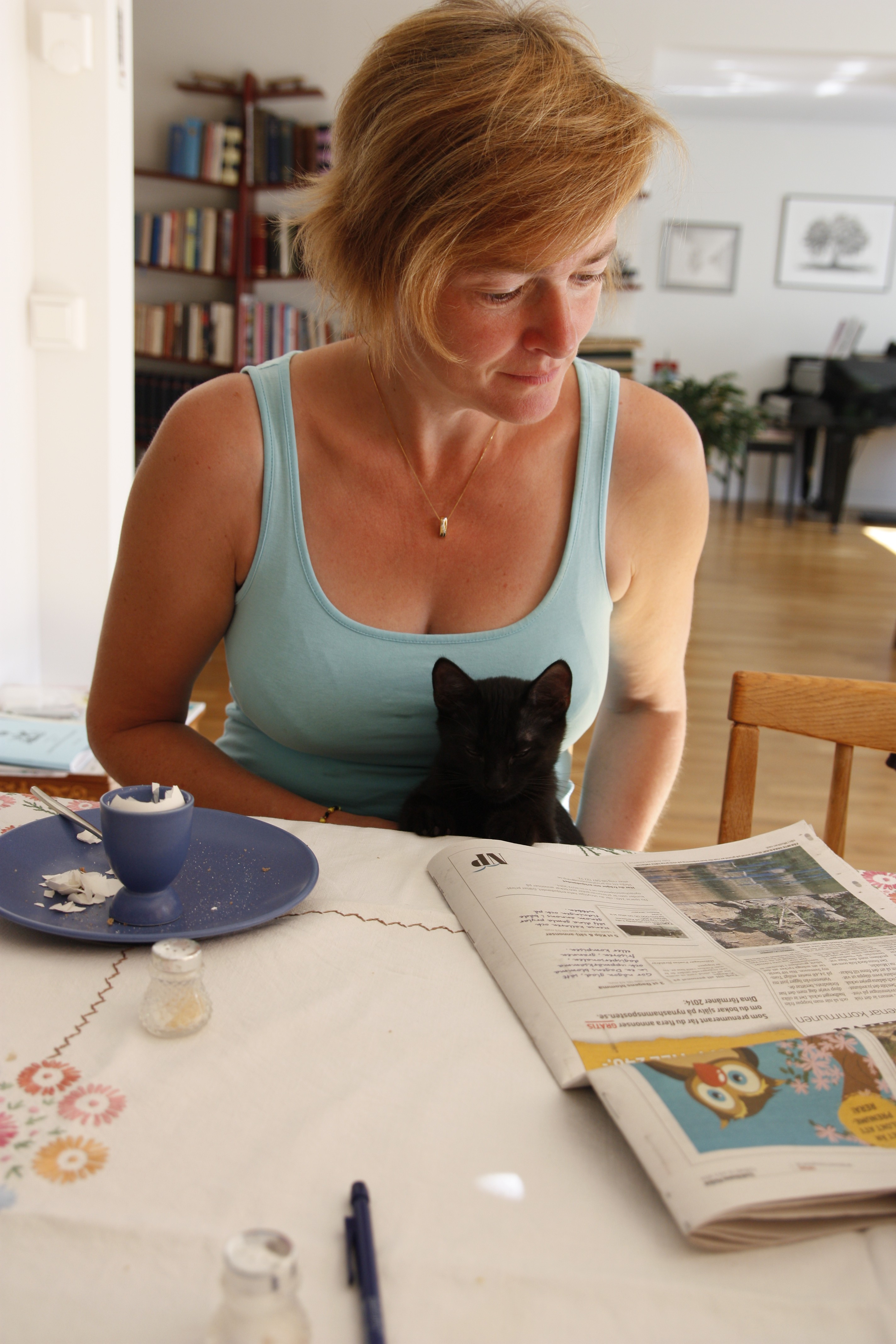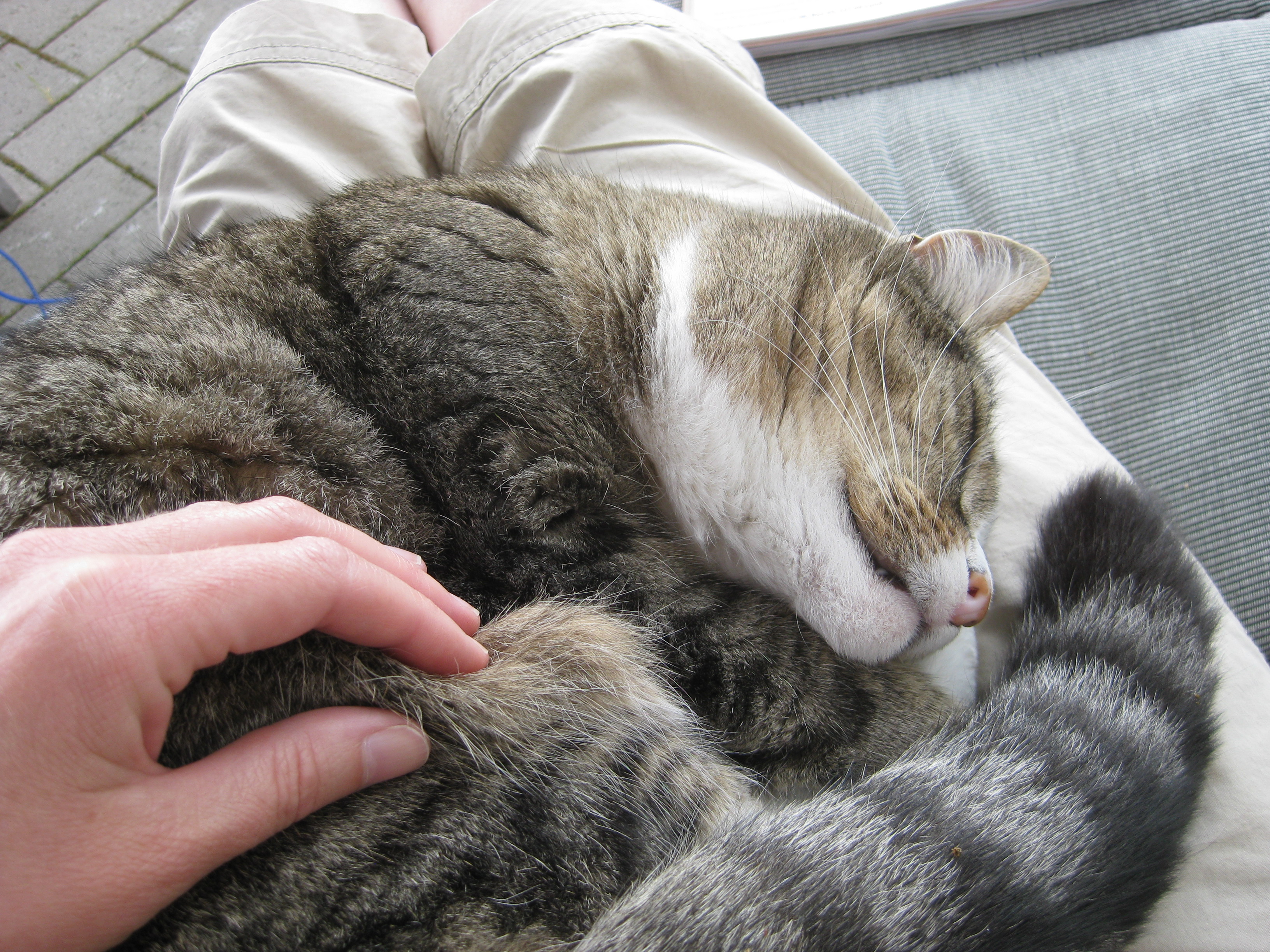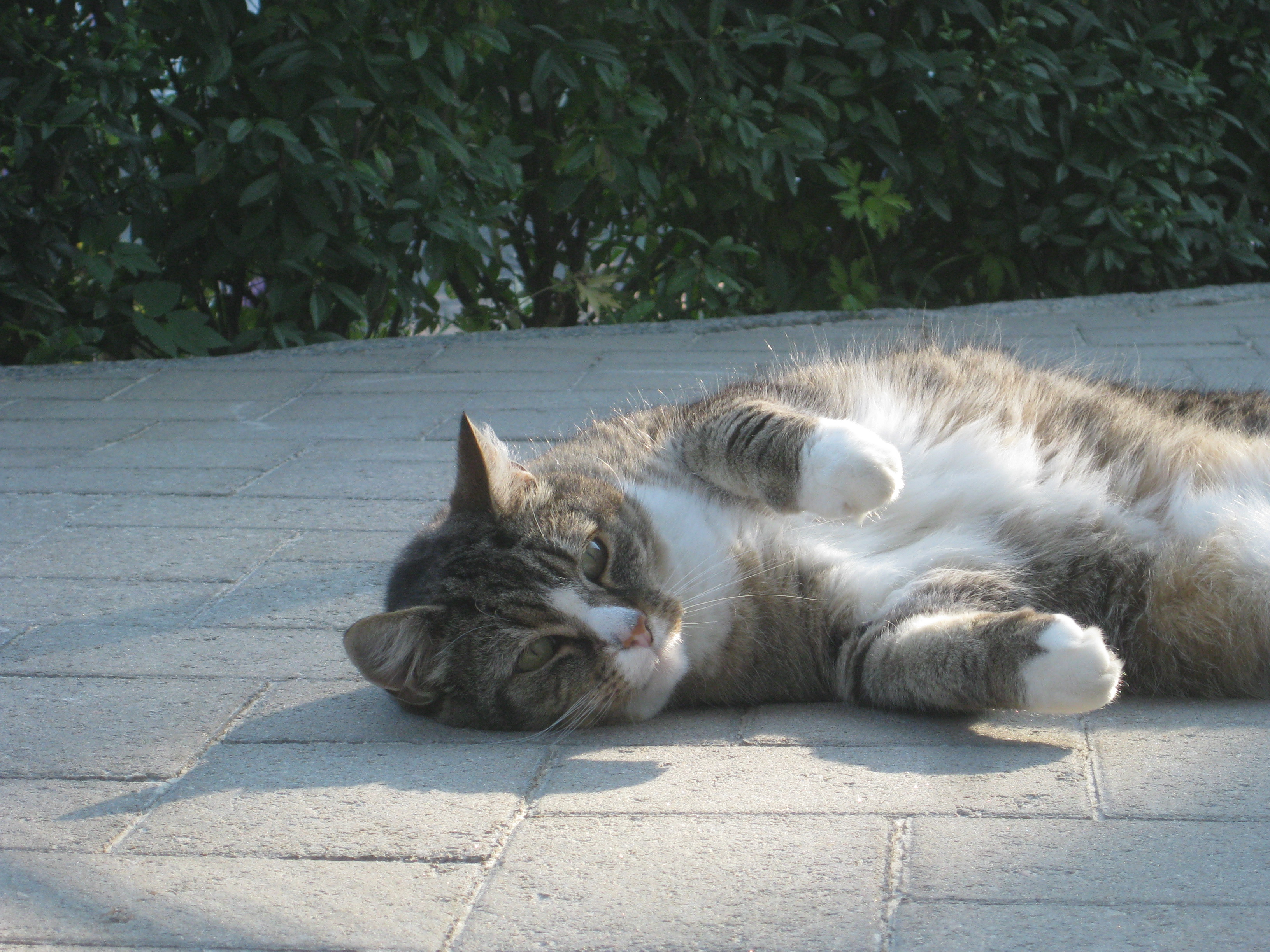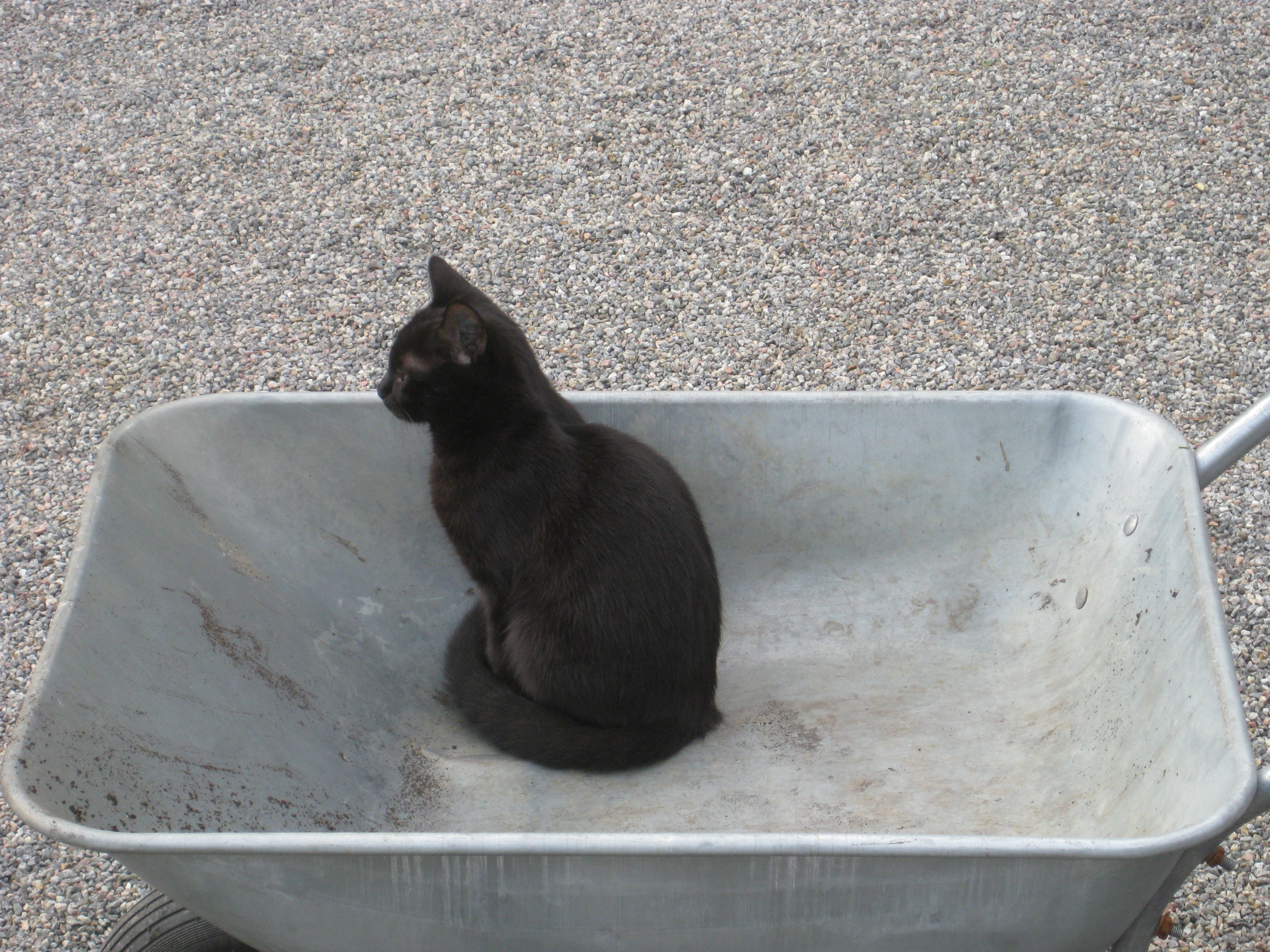 Vi tar itu med att rengöra och tvätta fönster. Katarina får flera komplimanger under dagen av vilket ”slavdrivare” nog är det mest smickrande… 😉 Det är ju flera raster också! Med kattsällskap! Dessutom hinner ju slavdrivaren med att avsluta projektet ”skapa en Stockrosrabatt” – det var vär inte illa?