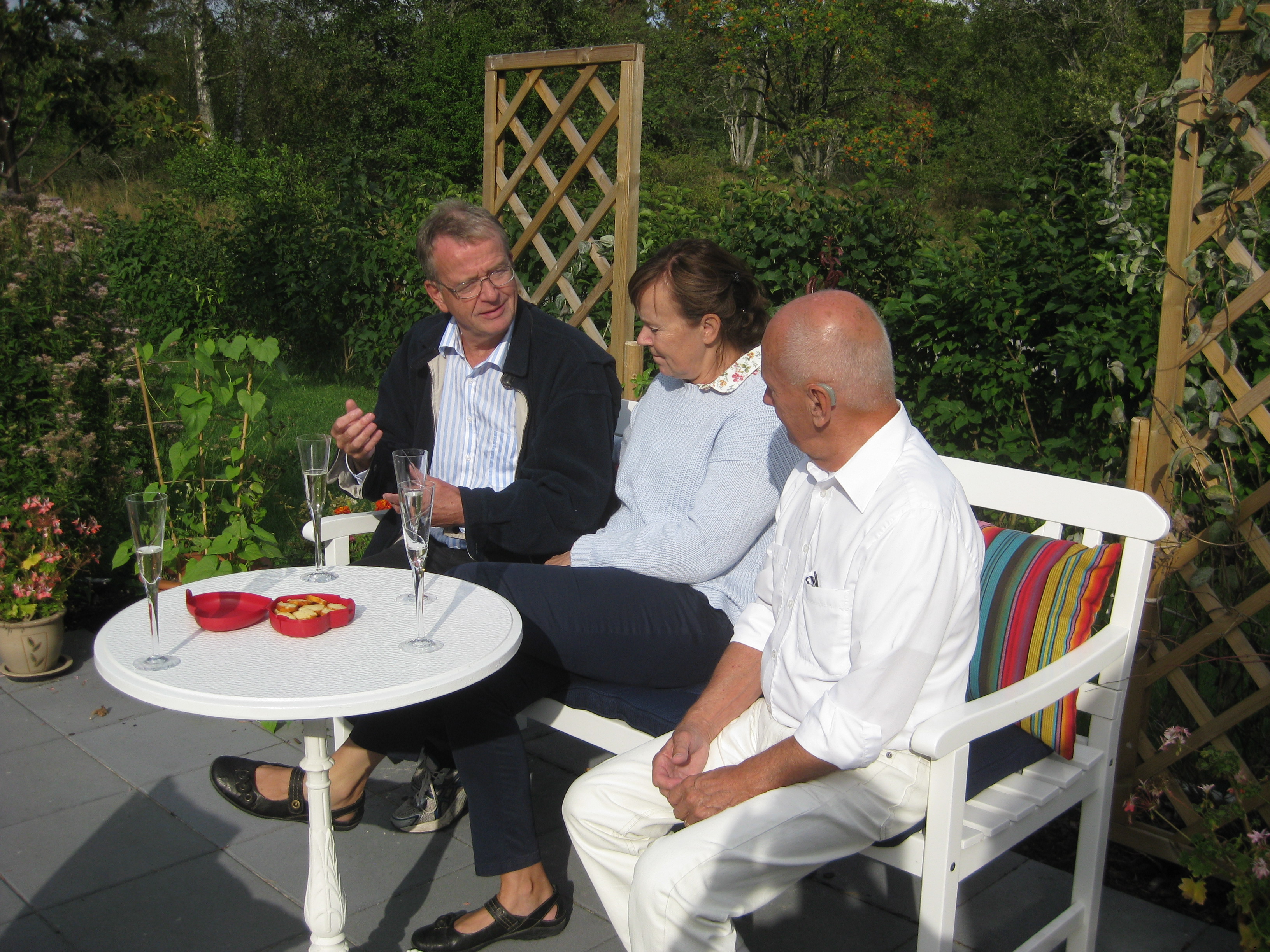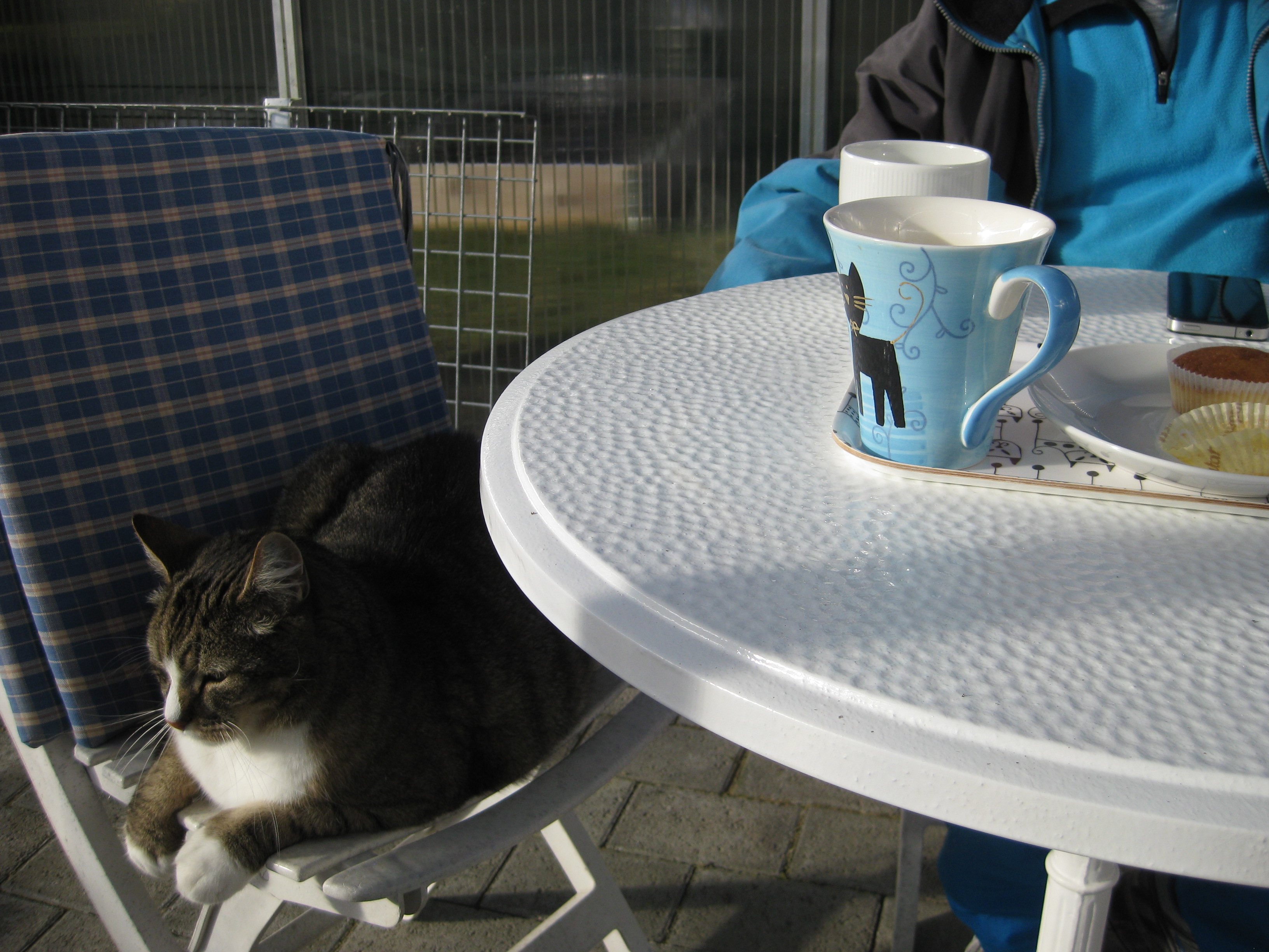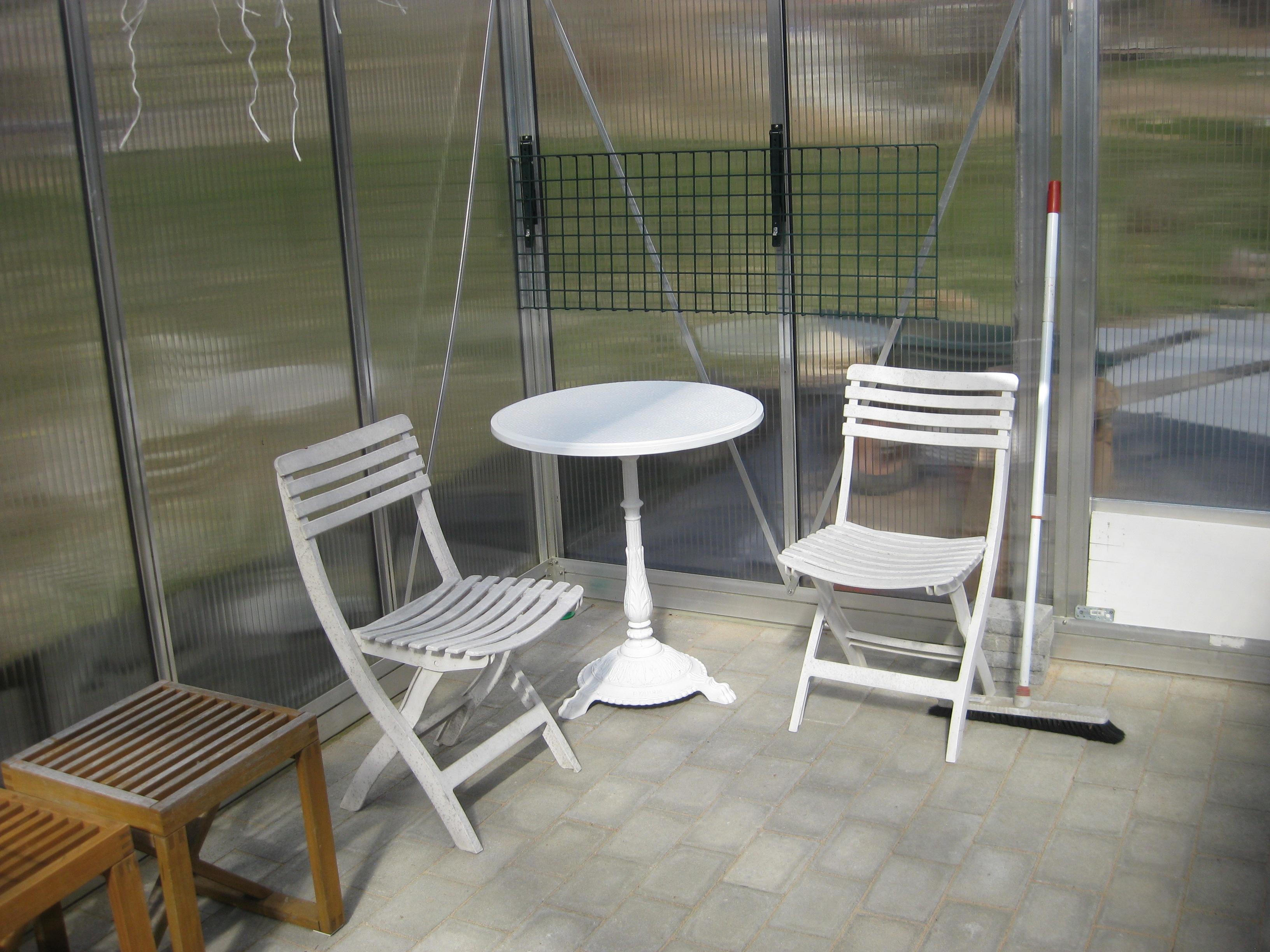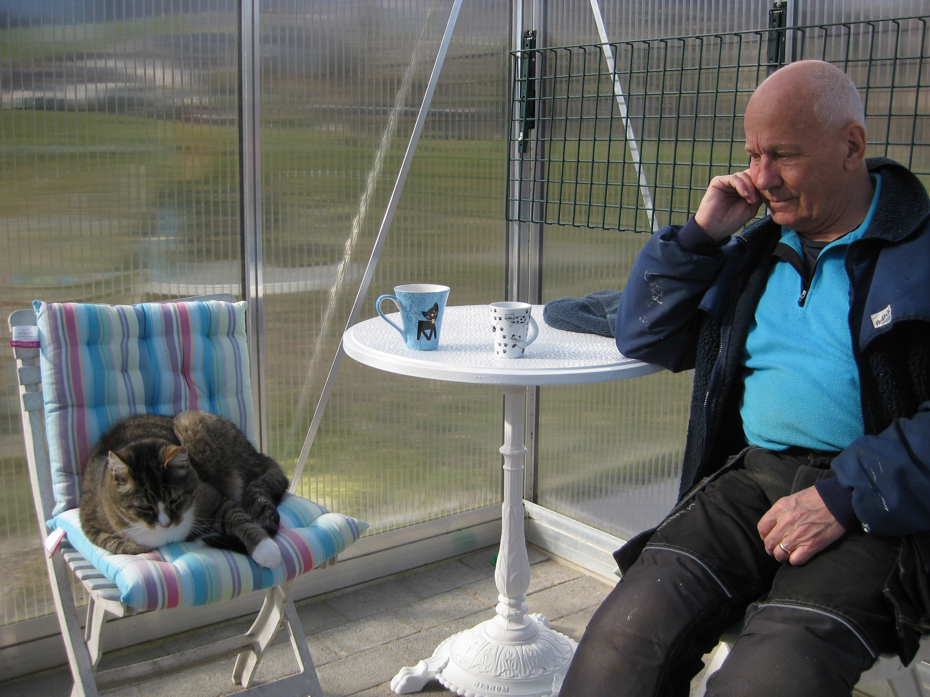 Förmiddagskaffe ute i halvsol och ganska skaplig temperatur. Sedan ägnas dagen åt att skura och tvätta i växthuset, samt ställa in statyer och trädgårdssoffa för vintern. Vi borde göra en ordentlig rengöring även av utsidan som delvis är rätt grön av alger.. Men det verkar mer vara ett vår-projekt, eller hur? 🙂