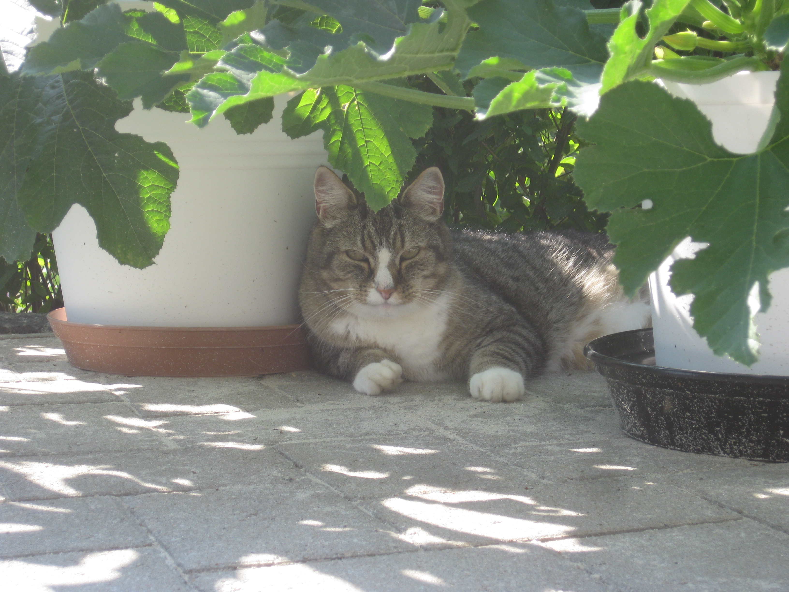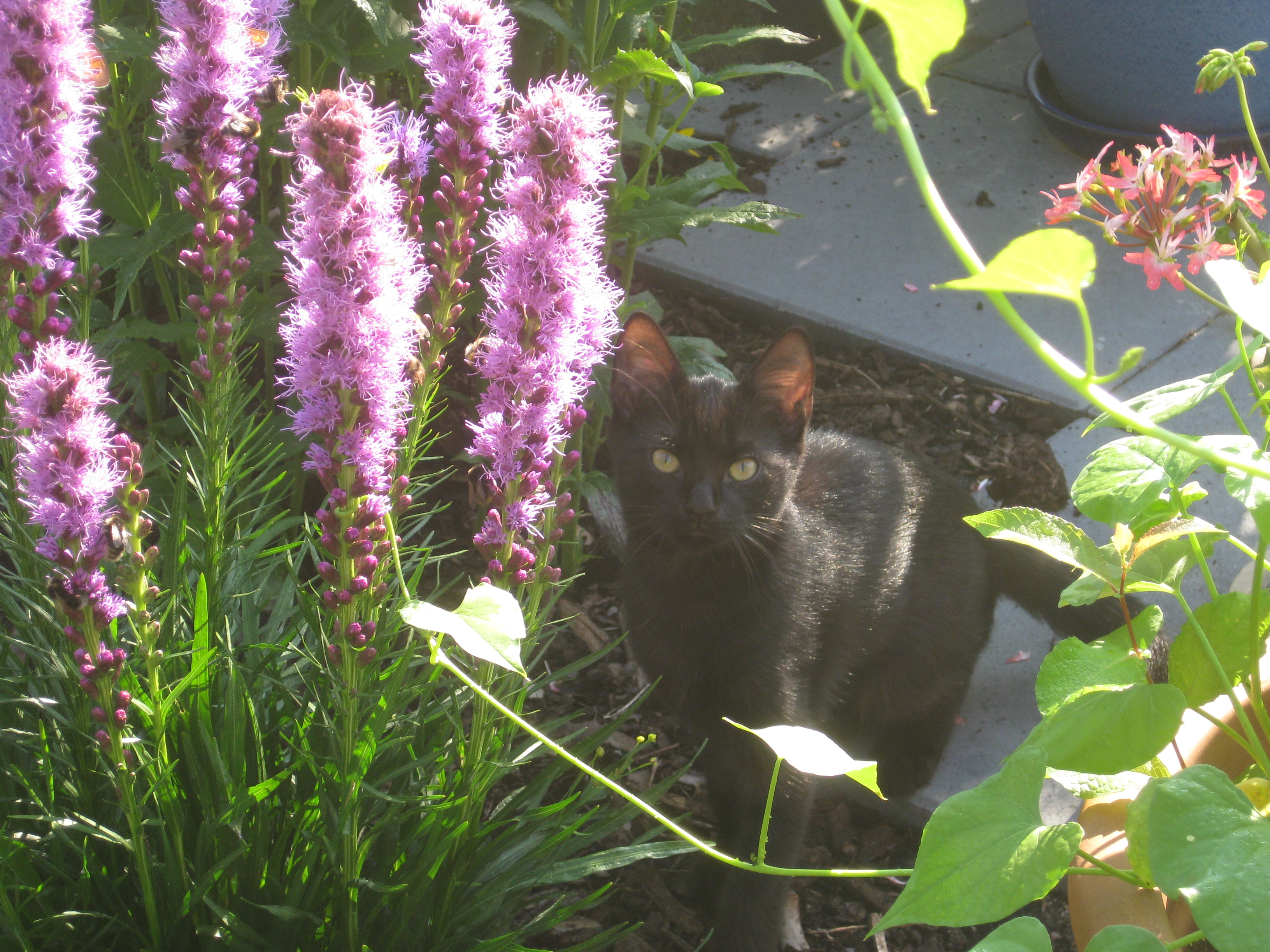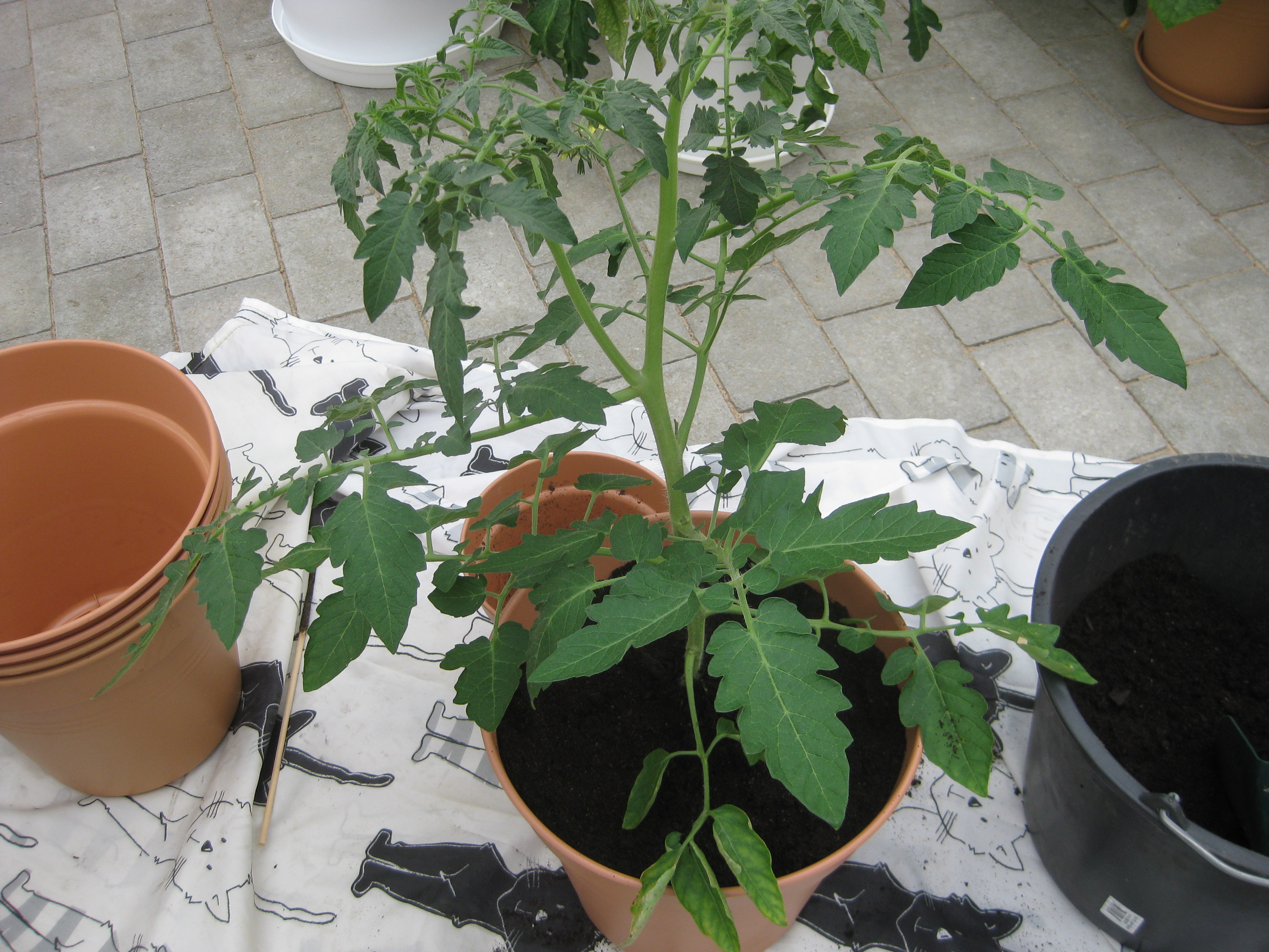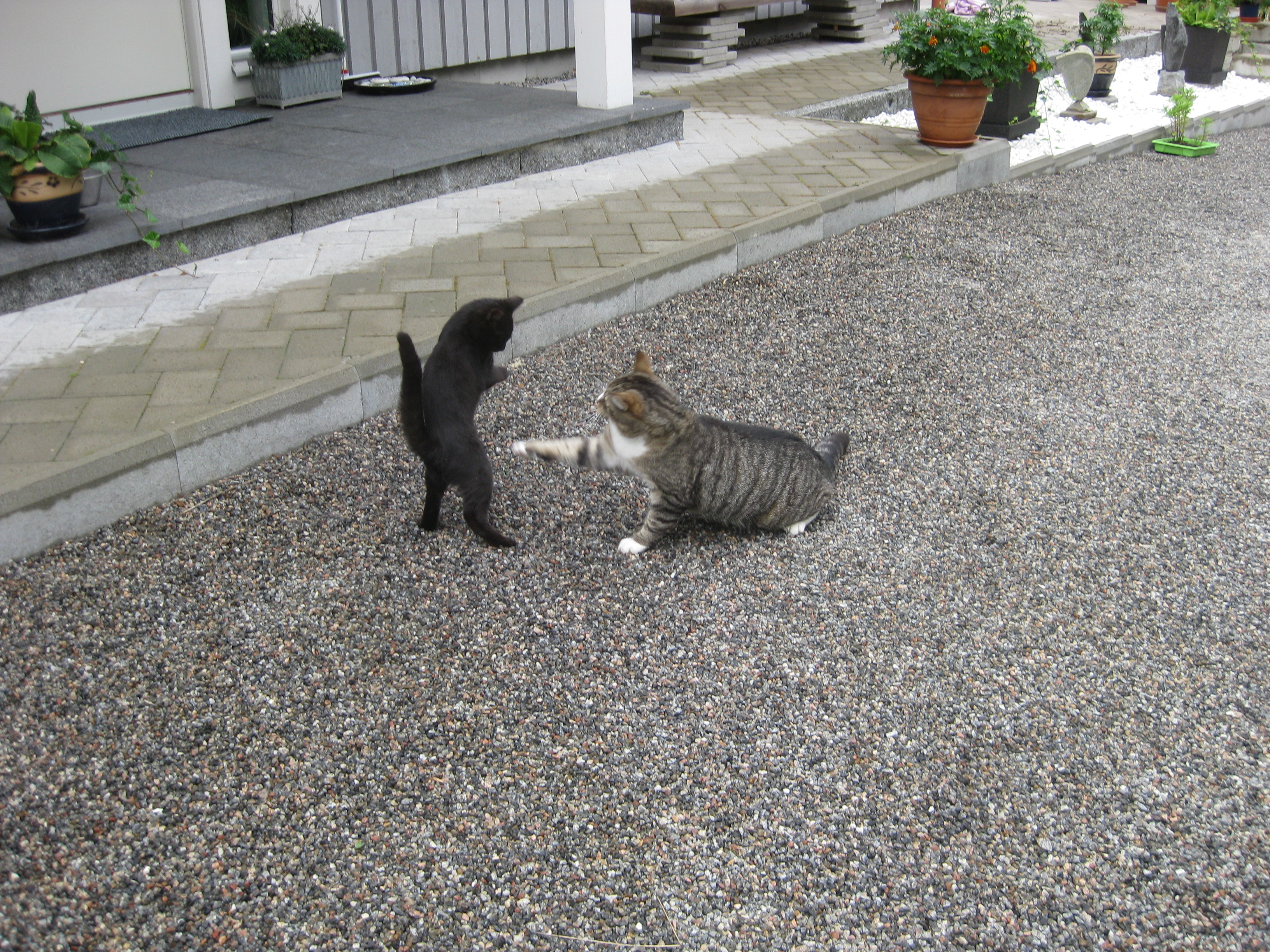 Dags för lite höstblommor i krukorna. Och dags att ta in pelargoner. Planterar en jordärtskocka, och studerar kattbeteenden.