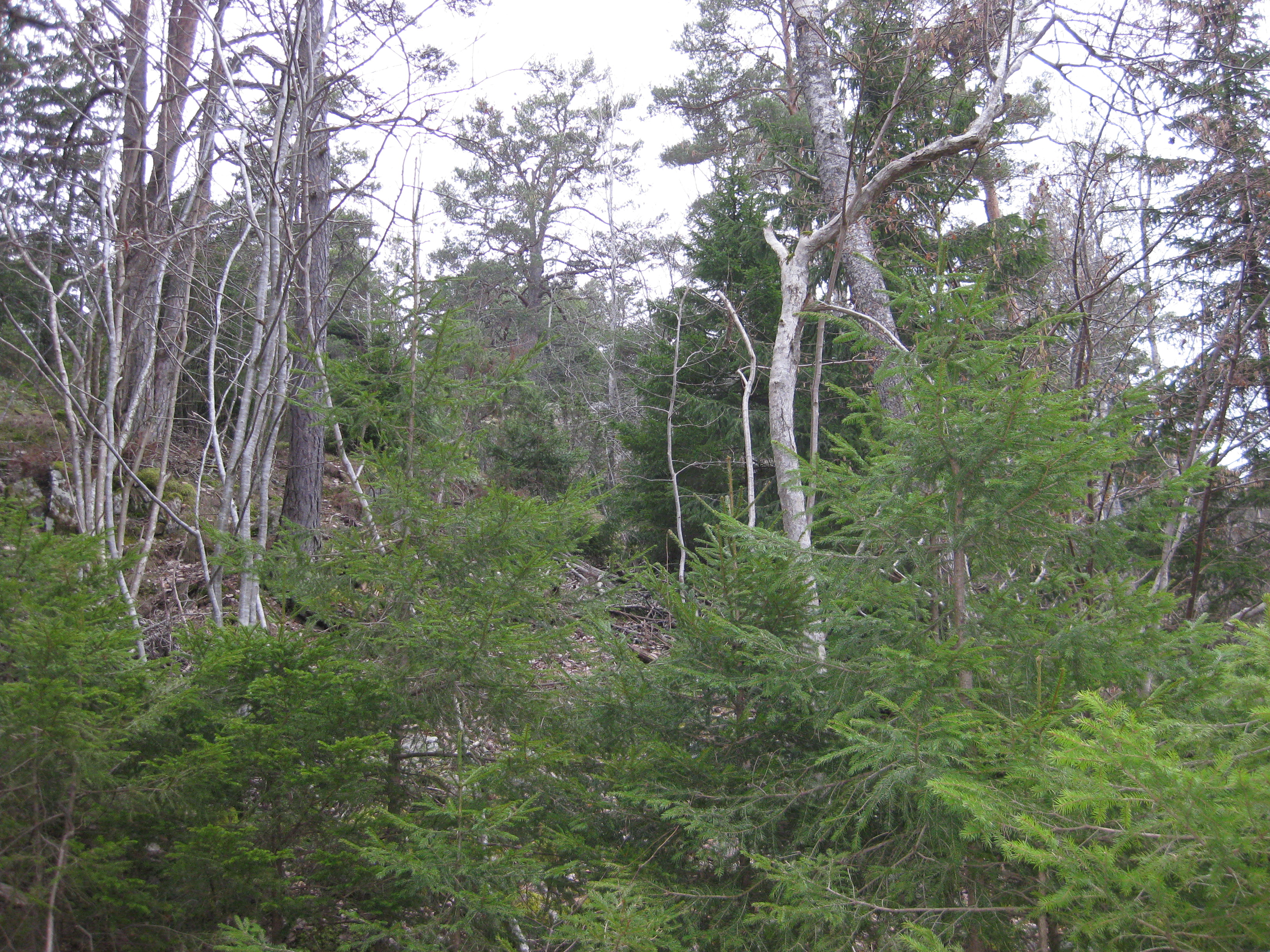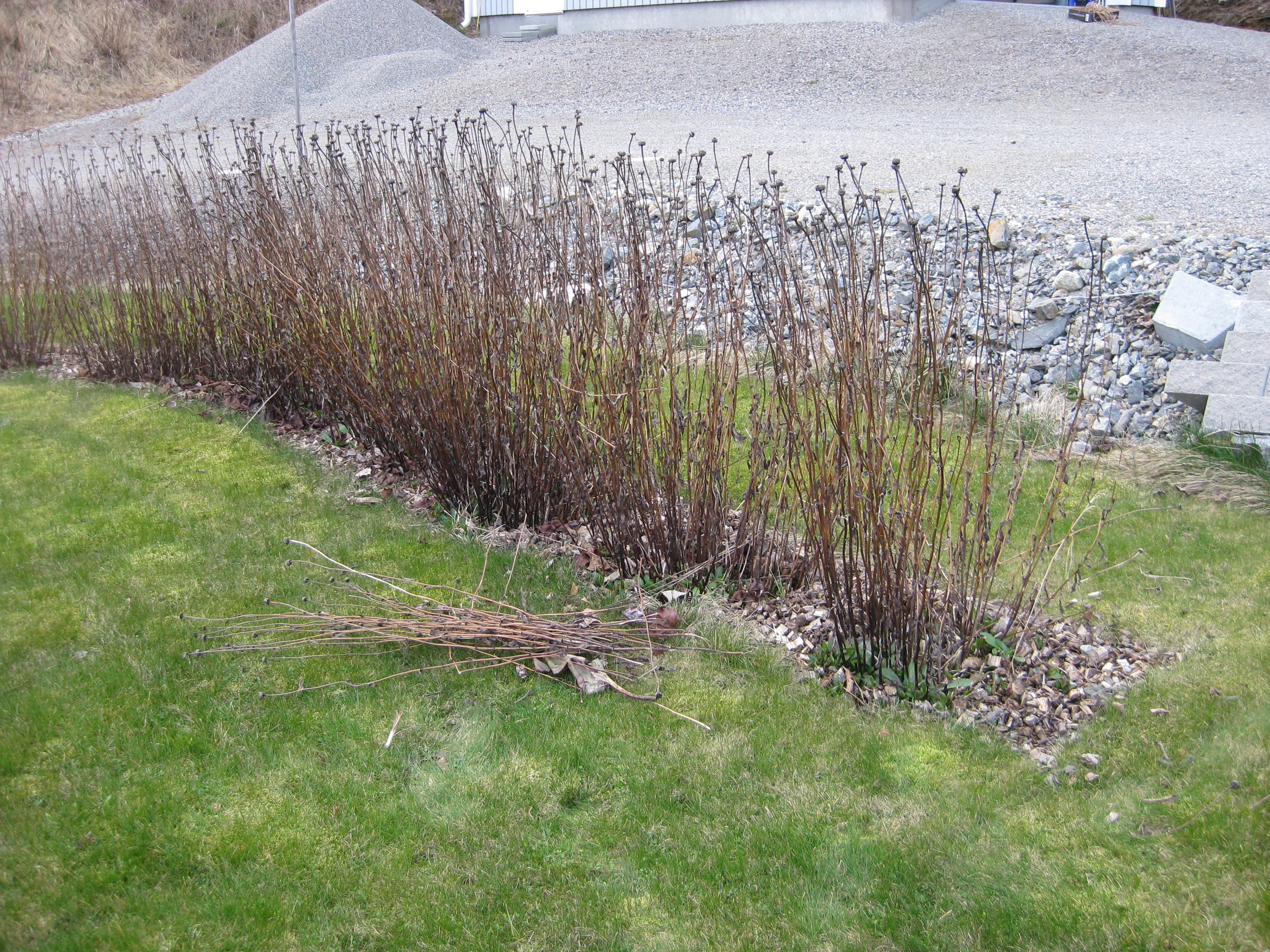 En kort promenad i trädgården för att ”kolla läget”. Ska vi fälla träd i år eller inte? Vilka projekt ska vi satsa på i år? Rådjur eller älg har knaprat på syrénhäcken … Det finns saker att fundera på, men vi blir inte långvariga ute i kylan och det gråmulna.