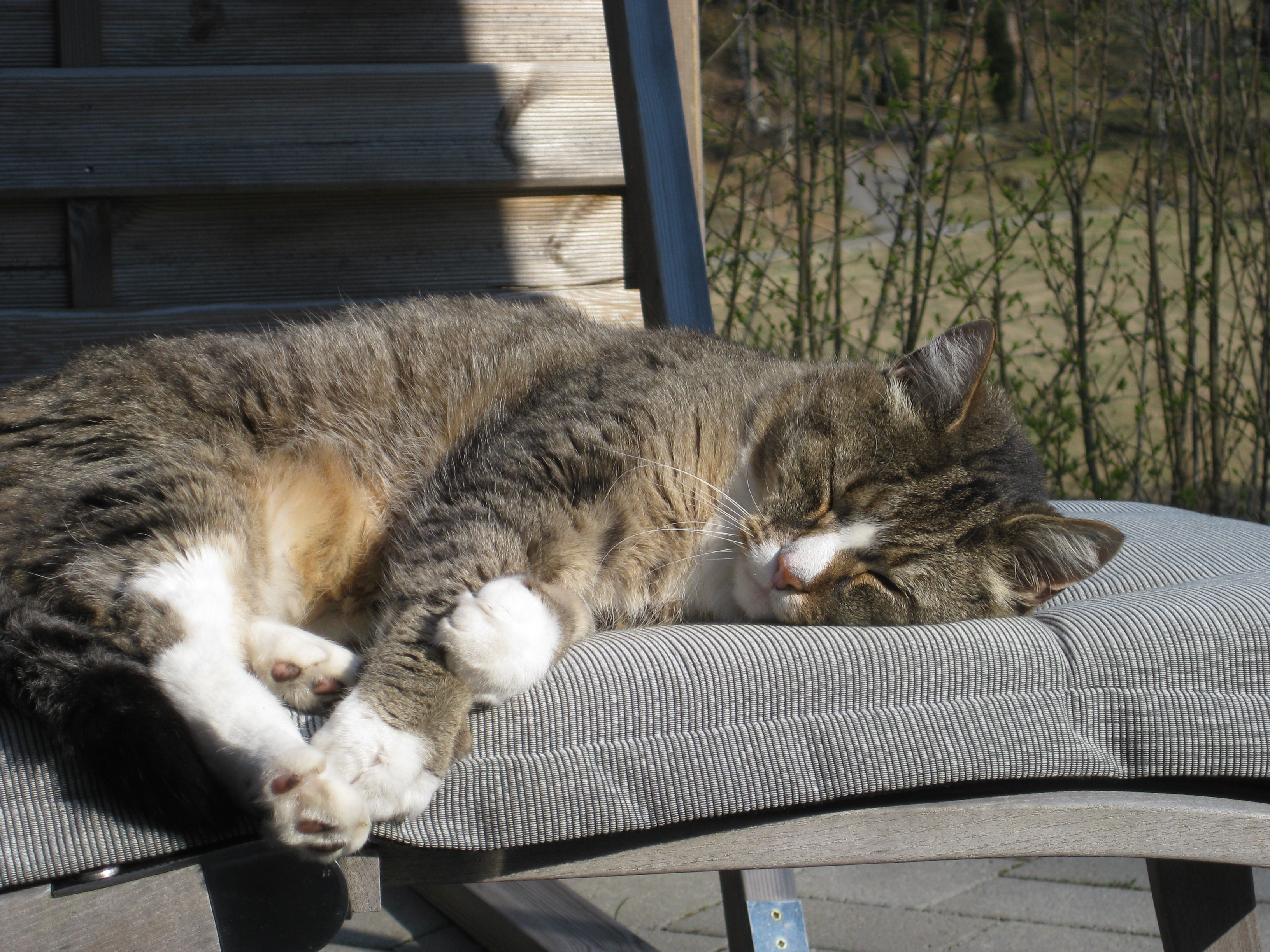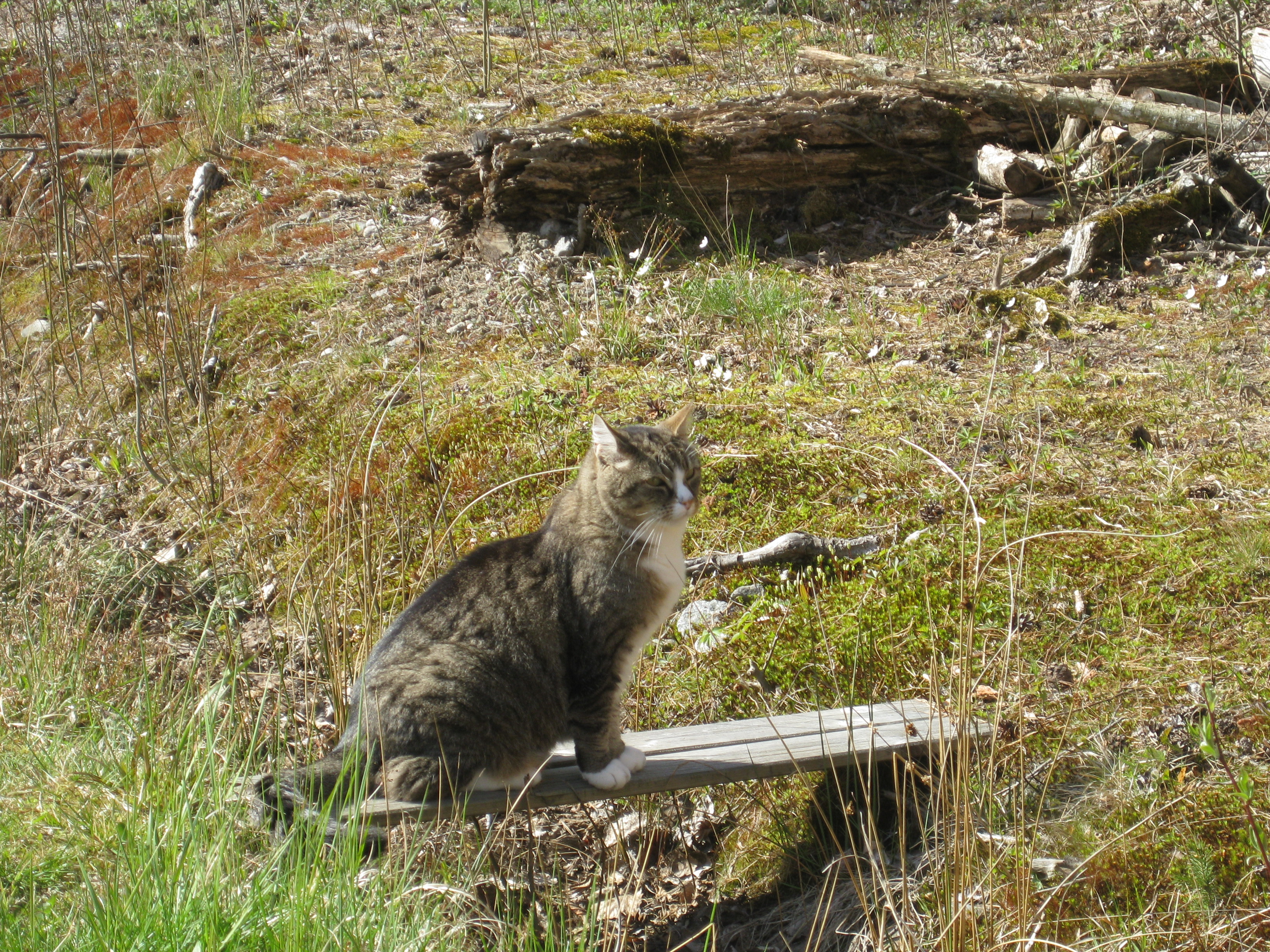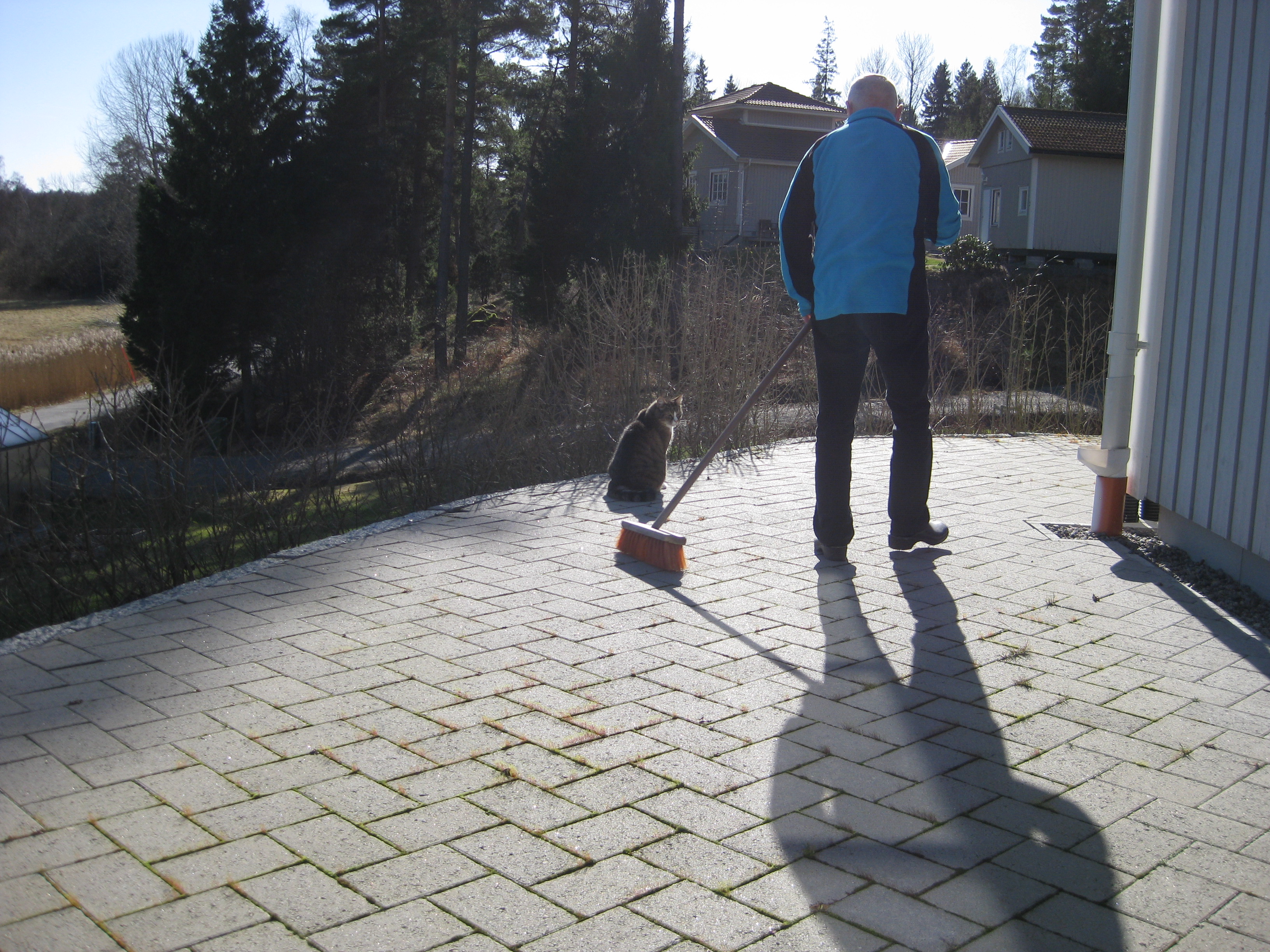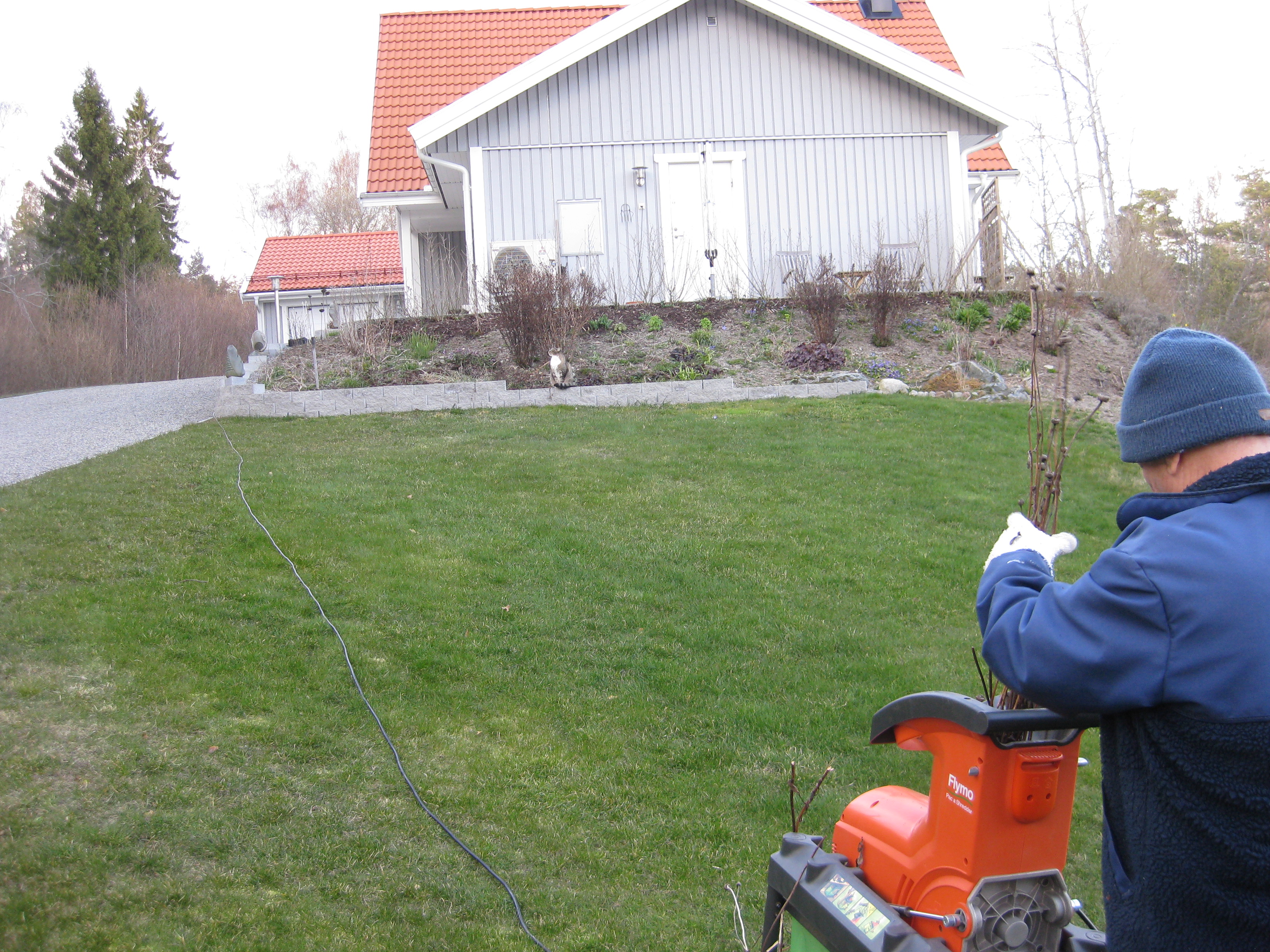 Lite vårtecken i trädgården! Håkan plockar in ved i garaget, och matte & Matteus vilar. 🙂