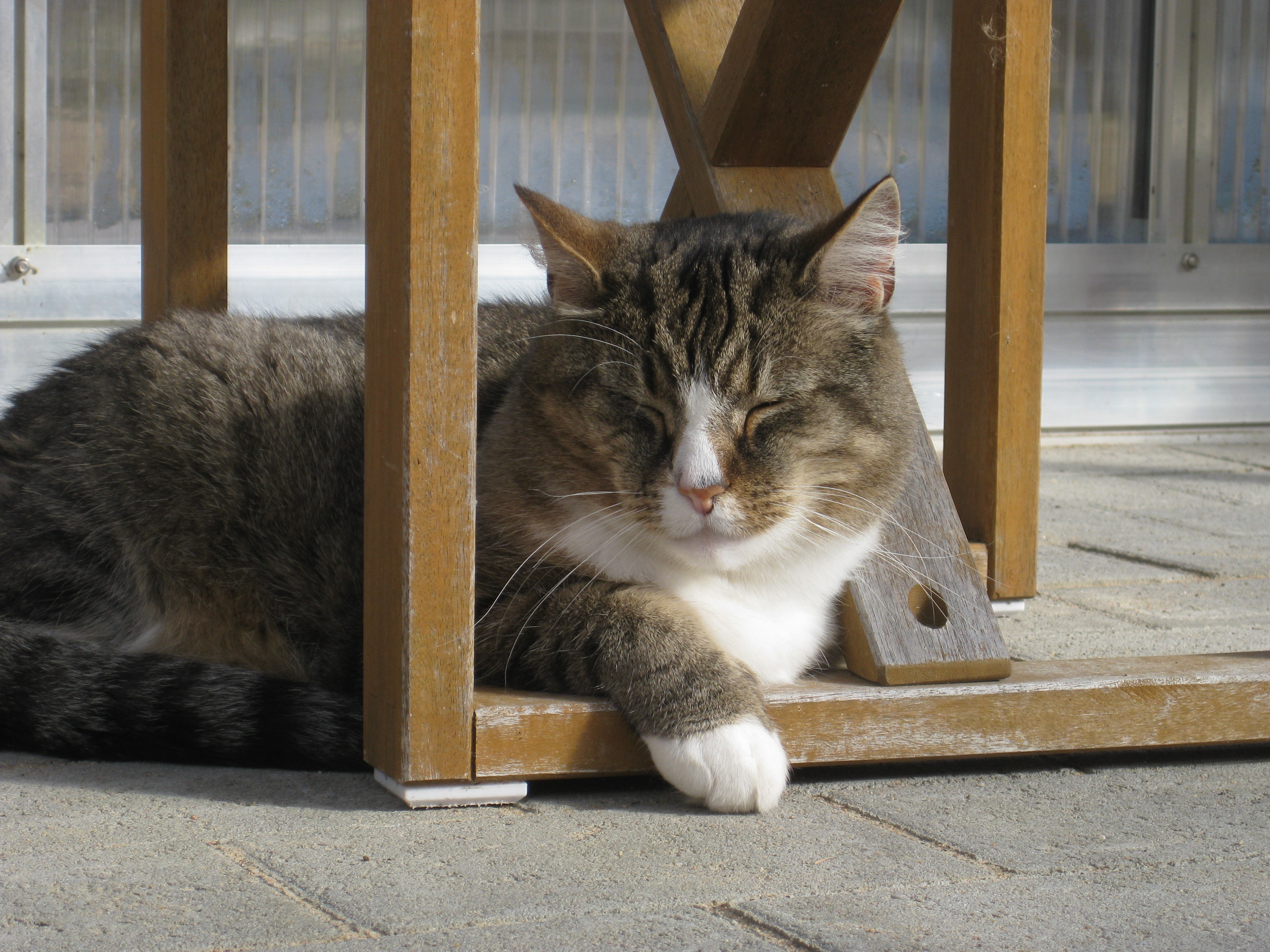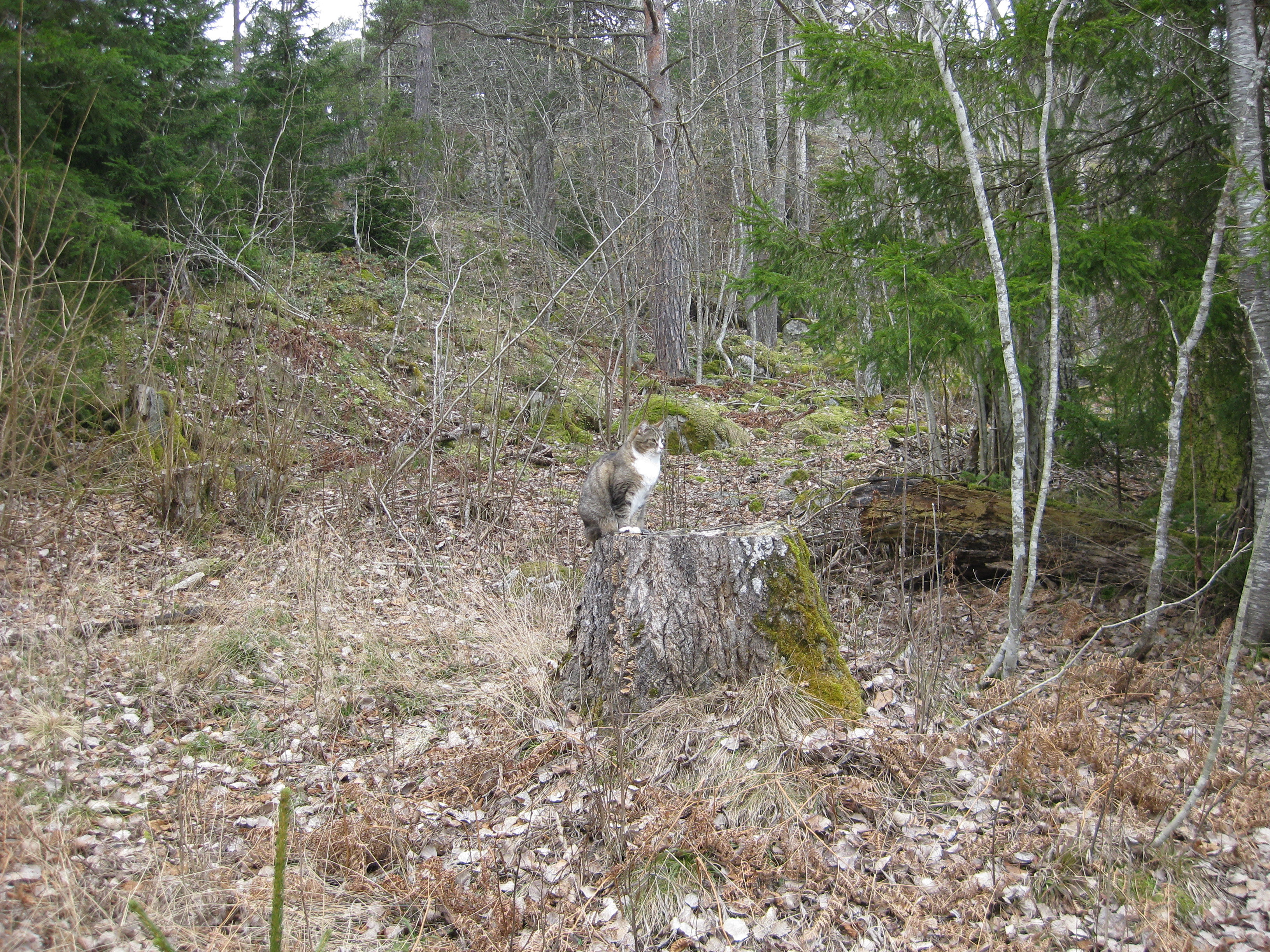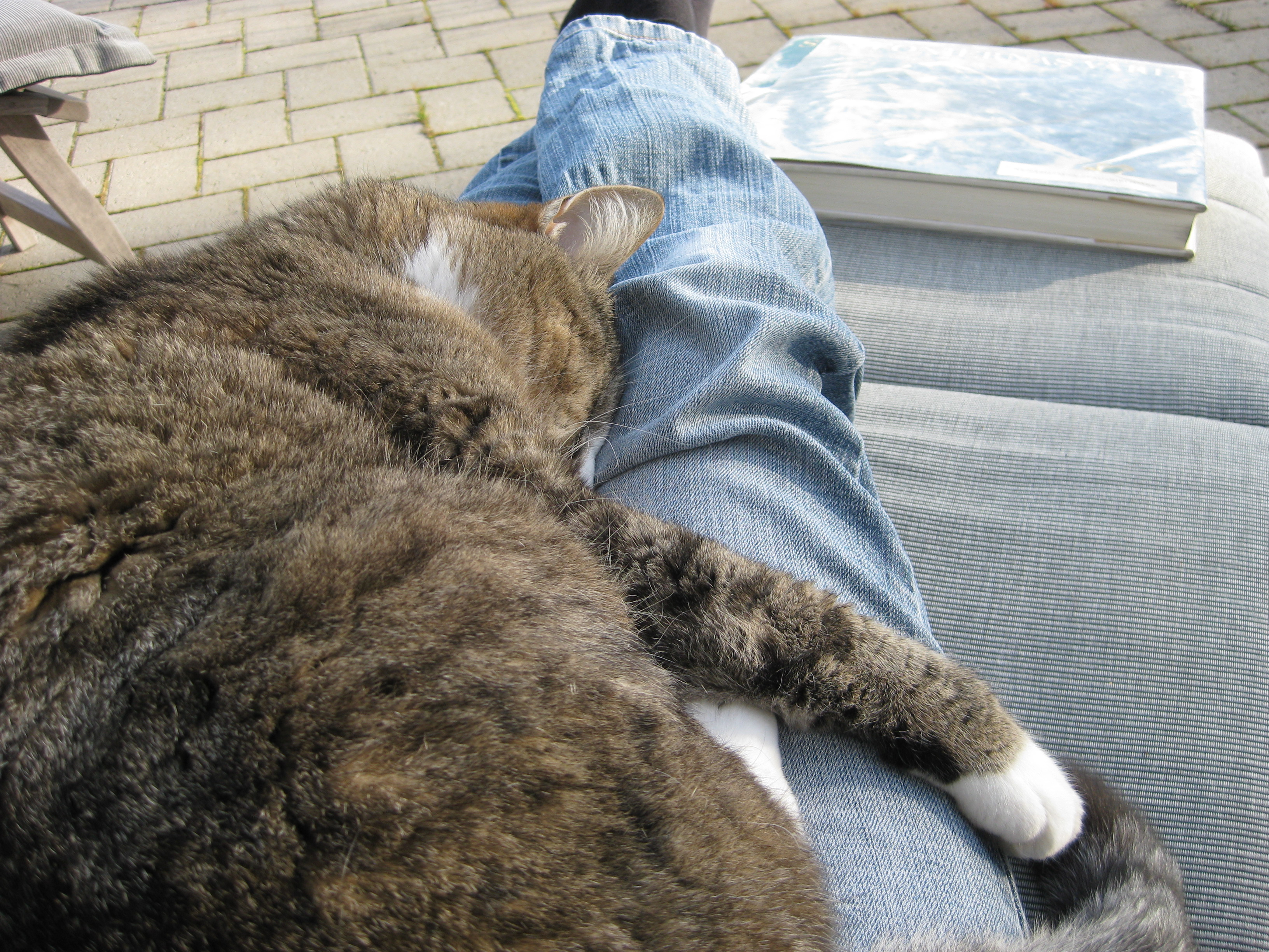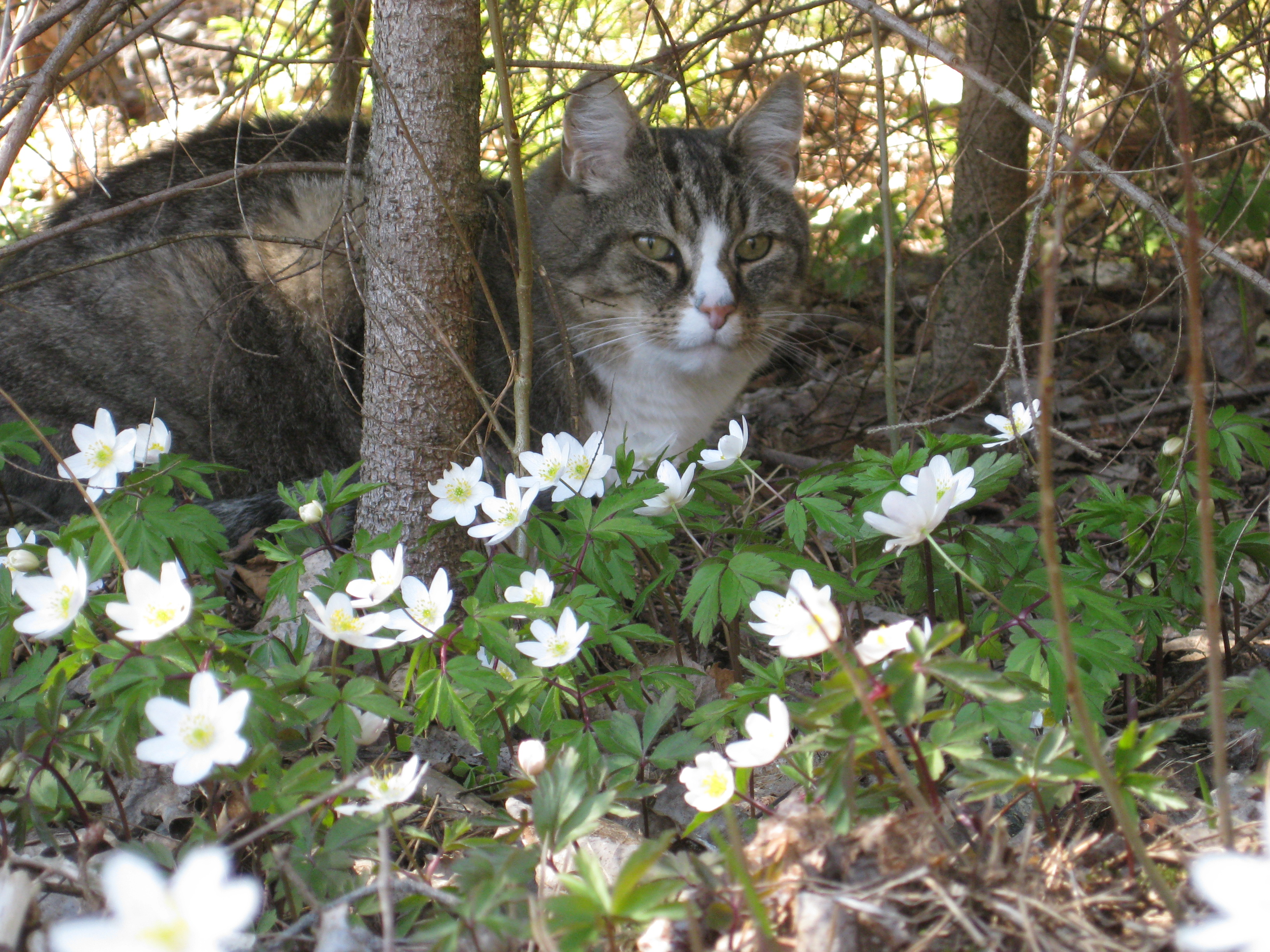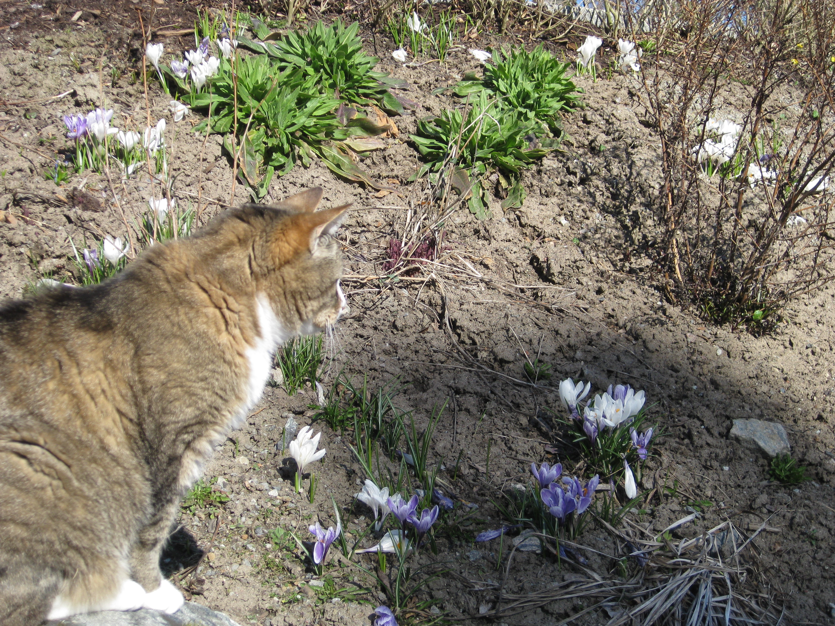 Lite vårtecken i trädgården! Håkan plockar in ved i garaget, och matte & Matteus vilar. 🙂