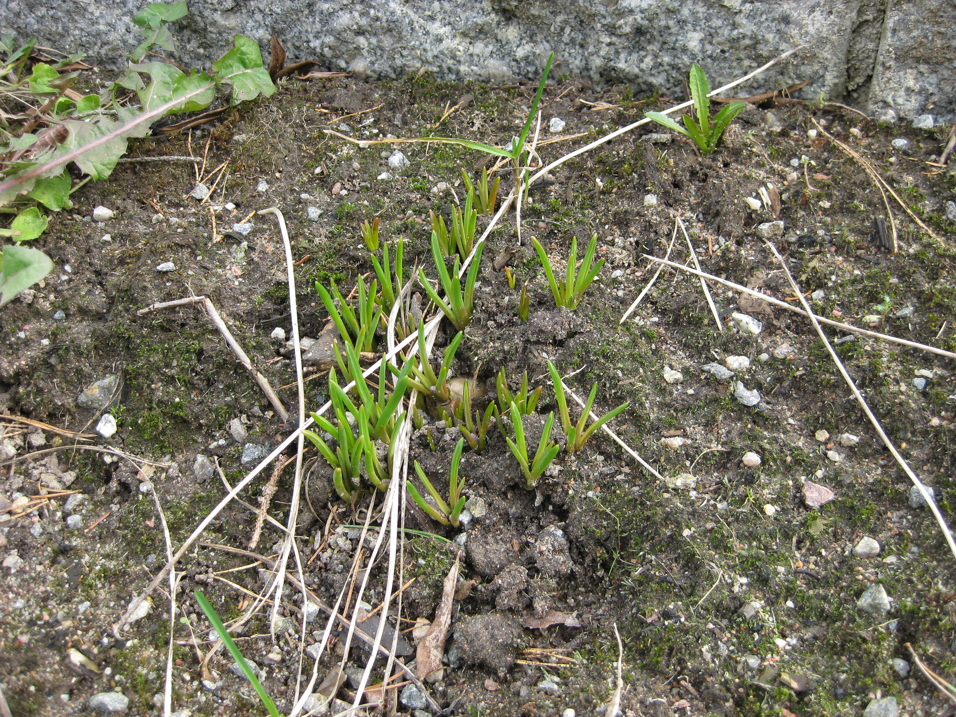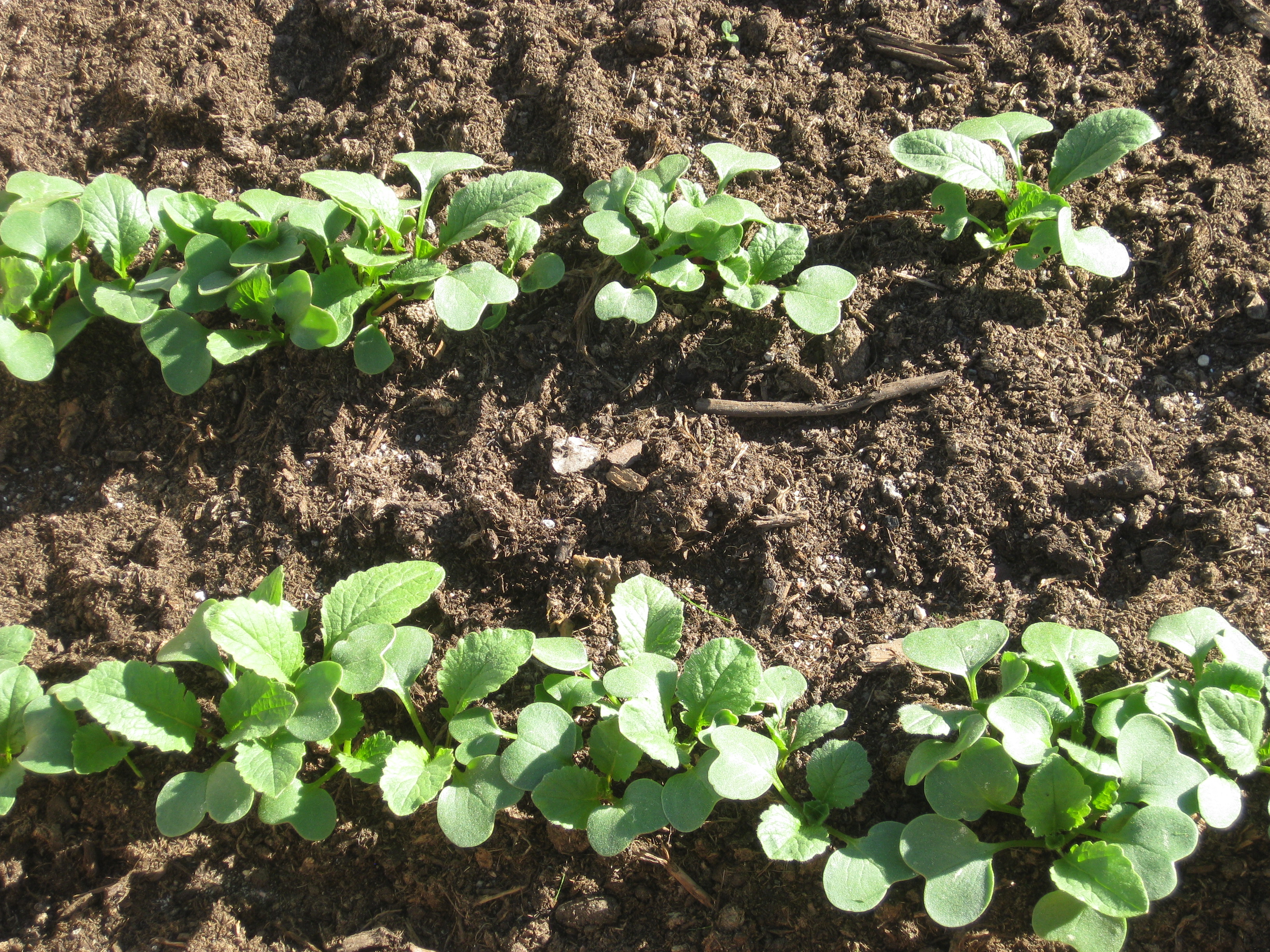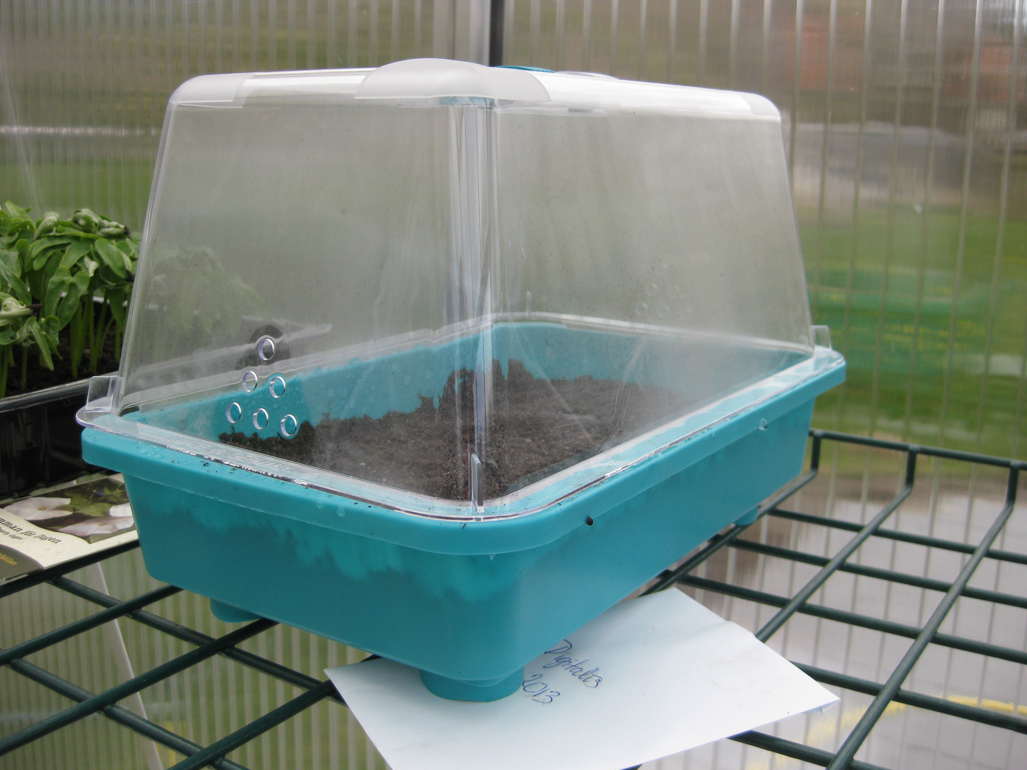 Digitalis tittar lite försynt upp i växthuset. Vi blandar ogräsbekämpningsmedel för att ta itu med de s.k. ”rävsvansarna” som dyker upp överallt, och så sår vi morötter och rädisor.