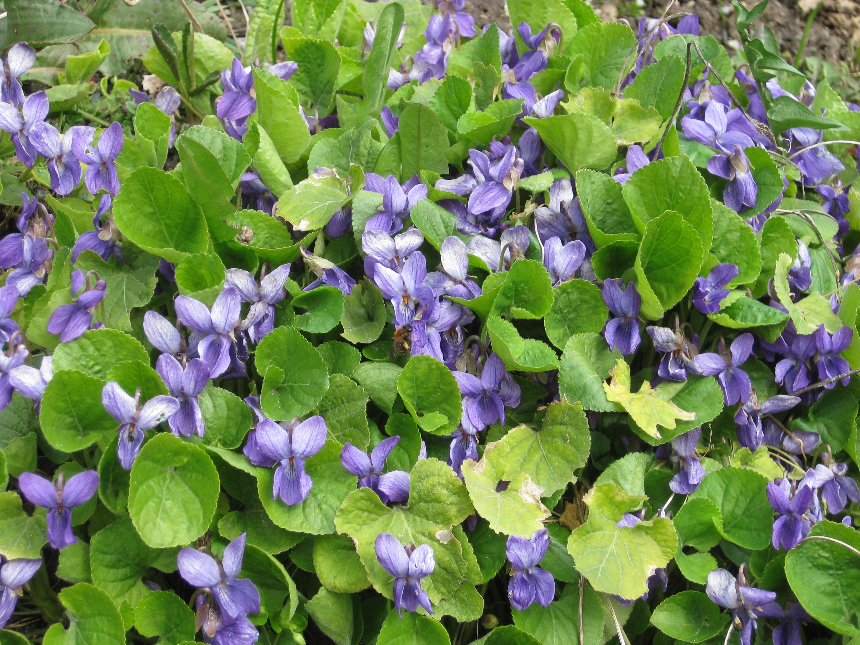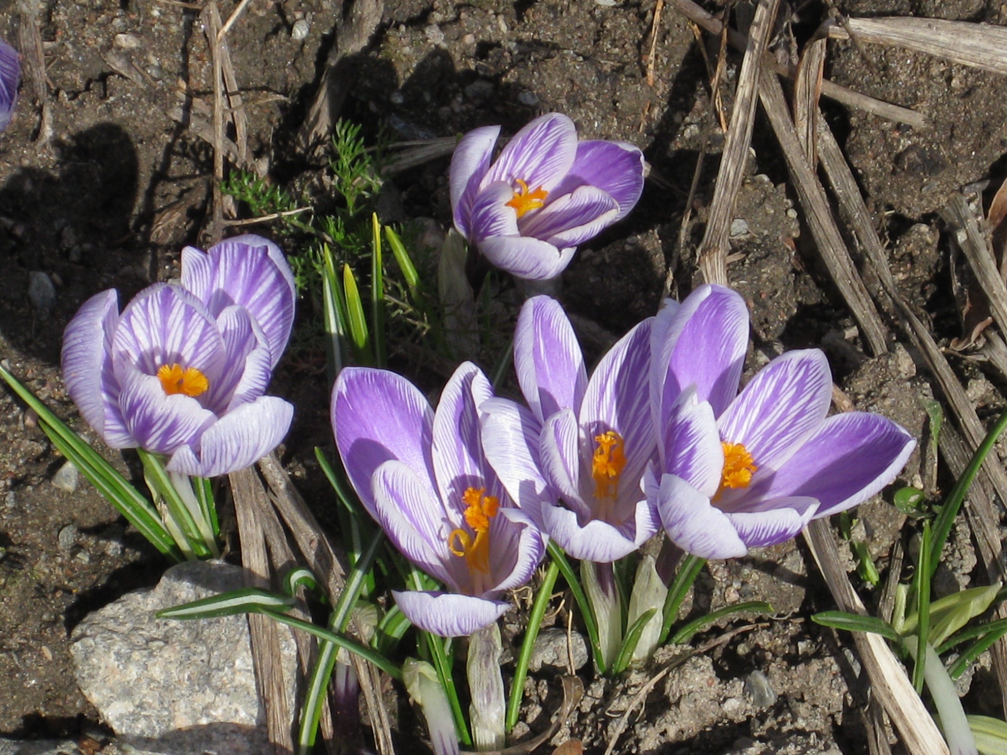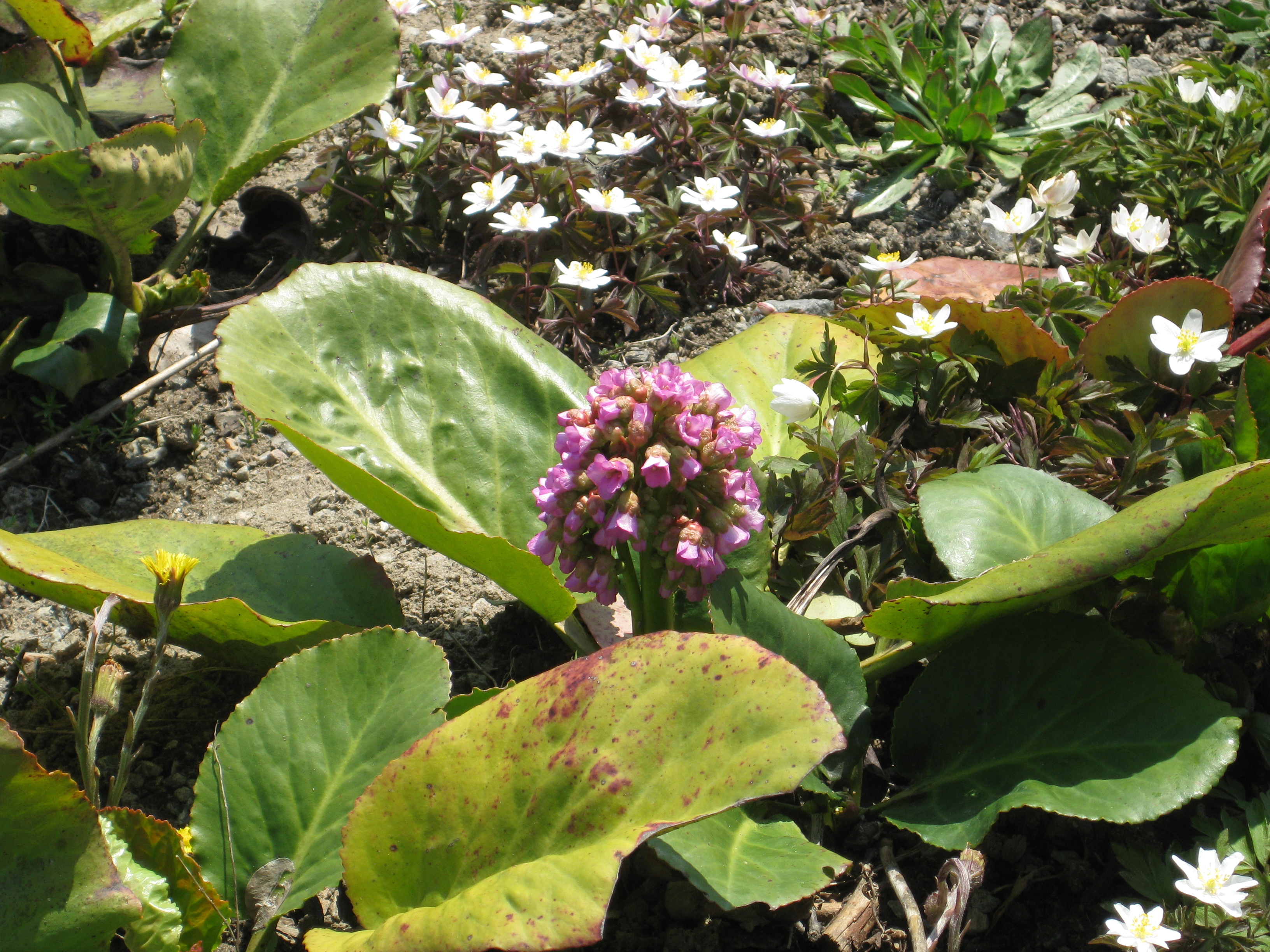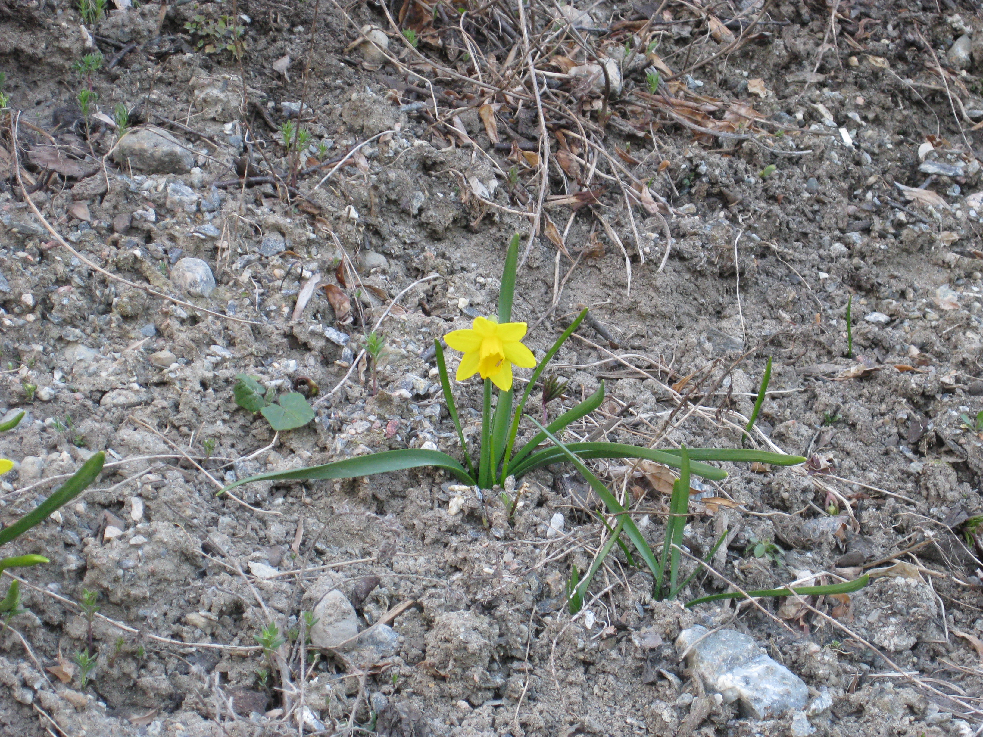 Ännu mer vårblommor! Håkan gräver ett dräneringsdike för att få bort allt vatten som står i gräsmattan ovanför växthuset – det har önskad effekt!