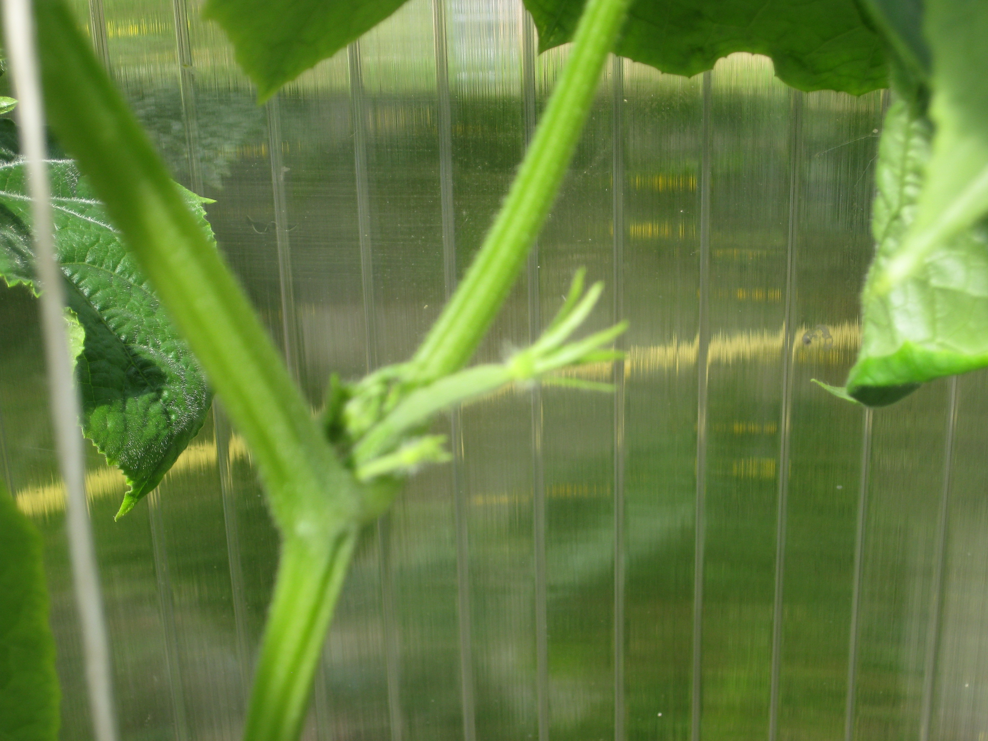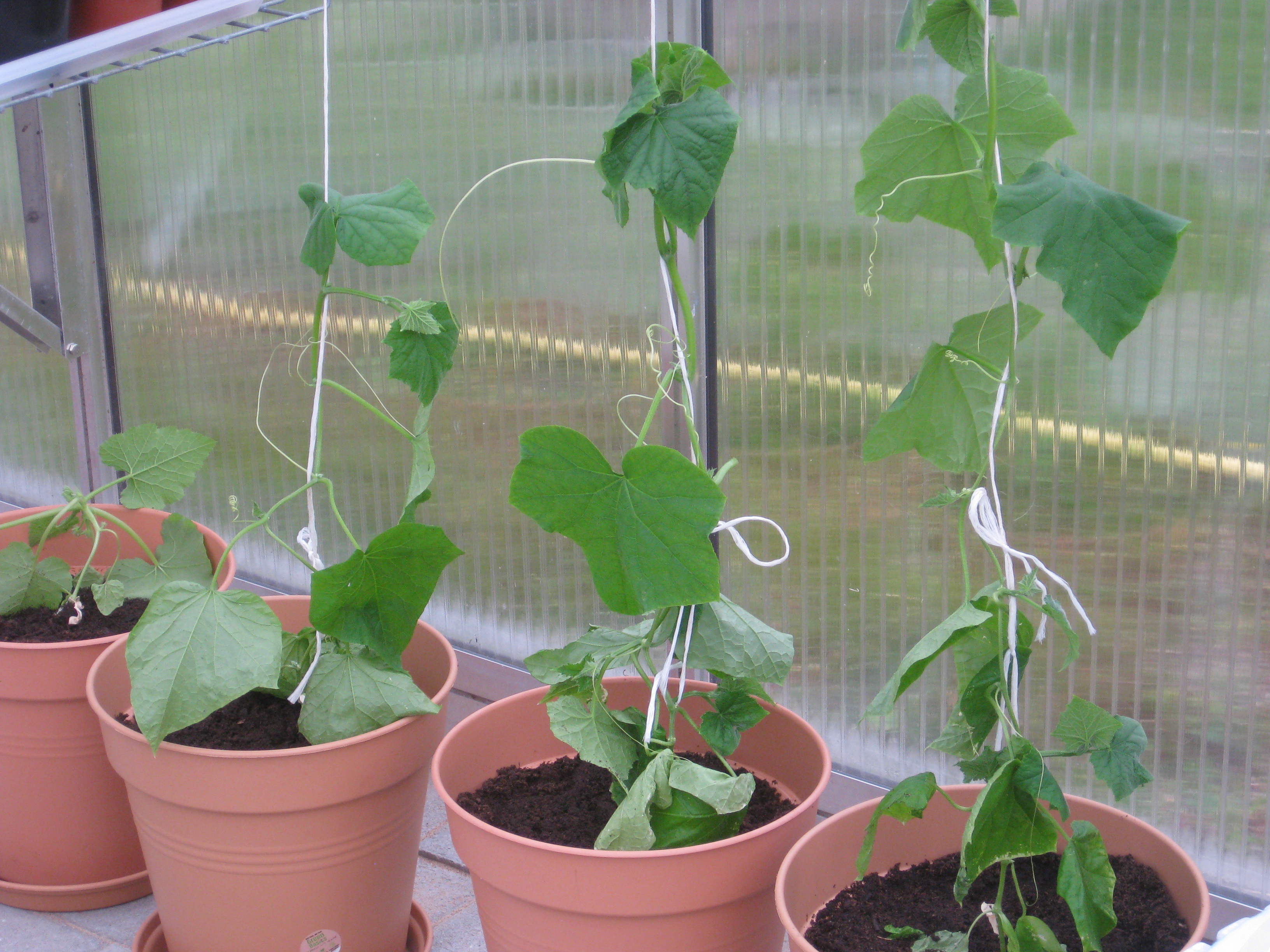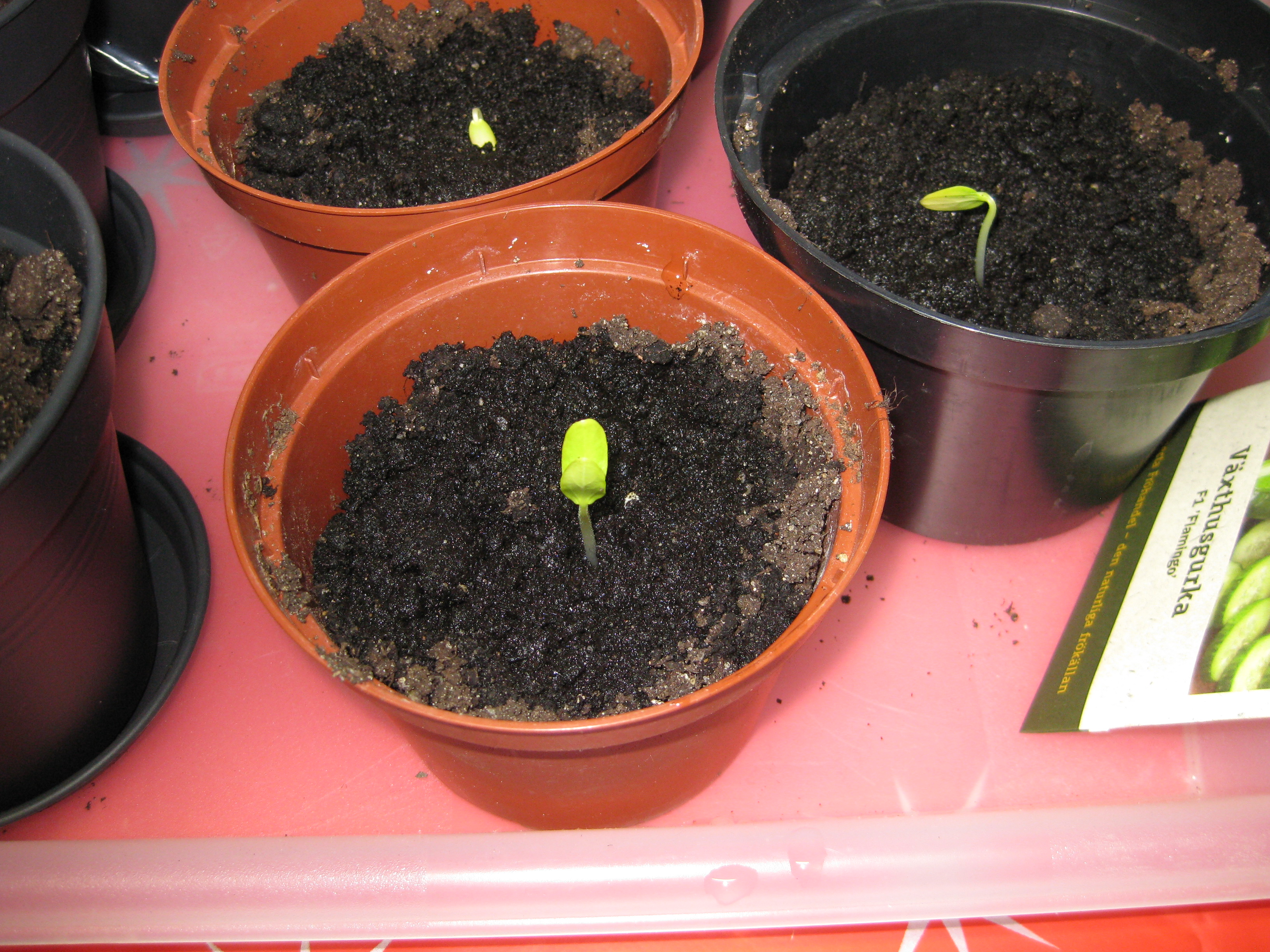 Gurkplantor på väg upp.