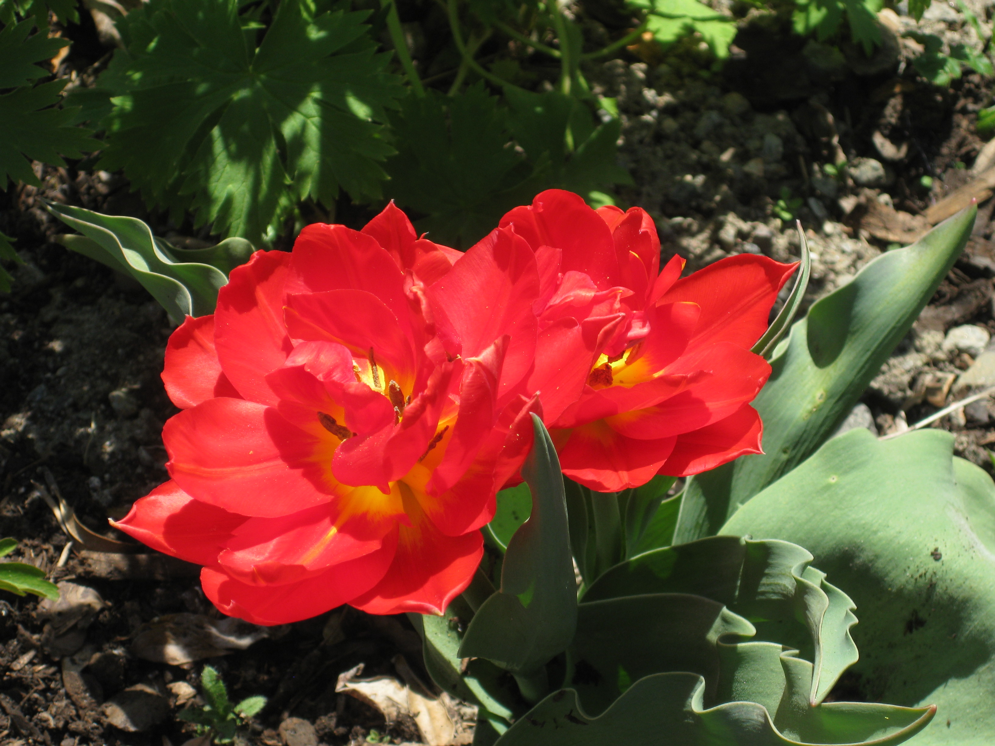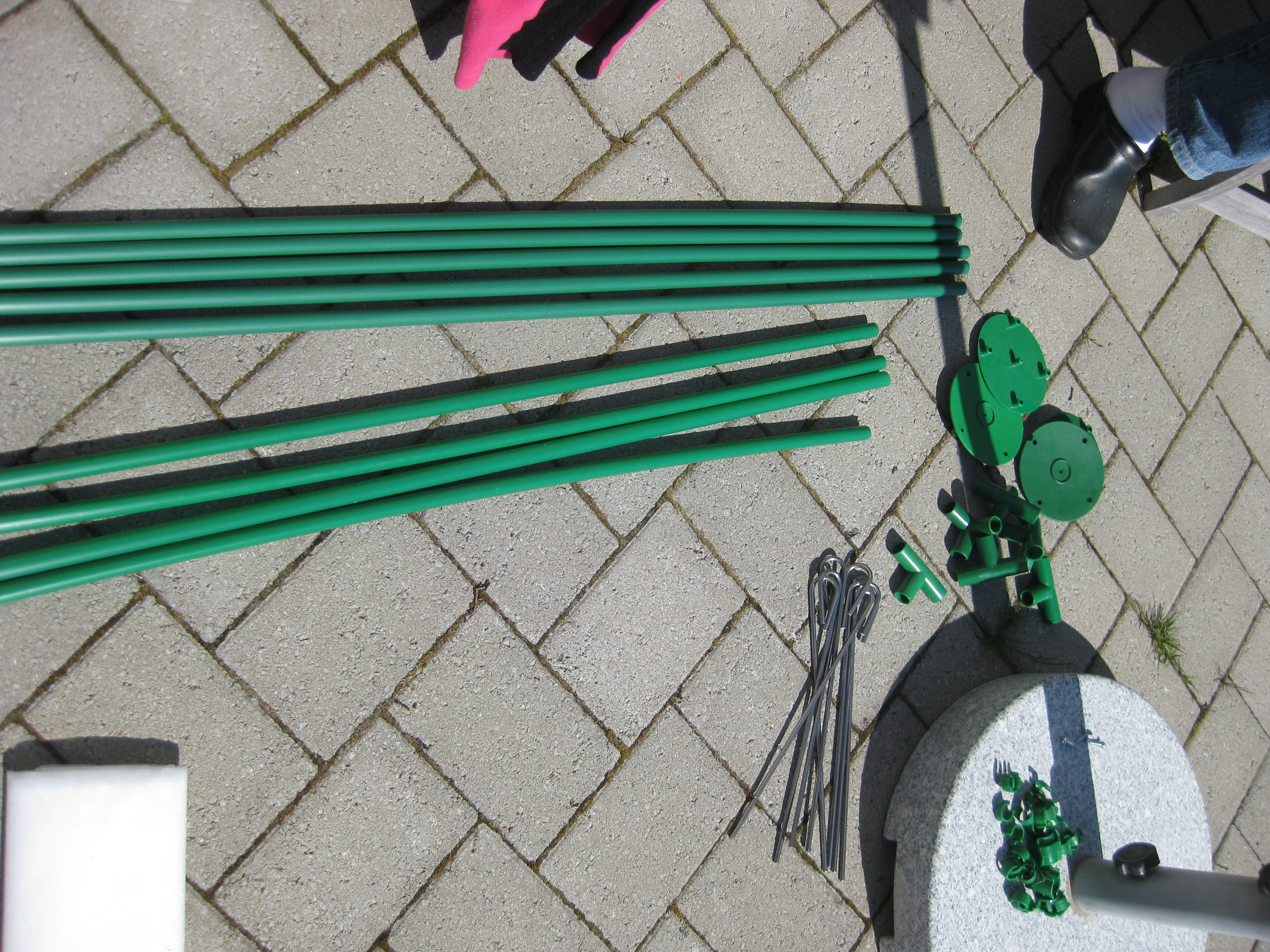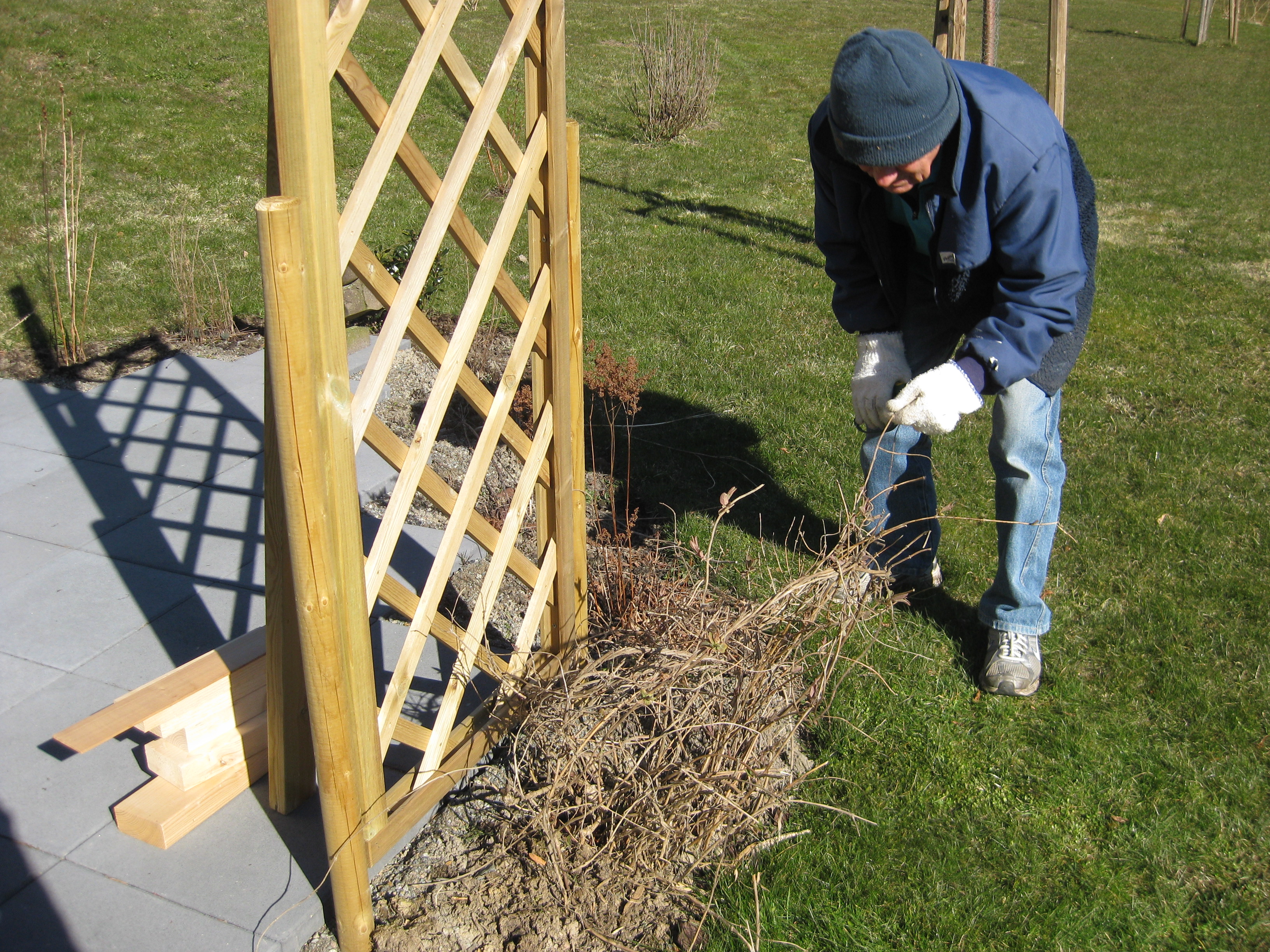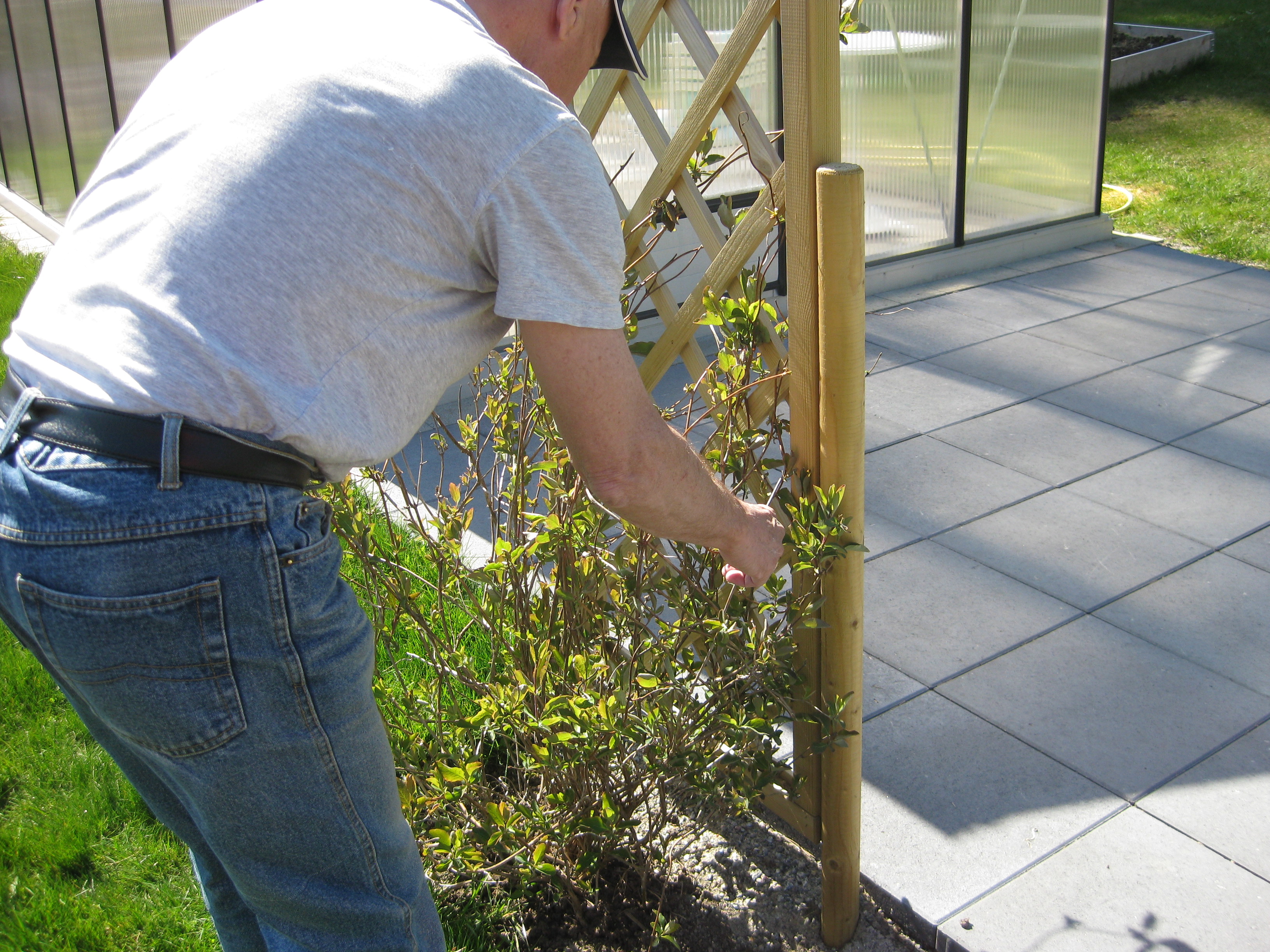 Vi sätter ihop en odlingstunnel, eller vad det kan kallas, som ska skydda kommande grönsakssådd mot diverse odjur. Håkan ska bygga en pallkrage att sätta under den. Tulpanerna blommar, och inte en enda har angripits av rådjur – mysko. Eller så fungerar det nya anti-rådjursmedlet… Vi klipper ner kaprifolerna lite. Båda verkar ha klarat vintern, och den ena är riktigt buskig och fin. Bergeniorna blommar i slänten, och Katarina sår blomkål i badrummet. 🙂