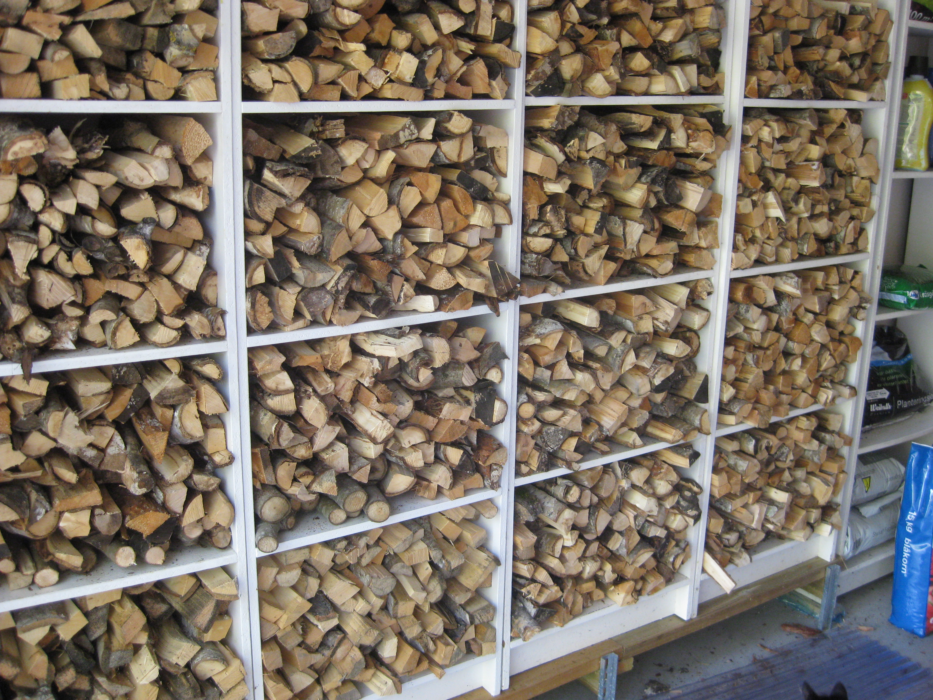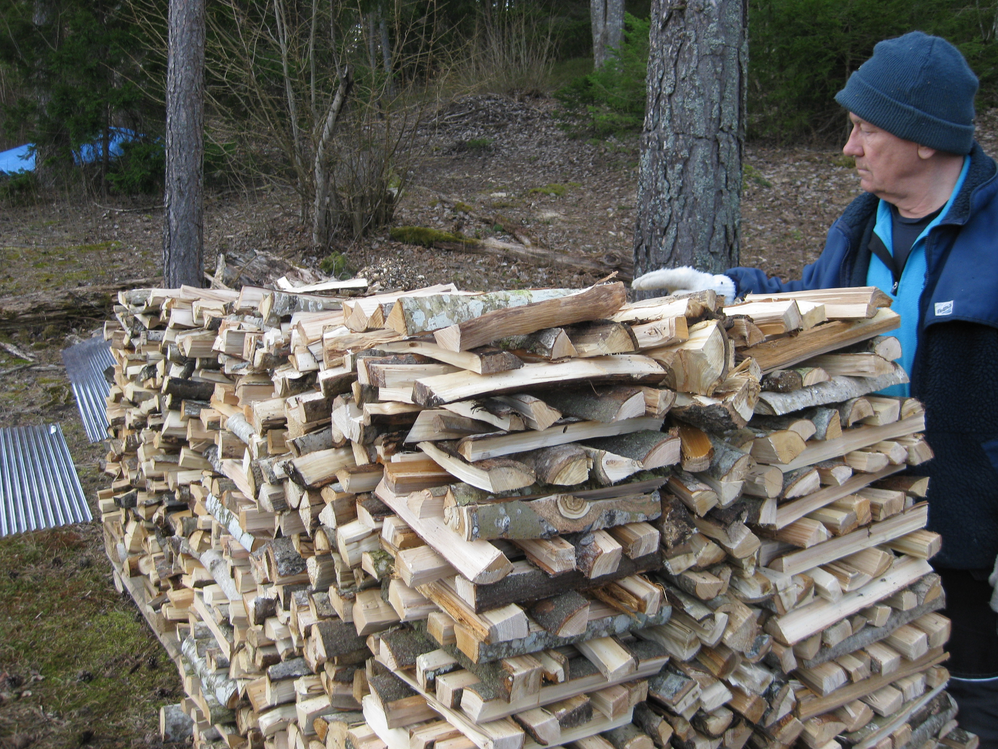 Årets första dag är mulen och blåsig. Vi bestämmer att det är dags att plocka in mera ved i garaget. Vem vet, snön och kylan kanske kommer? Fast det hoppas vi inte. Men oavsett är det trevligt att elda lite för mysighetens skull då och då.