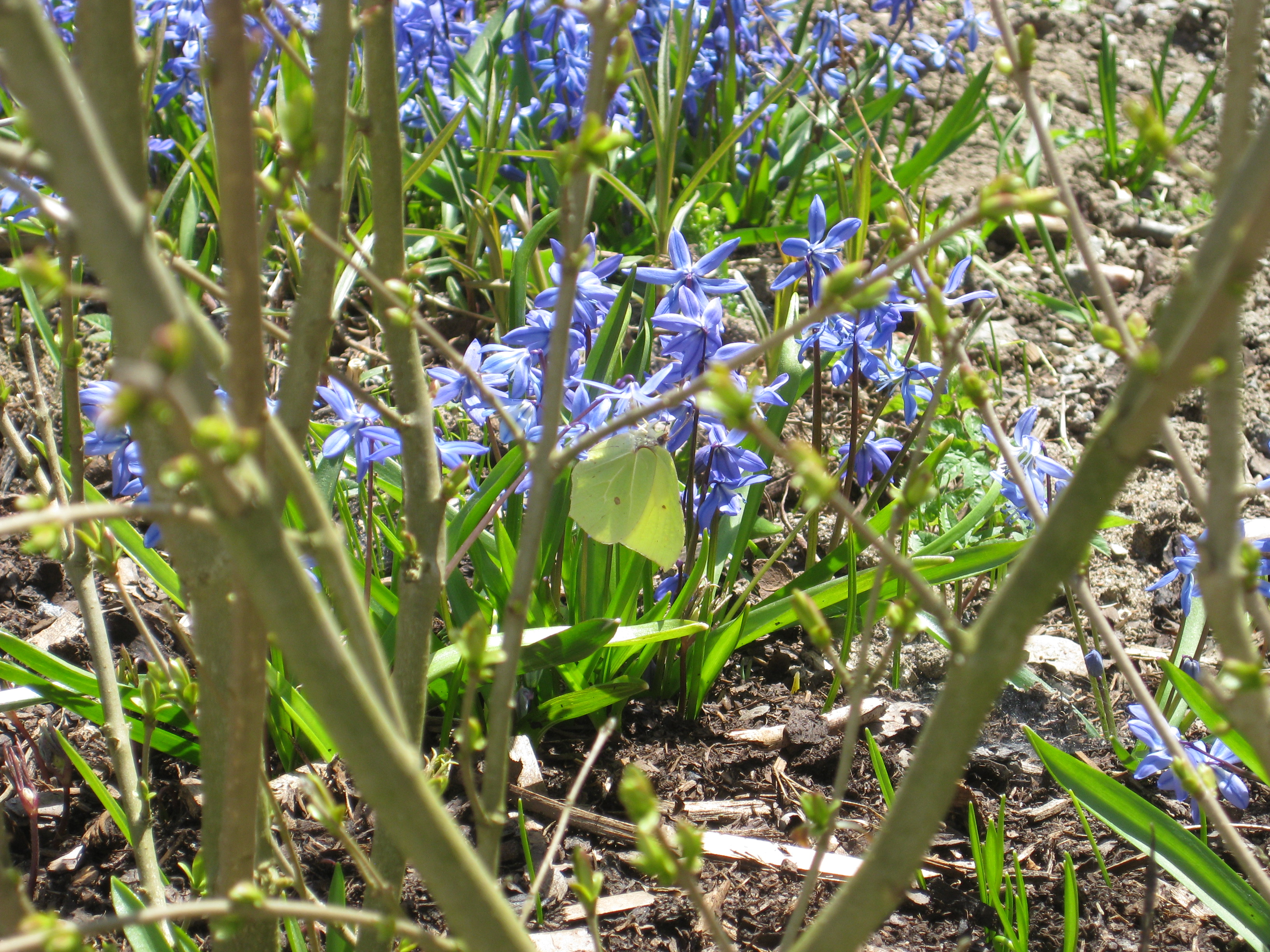 Riddarsporre, Trädgårdsnattviol och pioner tittar upp i rabatten. Och en citronfjäril flyger förbi… Vår! Vi rensar lite i rabatten, och plockar fram ritningen där vi planerat hur det ska bli en gång när det är ”färdigt”. Det är en del kvar att göra. Sedan blir det sådd av tagetes och brysselkål i växthuset – vi får se om det lyckas såhär tidigt, eller om det är för kallt. Det börjar hur som helst bli lite trångt i badrummet, där vi ändå lyckas klämma in några krukor med squash-fröer… 🙂