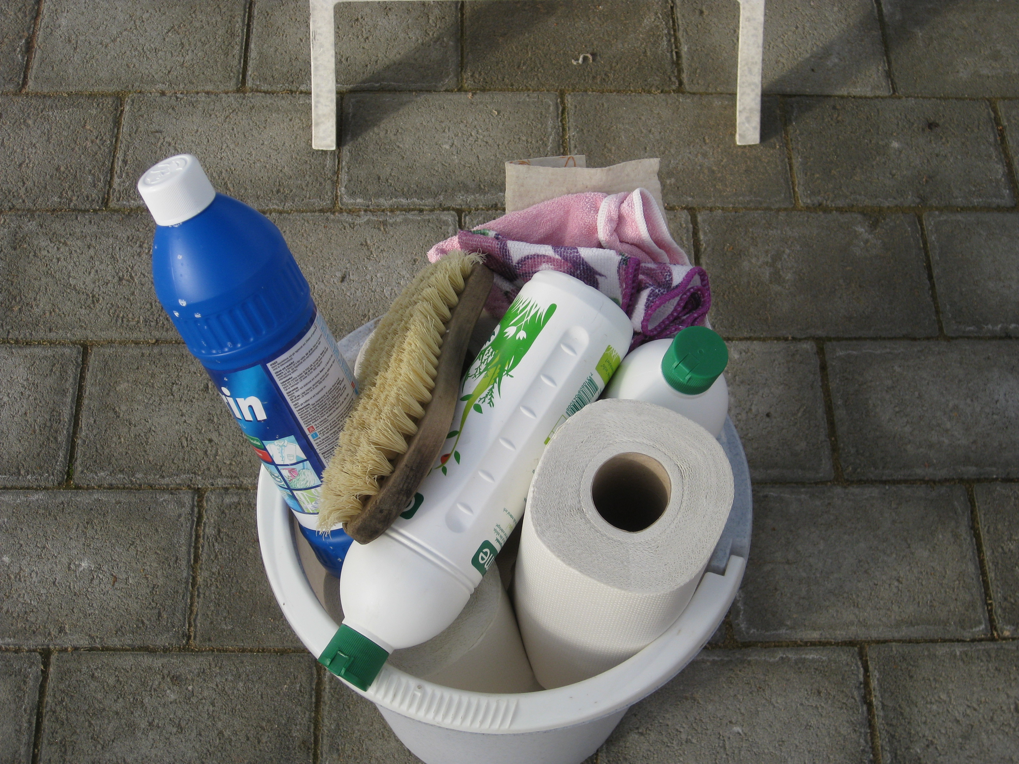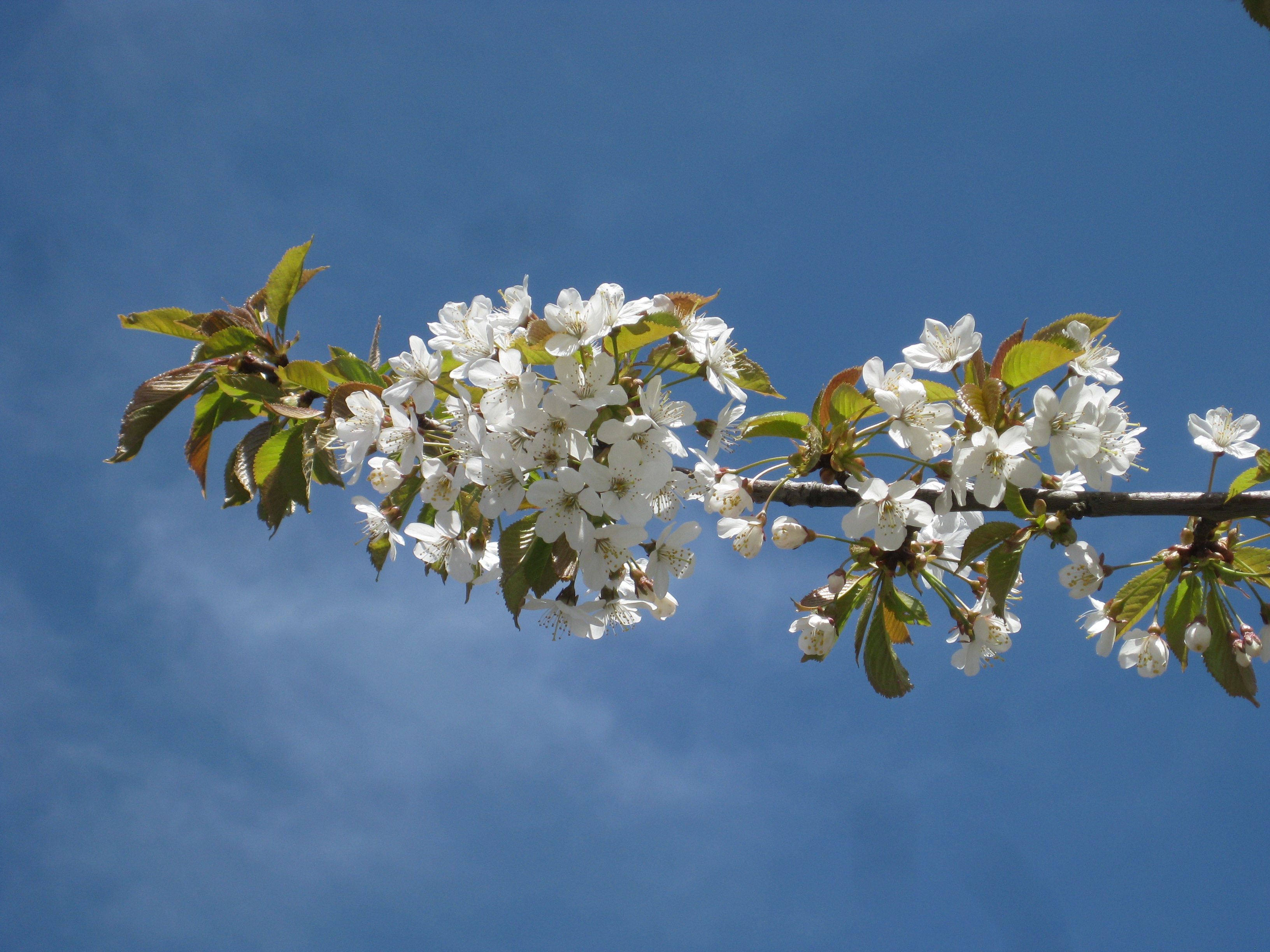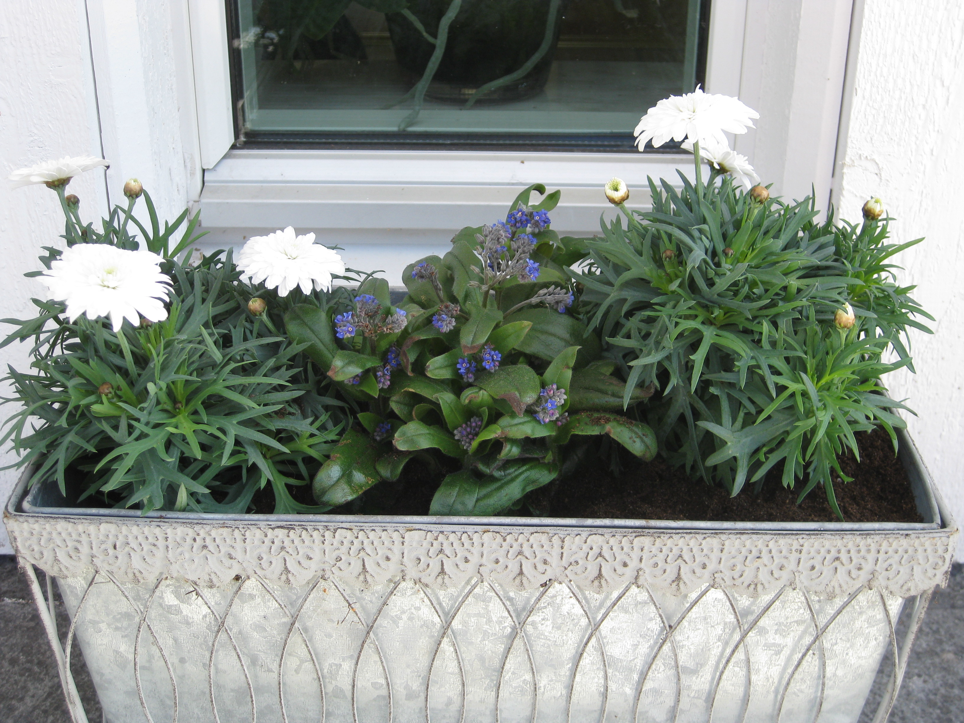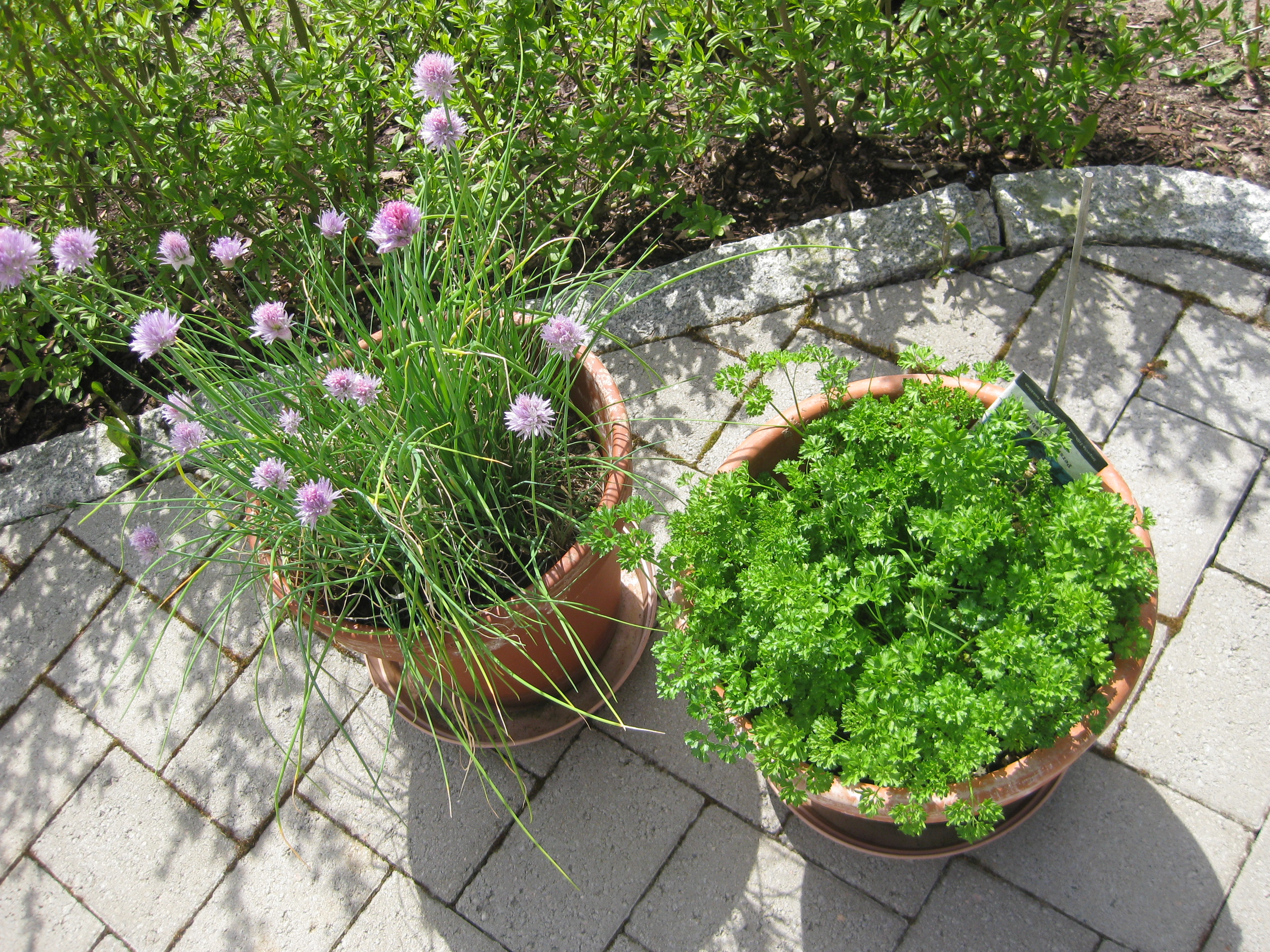 Diverse göromål står på agendan: sopa sättsand, inventera krukförrådet, beundra körsbärsblommorna, flytta ut pelargonerna, sätta potatis. Persilja och gräslök frodas.