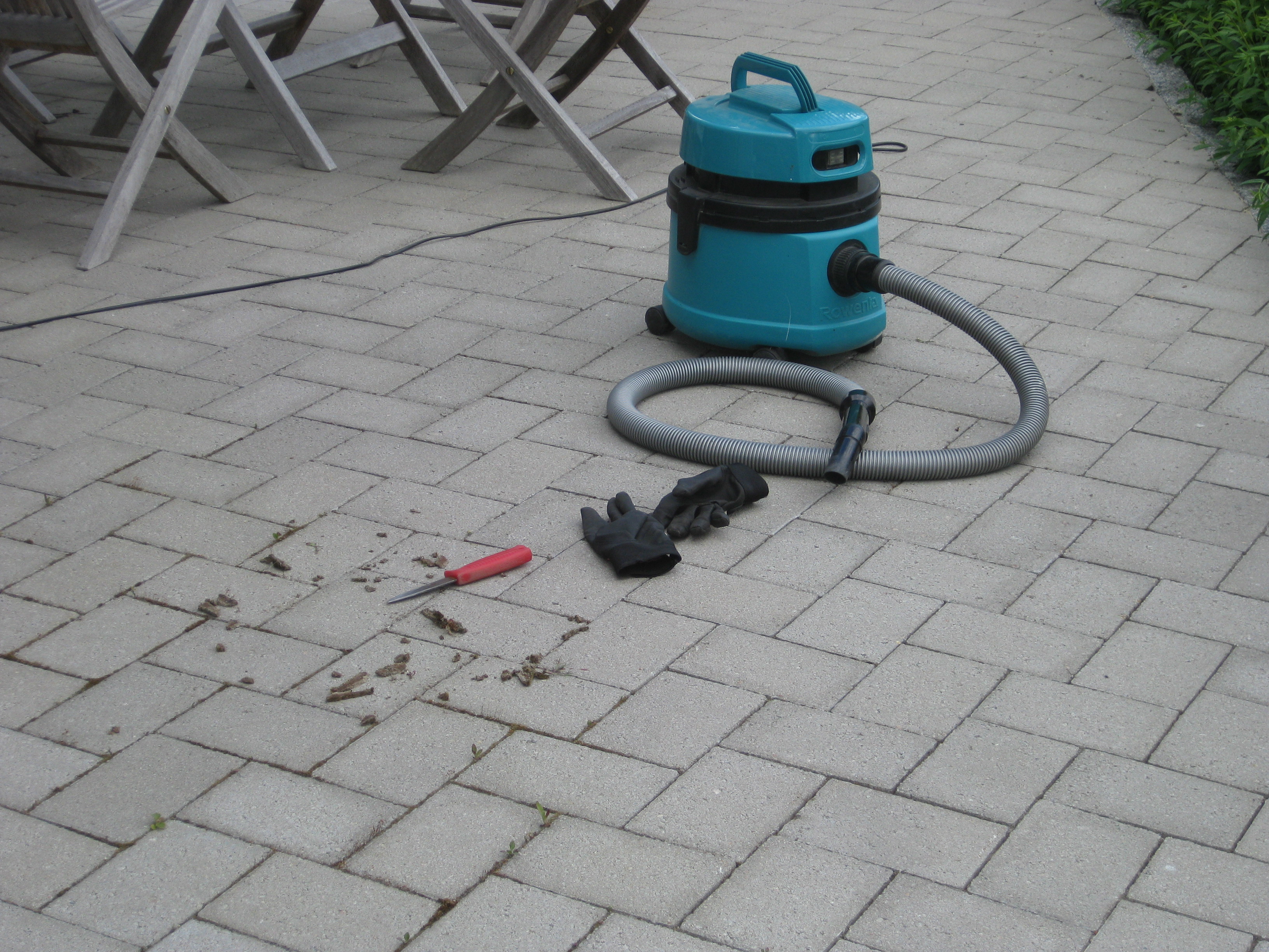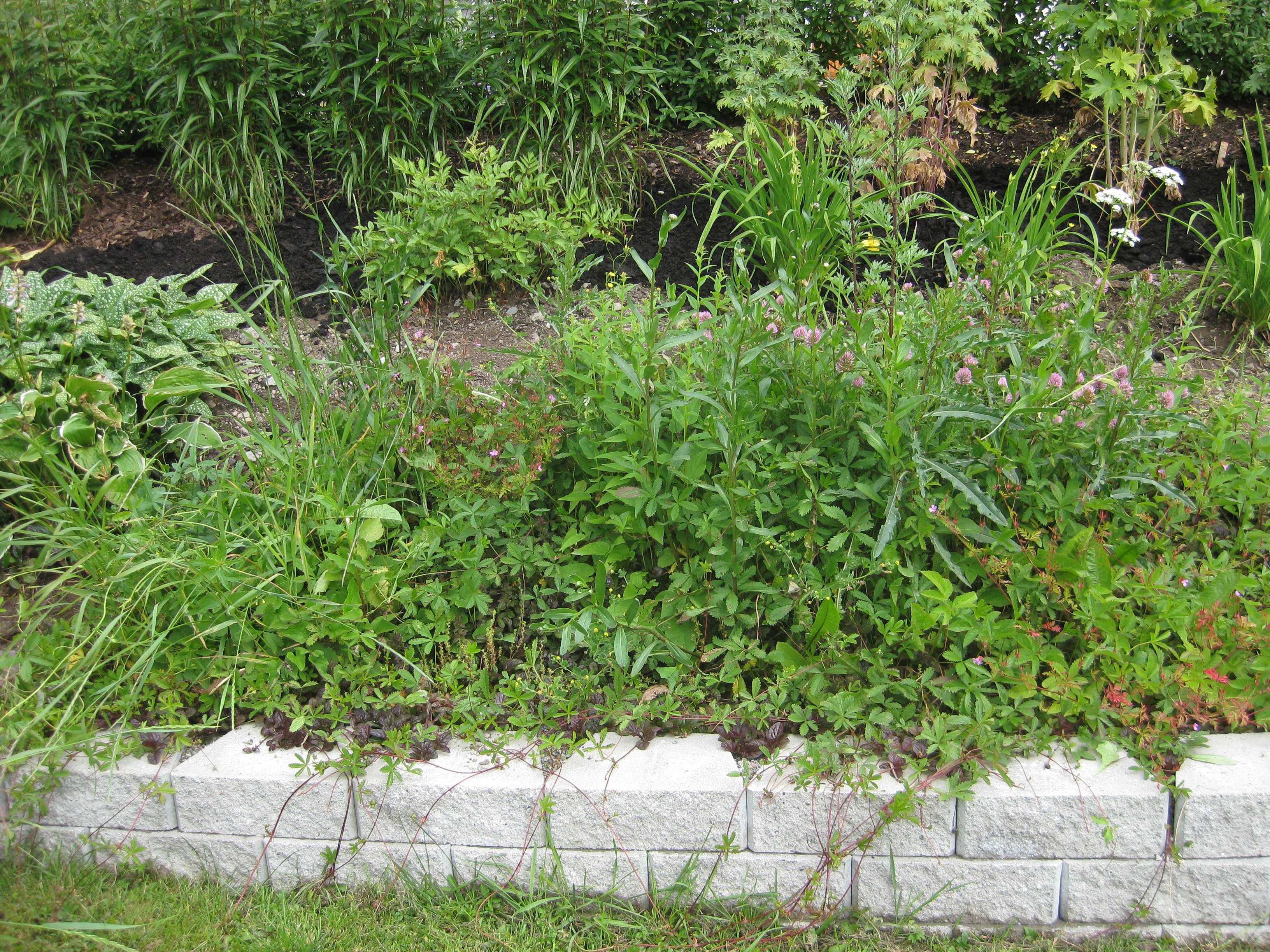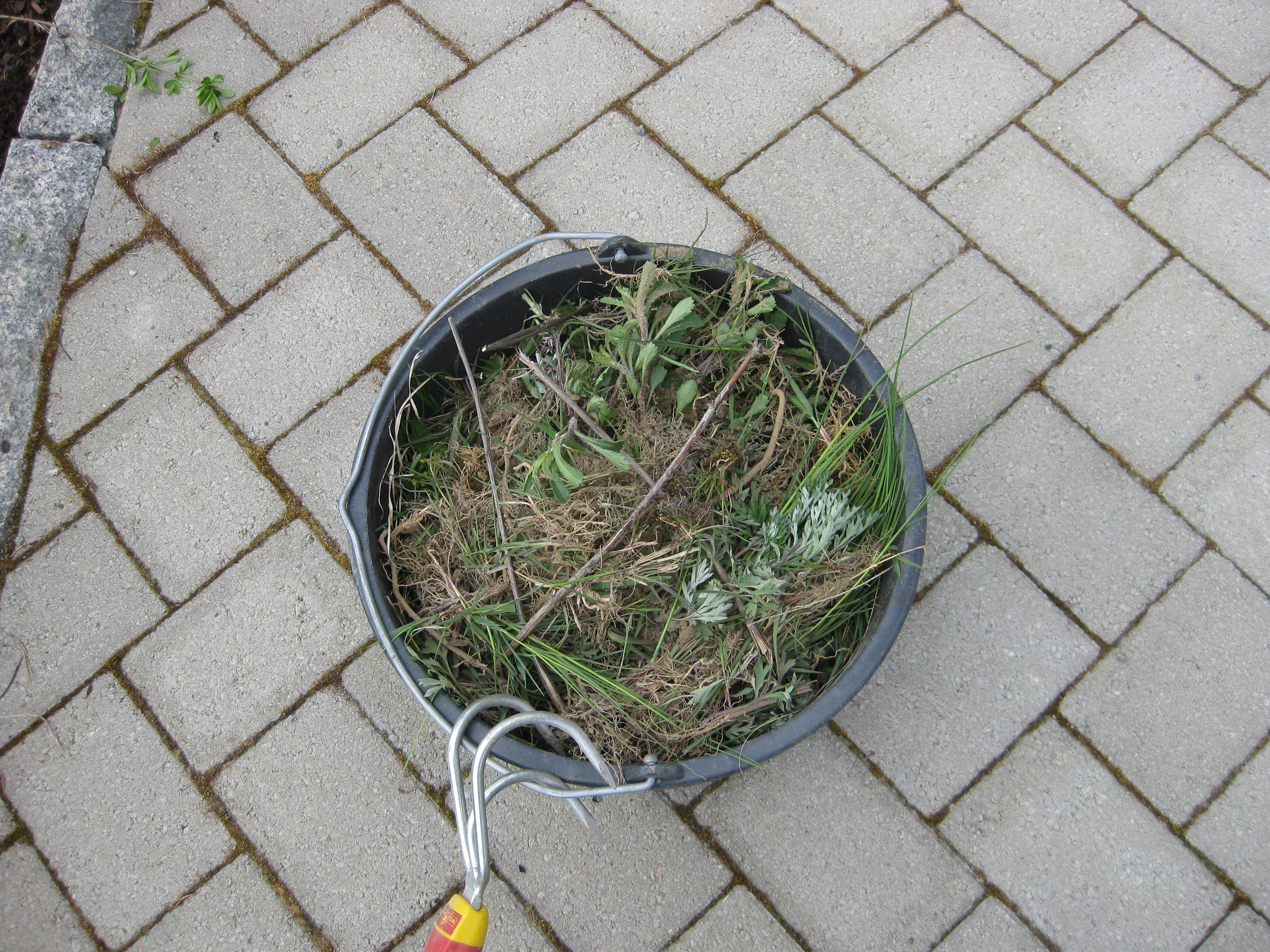 Var man tittar så hittar man ogräs. Baksidan behöver åtgärdas, men först var det ju rensning av stenläggning.