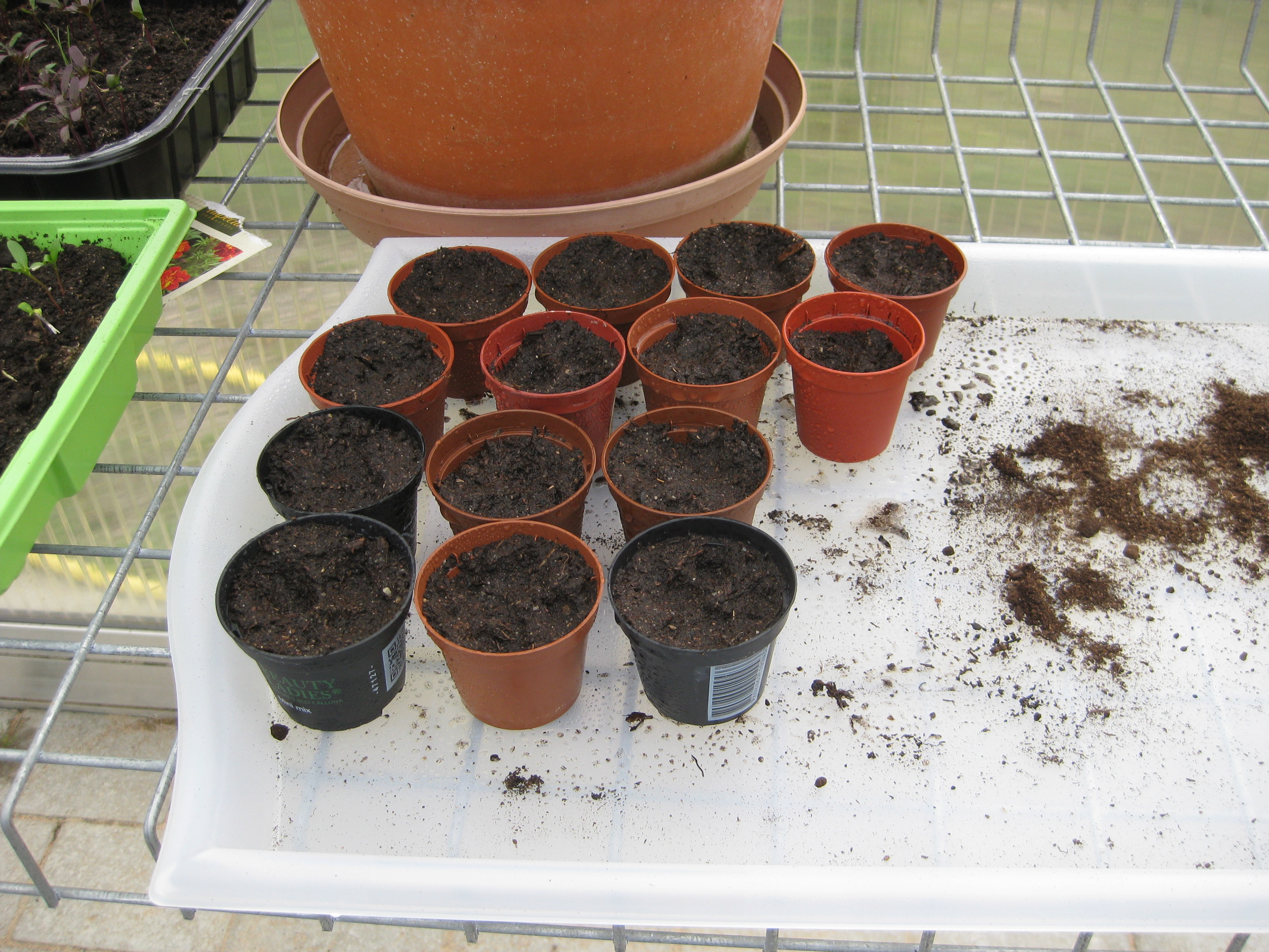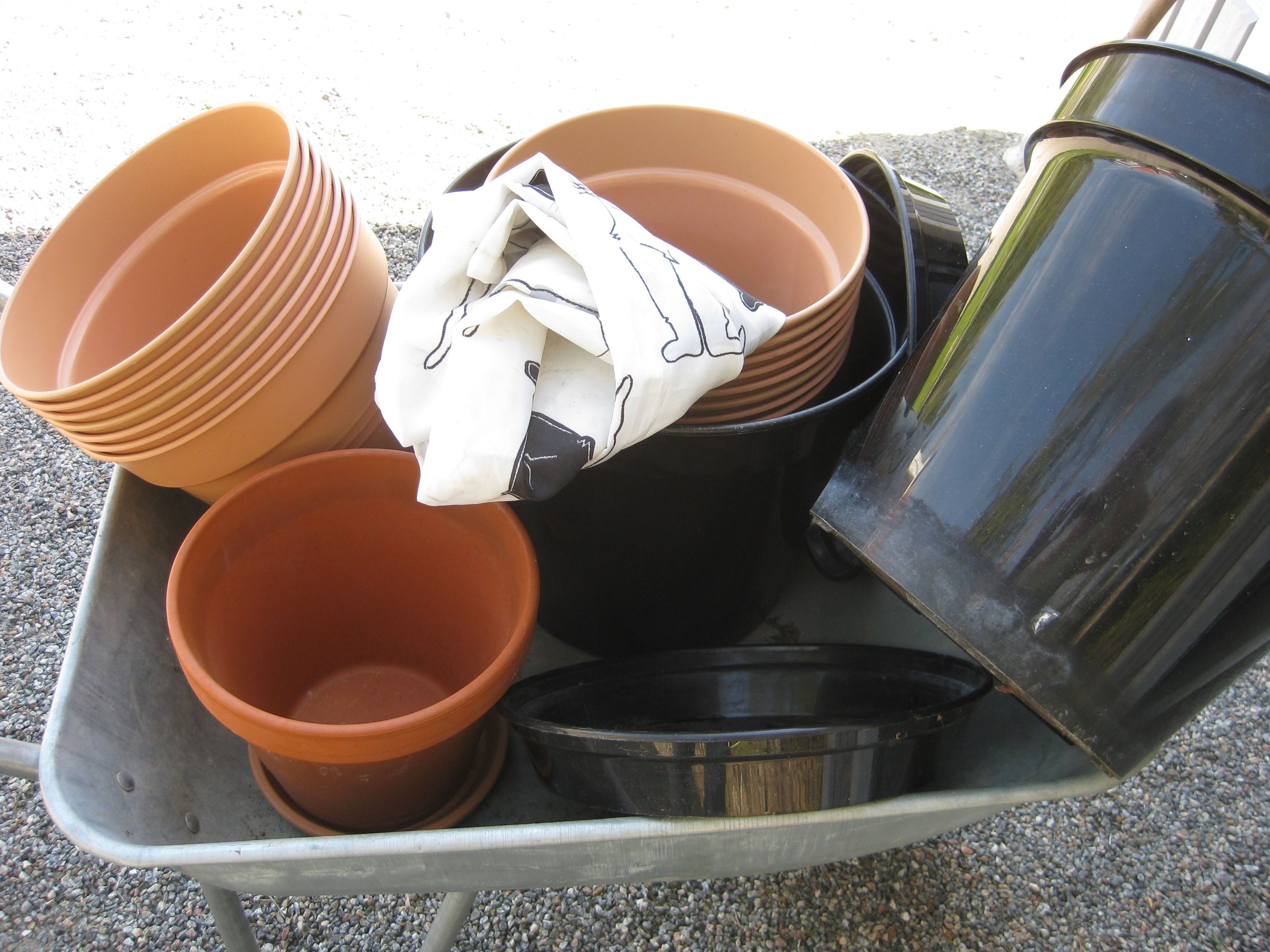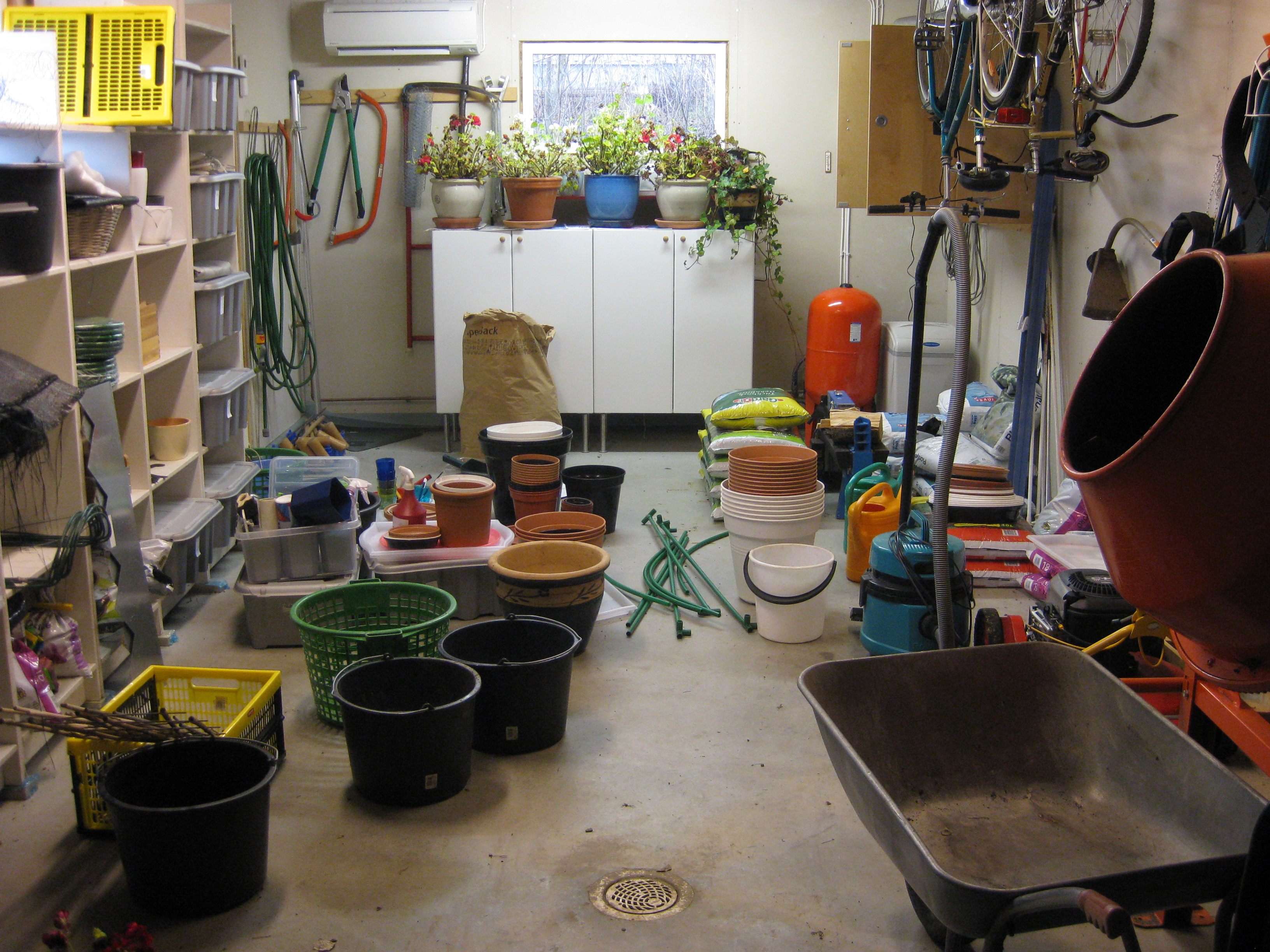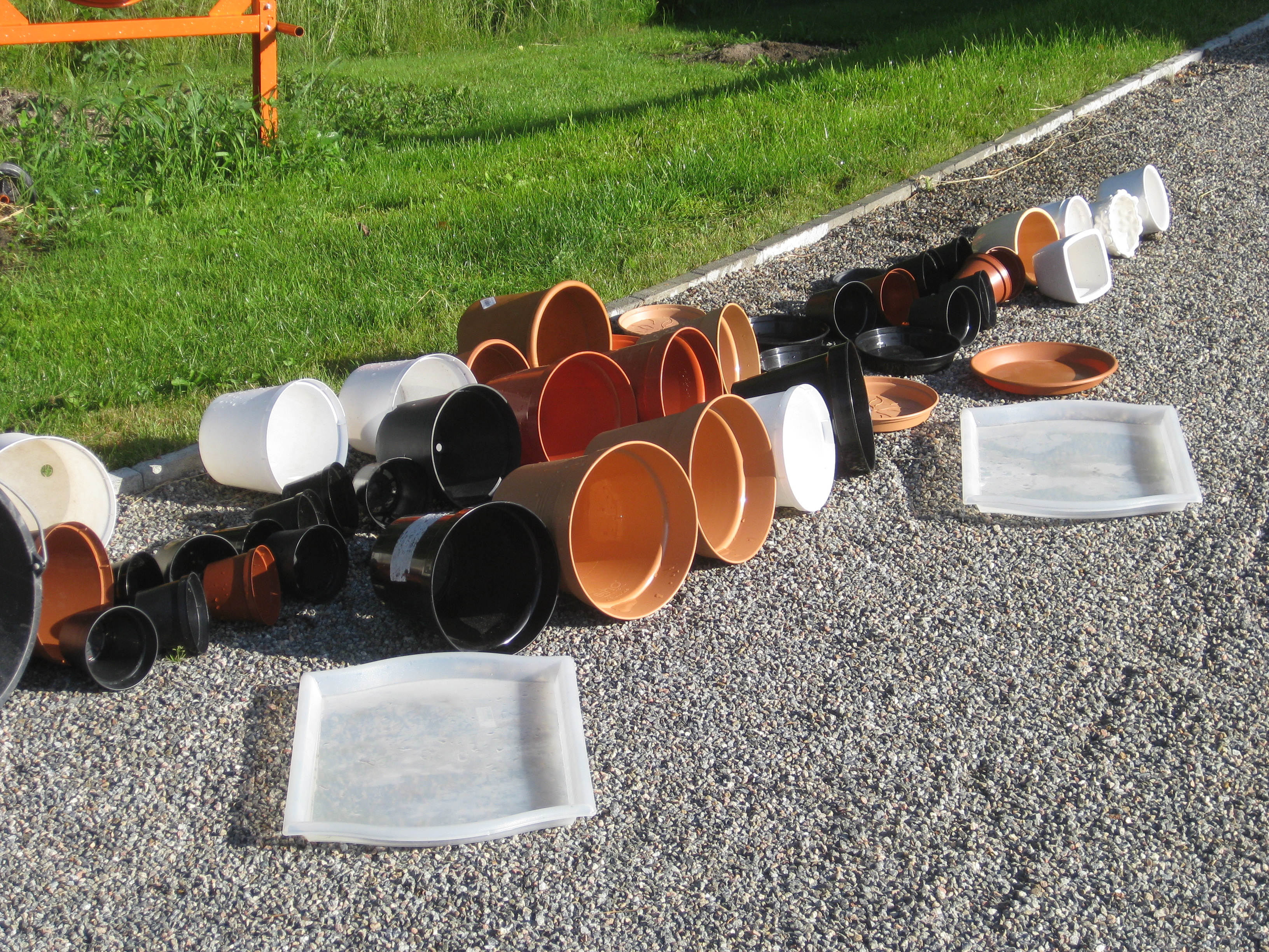 Alla krukor är tvättade, och de har ett tag stått inhysta i garaget i väntan på sortering och städning. Idag blev det äntligen av. Före och efter – det får man vara nöjd med!
