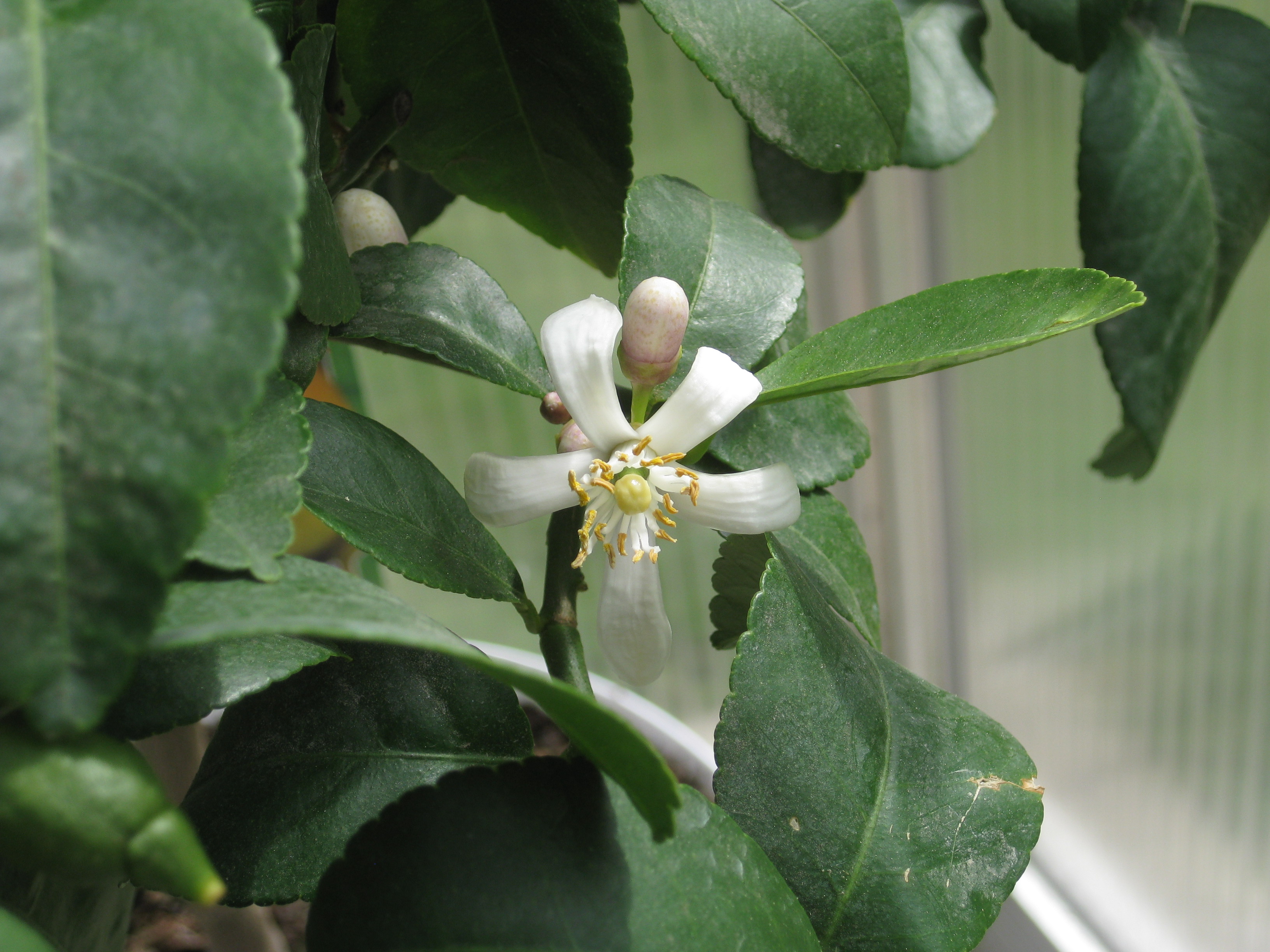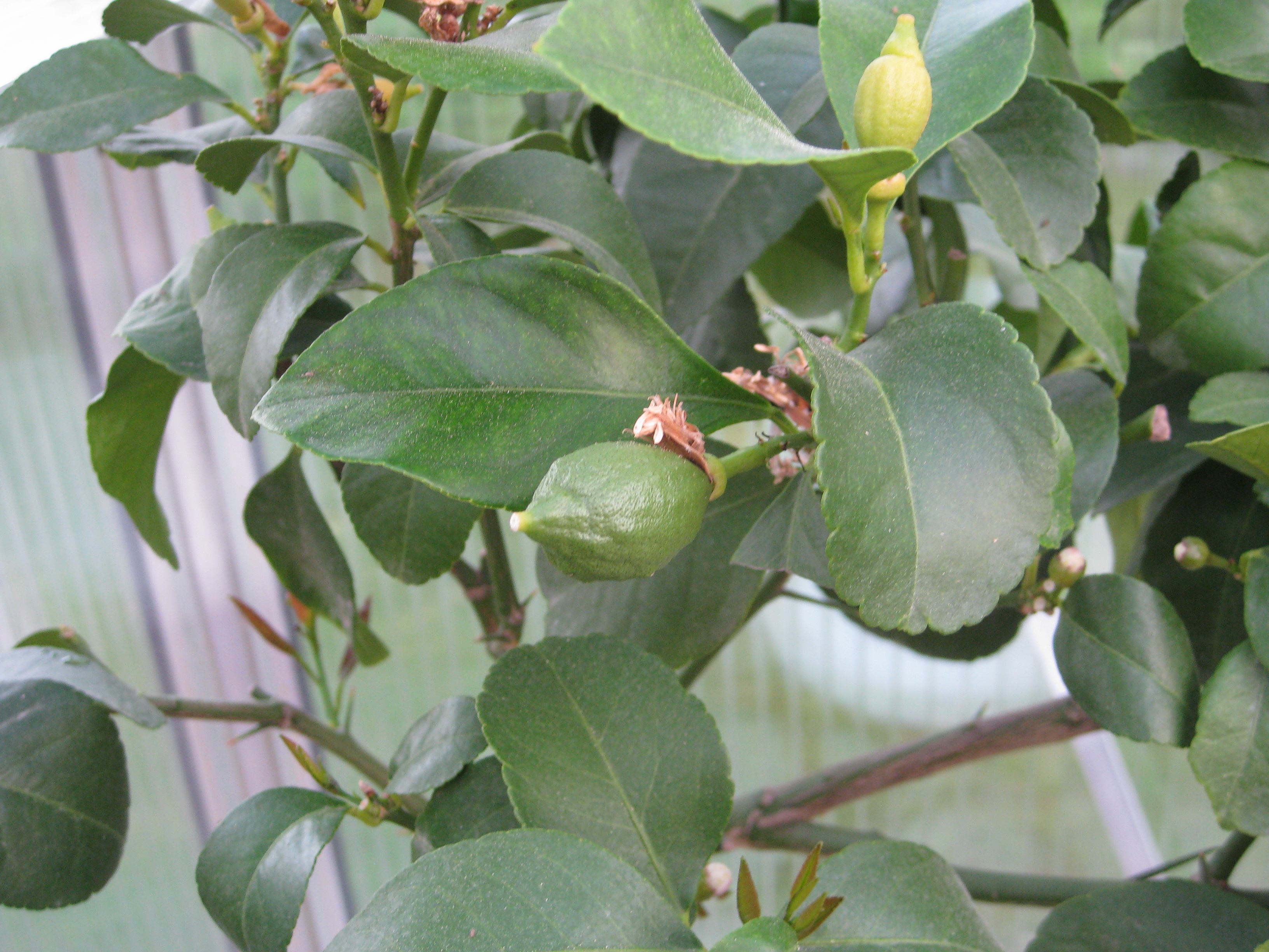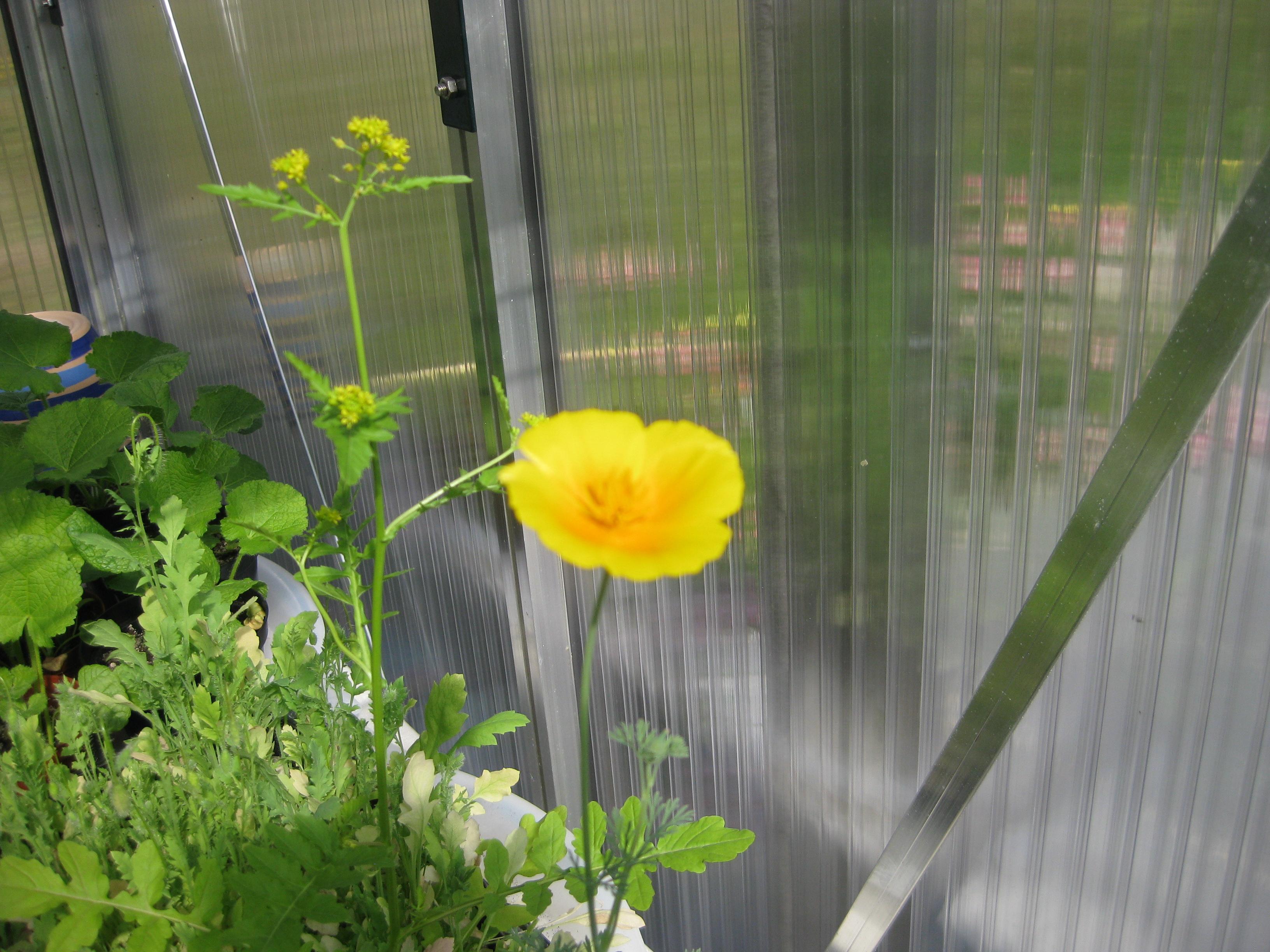 Citronträdet i växthuset knoppas. Spännande! Krassen tittar upp, och Löjtnanshjärtana blommar i rabatten.