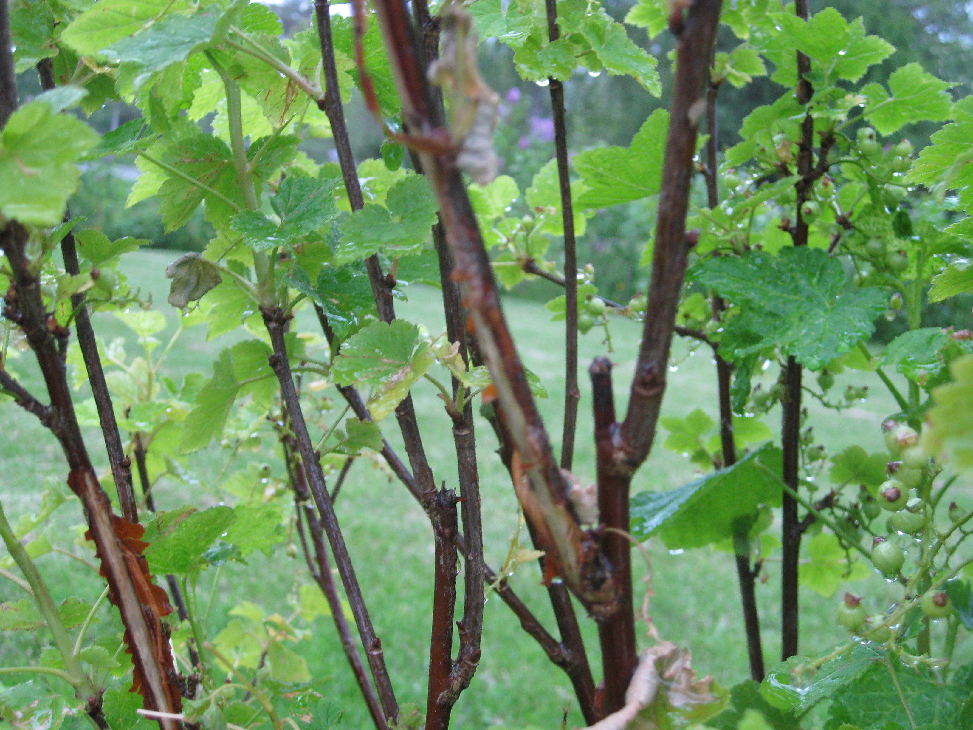 Kaprifol och syréner blommar. Vi konstaterar skador på vinbärsbuskarna – rådjur?
