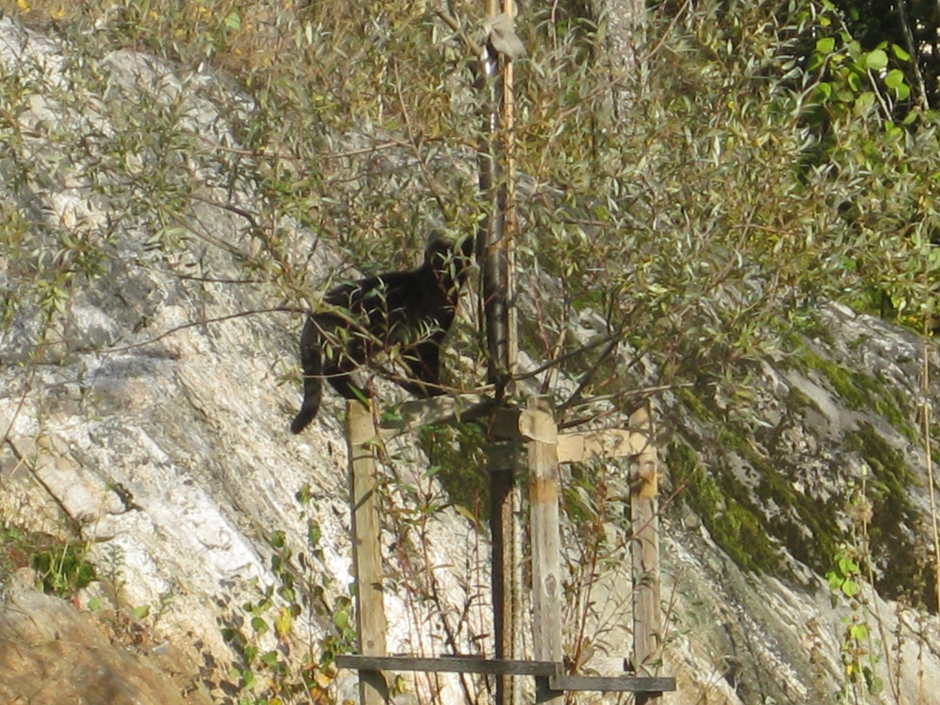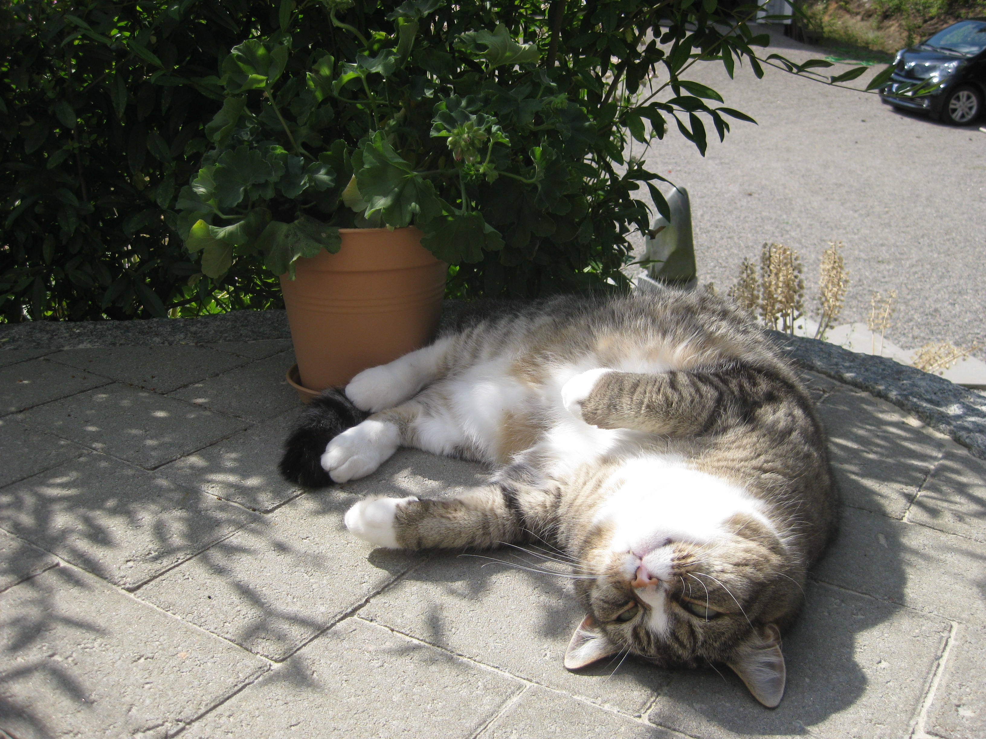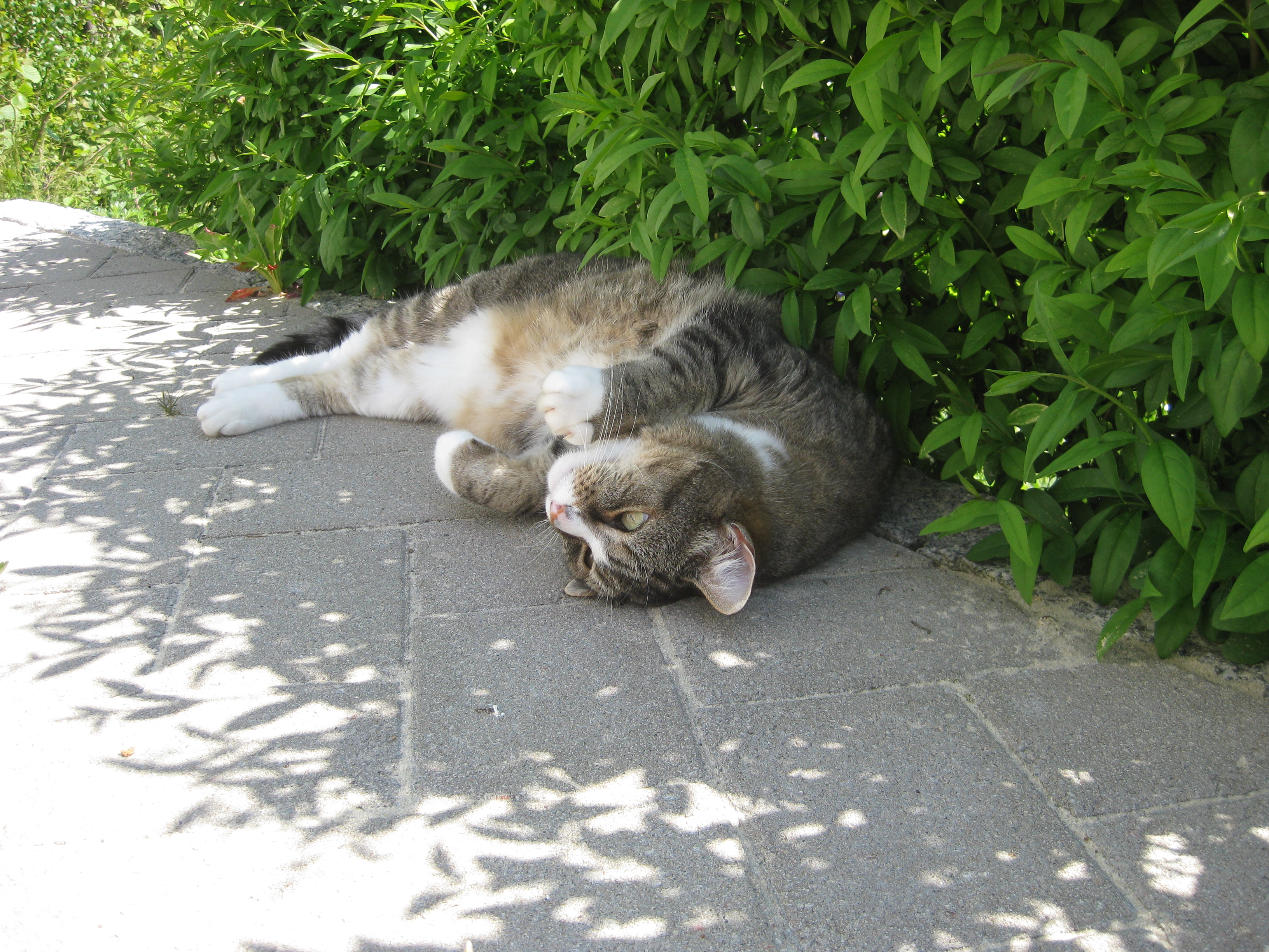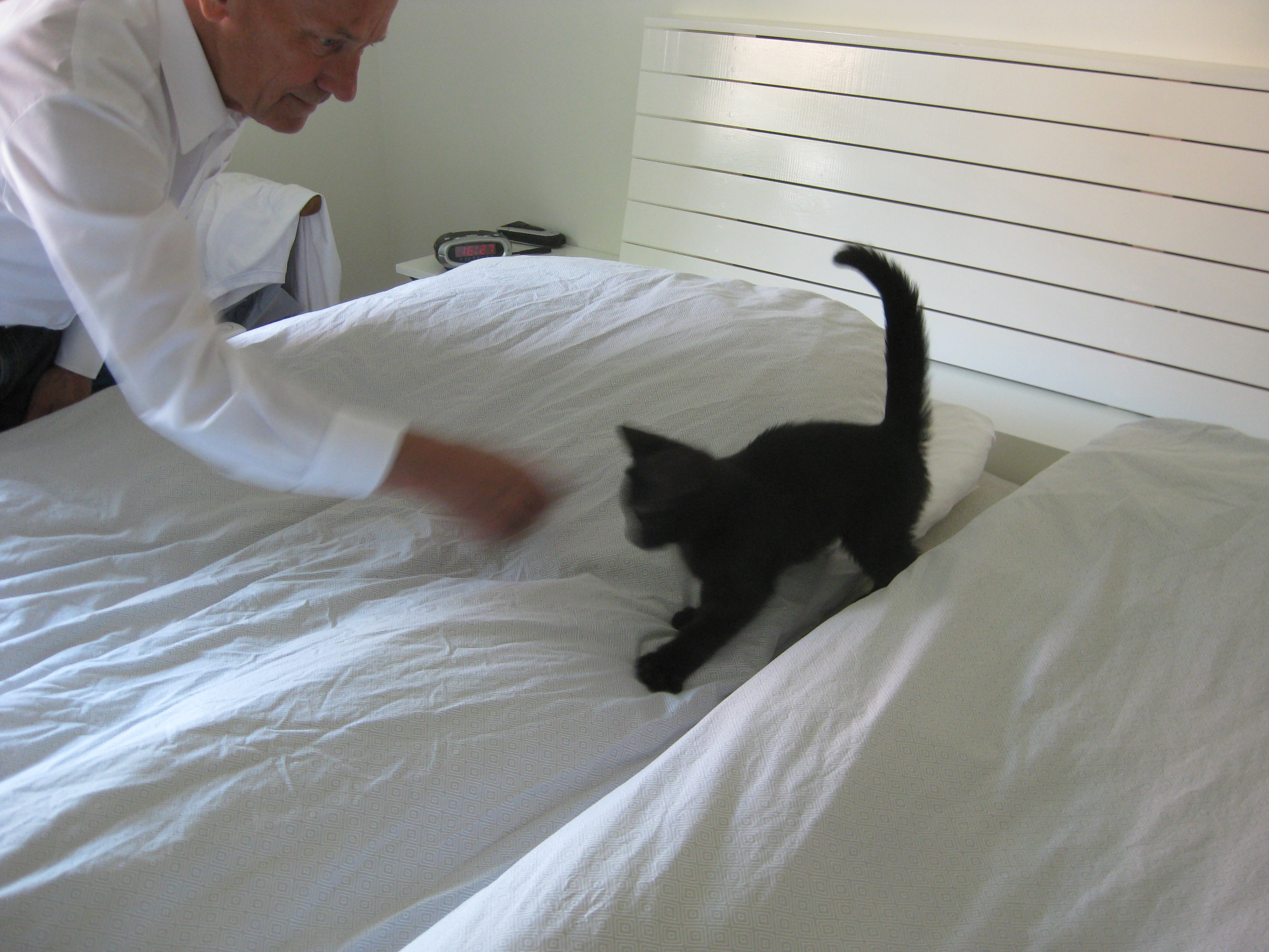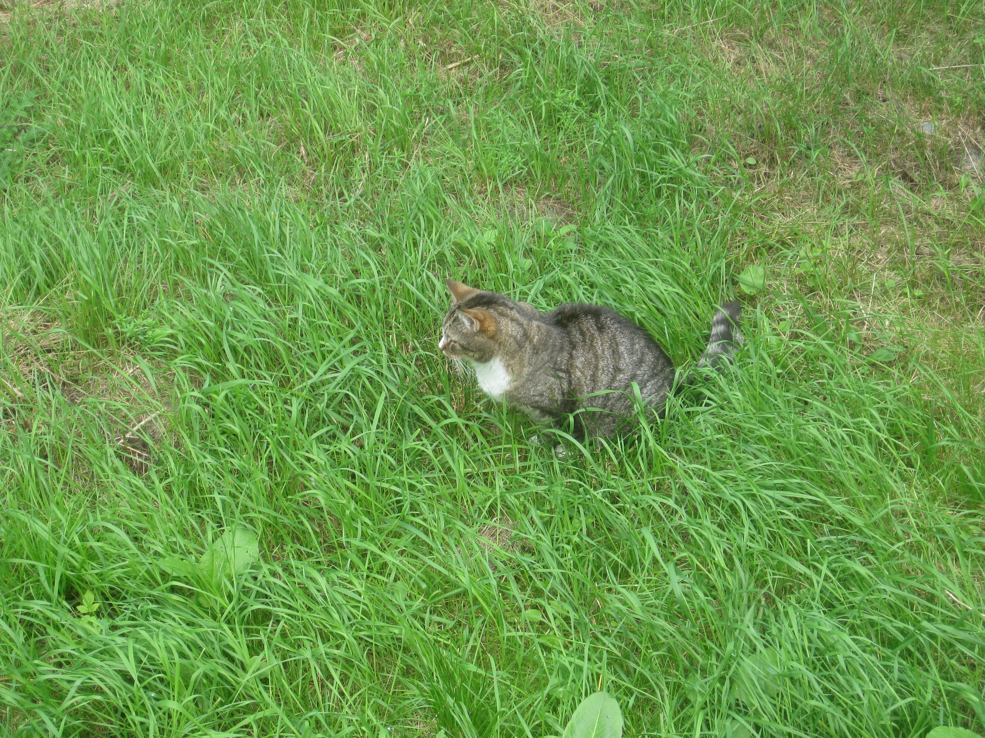 Varierande uppgifter i trädgården: kela med kattunge, bära verktyg, klättra i träd, göra färdigt stenkant, beundra prästkragar, städa berget, fotografera, mala vass, kela mera med kattunge… Moses far runt som Jehu i trädgården. Full fart upp i ett högt träd, och full fart ner – han borde ha slagit ihjäl sig, men katter verkar alltid landa på fötterna. Emellertid blir matte lite skärrad av detta upptåg, och bestämmer att kissen får vara inne på eftermiddagen.