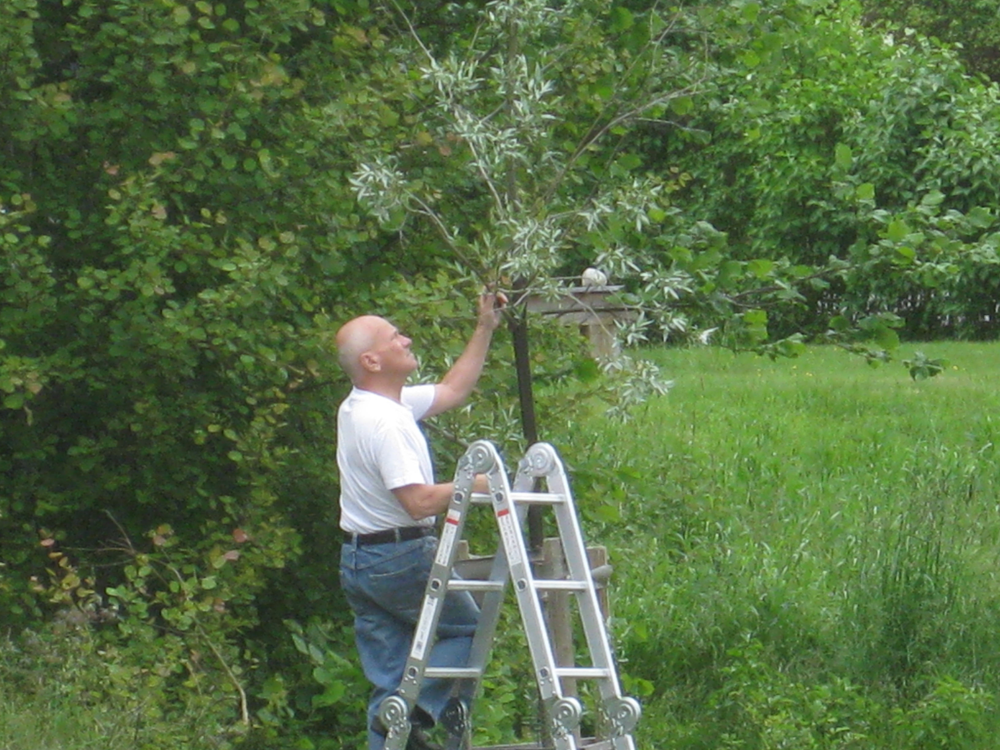 Rensning och trädklättring står på agendan. Brytbönorna växer till sig, och både Mozart och Händel blommar! Vi skördar också årets första gula tomat, av sorten ”Lemon tree” – något sent!