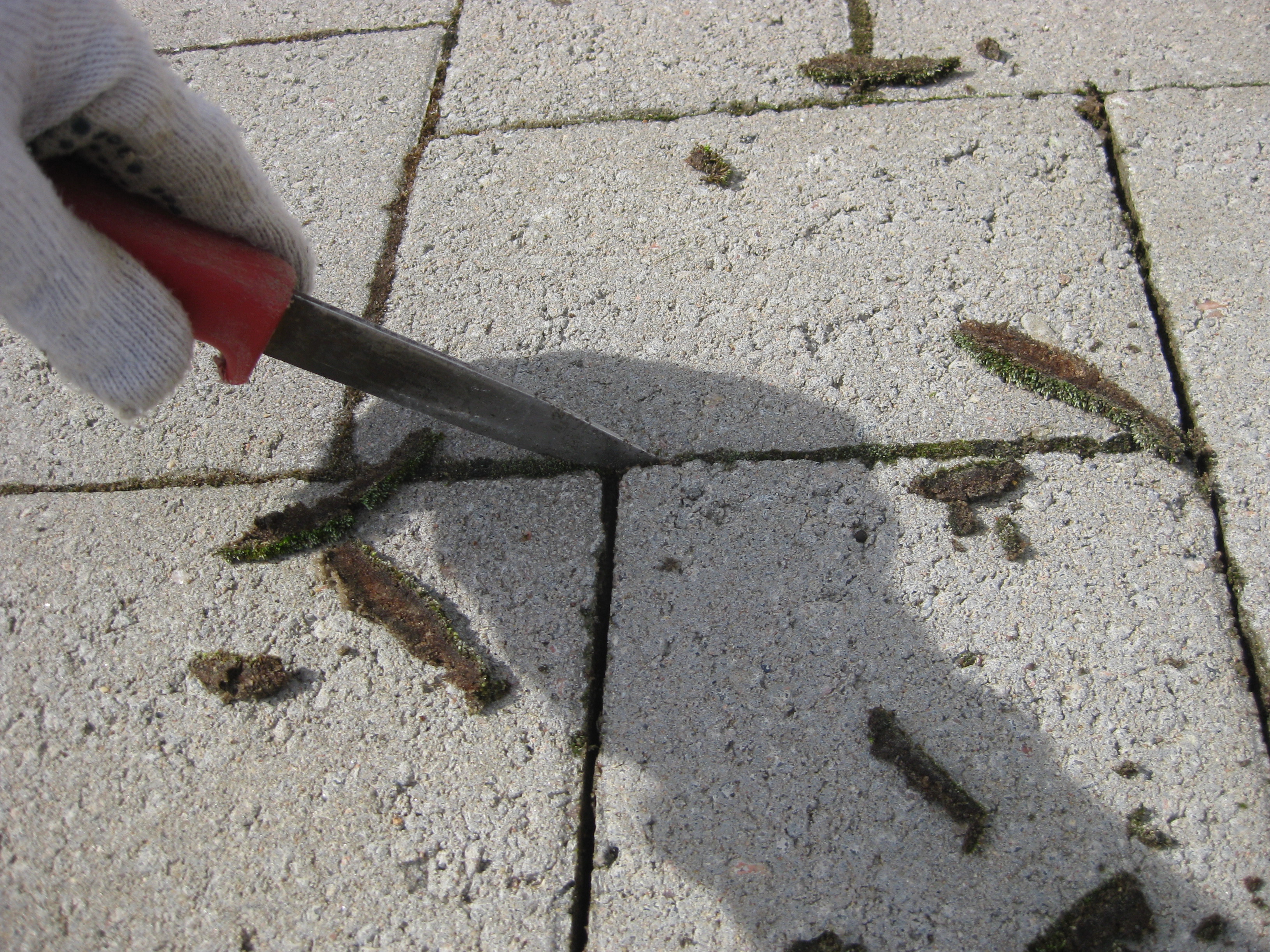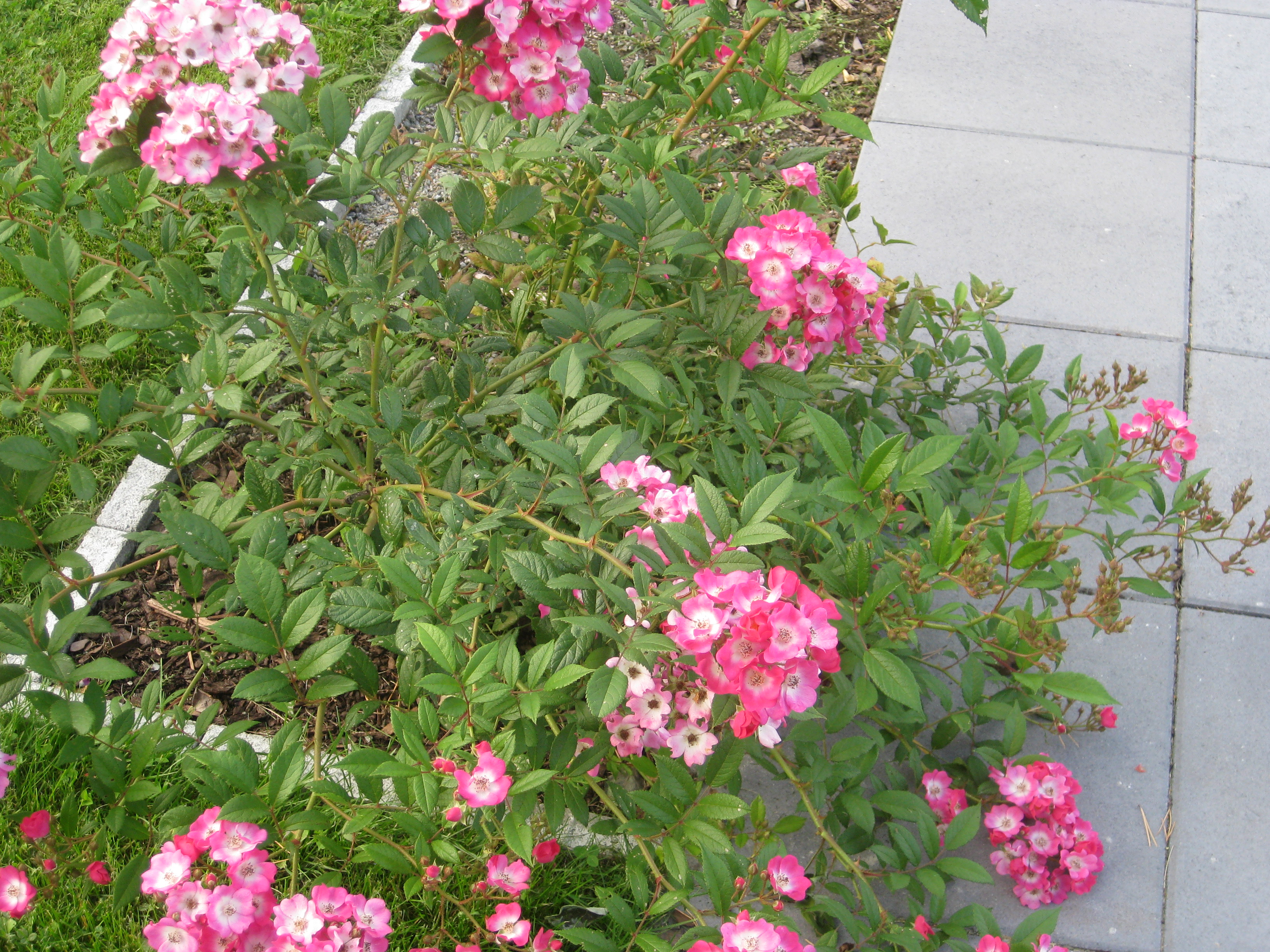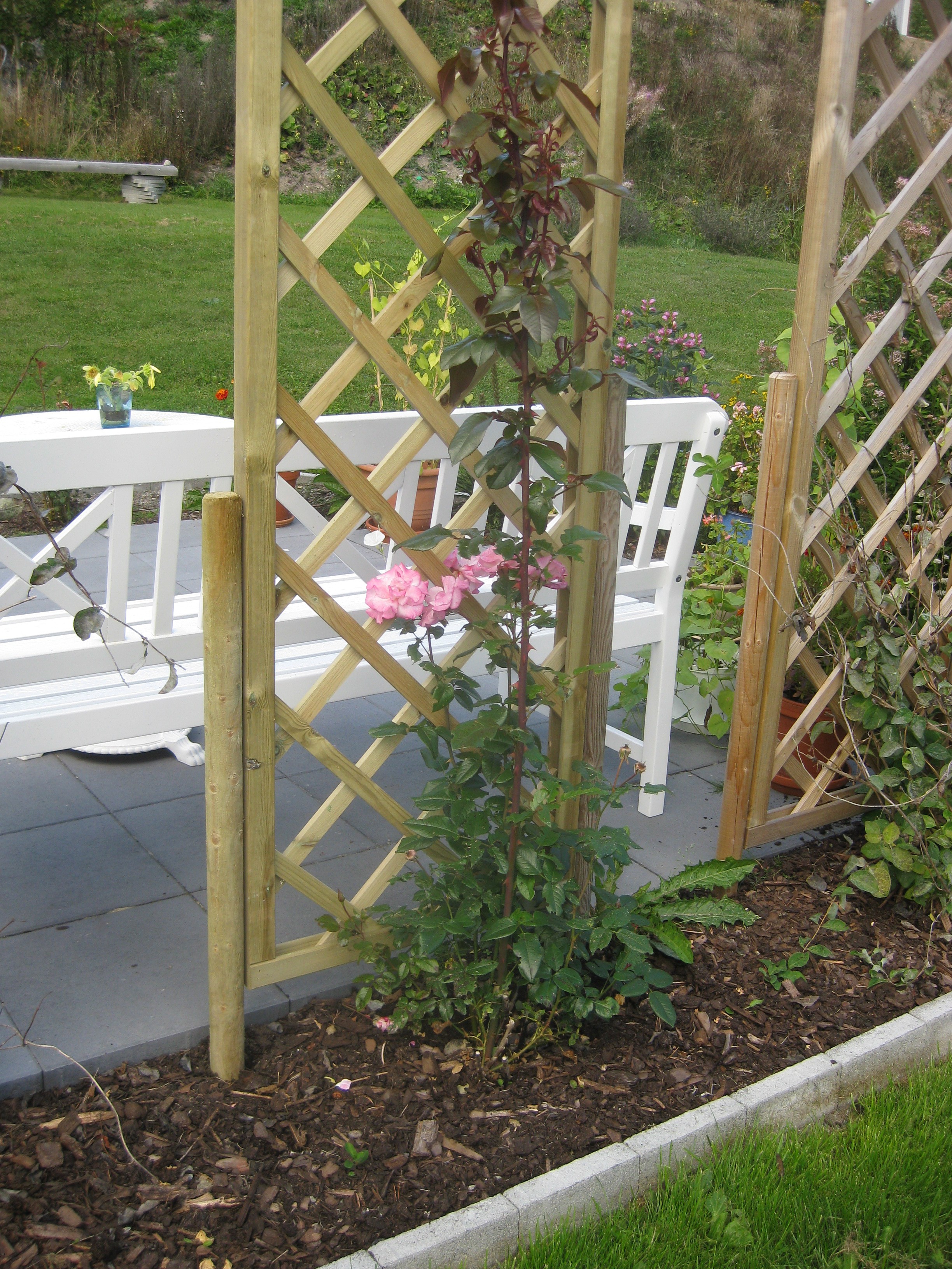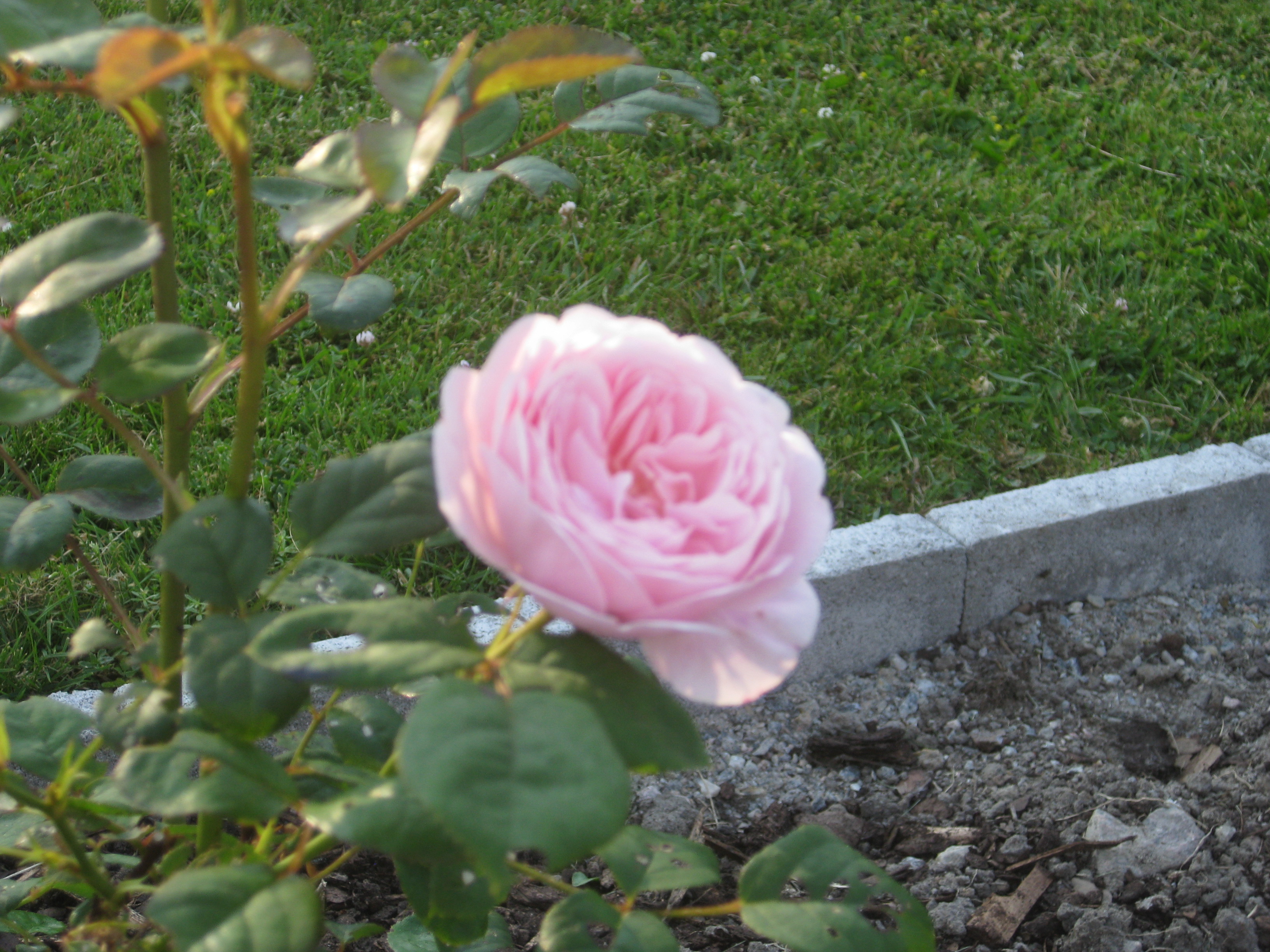 Jamen – ETT omöjligt projekt är i varje fall avklarat nu – rensa mellan stenplattorna! Herrn i huset håller på med något i verkstaden, och frun i huset klipper ner och städar bort gurkplantor ur växthuset. De har inte alls trivts i år, och det blev inte många gurkor. Alla våra rosor verkar dock trivas just nu.