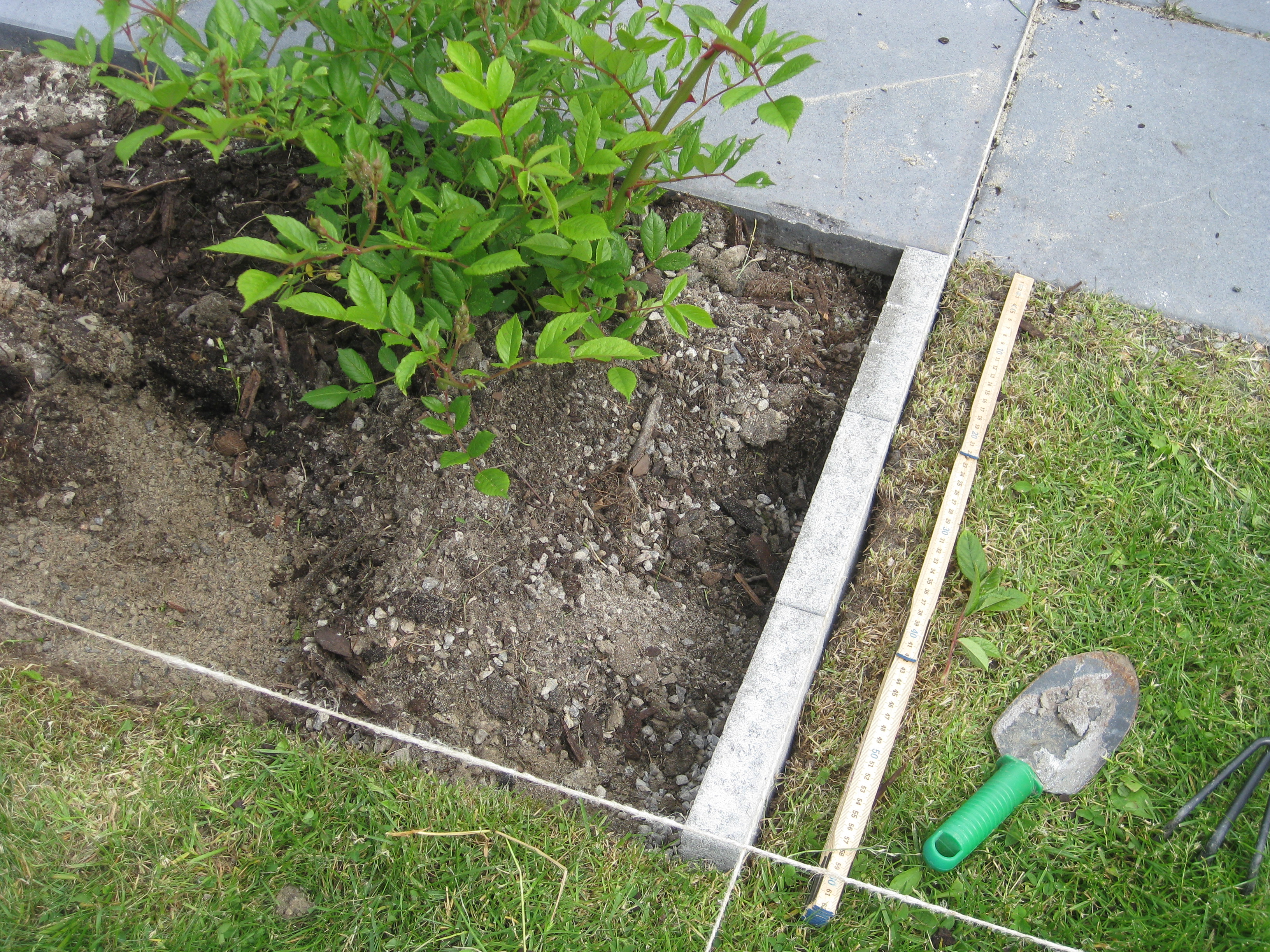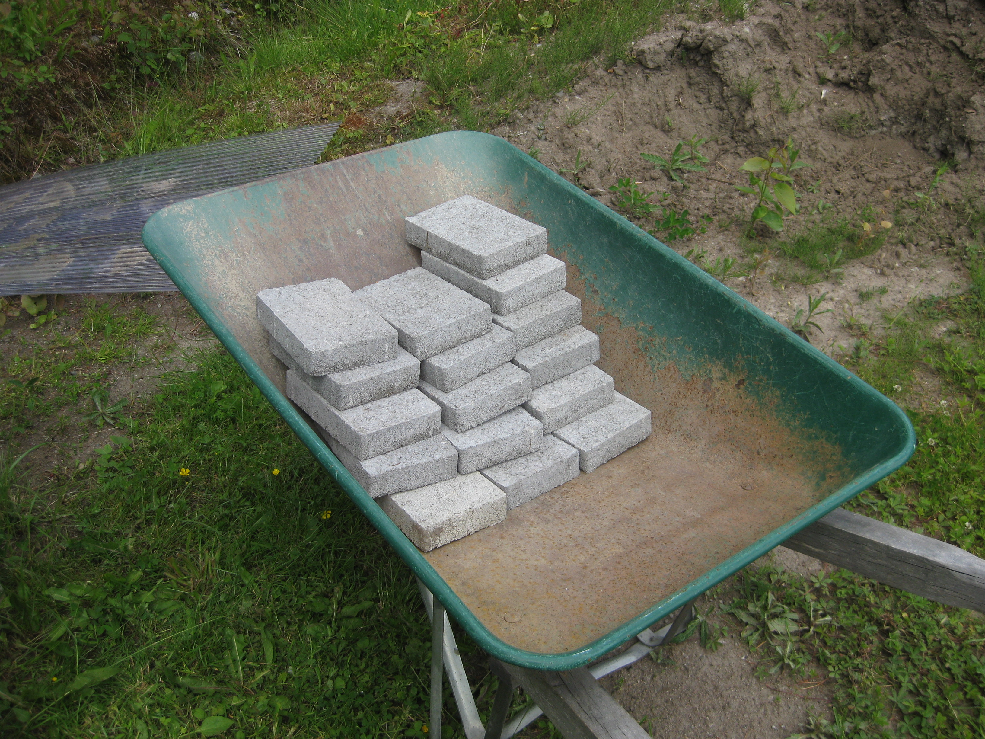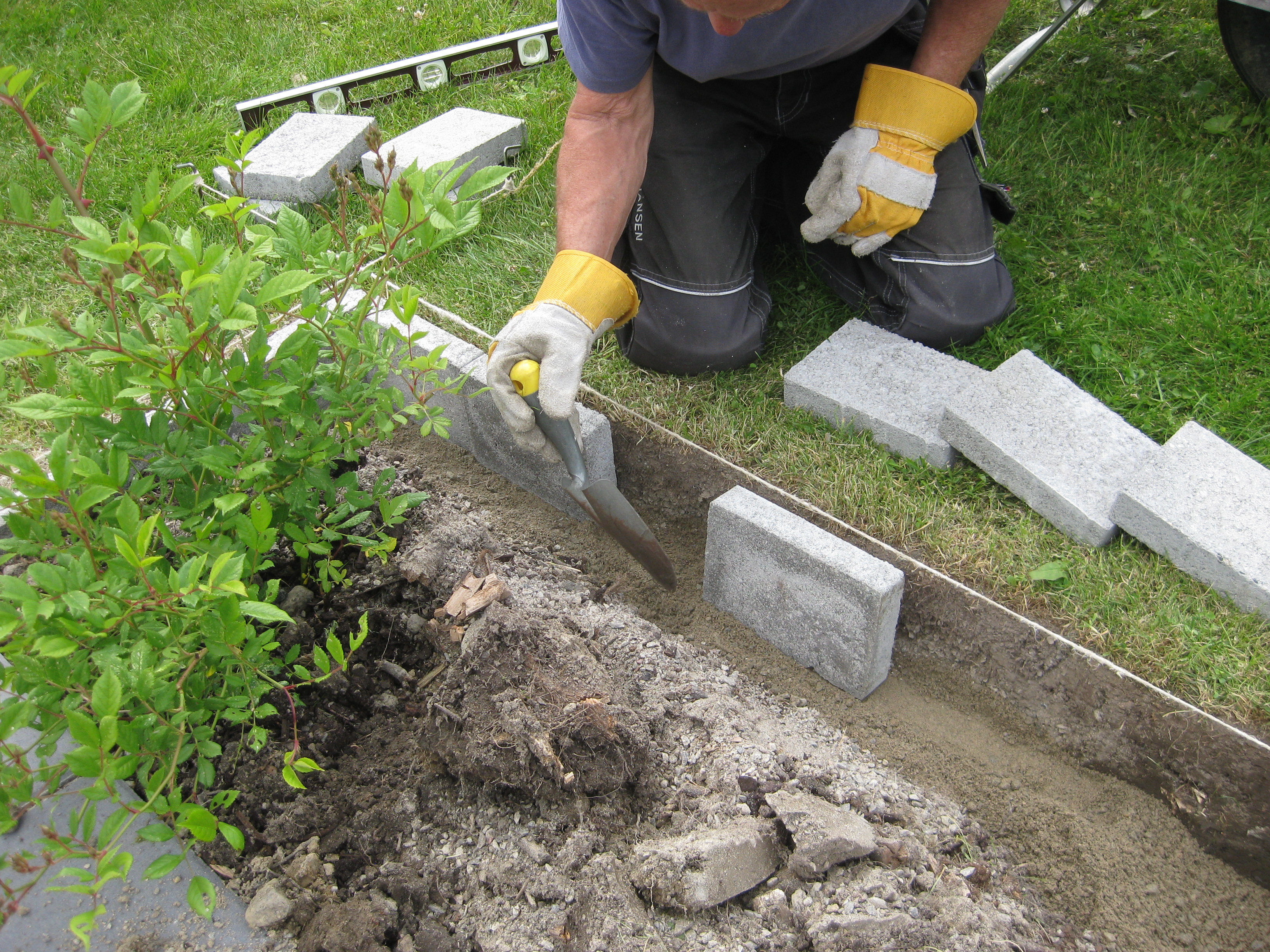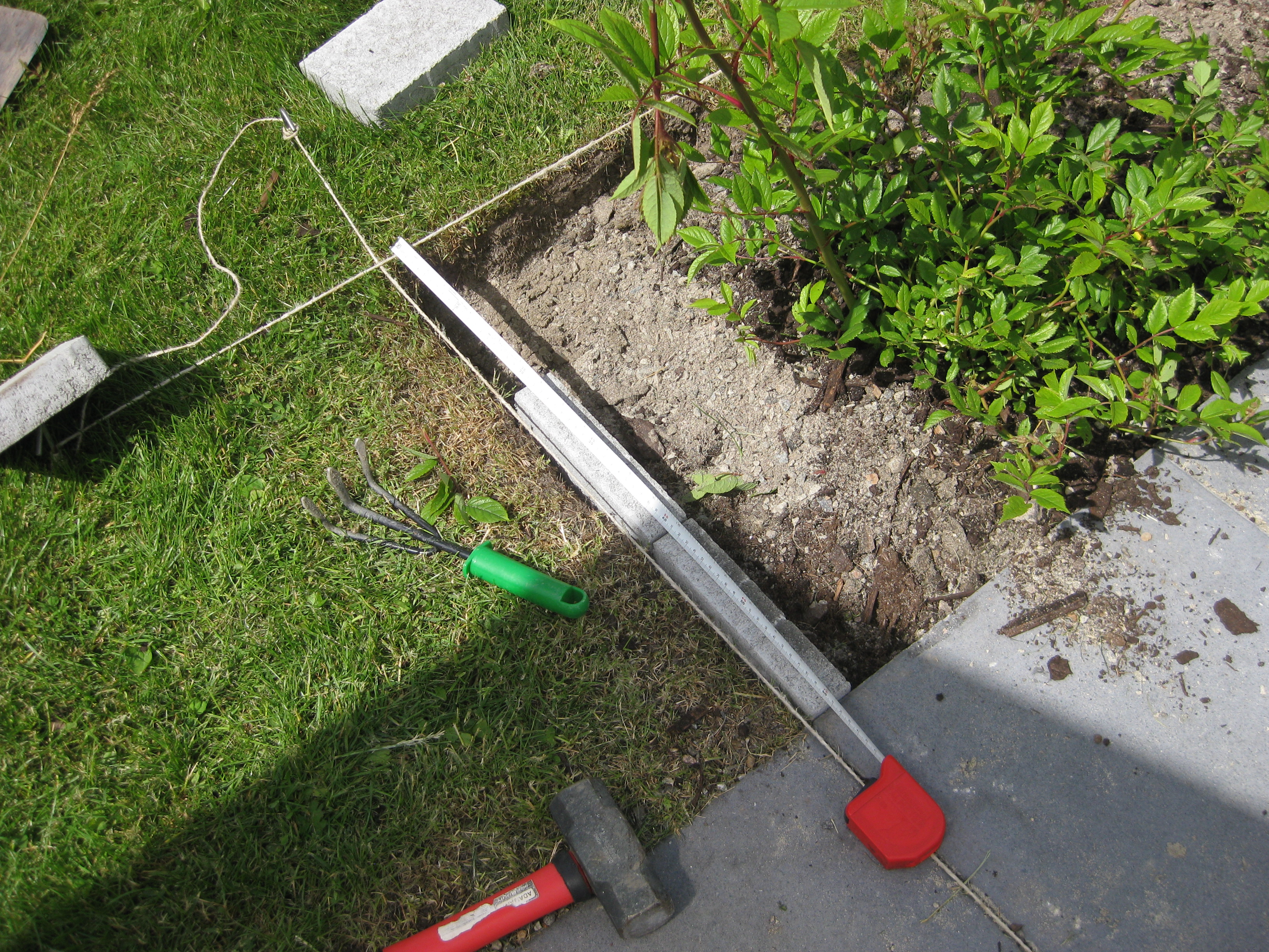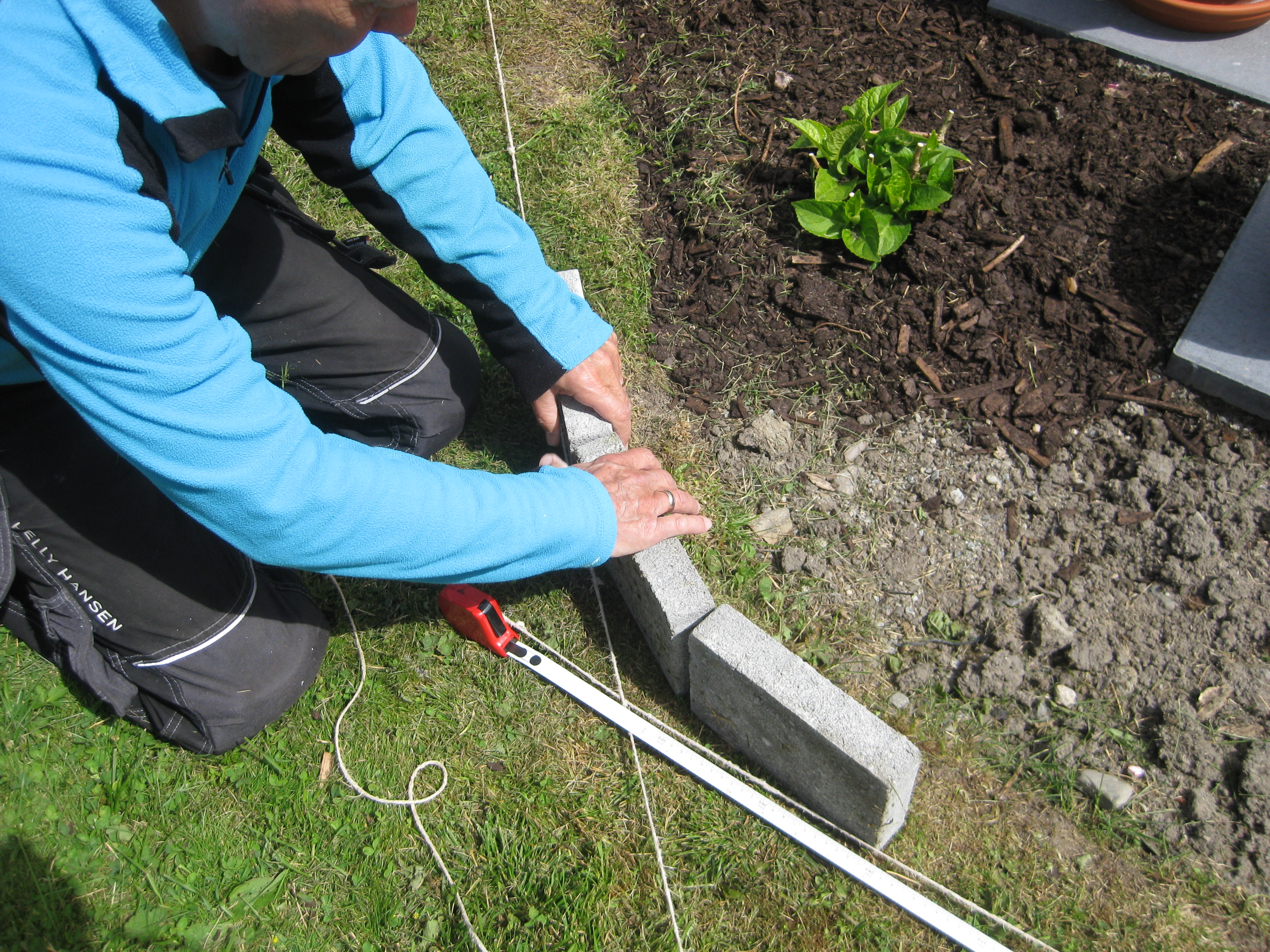 Lite olika verksamheter! Rensning – ogräsen sinar visst aldrig! Och så är tegelpannor och sten flyttade till baksidan.