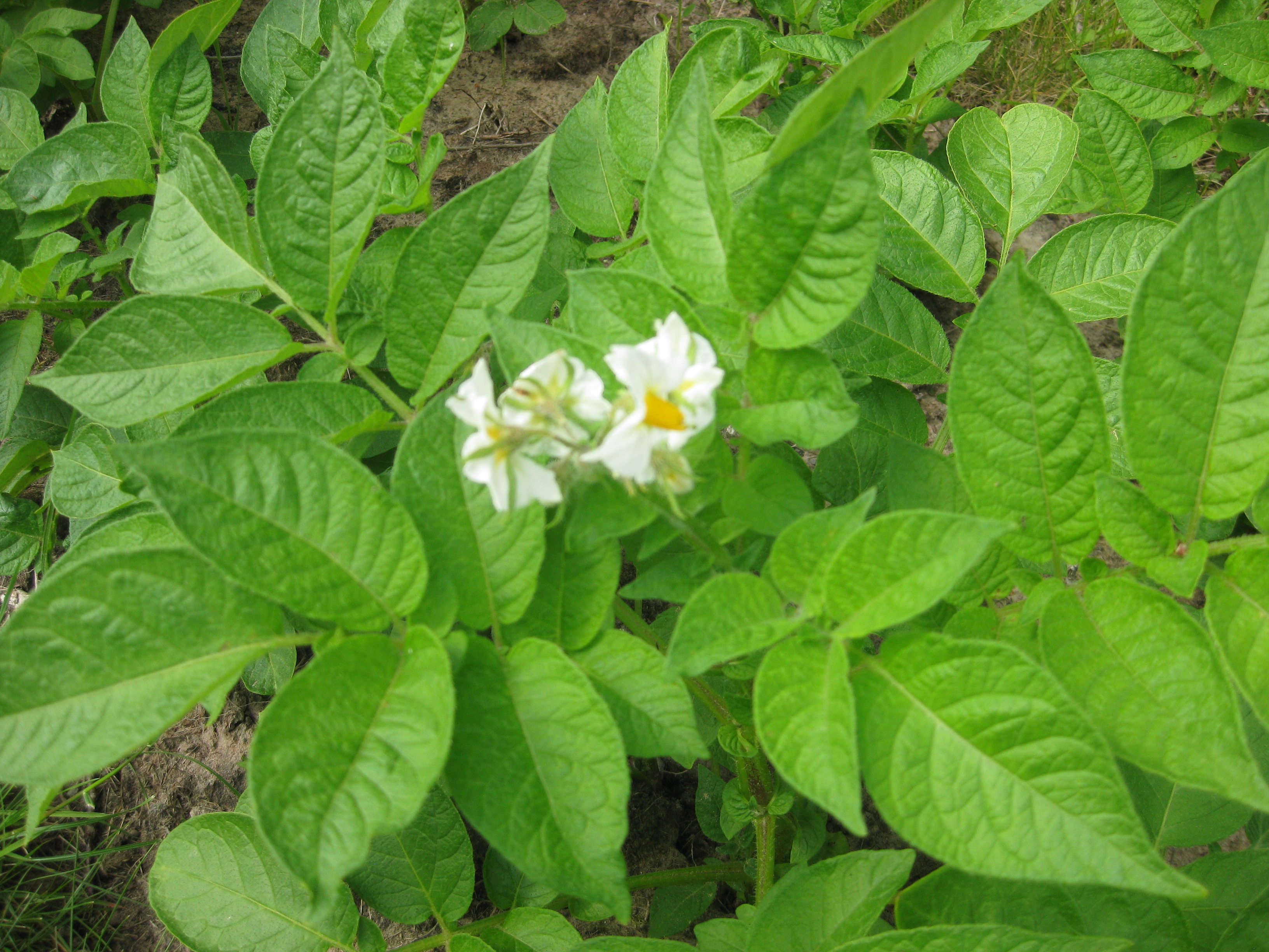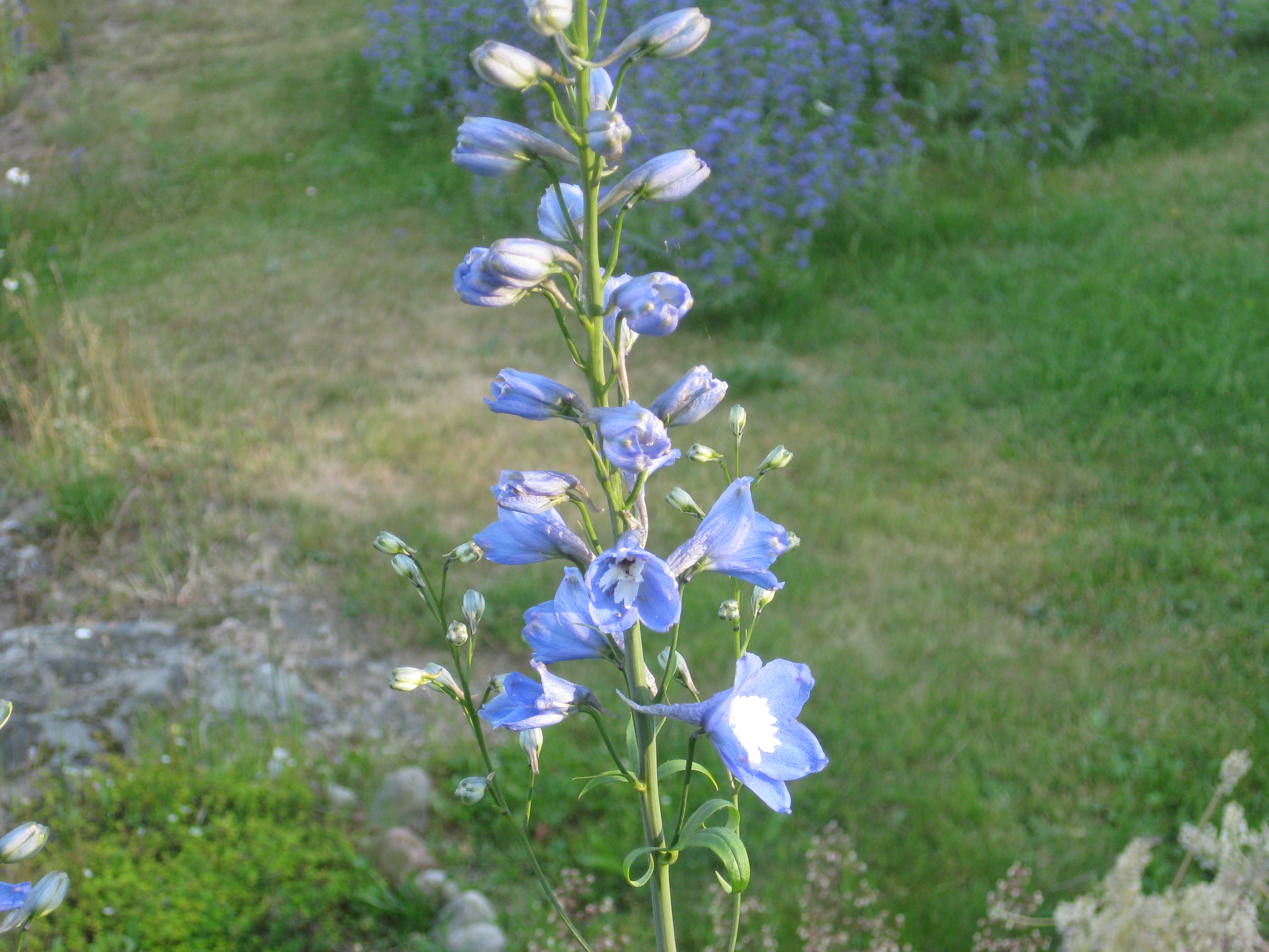 Potatisen blommar, liksom en av rosorna och en Riddarsporre!