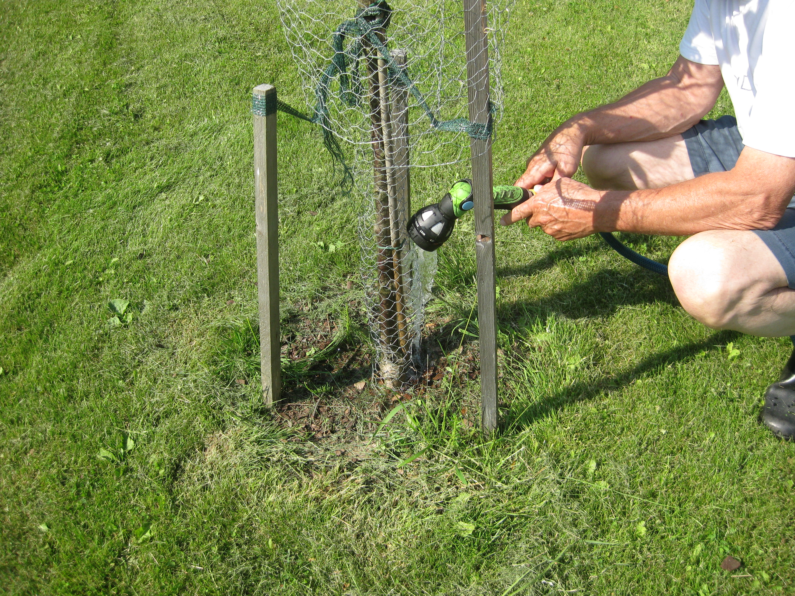 Vi planterar nävor. Katarina beundrar Håkans inköp! Brytsockerärterna blommar, liksom vallmon – men denna står ännu kvar i växthuset – skandal! Lite vattning i detsamma med ett öga på Moses.
