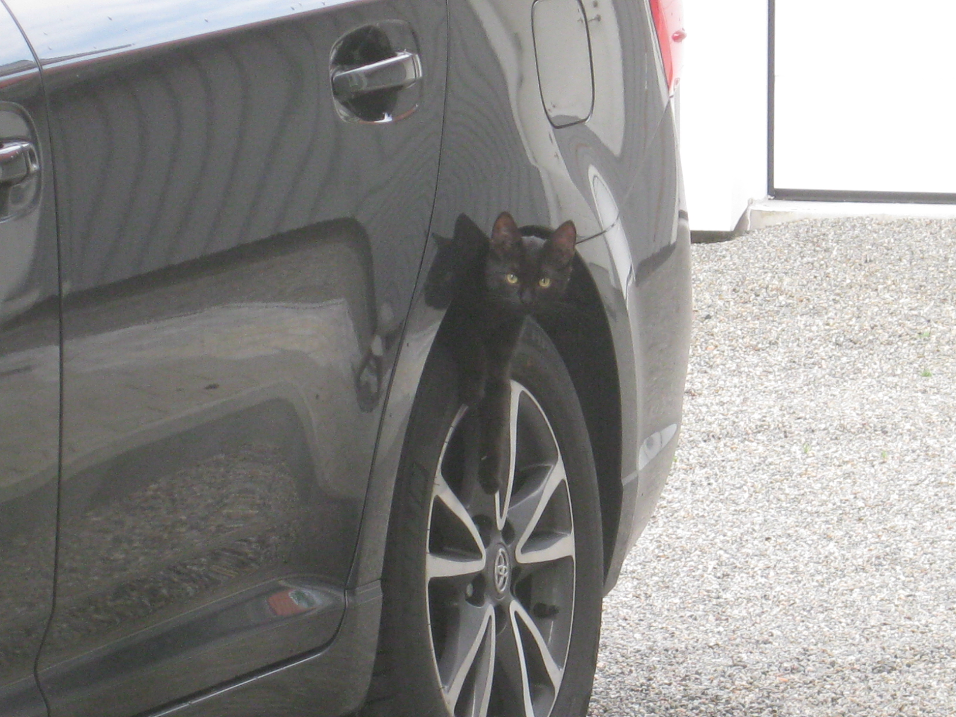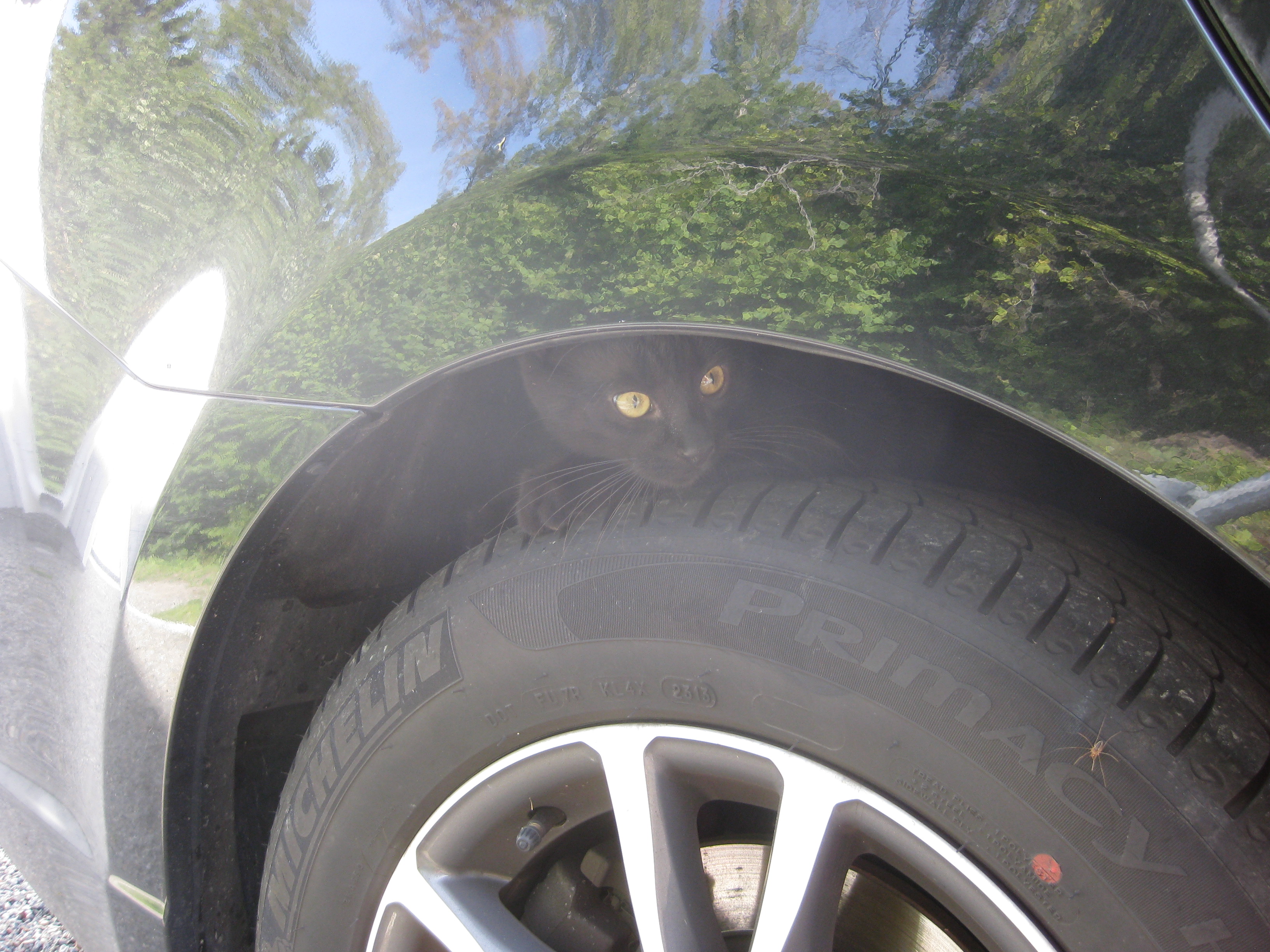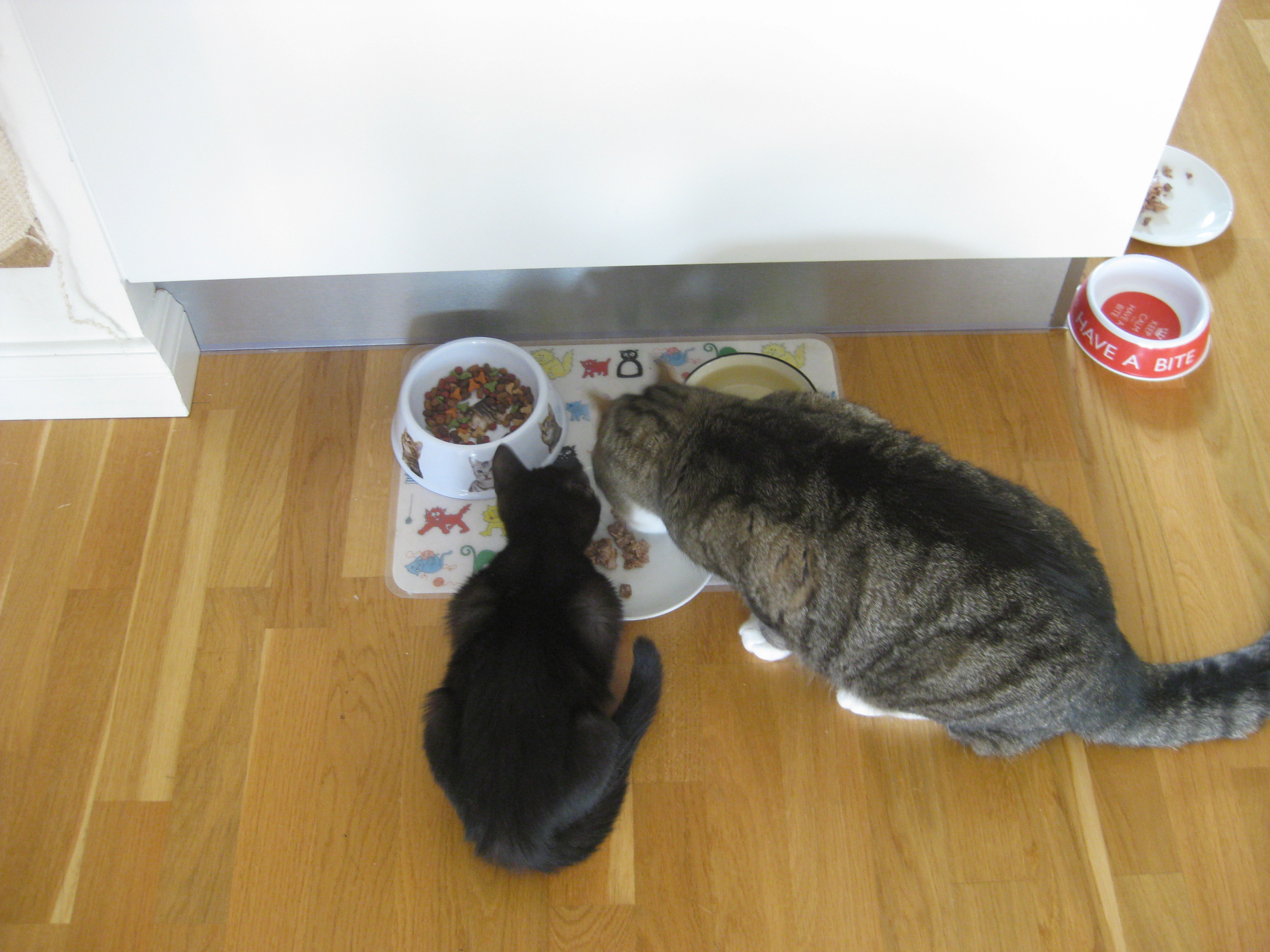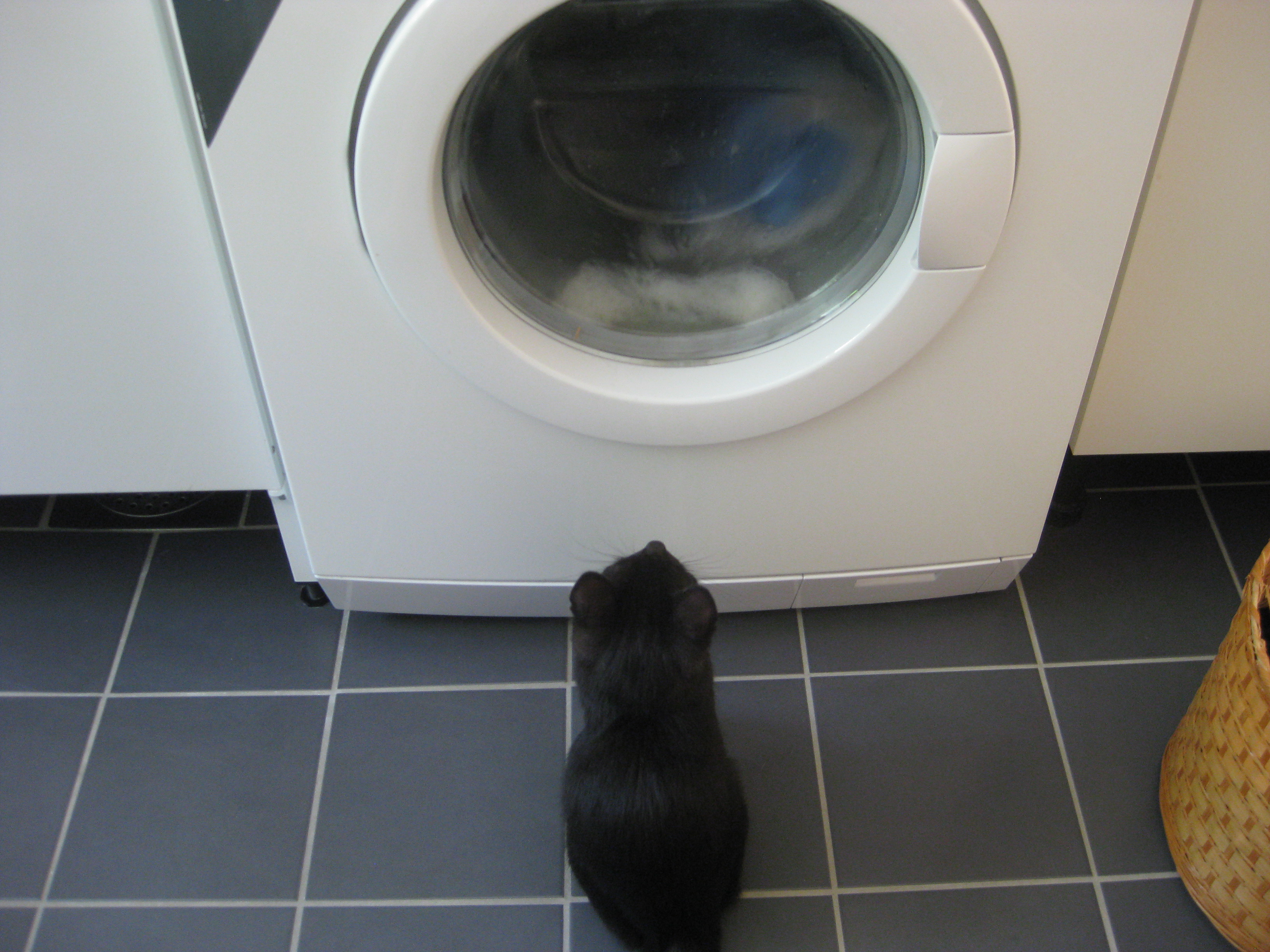 Hm. Moses hittar de mest dumma ställen att gömma sig på… Men herrn i verkstaden låter oss förstå vad det ska bli, det som han håller på med. Nu ska vi bara försöka komma överens om vilken färg det ska vara på den – som vanligt har vi olika uppfattningar om vad som passar bäst.