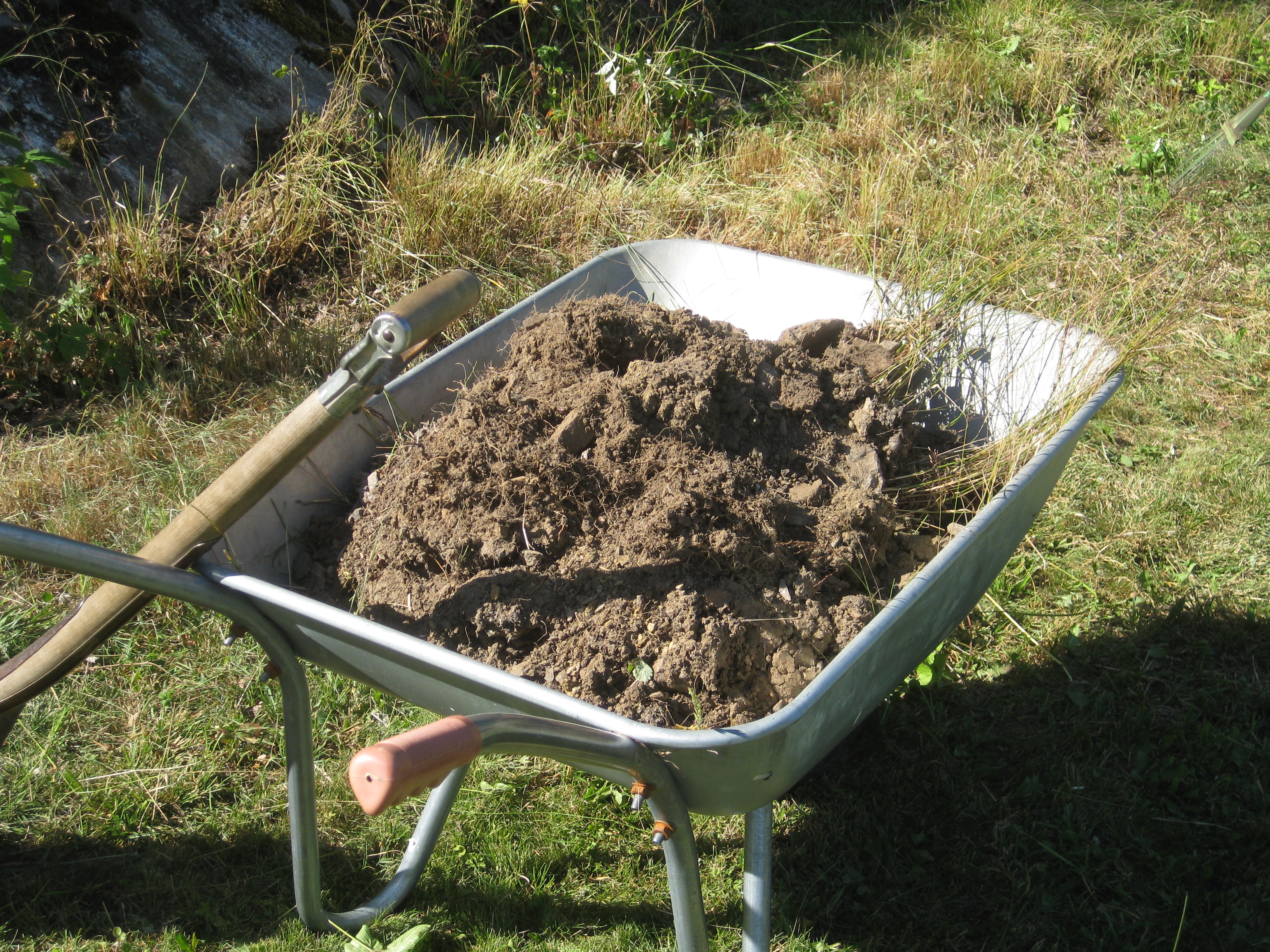 Vi går upp tidigt, tja, förhållandevis tidigt i varje fall. Väderprognosen lovar temperaturer på 25 grader, och vi tänker att det är bäst att starta tidigt innan det blir alldeles för varmt för att arbeta. Vi ger oss i kast med den jordhög som vi långsamt håller på att förflytta. Vi hinner en bit, det gör vi, men det Katarina trodde skulle vara gjort på en förmiddag kommer nog att ta ett par dagar i anspråk – betydligt mer om värmen håller i sig. Den sinkar arbetstakten betänkligt, och vattenpauserna blir många.