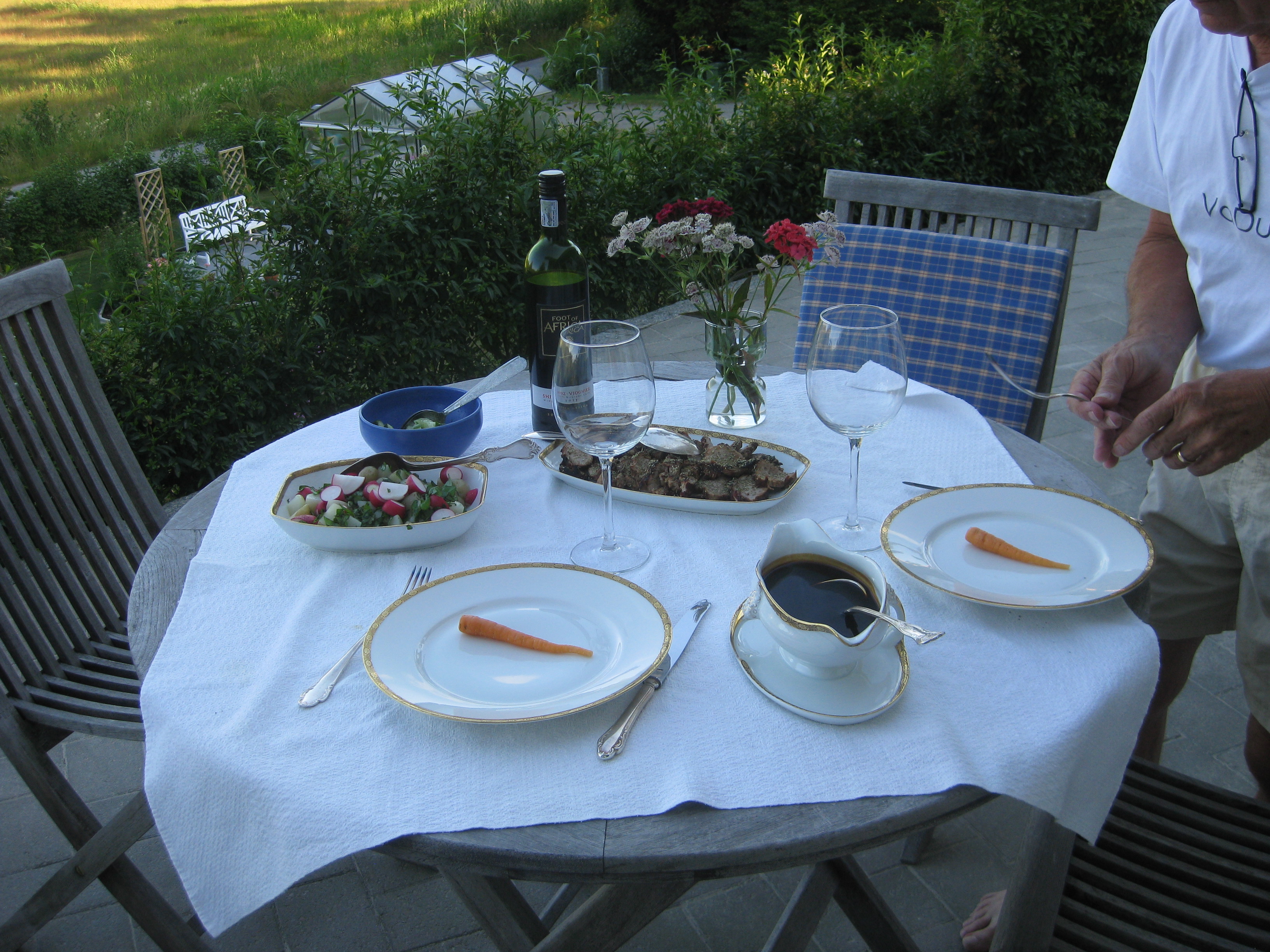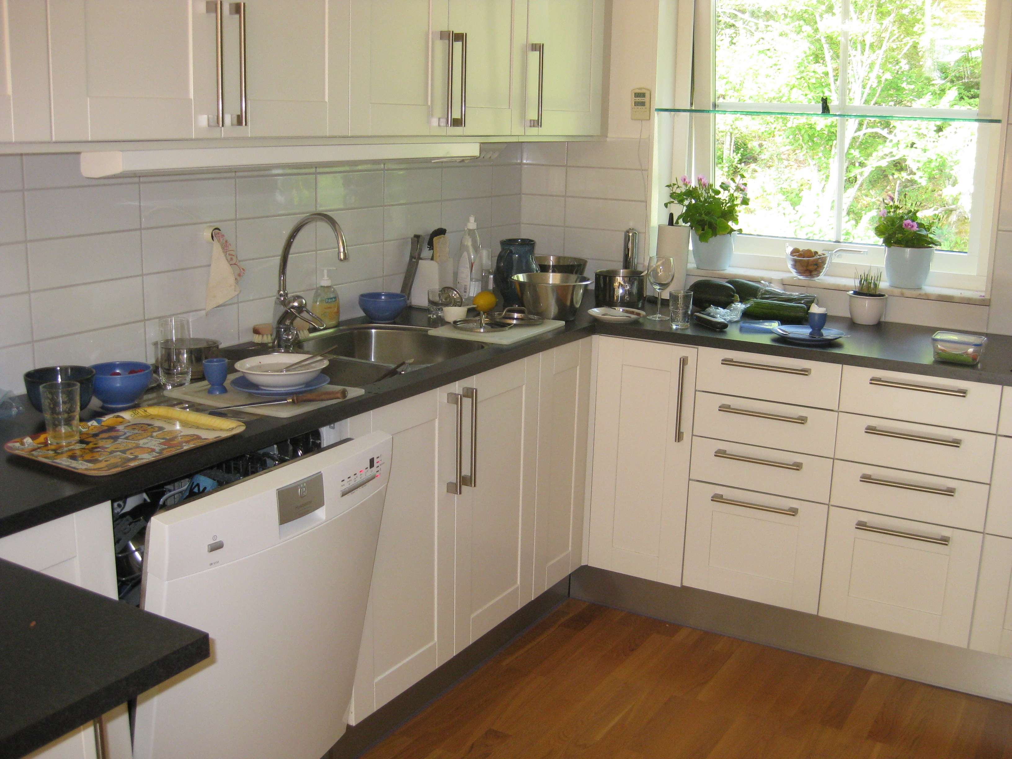 Storstädning pågår. Dammsugning och golvtvätt och fönsterputs. Vi skördar rädisor, gurka och ett par små morötter att förgylla dagens goda middag med.