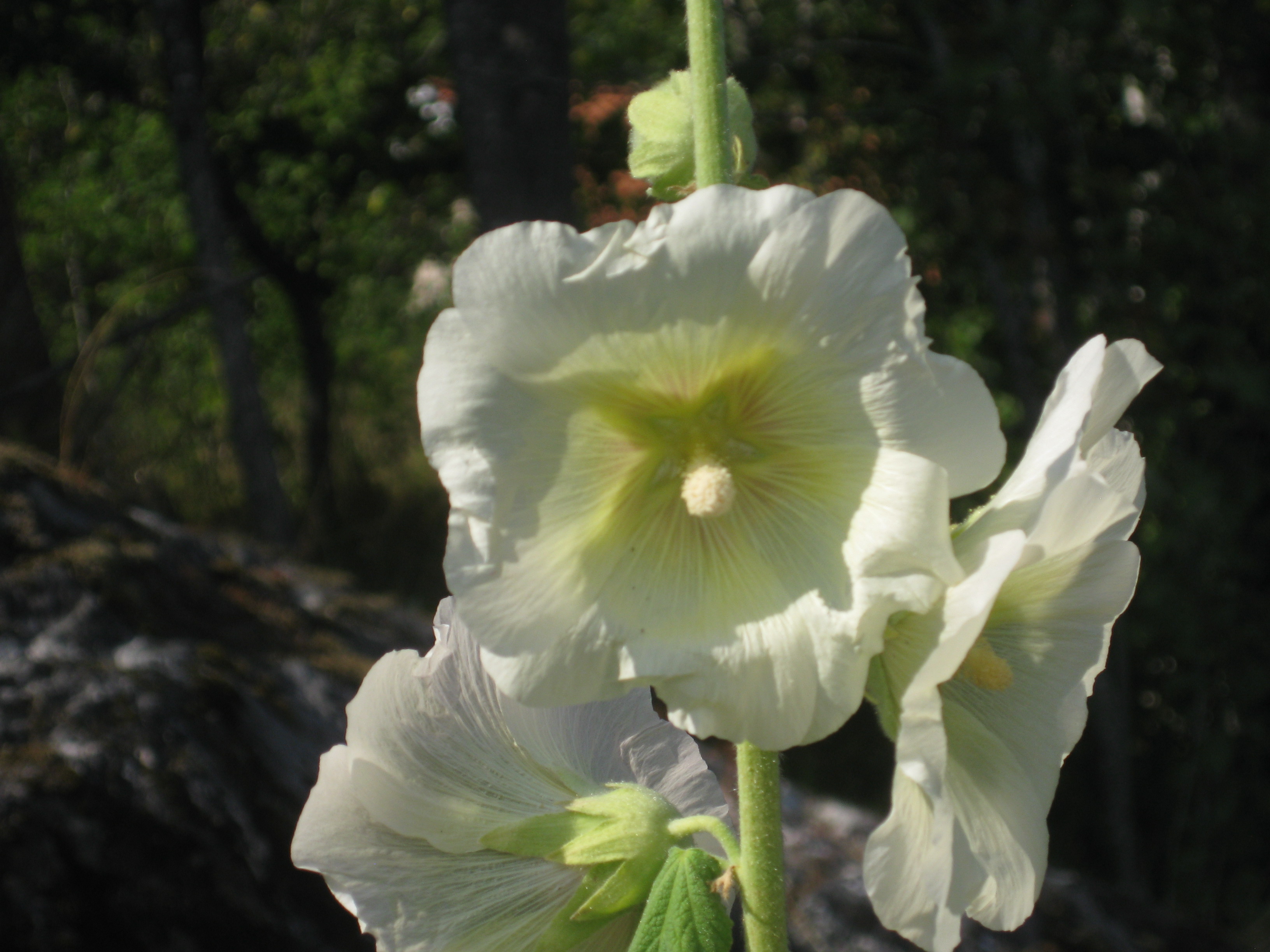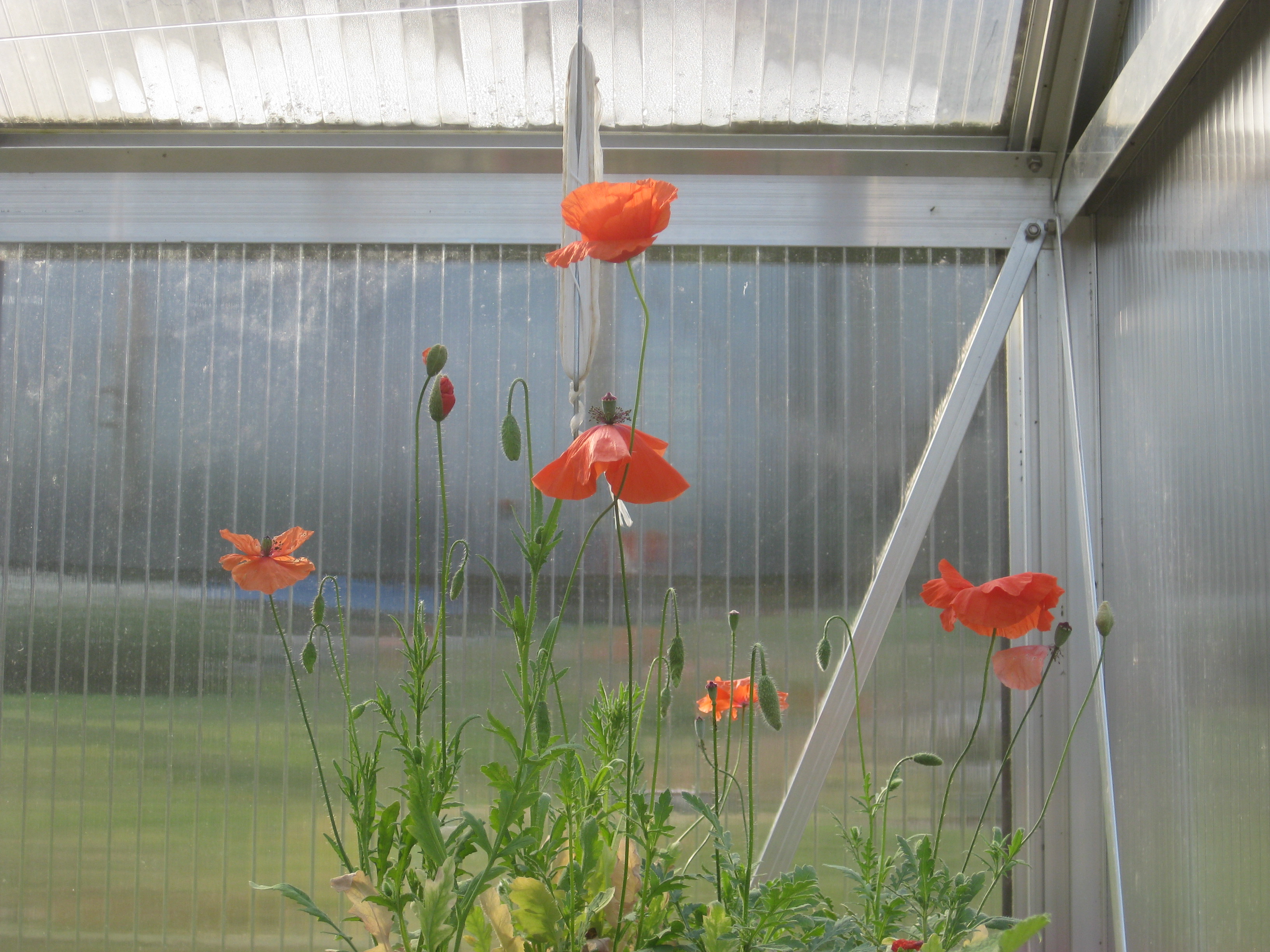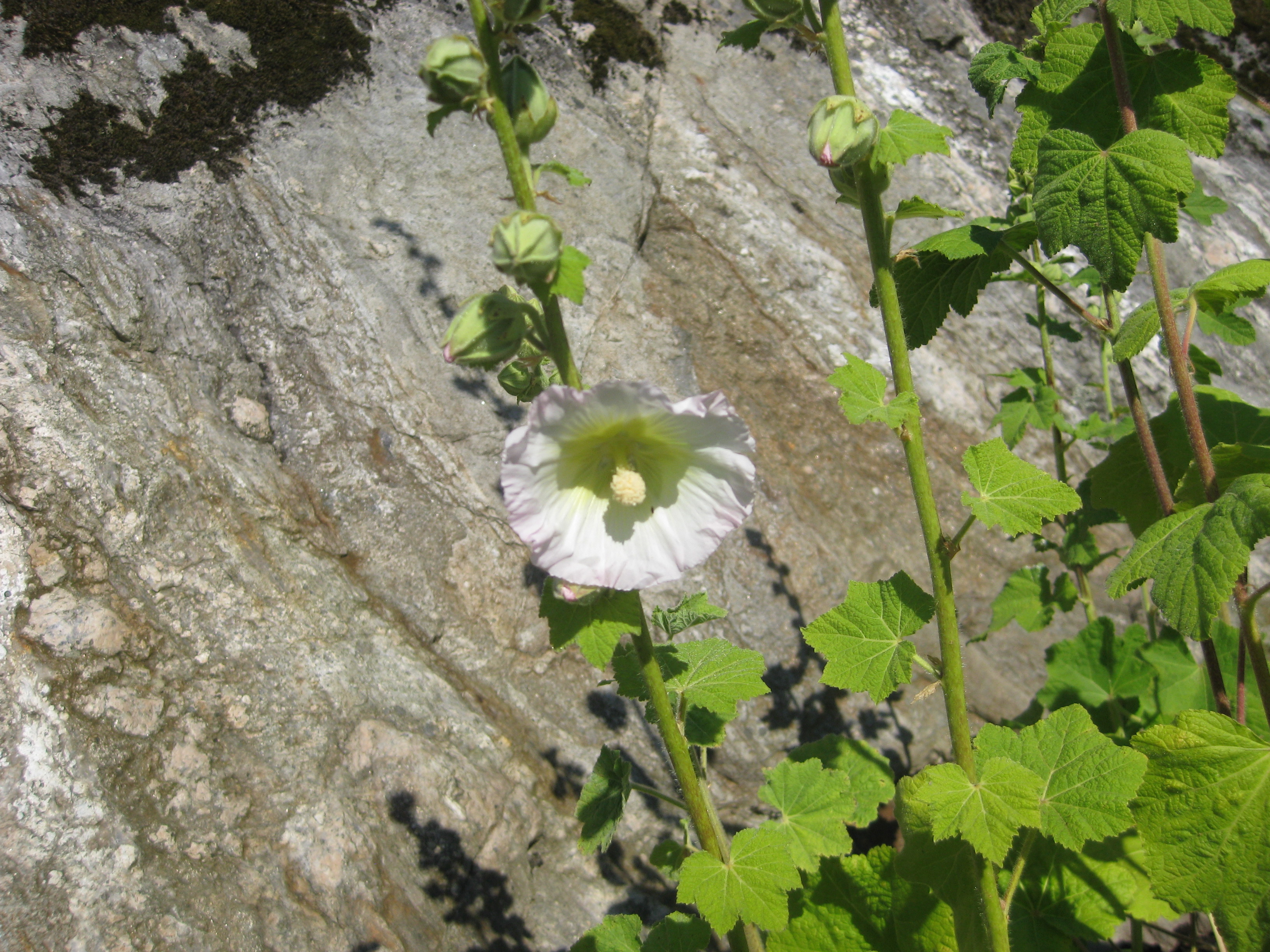 Semestern närmar sig sitt slut. En ”Sömntuta slår ut i växthuset – den borde varit planterad i slänten för längesedan – men avdelningen för omöjliga projekt har haft så mycket att göra…. Den första Stockrosen har slagit ur också! 😀