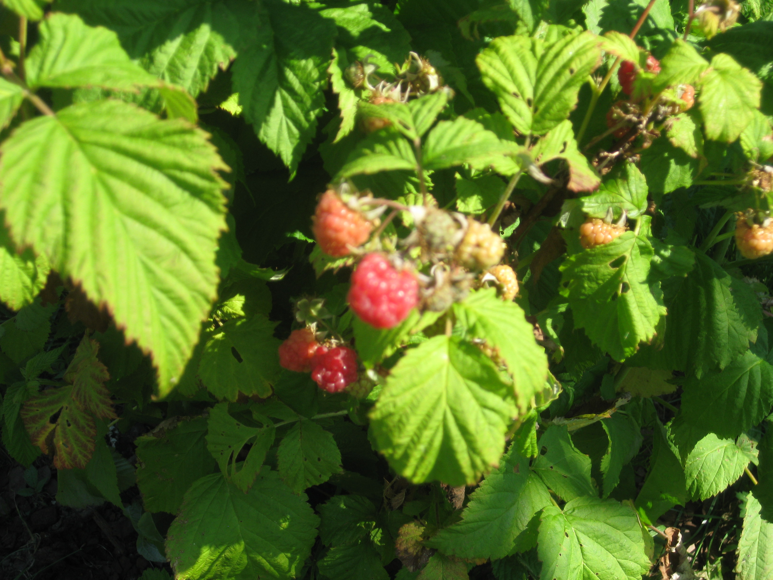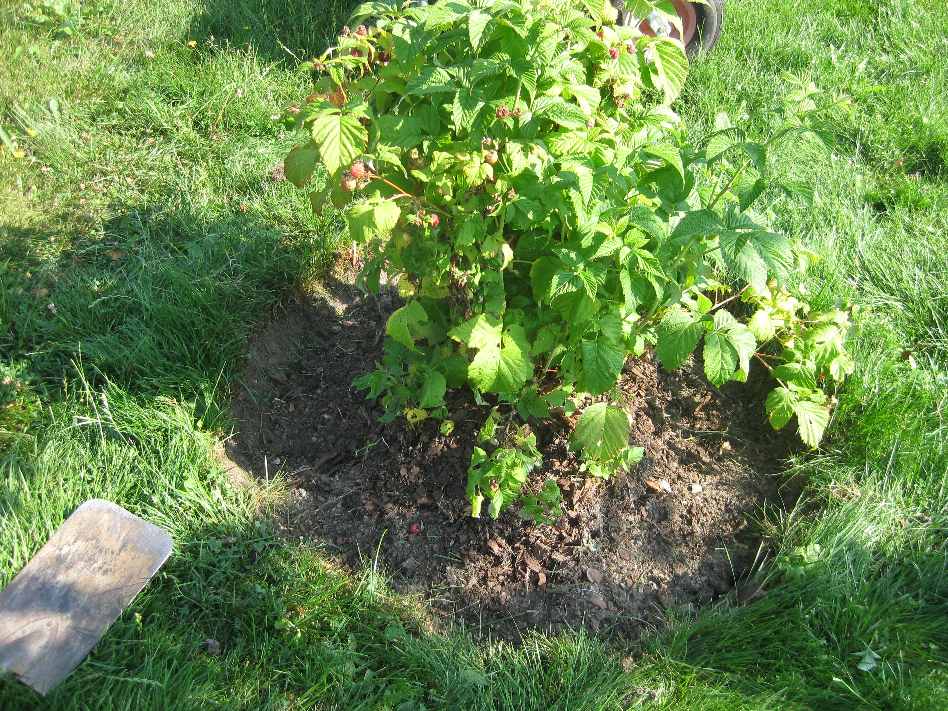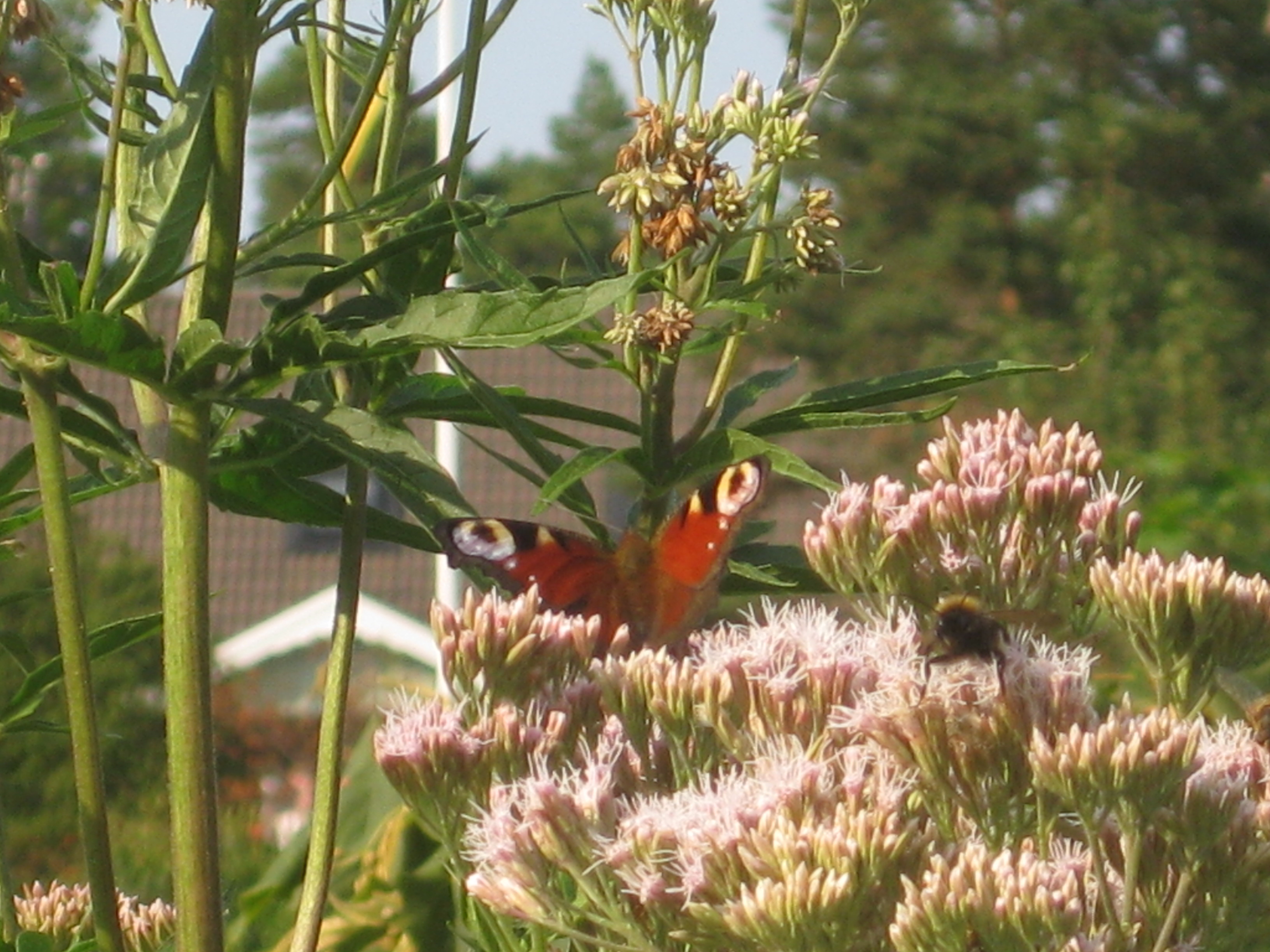 Vi orkar inte så mycket dessa varma dagar. En långsam morgonpromenad bland trädgårdens blommor., plockning av lite hallon och vinbär, gräva ut runt hallon/vinbärsbuskarna och lägga på mer täckbark, slå gräs. Framåt lunchtid är det så varmt att vi blir tvungna att retirera in i skuggan, där vi spenderar hela eftermiddagen halvsovandes.