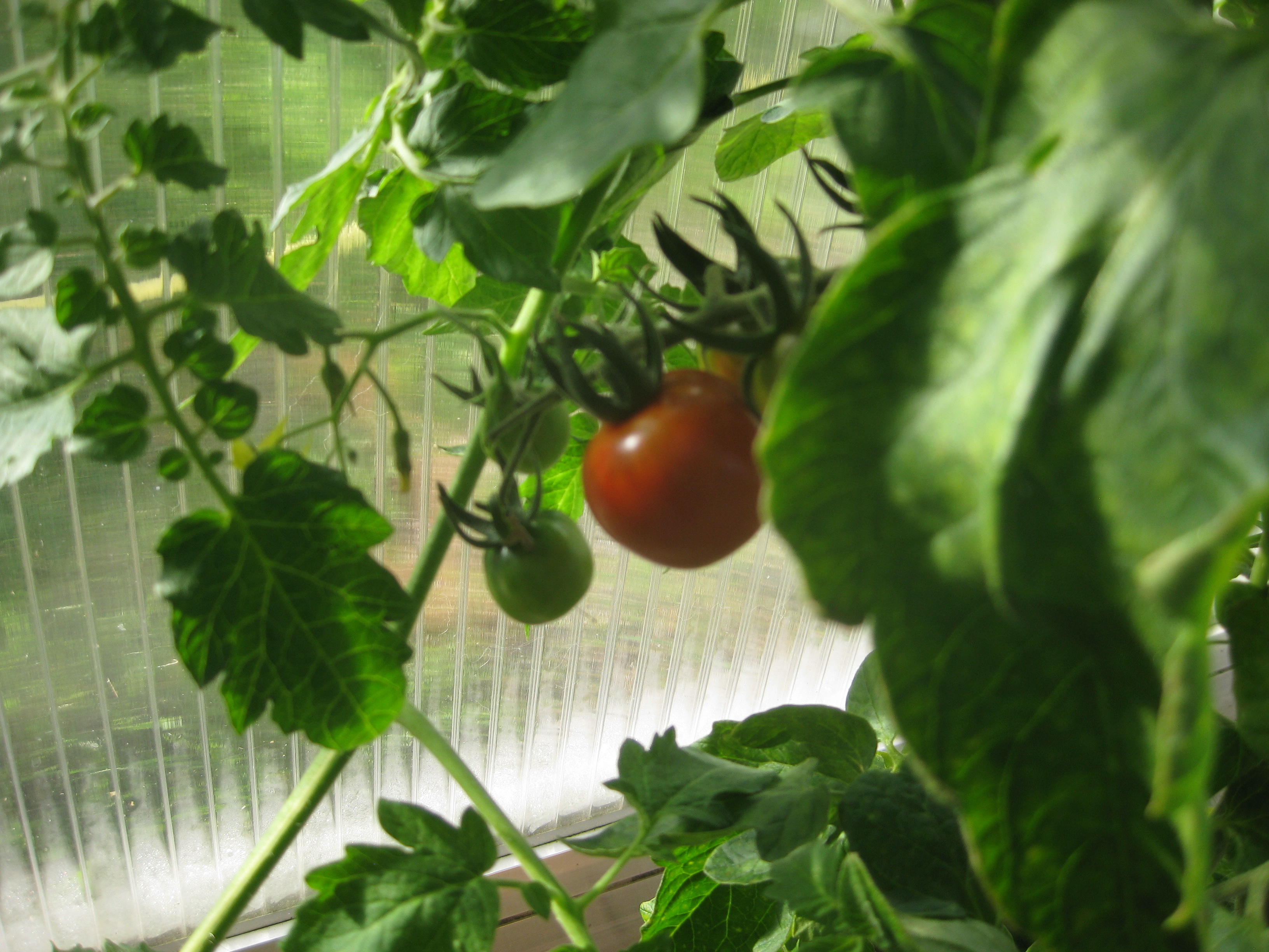 Vi ger oss i kast med projekt flytta jordhögen. Det är inte gjort på en kafferast, inte ens på en förmiddag, som den mer optimistiska av oss tror… :-/ Men i växthuset anar vi en gurkmelon, och ÄNTLIGEN håller tomaterna på att skifta till rött. I år tog det tid.