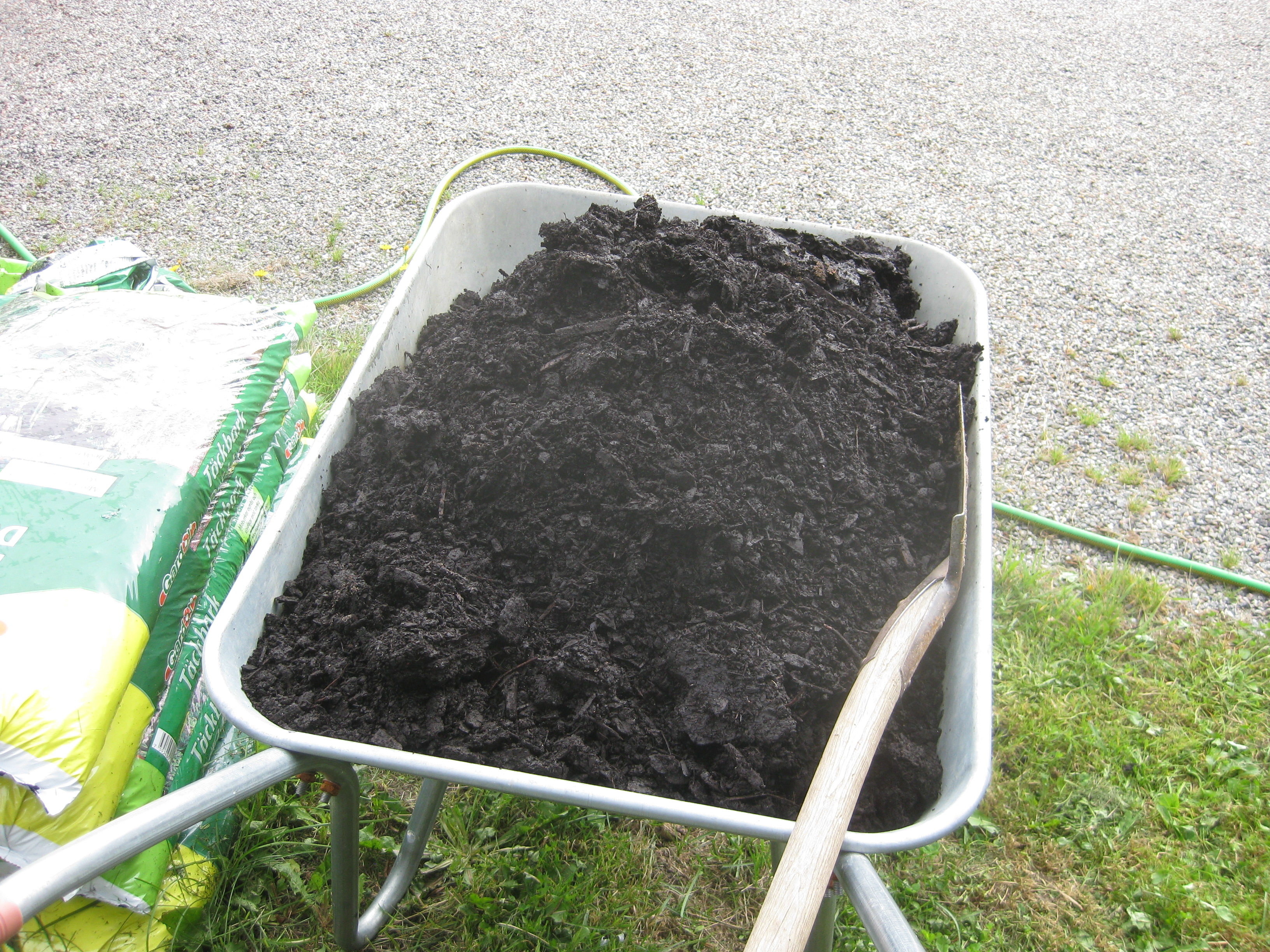 Vi griper oss an komposthögen som långsamt kommer att förflyttas till baksidan av norra garaget för att fylla upp lite. Vi gräver vidare i potatislandet oxå.