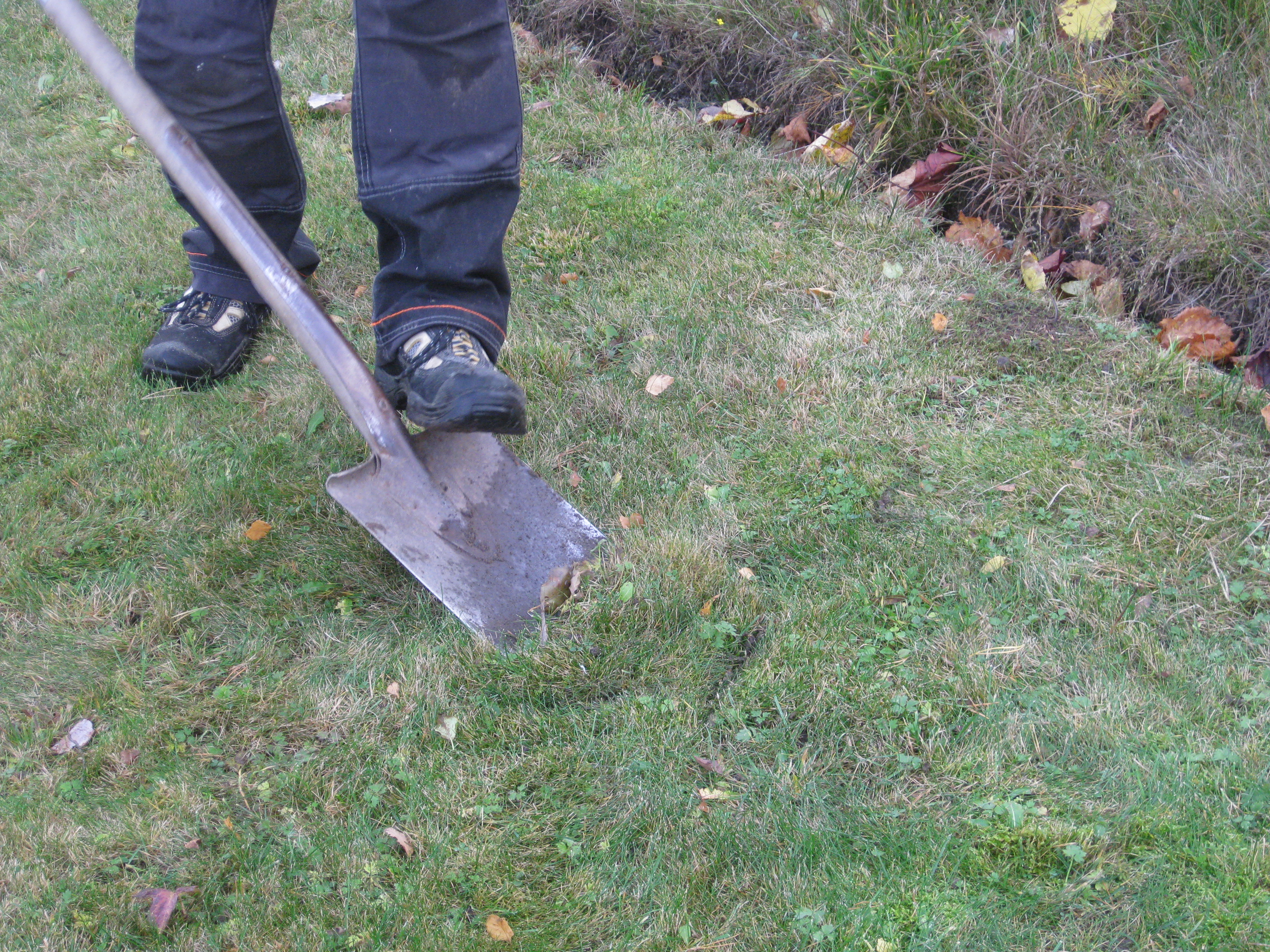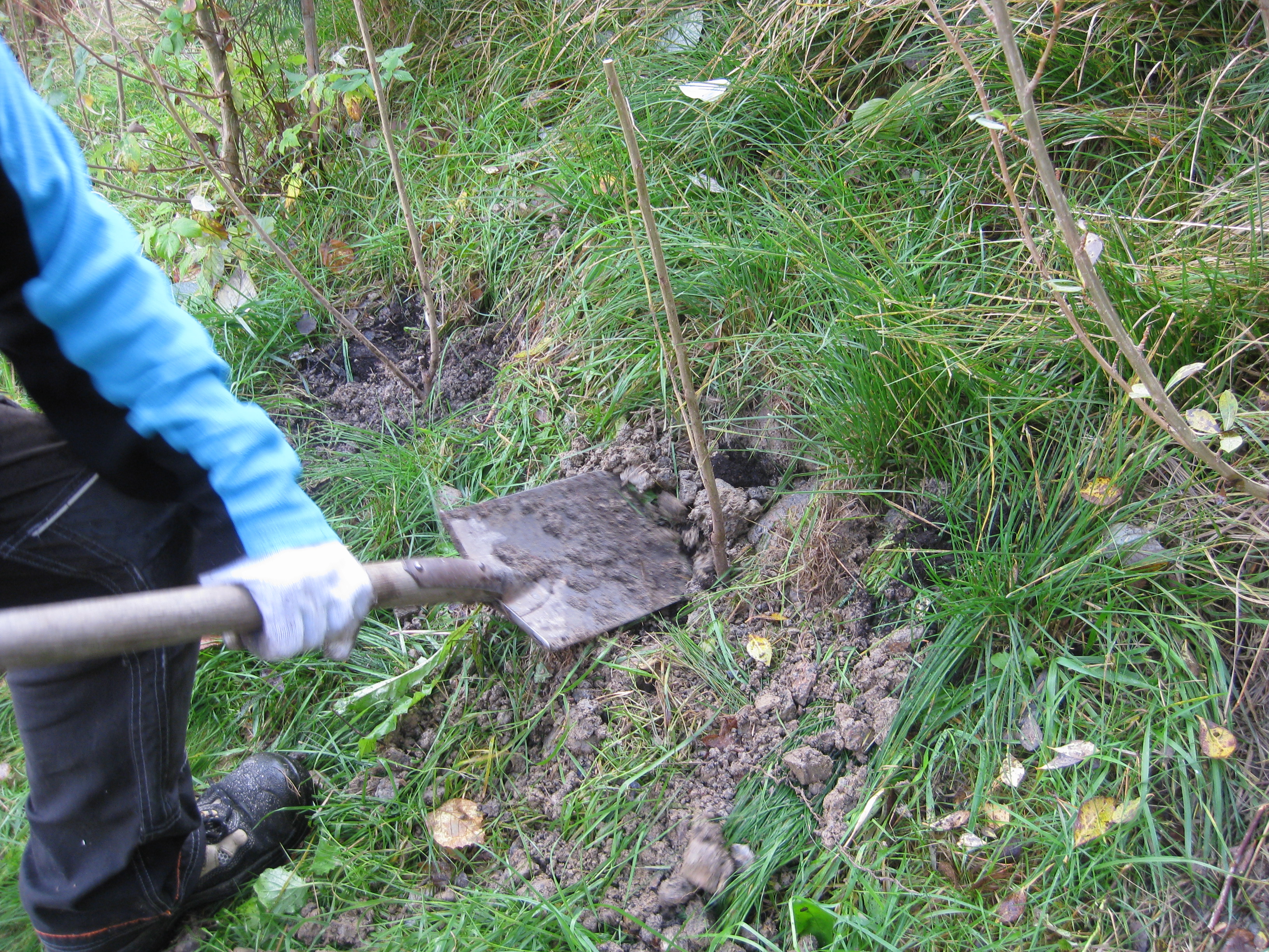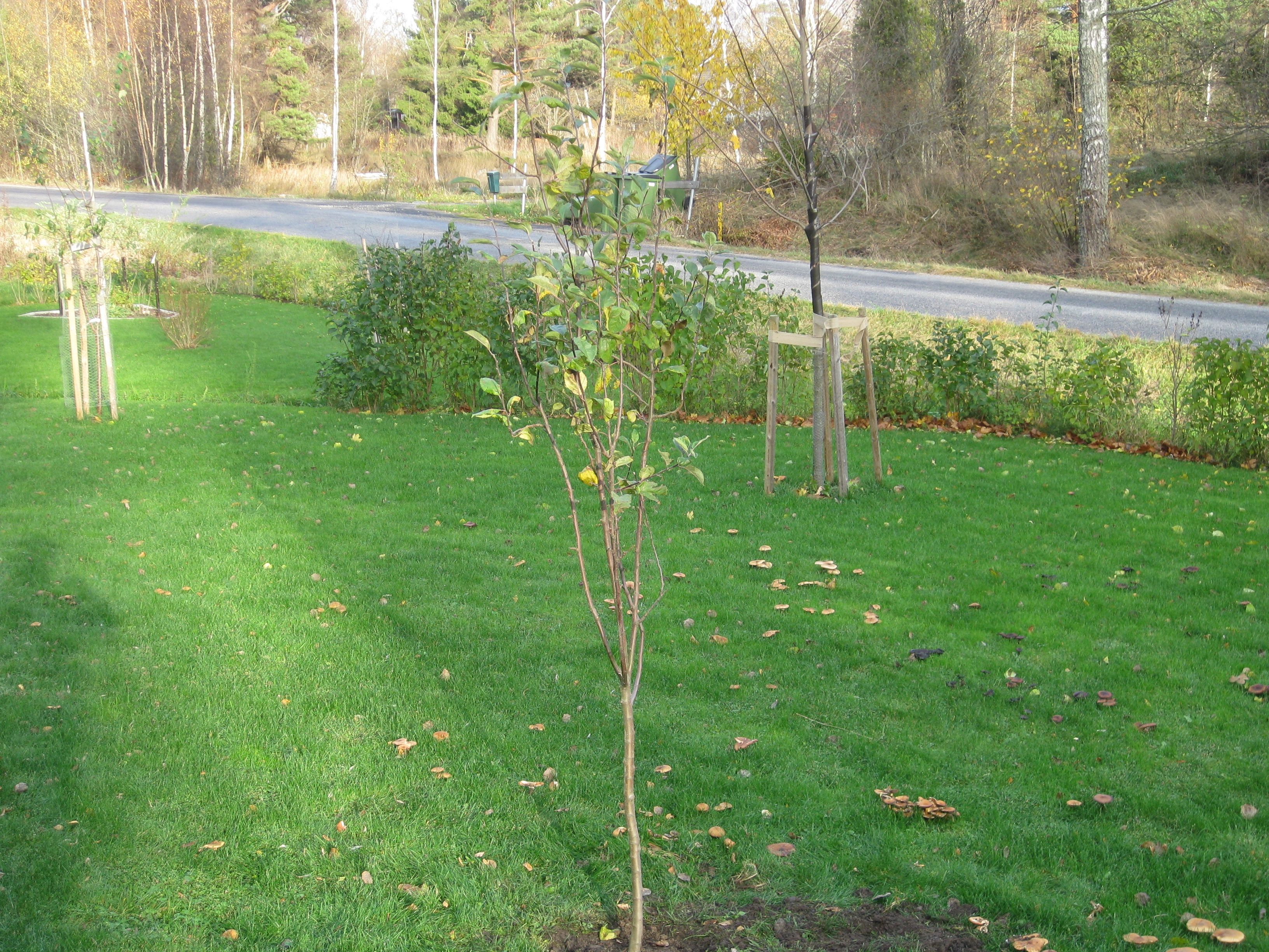 Svampen växer vilt i gräsmattan. Det är väldigt fult – men inte så mycket att göra åt. Katarina har shoppat vårlökar! Eftermiddagarna börjar bli korta, men vi hinner med det vi föresatt oss: att flytta äppelträdet och en av pilarna. Katarina hinner också sätta sisådär 70 tulpanlökar och 60 krokuslökar. Nu får vi chans – till våren – att på riktigt testa anti-rådjursbrygden. För säkerhets skull åkte några lökar ner i krukor som kan placeras i växthuset, innan det blir för varmt där, förstås.