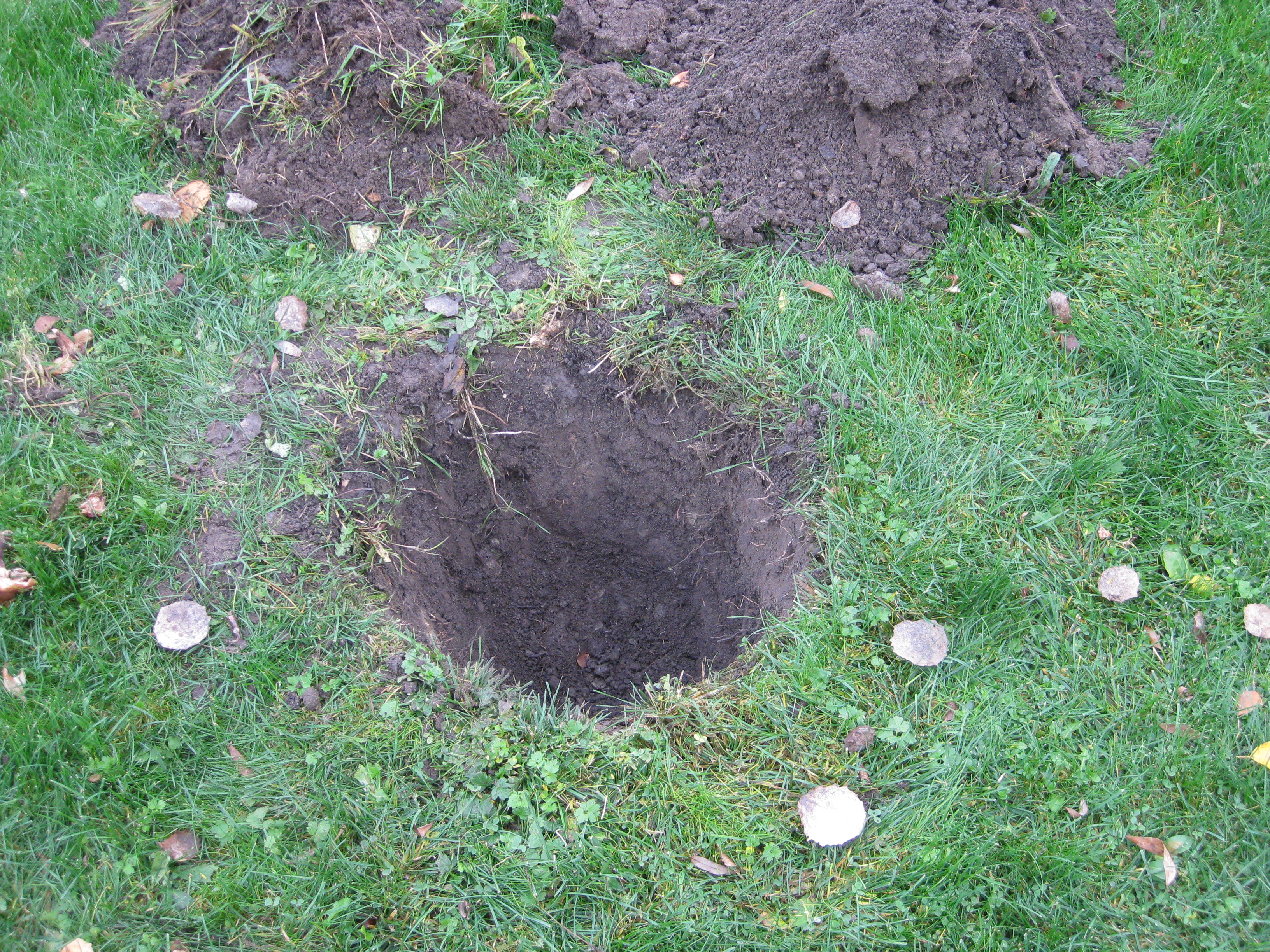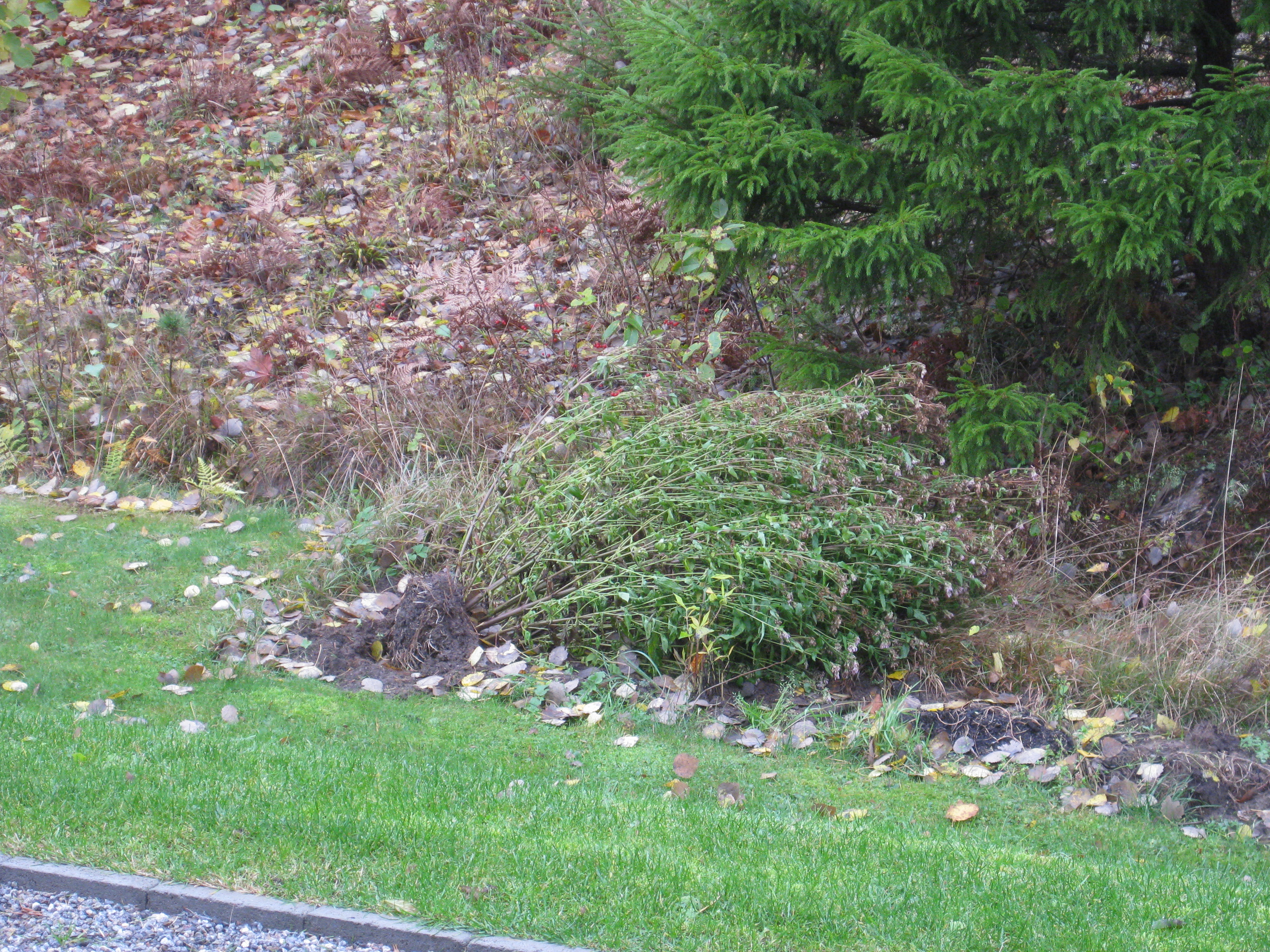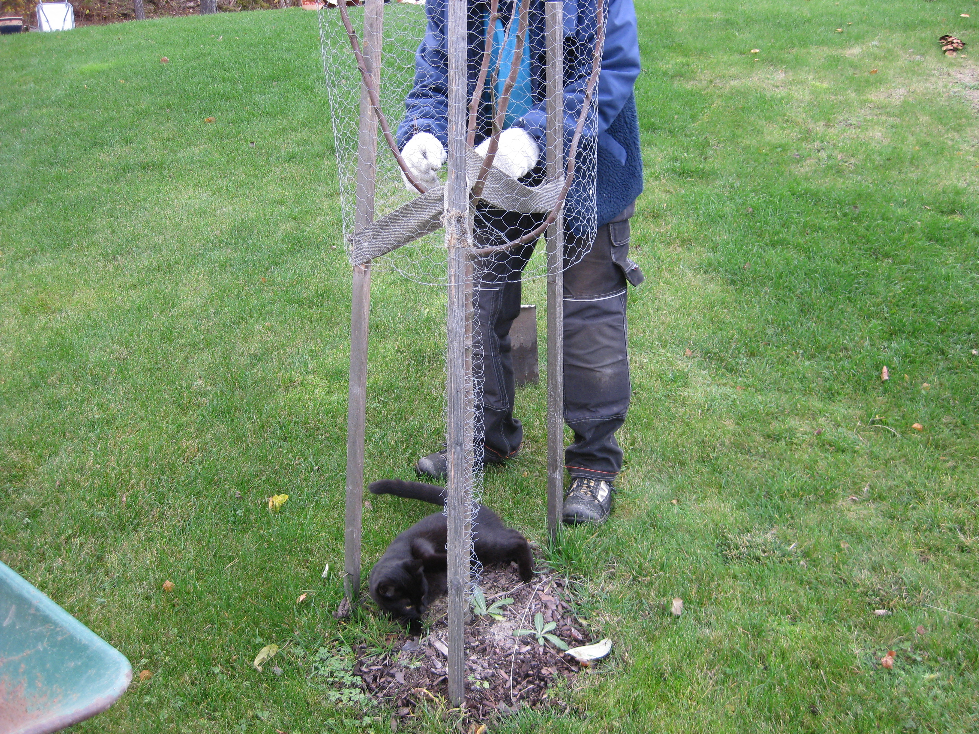 Svampen växer vilt i gräsmattan. Det är väldigt fult – men inte så mycket att göra åt. Katarina har shoppat vårlökar! Eftermiddagarna börjar bli korta, men vi hinner med det vi föresatt oss: att flytta äppelträdet och en av pilarna. Katarina hinner också sätta sisådär 70 tulpanlökar och 60 krokuslökar. Nu får vi chans – till våren – att på riktigt testa anti-rådjursbrygden. För säkerhets skull åkte några lökar ner i krukor som kan placeras i växthuset, innan det blir för varmt där, förstås.
