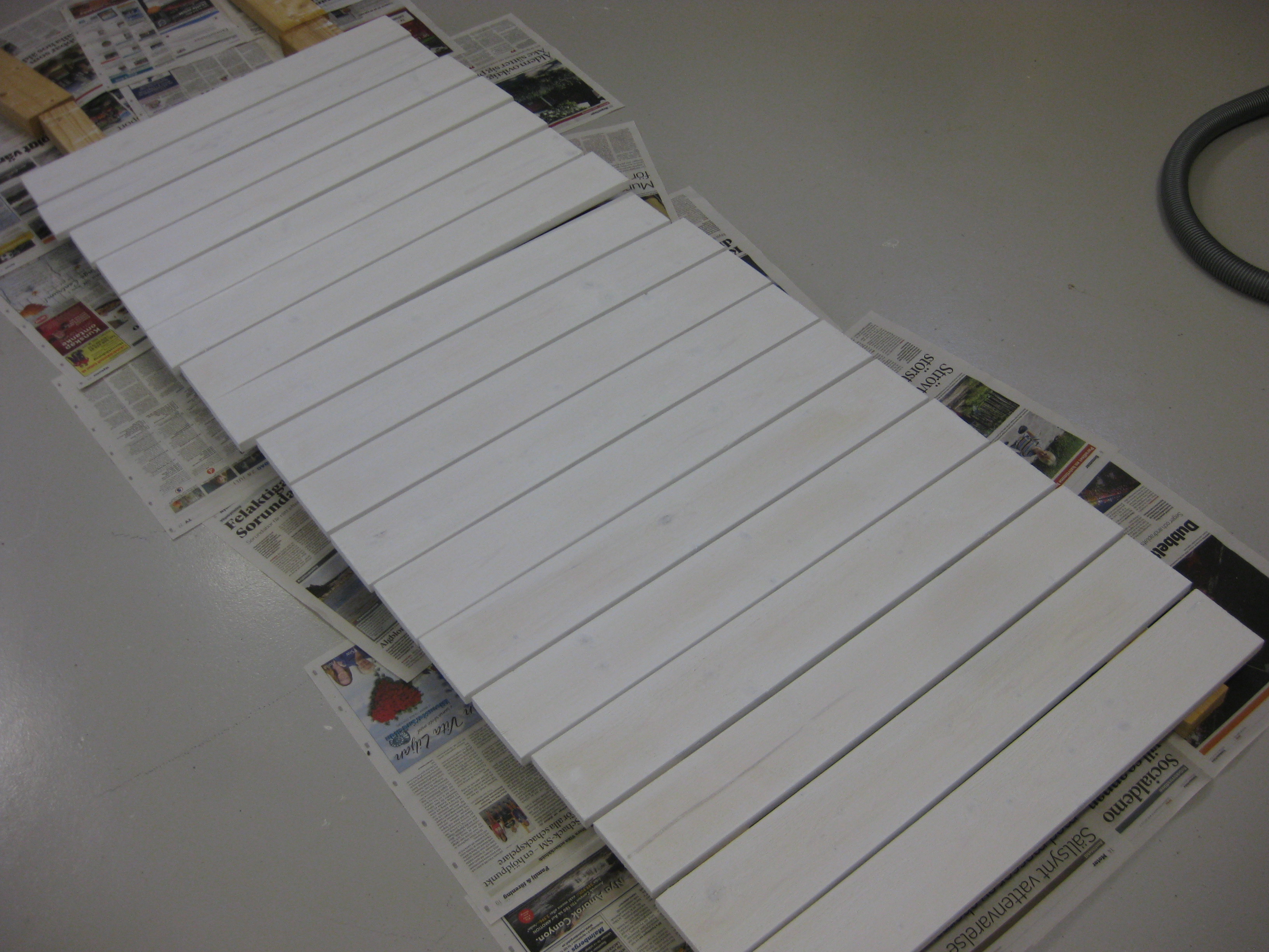 Målningsarbetet fortskrider. Den halvstora buske jag flyttat på häromdagen har blåst omkull… 🙁