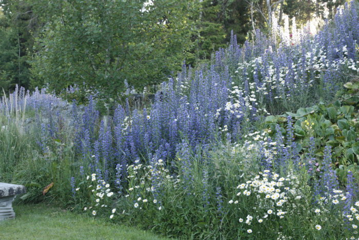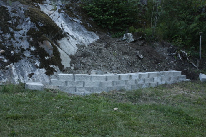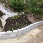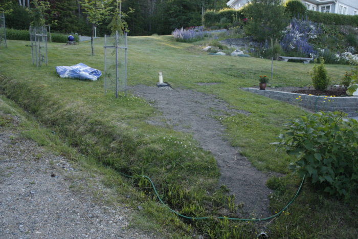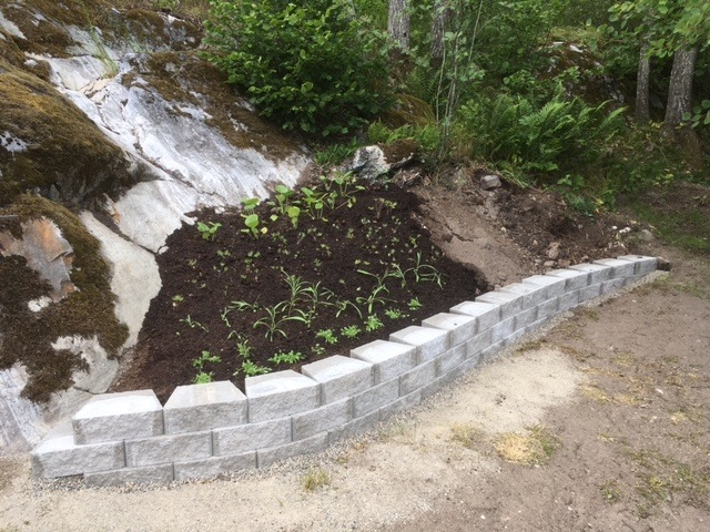 Dräneringsrör nedgrävt! Se så fin stenläggningen är! Det går framåt med nästa murprojekt! Och blåelden blommar för fullt!