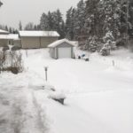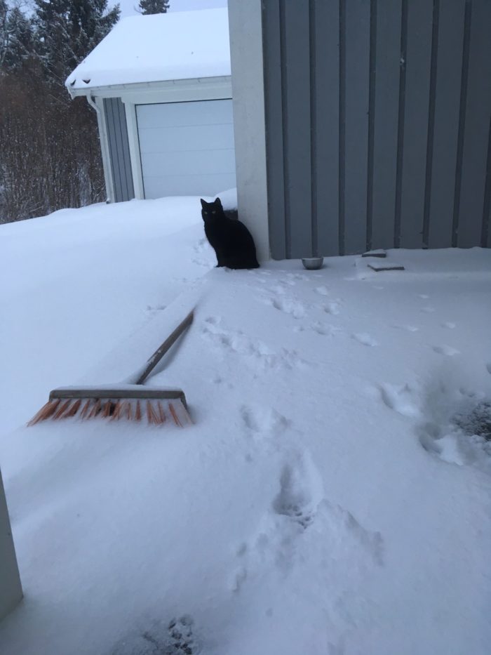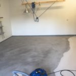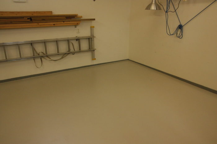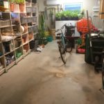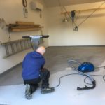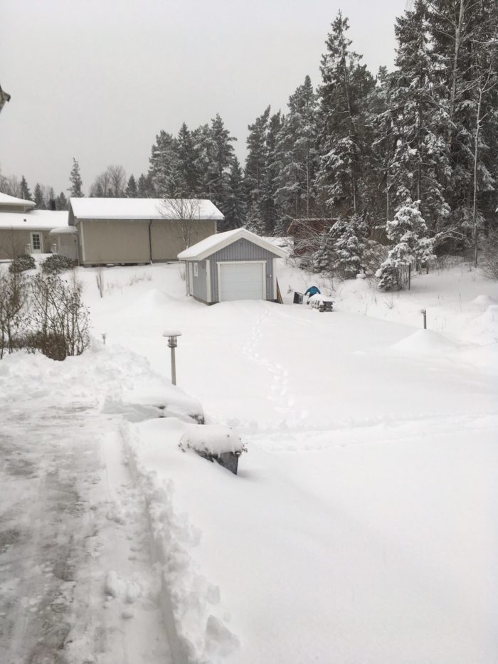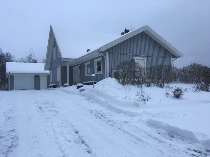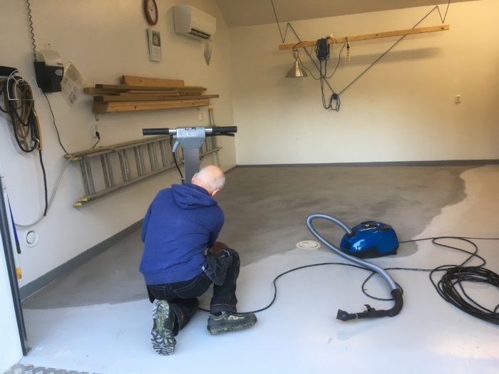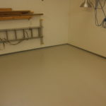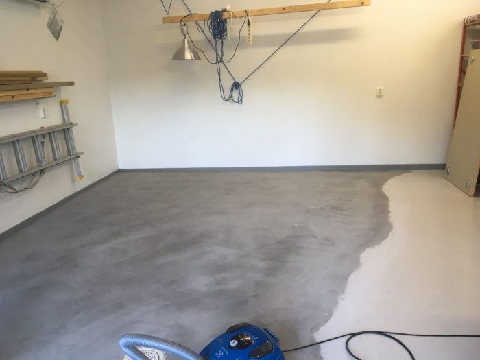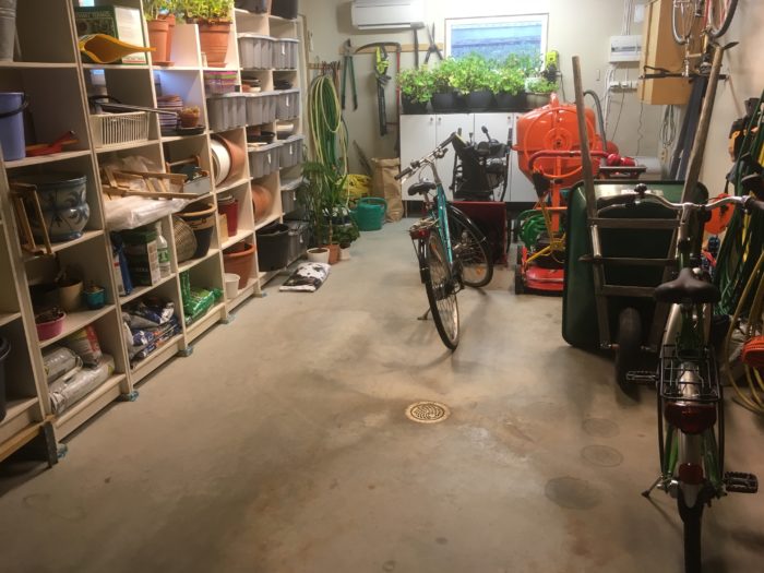 Att verkstaden har sjunkit i ena hörnet har varit hösten följetong. Håkan har mätt upp en skillnad på 7 cm (!!) från nivån när det var nybyggt. Byggfirman har varit här i omgångar och vidtagit åtgärder. Nu är det dags att slipa och måla golvet på nytt, för att kunna återställa ordningen. Och så funderar vi på att städa i garaget… Snart vill man väl kunna ställa in den lilla bilen.