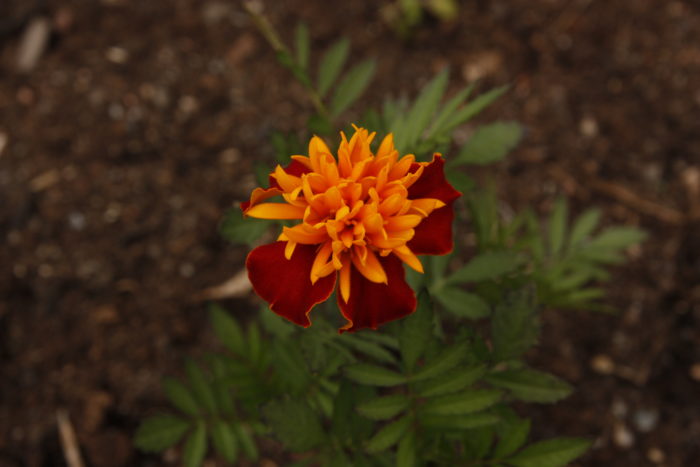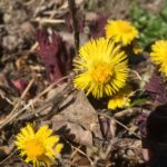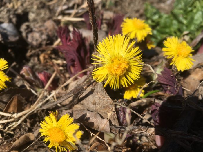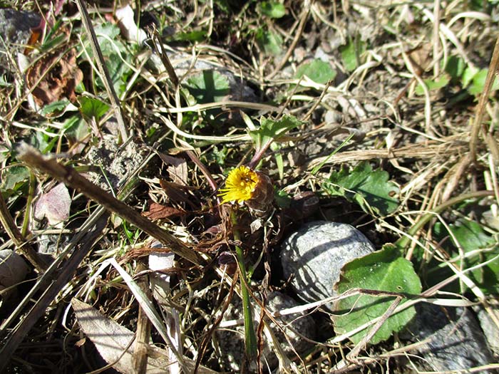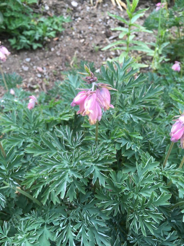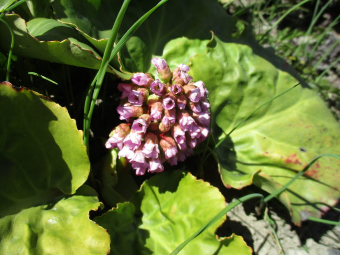Tagetes på gång i växthuset, och Bergenian blommar i slänten!
