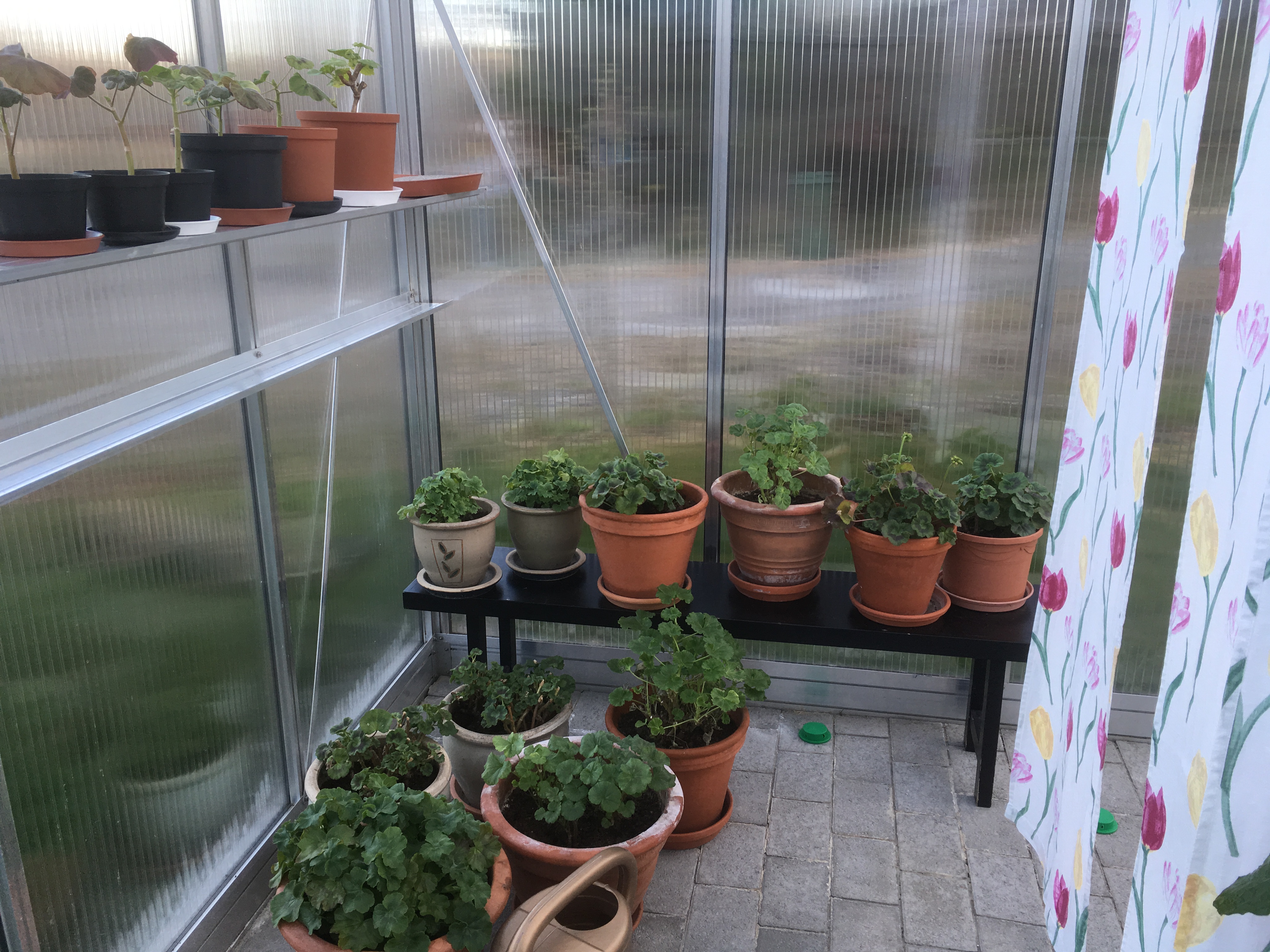 Vi flyttar ut pelargoner i växthuset – nu är det väl vår på riktigt?