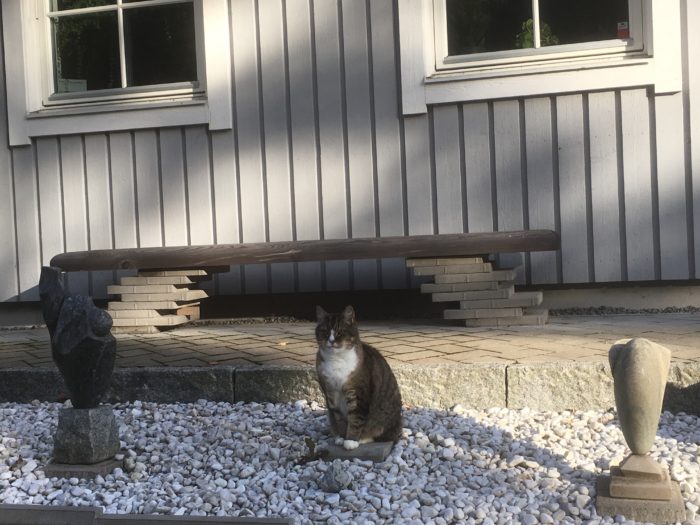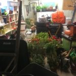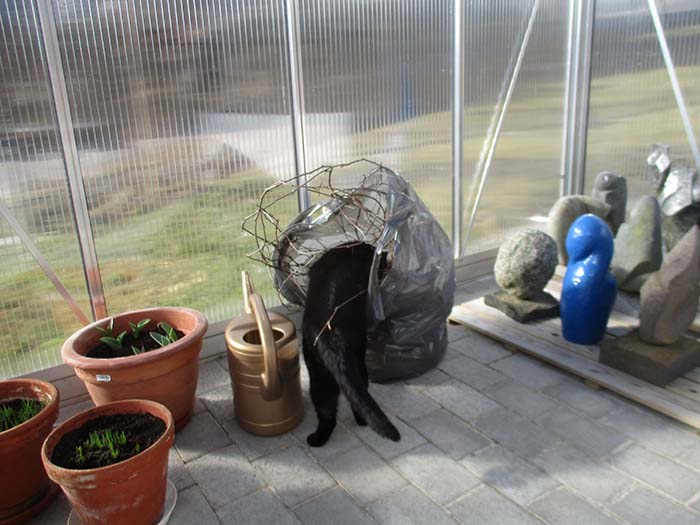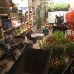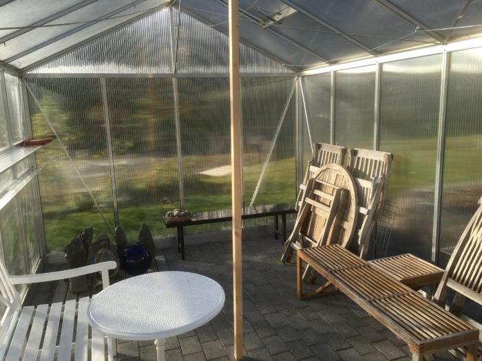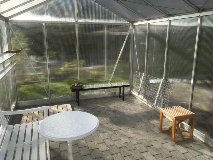 Vi städar ur växthuset för vintern, och fyller på med skulpturer och trädgårdsmöbler.