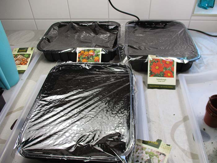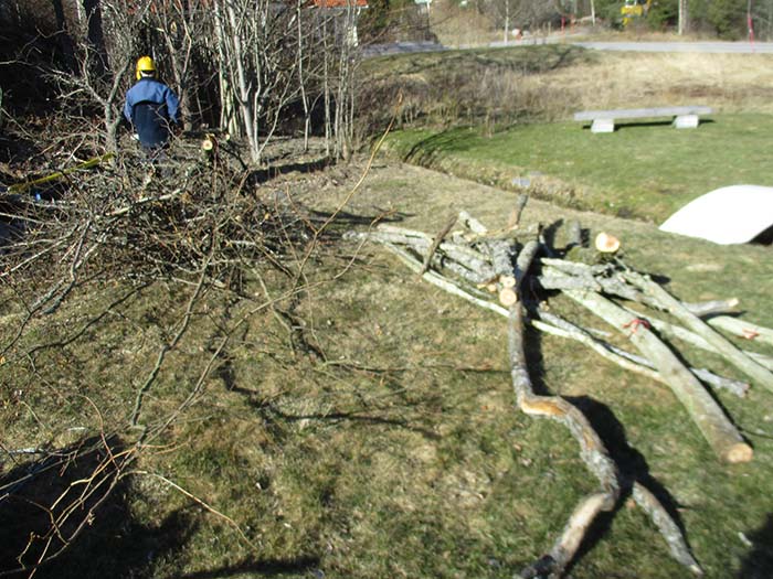 Dags att så tagetes, blomstertobak och inkakrage. Vi tar itu med att fälla träd och buskar som vi markerat att vi ska ta ner. Vi är riktigt duktiga!