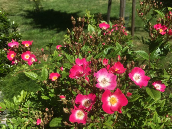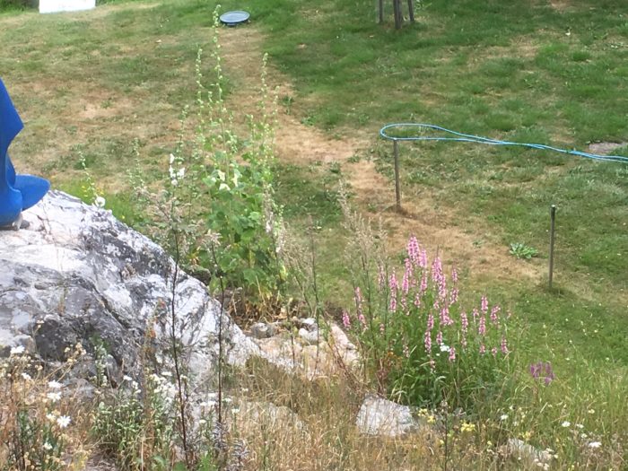 Stockrosorna har plötsligt slagit ut, liksom fackelblomstren. För övrigt är det är torrt torrt torrt! Ingen regn sedan midsommar…