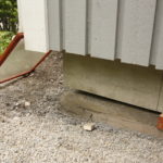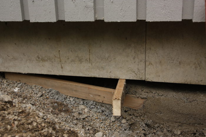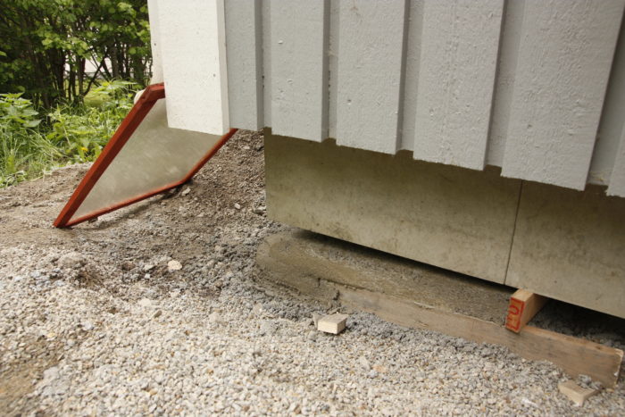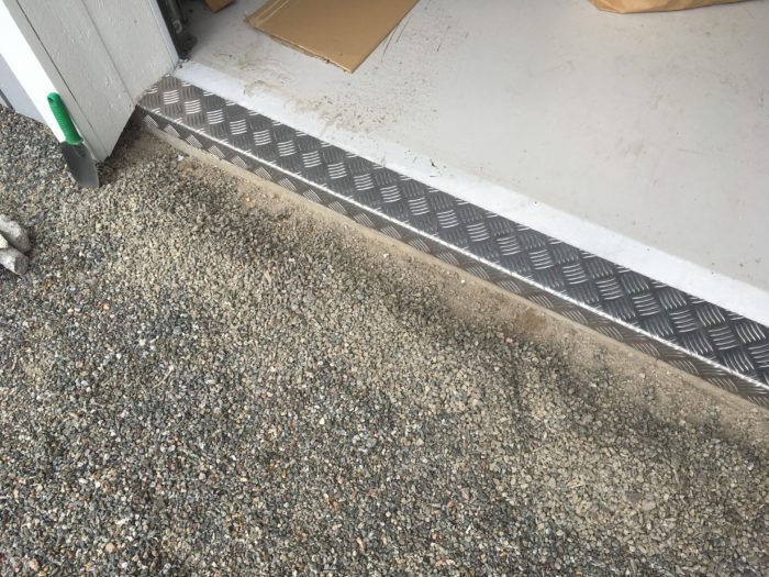 Nya utmaningar får vi då det visar sig att marken under ena hörnet av verkstaden har sjunkit. Marken har försvunnit så pass mycket att det skiljer hela 7 centimeter från när golvet gjöts för några år sedan. Byggaren som är skyldig var förvånad att bottenplattan inte hade spruckit… Vad gör man åt det här? Gjuter in något i mellanrummet som ska expandera. Vem som får betala kalaset återstår att se…