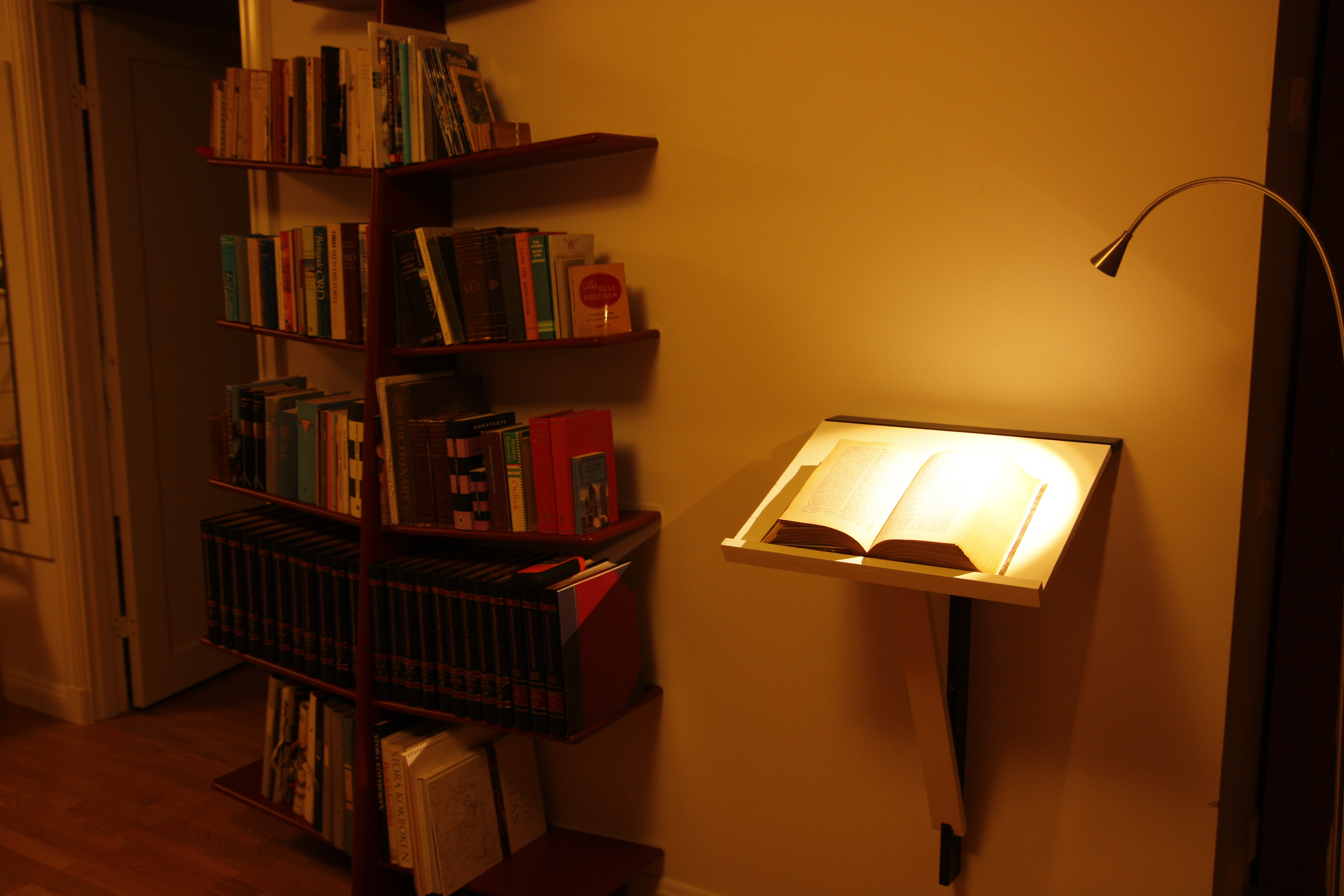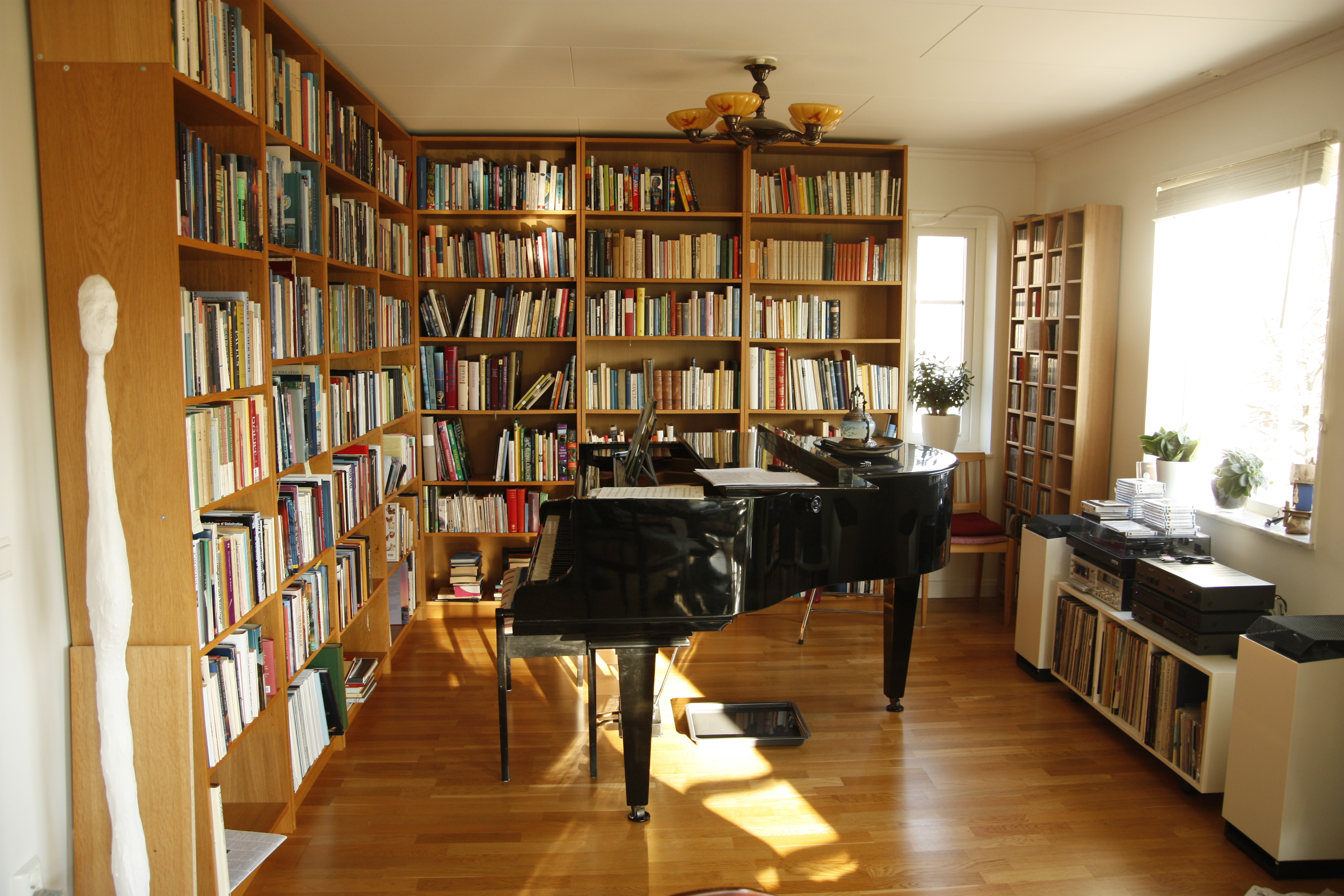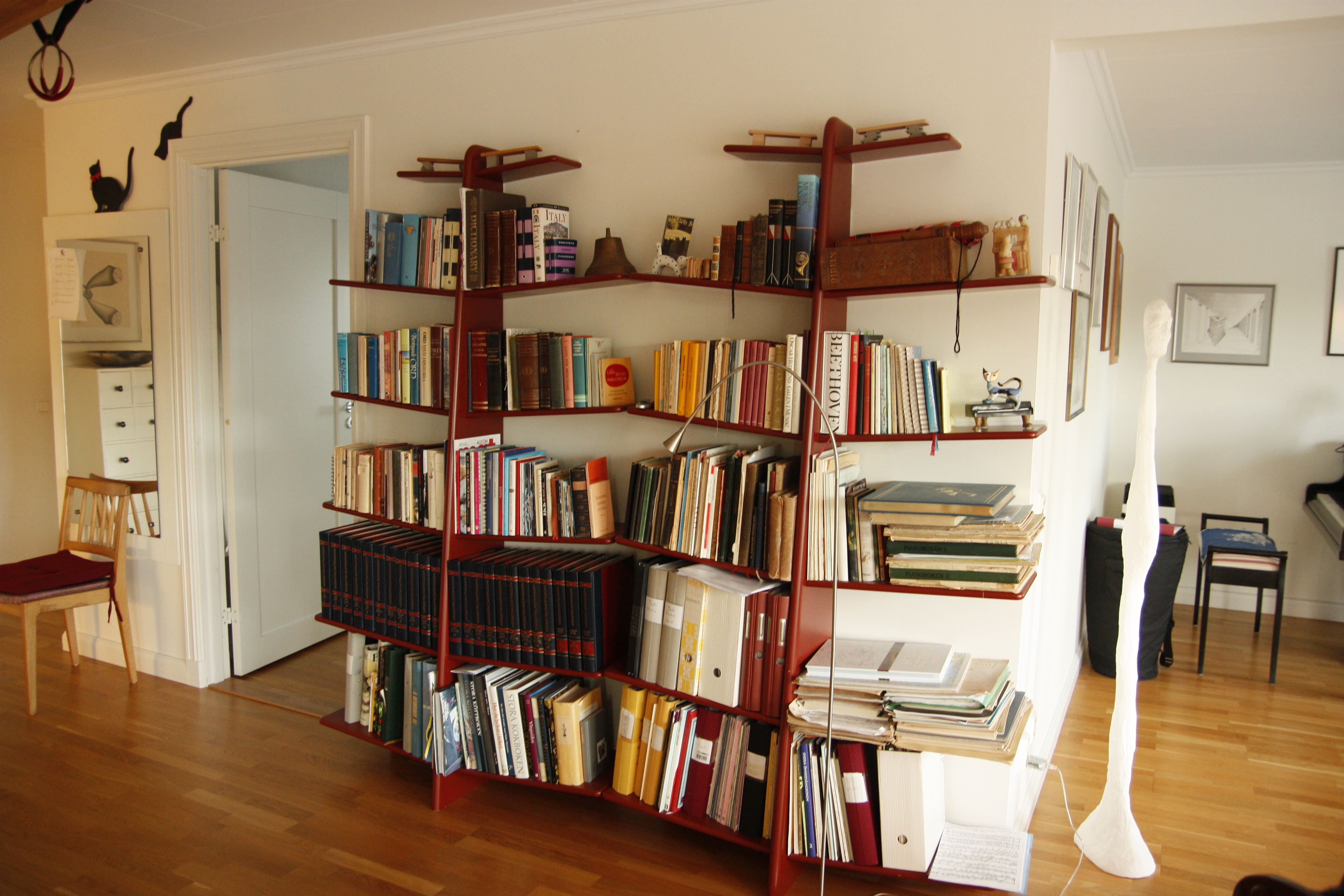 Vad ska man göra när trädgårdssäsongen inte kommit igång ännu? Varför inte möblera om? Vi flyttar runt alla bokhyllor – det är väl en bra idé? På så vis skapar vi oss ett ”bibliotek”, där nästan alla våra böcker ryms.
