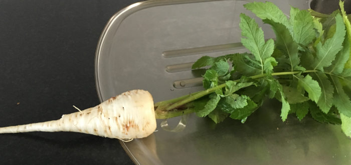Katarina sätter fart mot växthuset och Håkan plockar nässlor för att göra soppa på.